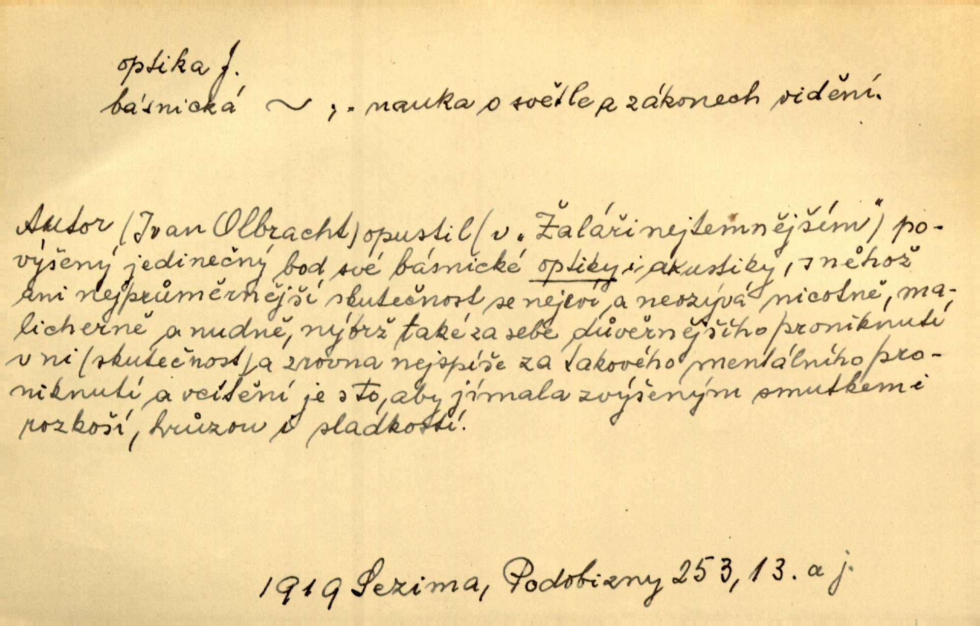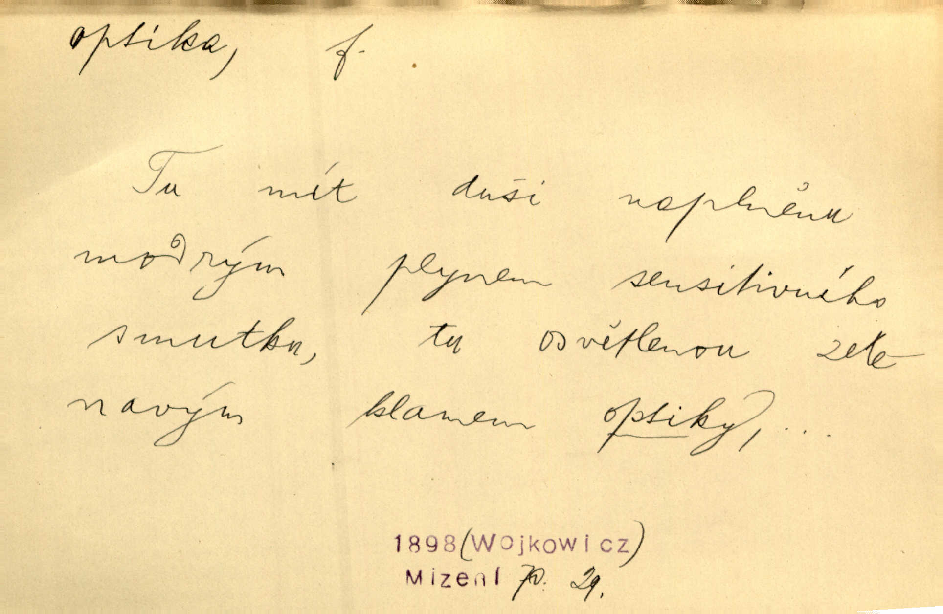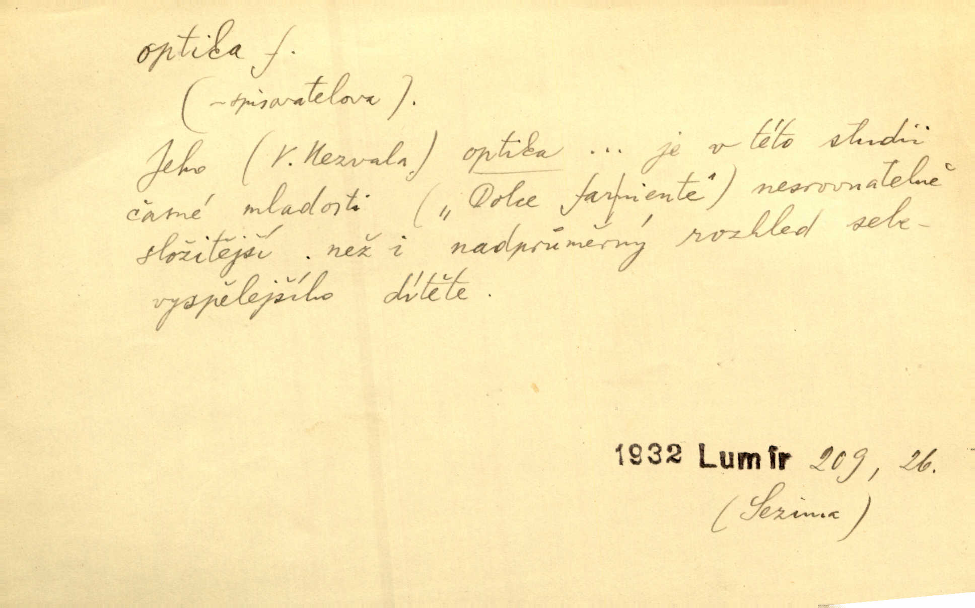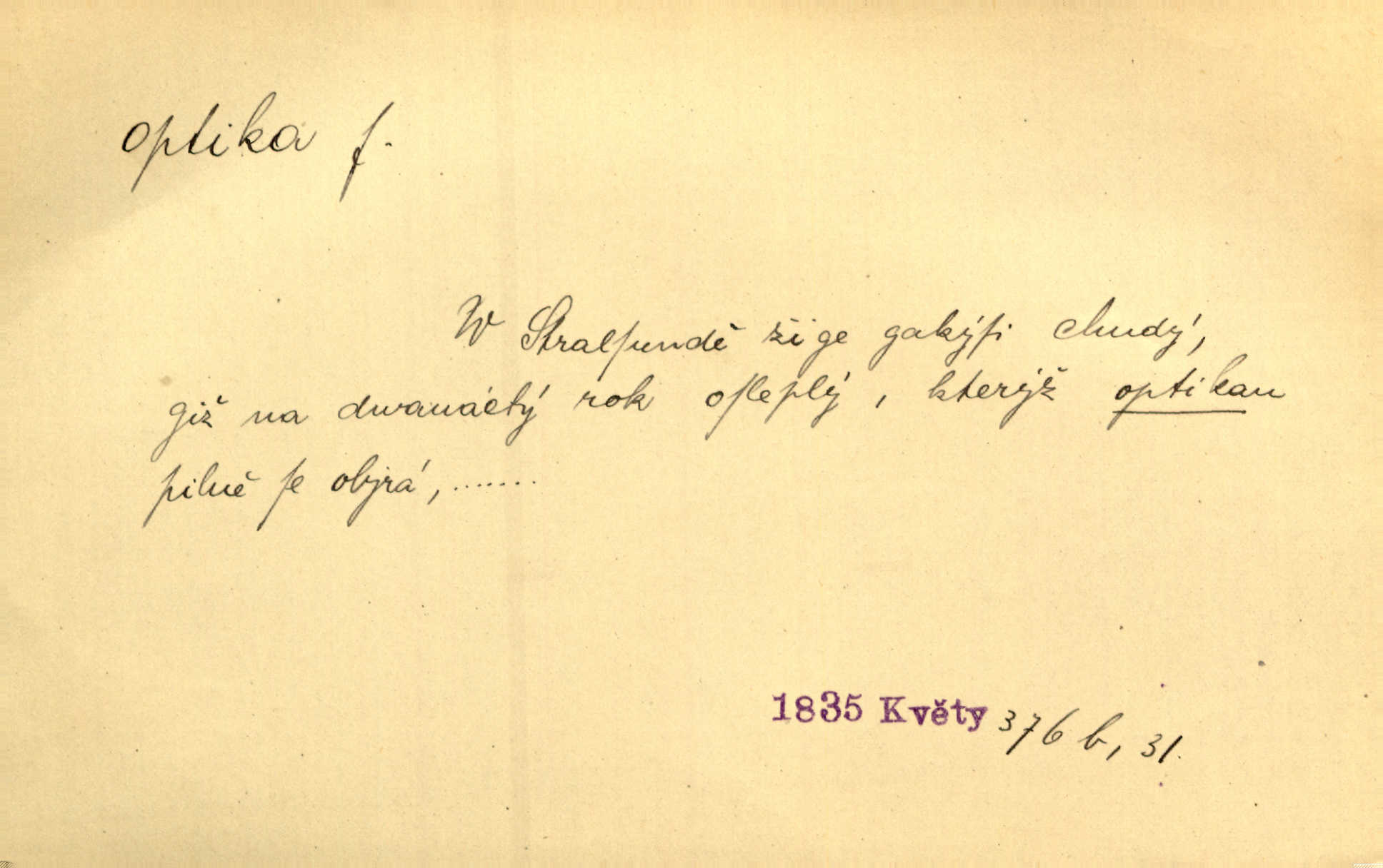 - optika, -y f. fys. nauka o světle; optická část přístroje n. stroje (čočky, hranoly a pod.); souhrn vlastností optického skla, čoček o pod. D schopnost nazírání, posuzování. Jeho [Nezvalova] optika je v této studii časné mladosti nesrovnatelně složitější než i nadprůměrný rozhled sebevyspělejšího dítěte. Sez. Každé umění se absolutností své optiky ocítá v nejtěsnější blízkosti náboženství. Panor. Jejich [nakladatelů] programová slabost je neuchránila před skreslenou optikou kamarádského pařížsko-pražského souručenství. Přít.