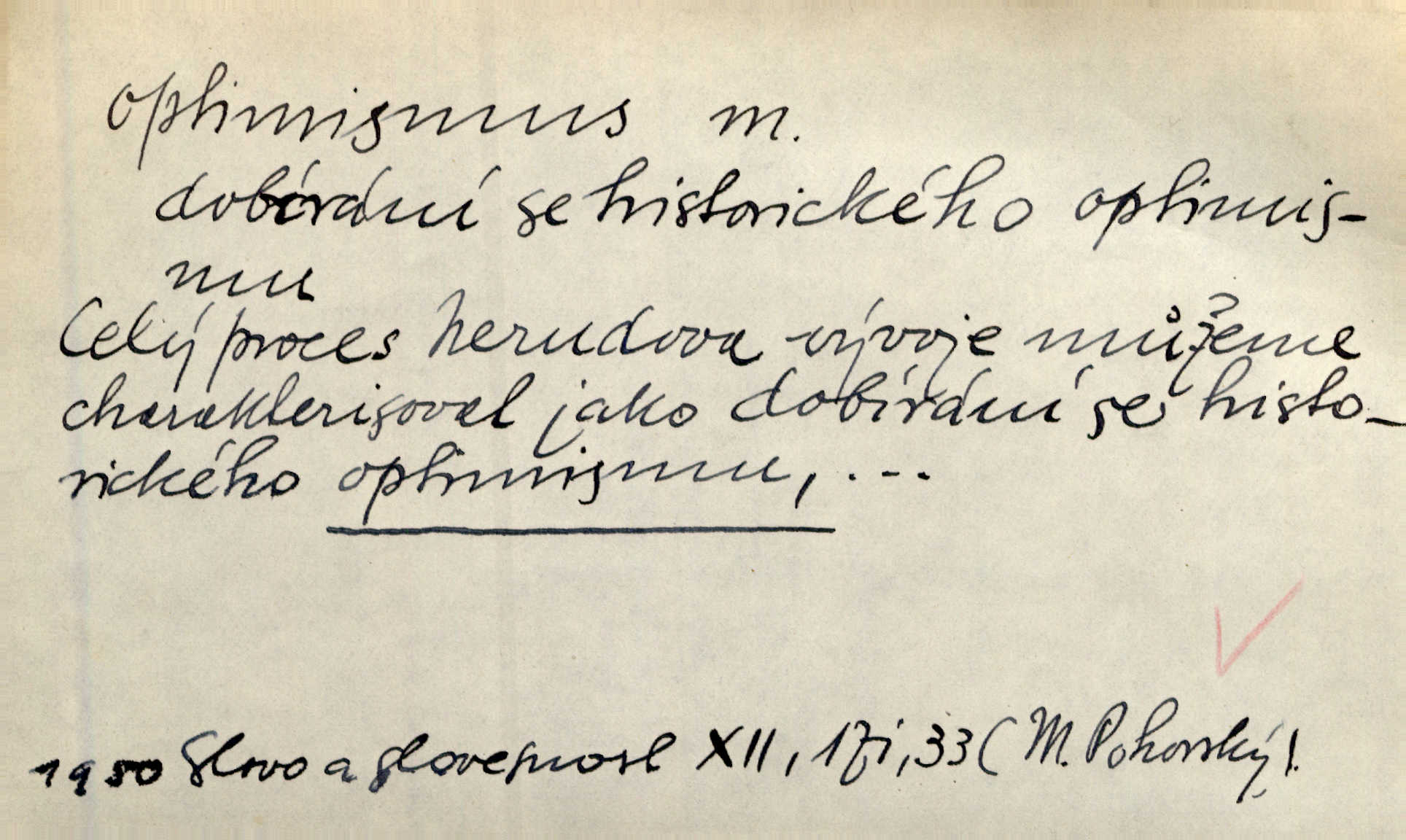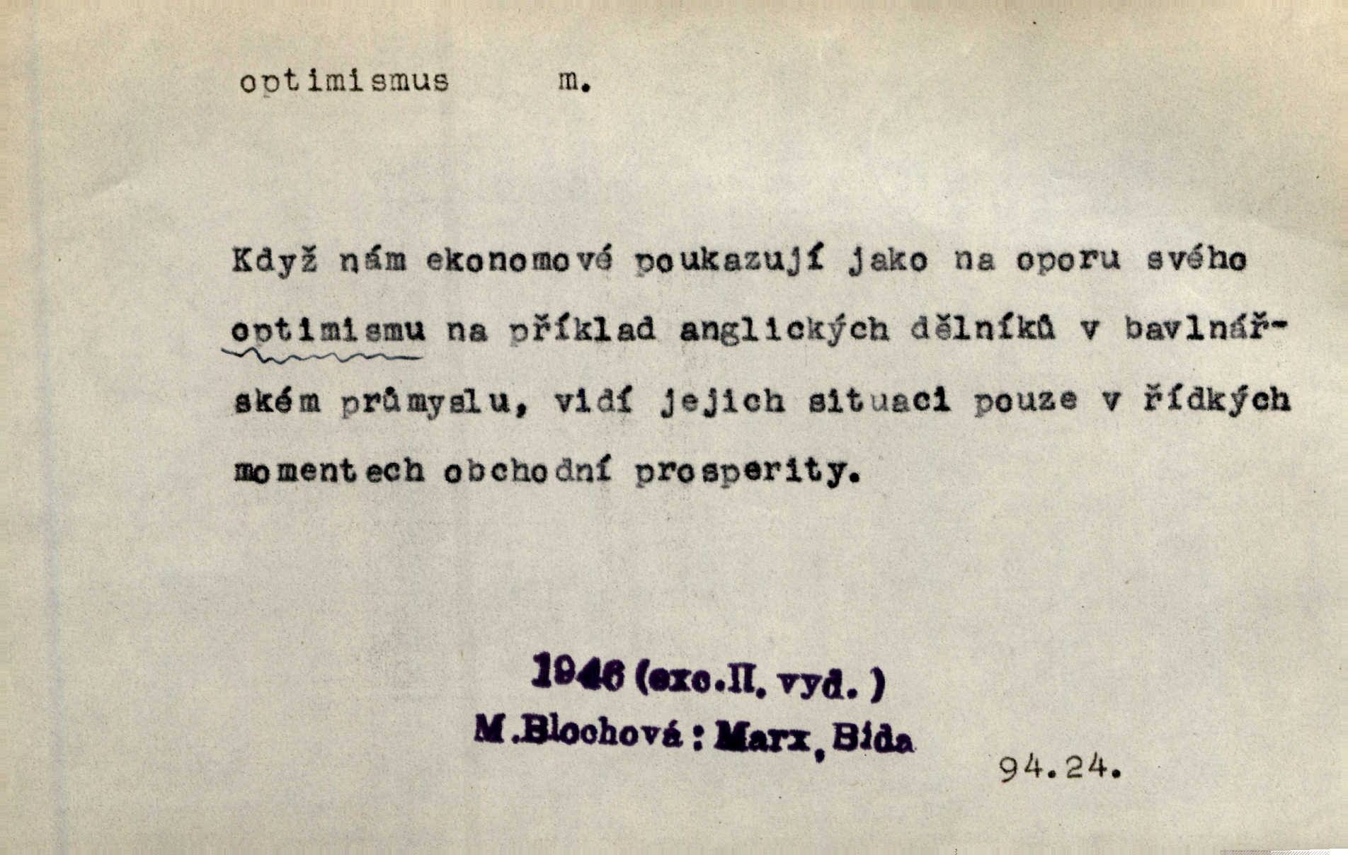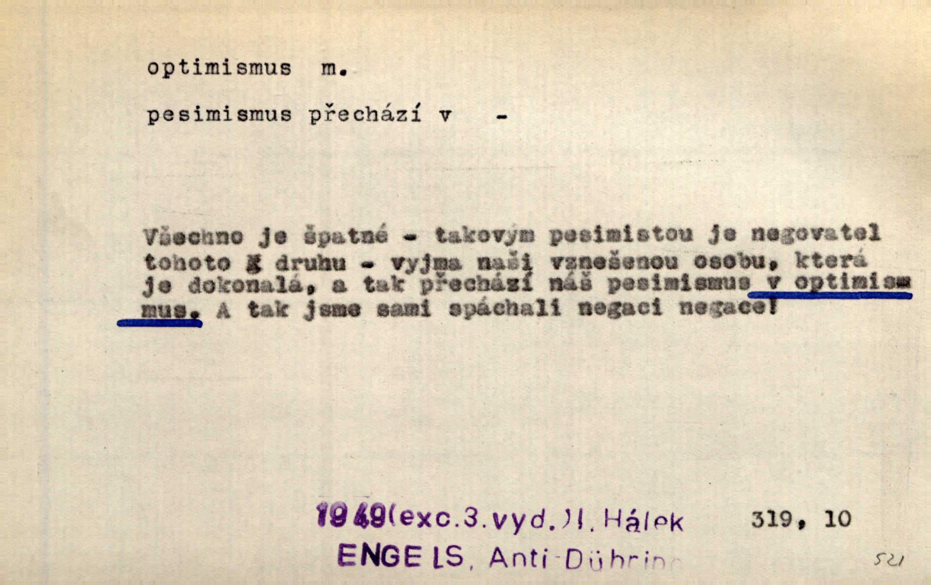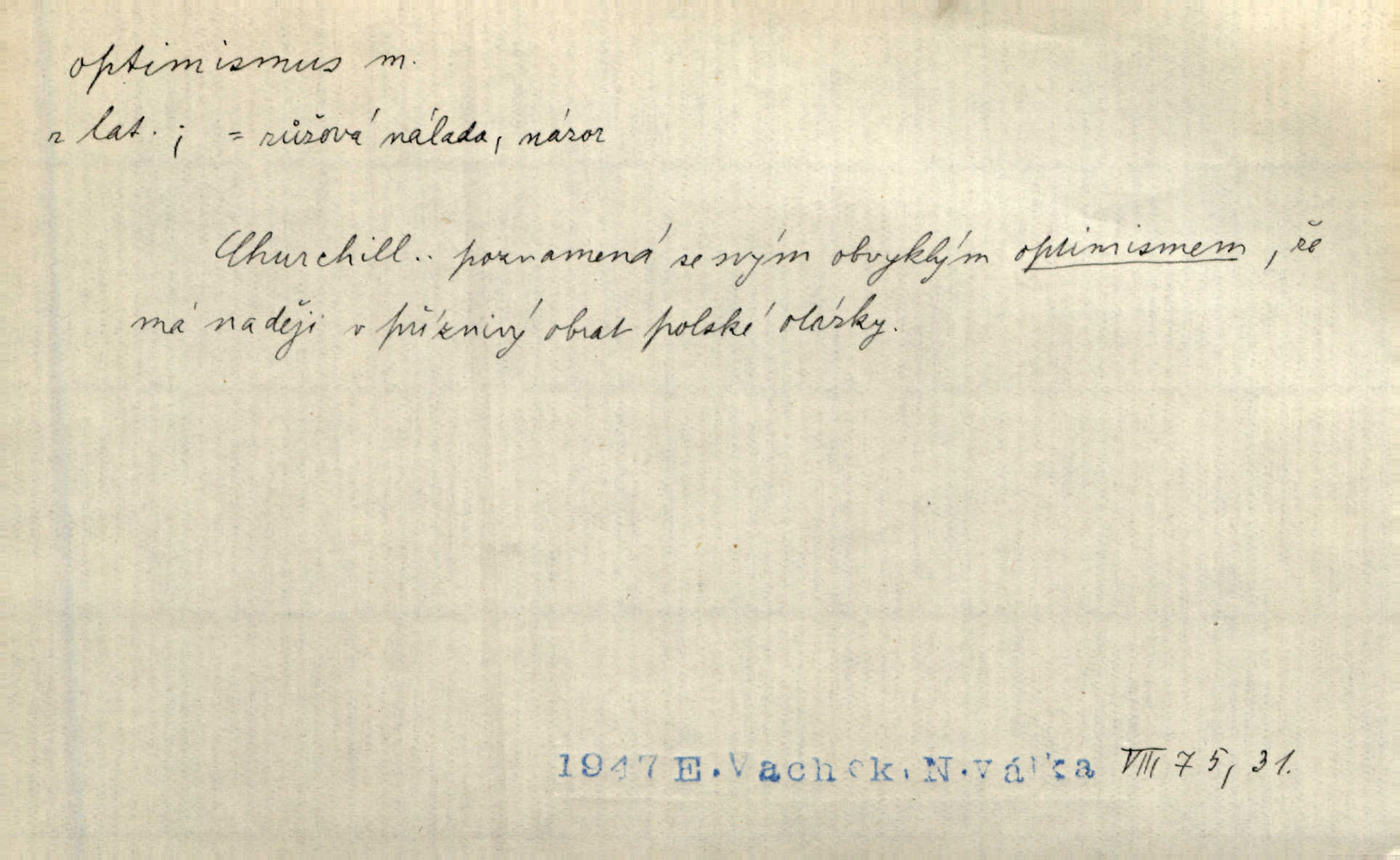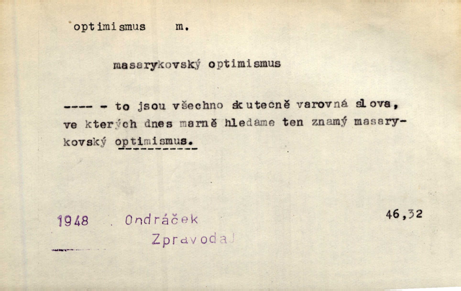 - optimismus (vysl. -ty-), optimism, -ismu m. zdůrazňování kladných stránek života; sklon považovati něco za lepší, výhodnější, než je ve skutečnosti (op. pesimismus). Onen klamný optimismus souchotinářů jest skutečně jedním z řídkých darů lakomé jinak přírody. Mach. [Schauer] nezná jiné námahy než konstruovati pro úkoj neuspokojeného nitra umělý optimismus. Kar. Měl [hostinec] něco, co mohlo se se značnou dávkou optimismu nazývat prvým poschodím. Dyk. Filos. nauka, že náš svět je nejlepší ze všech možných, poněvadž Bůh jej stvořil.