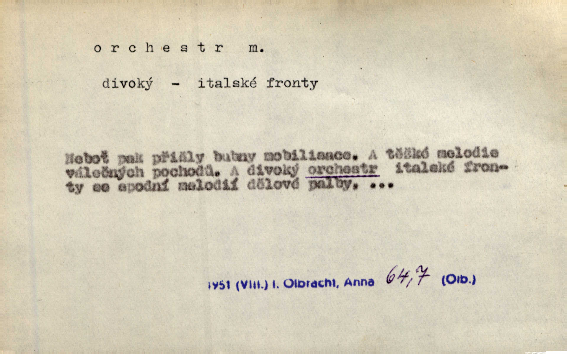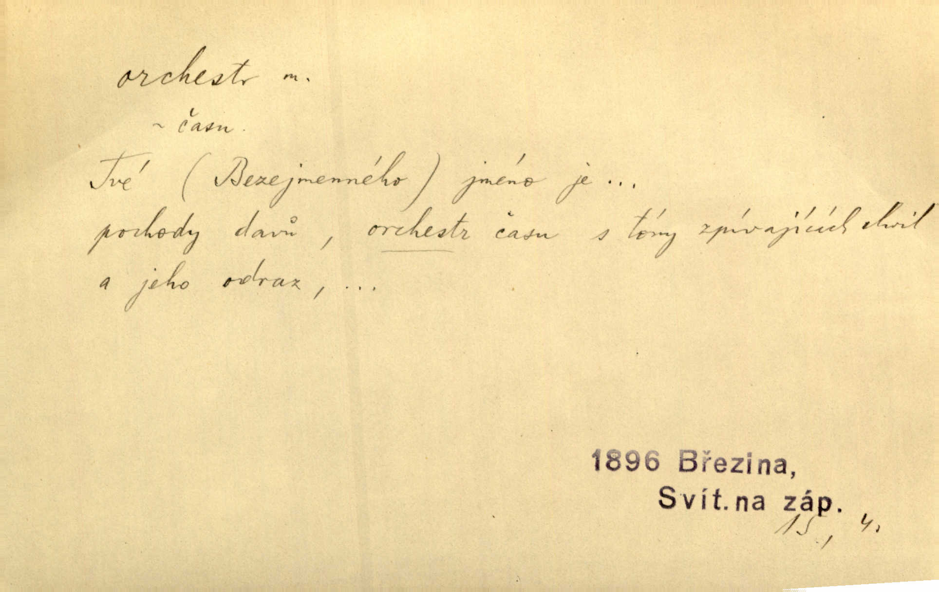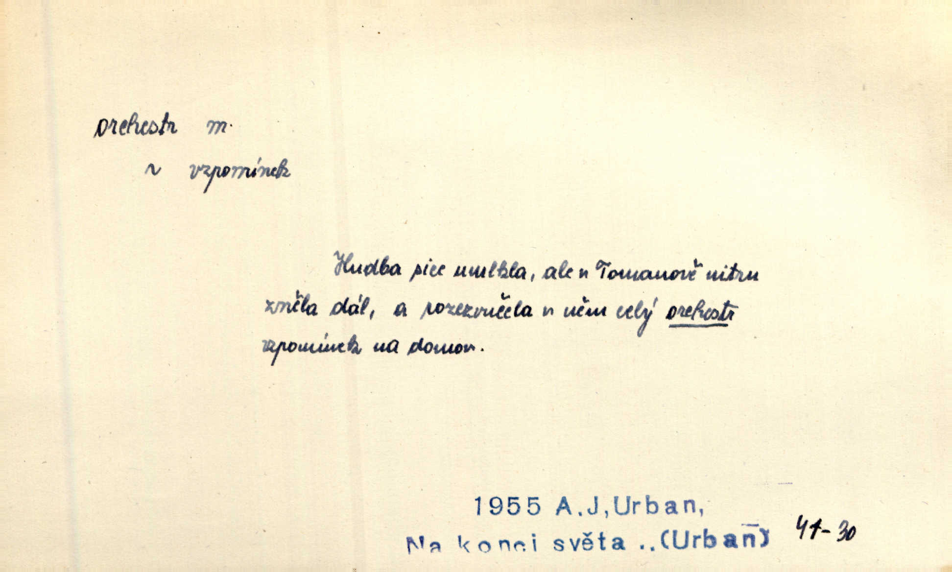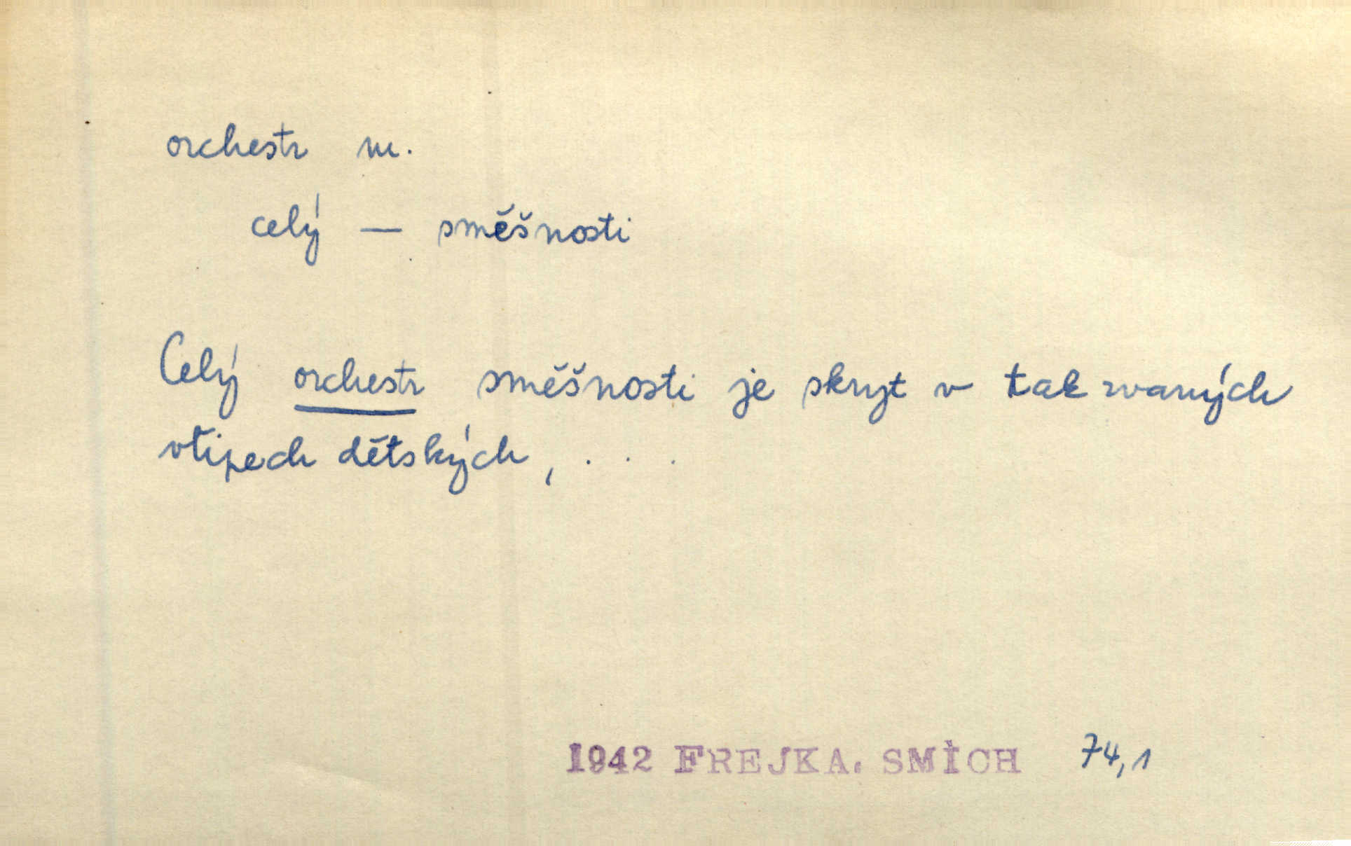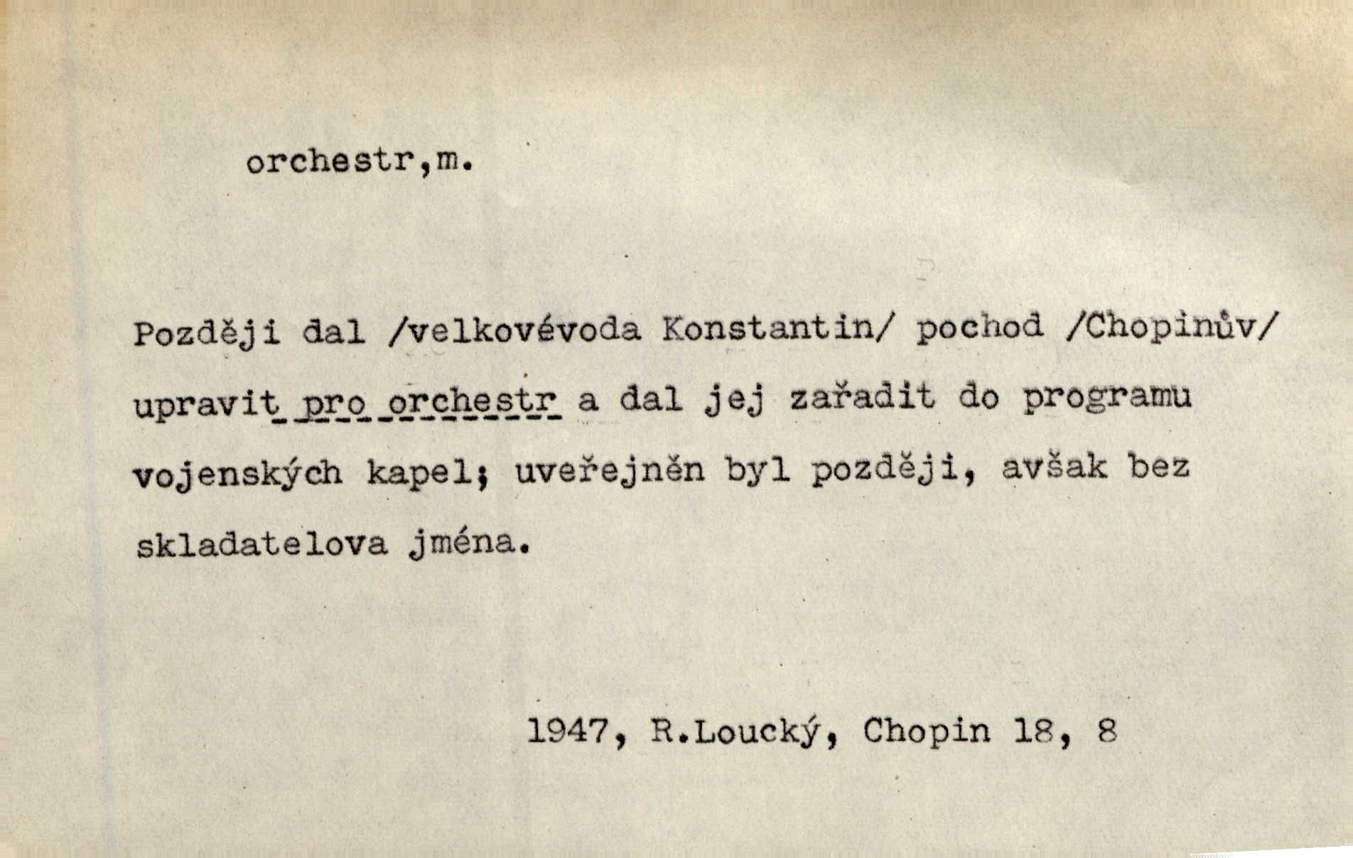 - orchestr, orkestr, -u m. hud. sbor hudebníků hrajících na různé nástroje. Orchestr symfonický, velký, malý, smyčcový, dechový a p. Přen. Orchestr hyenních a tigřích zvuků. Ner. Venku bručí, vrže, břinká větru bouřný orchestr. Krás. Redakční orchestr „Nár. Listů“ hrával velmi často bez dirigenta. Přít. Divoký orchestr italské fronty se spodní melodií dělové palby. Olb. Budu mluvit o sedmi barvách života. Ne, o celém orchestru barev. Šrám. Tam, kde mají jiní vyjádřený celý orkestr citový, v naší společnosti najdete jenom kolovrátek s klikou. R. Svob. D místo, kde jsou hudebníci při produkcích se svými nástroji umístěni. Na jevišti zkoušeli féerii. V orchestru hrála baletní hudba. R. Svob. Viděl, jak se plní orkestr hudebníky. Hál.