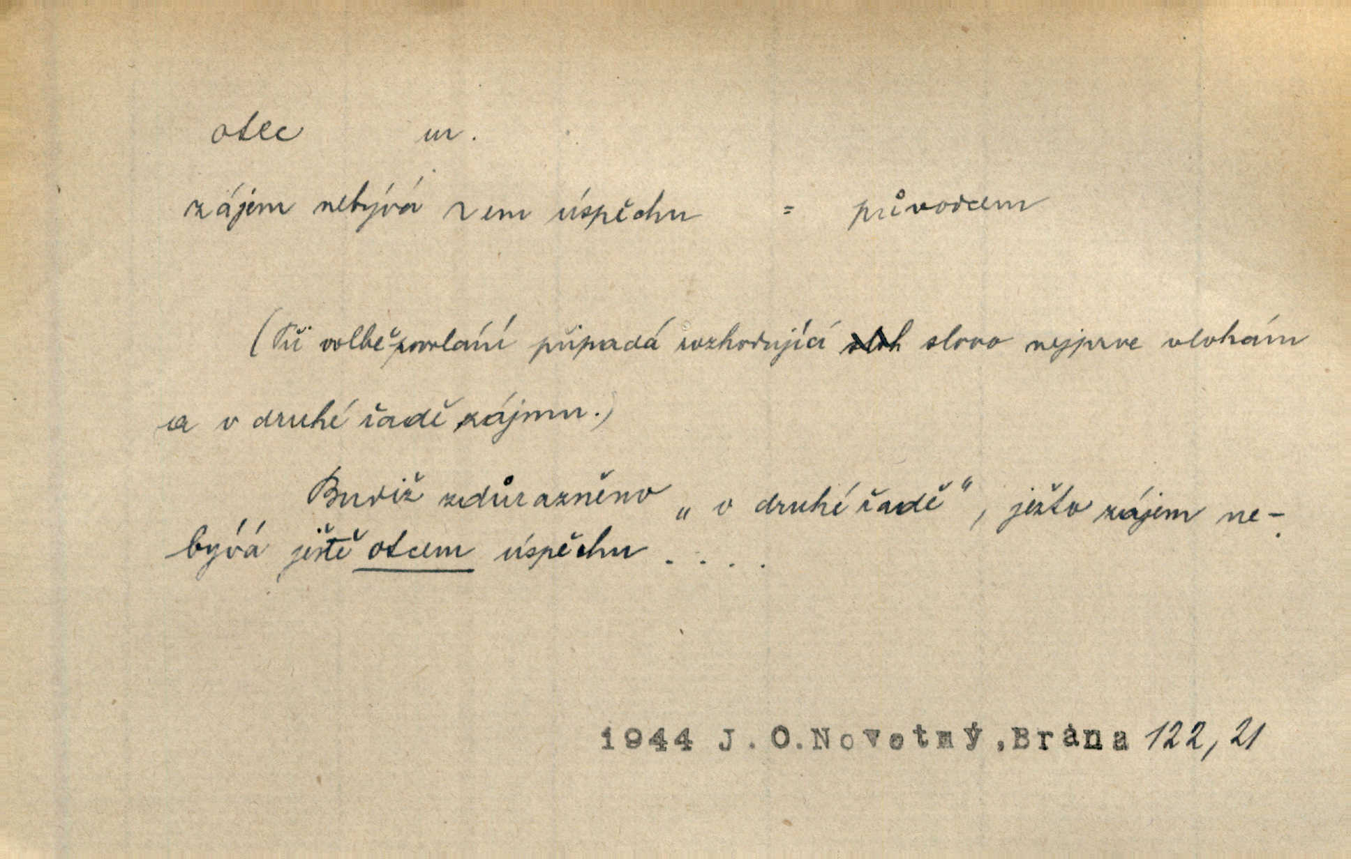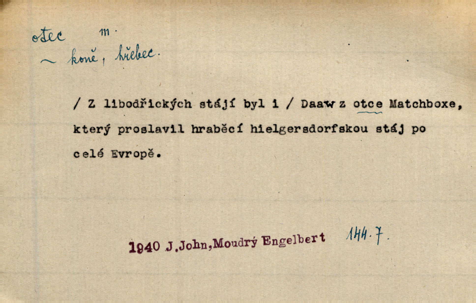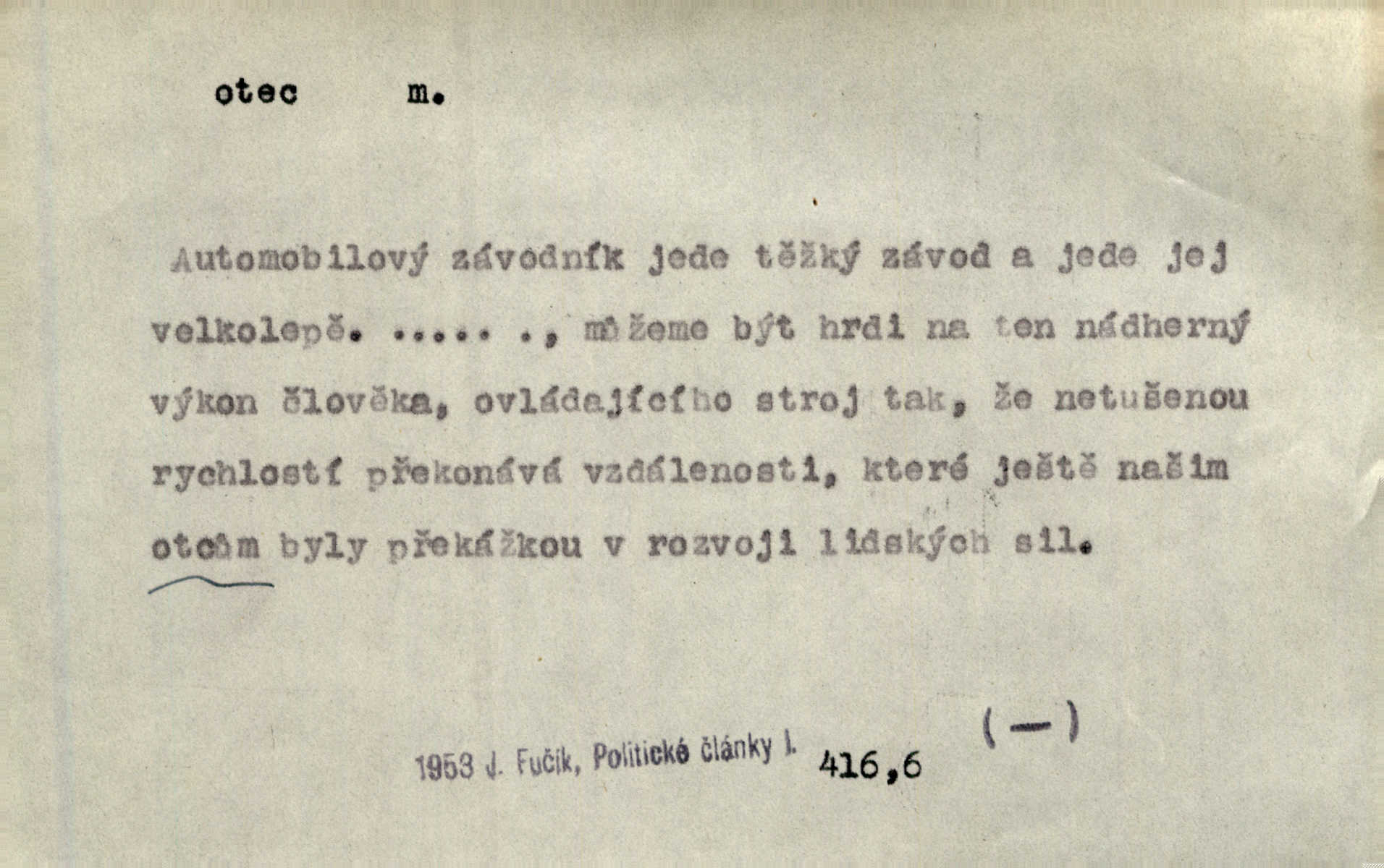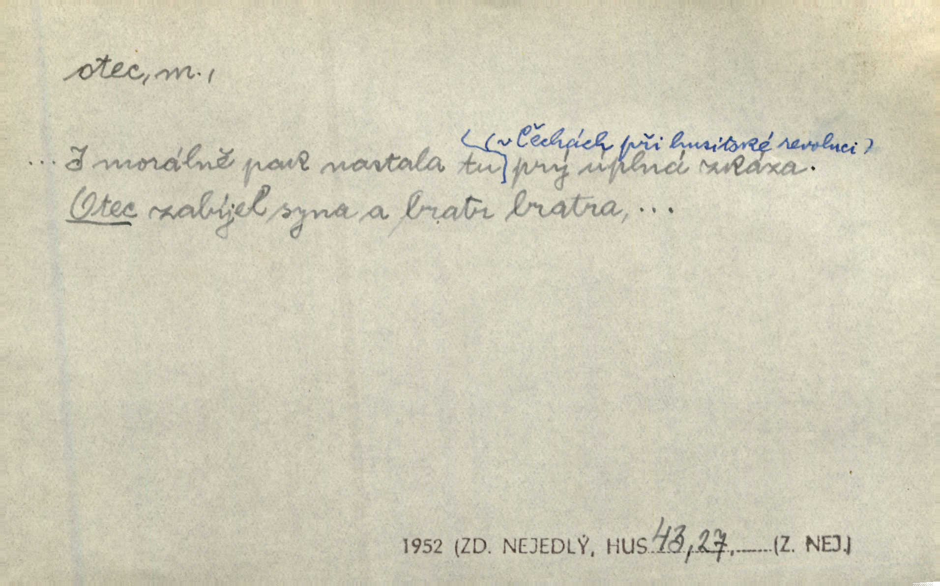 - otec, otce m. muž, jenž zplodil potomky. Nebylo pochybnosti, že Hanuš bude otcem a matka jeho babičkou. Šmil. Mně pravil otec na smrtelném loži: tys, dcero, rodu mého poslední. Krás. Jaký otec, taký syn. Hol. Nebyl bych tě poznal po tolika letech! Ukaž se přece! Jsi po otci, ano, po otci. K. Čap. Staří i mladí se sdružují. Jsou zcela patrné dvě vrstvy: „otcové a děti“. Herb. Nejsvětější z všeho krev je lidí, již k Bohu zří co k otci! Vrch. Doktor poslouchal pobožně; chtělť si svou trpělivostí dobré oko u nastávajícího pana otce koupiti. Šmil. Práv. otec manželský u něhož platí zákonná domněnka otcovství; otec nemanželský kdo otcovství dítěti nemanželskému uzná n. kdo je po žalobě paternitní za otce soudem prohlášen; otec adoptivní kdo smlouvou uměle založil poměr otcovský adopcí dítěte. D muž starající se o někoho n. o něco, moudře řídící něco, příznivec, ochránce, dobrodinec a pod. [Král mluví k lidu:] Jsemť, lide, otcem tvým, proč rouháš se mi směle vzdorem svým? Zey. O kázání před svatým požehnáním shrnuje otec dědiny všechny šťastné i nešťastné události své farnosti v jedno. A. Mrš. Podívejte se mi do očí, strýčku, otče náš. Šmil. Appoll, otec básníků. Mach. Zvědavě vyčkávali, cože nového na radnici upekli otcové města obecní starší, radní. Vrba. Na radnici zasedá odbor chudinský, který jmenuje pro jednotlivé okresy otce chudých referenty o chudinských věcech. Mach. D čestné pojmenování zasloužilého n. významného muže. Karel Čtvrtý, Otec vlasti. Něm. Palacký, Otec národa. MSN. [Vlastenci] zastyděli se za netečnost českého čtenářstva k otci Homerovi. Dibl. Rád myslí zalétám v ty krásné doby, když otec Radecký nás k slávě ved! Čech. D pan otec mlynář, majitel mlýna. Babička říkala o panu mlynáři, či lépe o panu otci, jak ho vůbec každý nazýval, že je rozšafný člověk. Něm. U nádržky deštěm nakypělé rád vytáhl pan otec stavidla. Krás. Vedlo se mu jako panu otci na horském mlýně přede žněmi. Vrba. D Dial. křestný, křestní, krstný otec kmotr. Císař Konstantin Porphyrogeneta [byl] jejím křestným otcem. Šaf. Nemohli se tomu dítěti rodiče dosti vynadiviti, až jim po chvíli na rozum přicházelo, že ji to asi ti krstní otcové obdařili [krásou]. Něm. D titul dávaný duchovním, zvl. členům církevních řádů. Mluvila jsem o té věci s otcem Bonaventurou, svým zpovědníkem. Bozd. Anidas, pomocník otce Pedra, poustevníka. Dyk. „Otče důstojný,“ pravím k němu [k jesuitovi]‚ „co jest mi činiti, abych šťastně a pokojně byl živ.“ Šmil. Hajná byla by duchovnímu otci ráda sklesla k nohoum. Schulz. Chodil do latinských škol, v nichž vyučovali otcové pobožných škol piaristé. Šmil. [Studentovi] latina otců piaristů valně nevoněla. Jir. Otcové řádu Ježíšova neobmezují se na pouhou inkvisici. Lum. Prvního vychování nabyl hoch u otců dominikánů. Ner. D Otcové (církevní) vynikající spisovatelé církevní staré doby. Nejznamenitější církevní otcové jsou na západě: sv. Ambrož, sv. Jeroným, sv. Augustin, sv. Řehoř Veliký. Podlaha. [Mistr Jaroš] nalézal v písmu svatém i v církevních otcích doklady a podporu pro svoje tvrzení. Podl. D svatý Otec papež. Vyjednává [Josef II.] již se samým papežem, aby byl řád [jesuitský] v jeho zemích zrušen, a sv. otec k přání tomu již již se nakloňuje. Svět. Jsou lidé, kteří si svaté katolické církve a svatého otce neváží a na lehko i jeho svatost berou. A. Mrš. D Otec křesťanský Bůh, zvl. první osoba svaté Trojice (Bůh Otec). Člověk tu se modlí k Otci svému o chléb vezdejší, tu zas vzývá matku boží o přímluvu. Hol. Všichni lidé jsou synové jednoho Otce na nebesích. Pal. Jeden z nich [vrabců] nepadne na zem bez vůle Otce Nebeského. Havl. Tam Věčný Otec sedí na oblaku. Vrch. Když chodili svatý Petr s Otcem nebeským po širokém údolí, přišli do jedné dědiny s Pánem Ježíšem. Něm. Zaklínám tě, duchu nečistý, ve jménu Boha Otce, Boha Syna, Boha Ducha svatého. Jir. Tu zazpíval Martinec zvučným hlasem: „Zdrávas, dcero Boha otce!“ Něm. D otec zakladatel rodu, praotec. První [díl země] dal [Noe] synu svému Chamovi, jenž byl otcem Sudanů, druhý Semovi, otci Arabů a Peršanů, a třetí Jafetovi, otci Turků. Pal. Já hledal všady [na Řípu] otce Čecha sled. Vrch. Hněte [sochař] hlínu podoben Tvůrci svému, v ráj když smavý postavil otce lidí Adama. Vrch. D otcové předkové, dědové. Bulharský selský lid spravuje se doposud dle obyčeje starých svých otcův. Něm. Dávný jazyk otců stal se mu čímsi posvátným. Zey. Dědici jen s namáháním udrželi, co ještě zachytili otcové. A. Mrš. Dočítám-li se se zalíbením o osudech osob mi nepovědomých, jakž bych ráda neseznala osudy otcův našich? Svět. Všichni se sjeli, aby uvítali mladého hraběte a jeho manželku, kterou poprvé na zámek svých otců přivážel. Jir. Zajisté ještě v duchu vidíte postavu bodrého našeho Baráka — o málo překročil padesátku a zašel k otcům zemřel. Herrm. Odešel k otcům a není ho více mezi živými. Šmil. D otec (čeho) původce, tvůrce, strůjce, zakladatel. Mistr Hanuš, otec a mistr nového orloje. Jir. Dobrovský naznačoval Jungmanna a Hanku co otce „Rukopisu Zelenohorského“. Ner. Pracoval [Měchura] o hudebním dramatě, o novověké spůsobě hudební, jejíž otcem vedle starého Glucka jest Wagner. Šmil. Za mlýnem je přirozený vodopád, který tu býval již před založením mlýna i rybníka — a který jistě byl otcem myšlenky předcházející obojímu činu. Vrba. Nekritisuji jejich [slov] duchovní otce — namnoze už nezvěstné —, nýbrž jejich obecné užití. K. Čap. Zaslouží si [Herodot] p