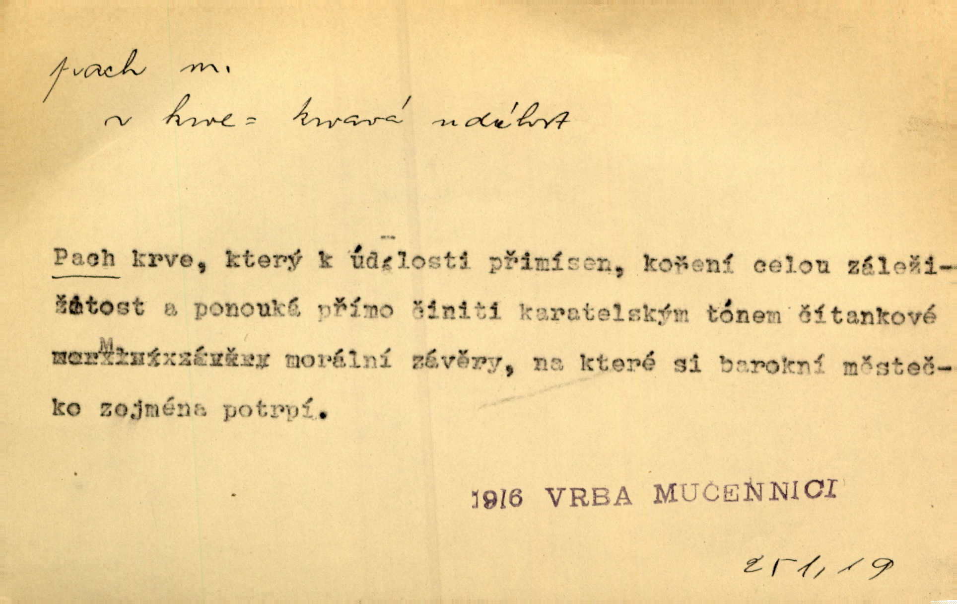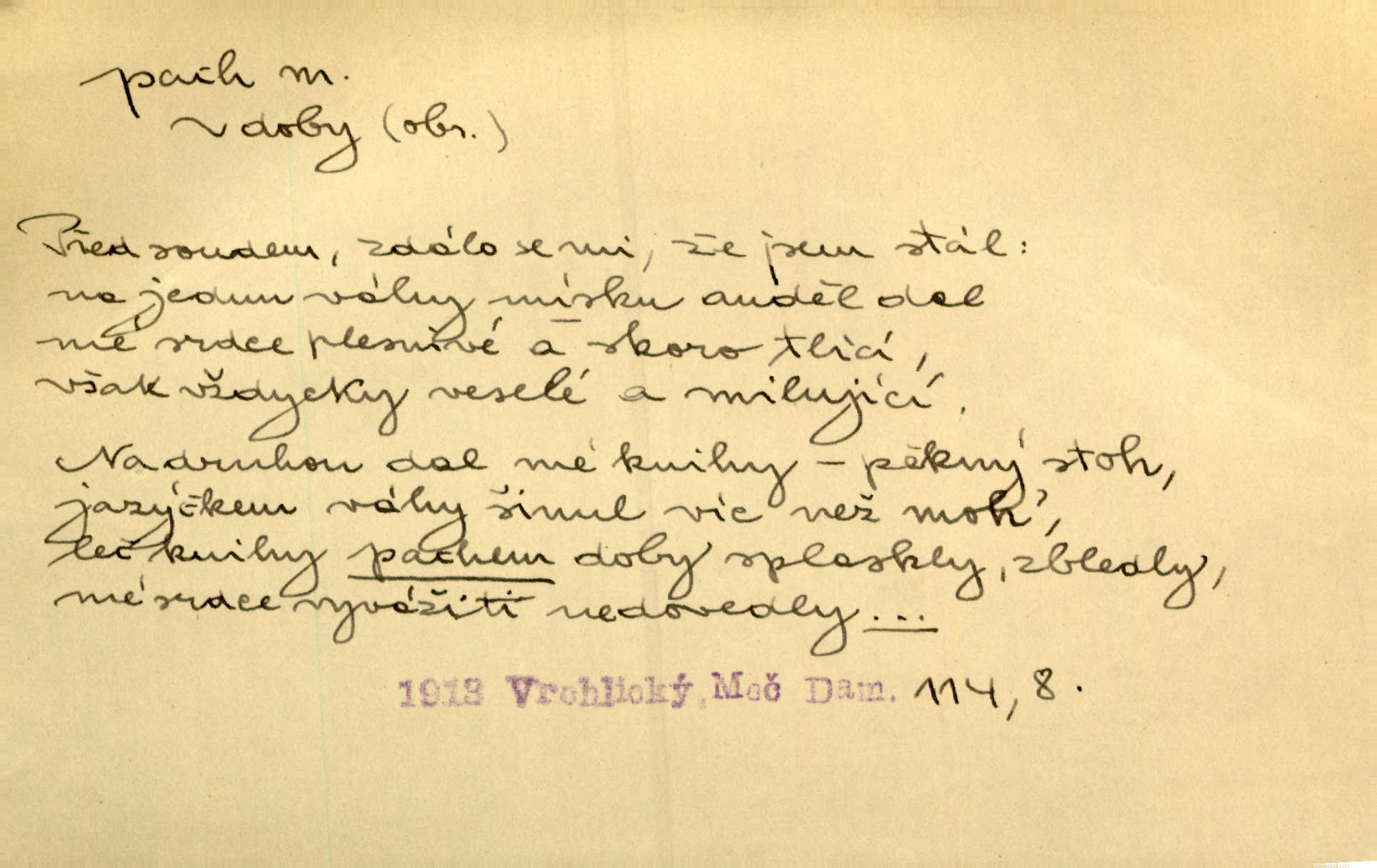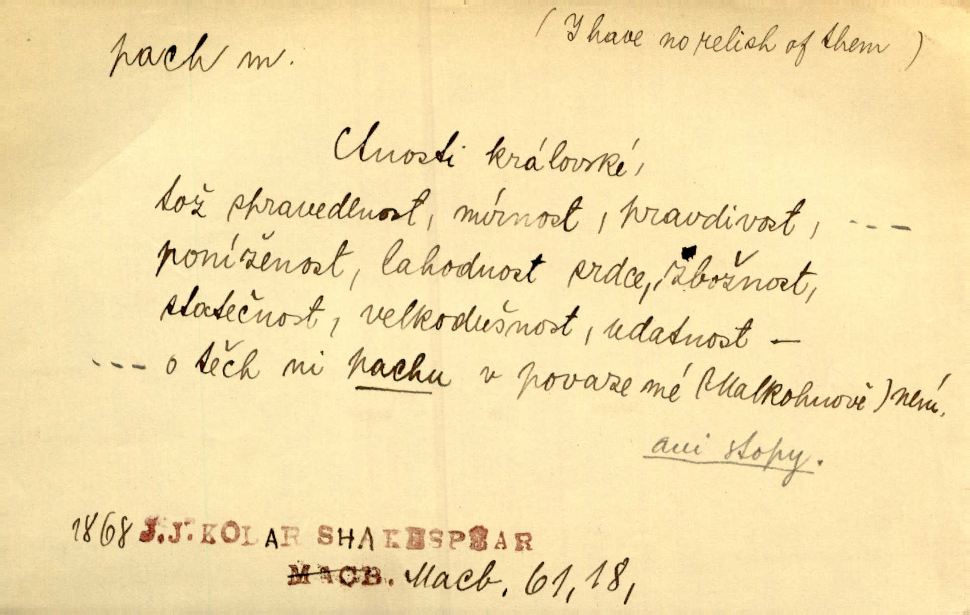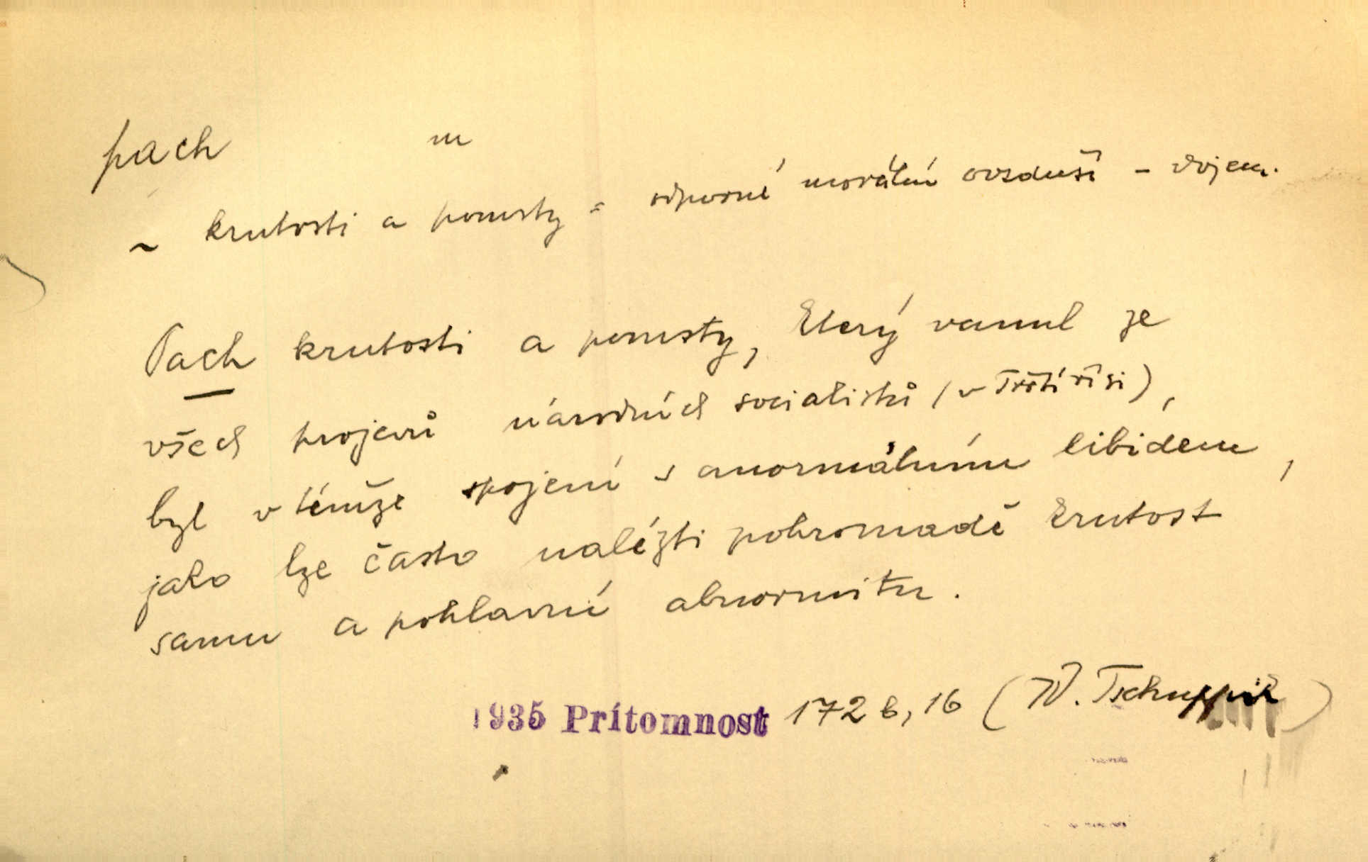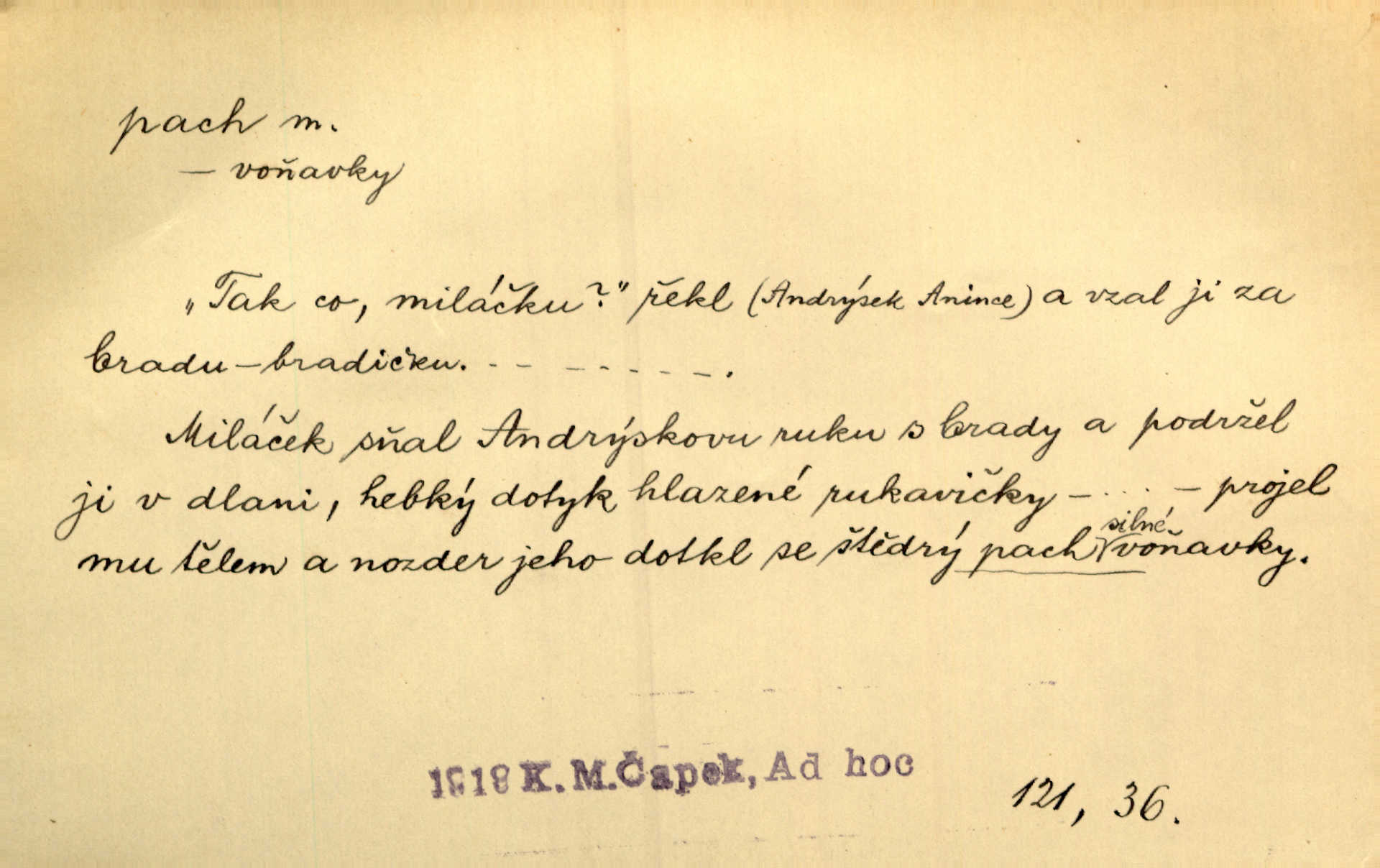 - pach, -u m. čichový vjem libý i nelibý, vůně n. zápach. Pach květů s chladem snoubil se. Zey. Vzduchem vznášel se omamný pach červnové noci. K. Červ. [Růže] voněly tou neurčitou vůní, jež se slévá z tisíců pachů. Theer. Z kuchyně už zaváněla káva a mdlý, sladký pach vanilky. Herrm. Otevřenými dveřmi [hospůdky] ho udeřil pivní a masný pach. Mart. Je [Růžena] suchá, jako vysmahlá žárem zevnitř, z podpaždí se jí dere prudký pach. Šrám. Bylo mu těžko v horkém pokoji, kde cítil pach obkladů, moče, čaje a vajec. K. Čap. Jsou záhadné pachy, záhadná záření očí, nepostižitelná fluida, která provázejí každého z nás. Kop.