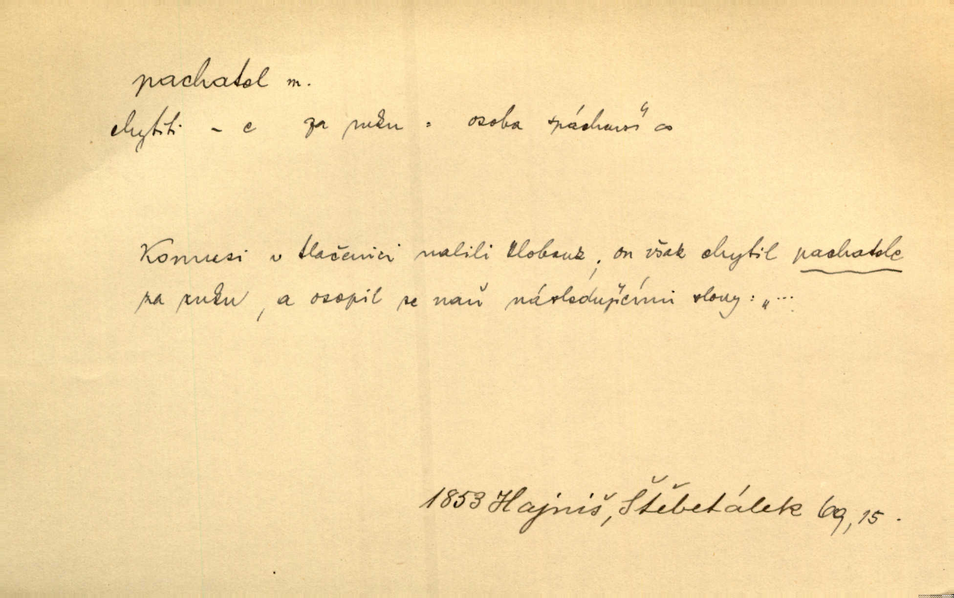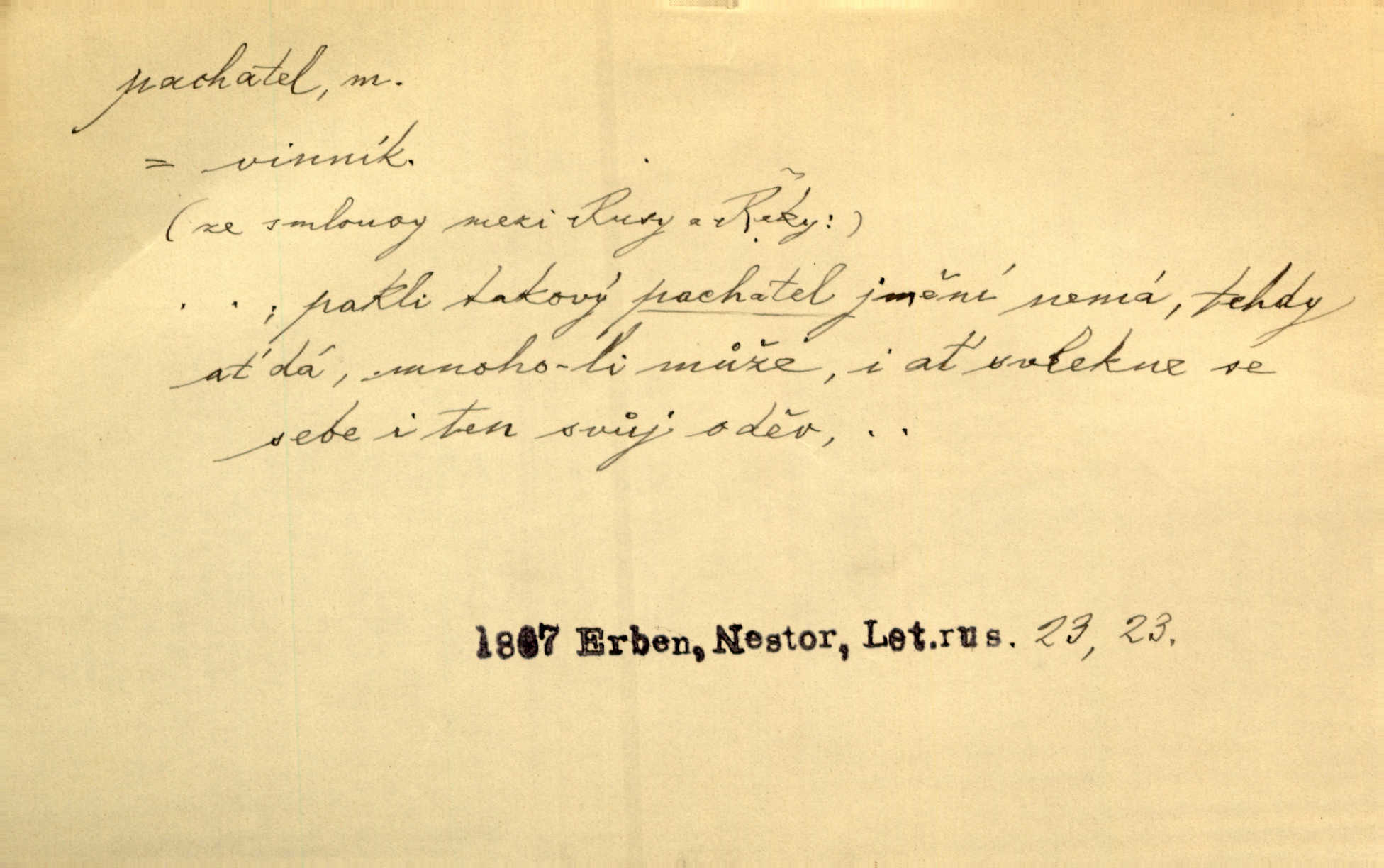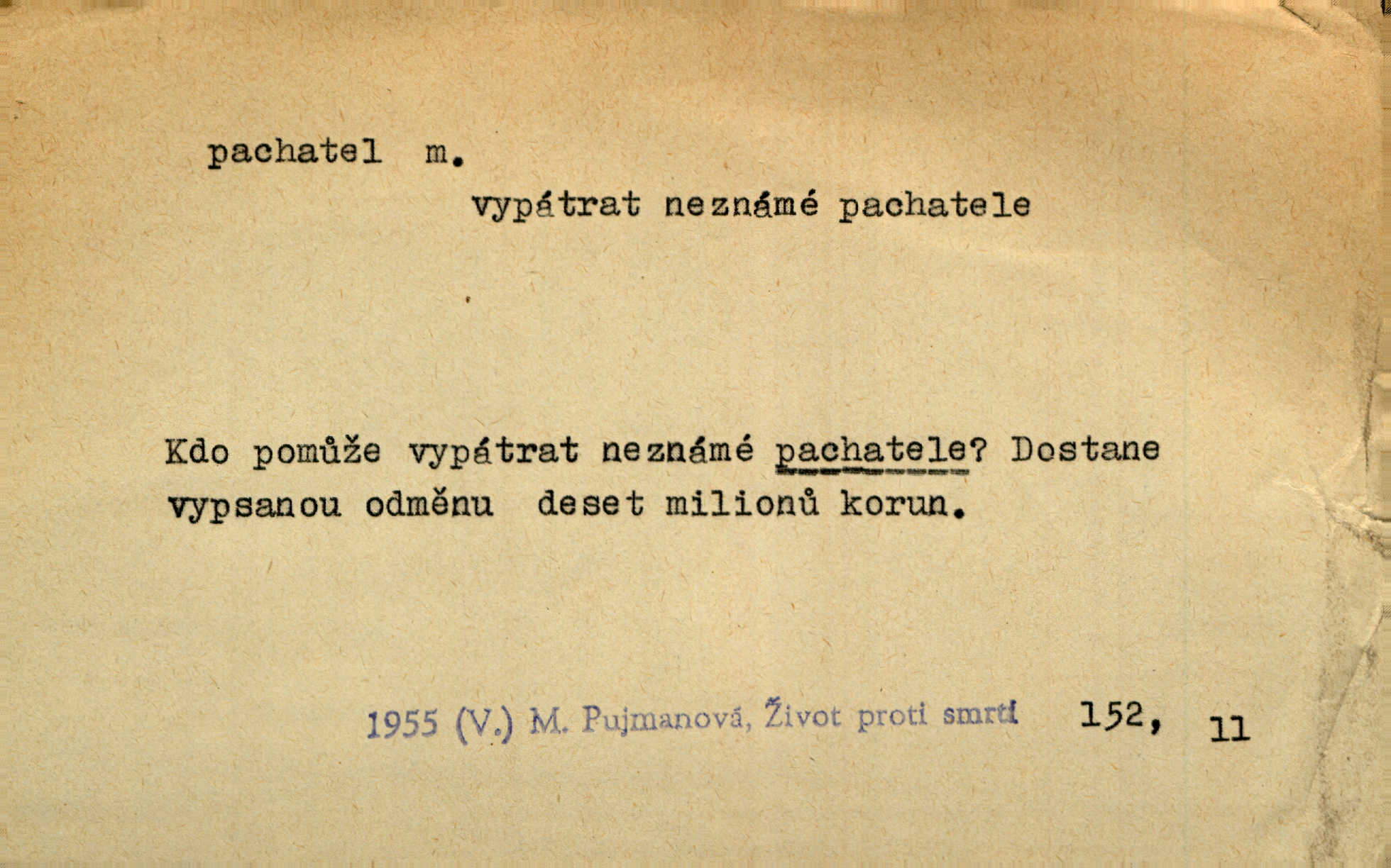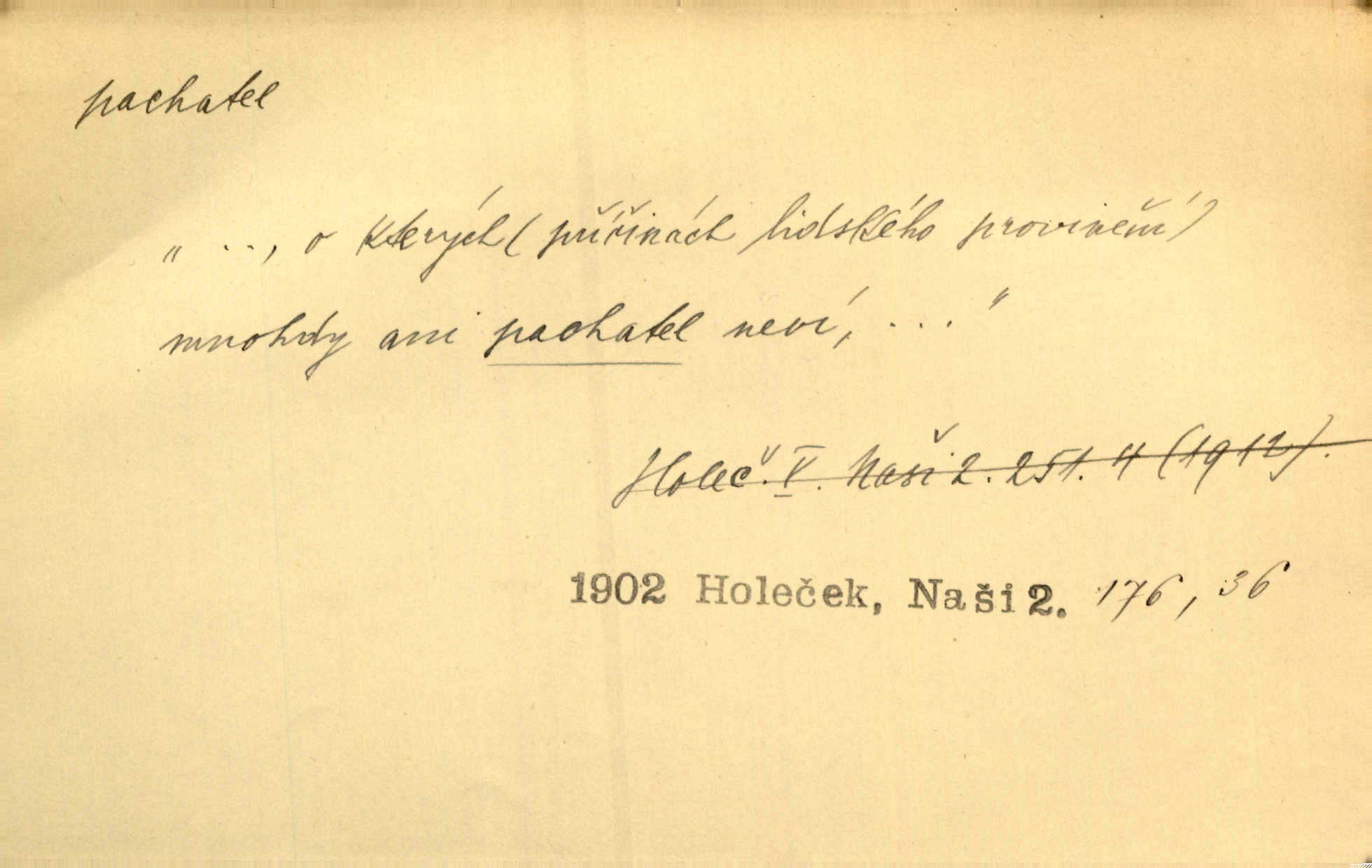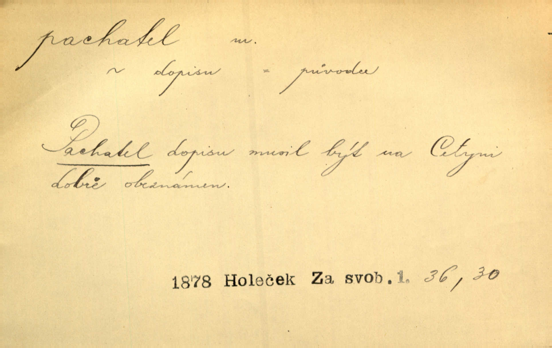 - pachatel, -e m. člověk, který něco spáchal, dopustil se zlého, nepěkného činu. Ježto rána Vénova označena jako těžké zranění, byl pachatel ponechán ve vazbě až do konfrontace s raněným. Čap. Ch. Vlastní podstata zločinu je prozatím nejasná a pachatel je také neznámý. Šrám. Ihned vysláni četníci, aby pachatele stíhali. Jir. Nejdůležitějším důkazem totožnosti obžalovaného s pachatelem vraždy bylo žalobě místní ohledání. Čap. Ch. Žert. Pan kanovník brání jesuity jen co pachatel veršů, které dle jeho náhledu nedošly dostatečného uznání. Ner. Práv. pachatel trestního činu osoba, která se něčeho dopustila.