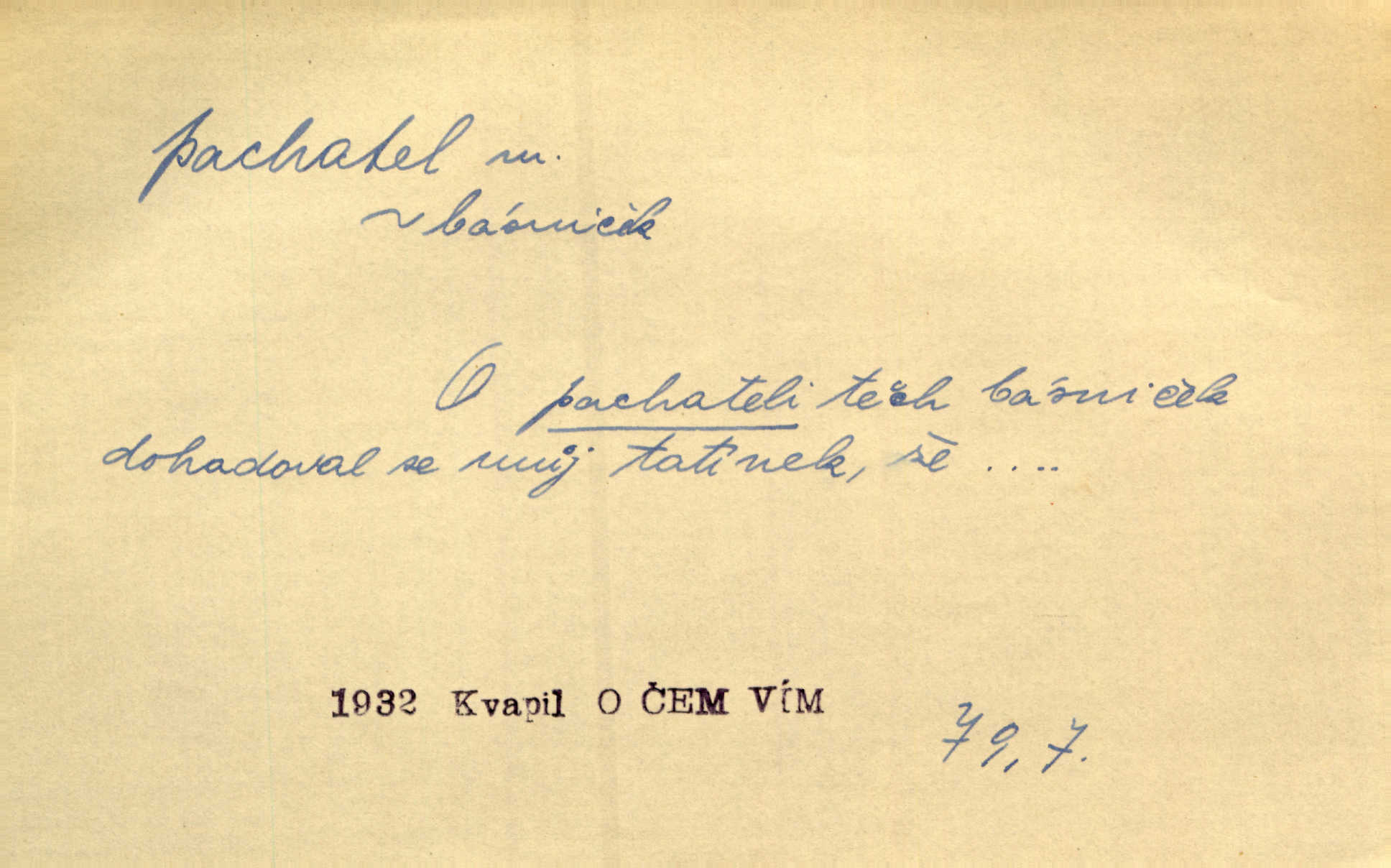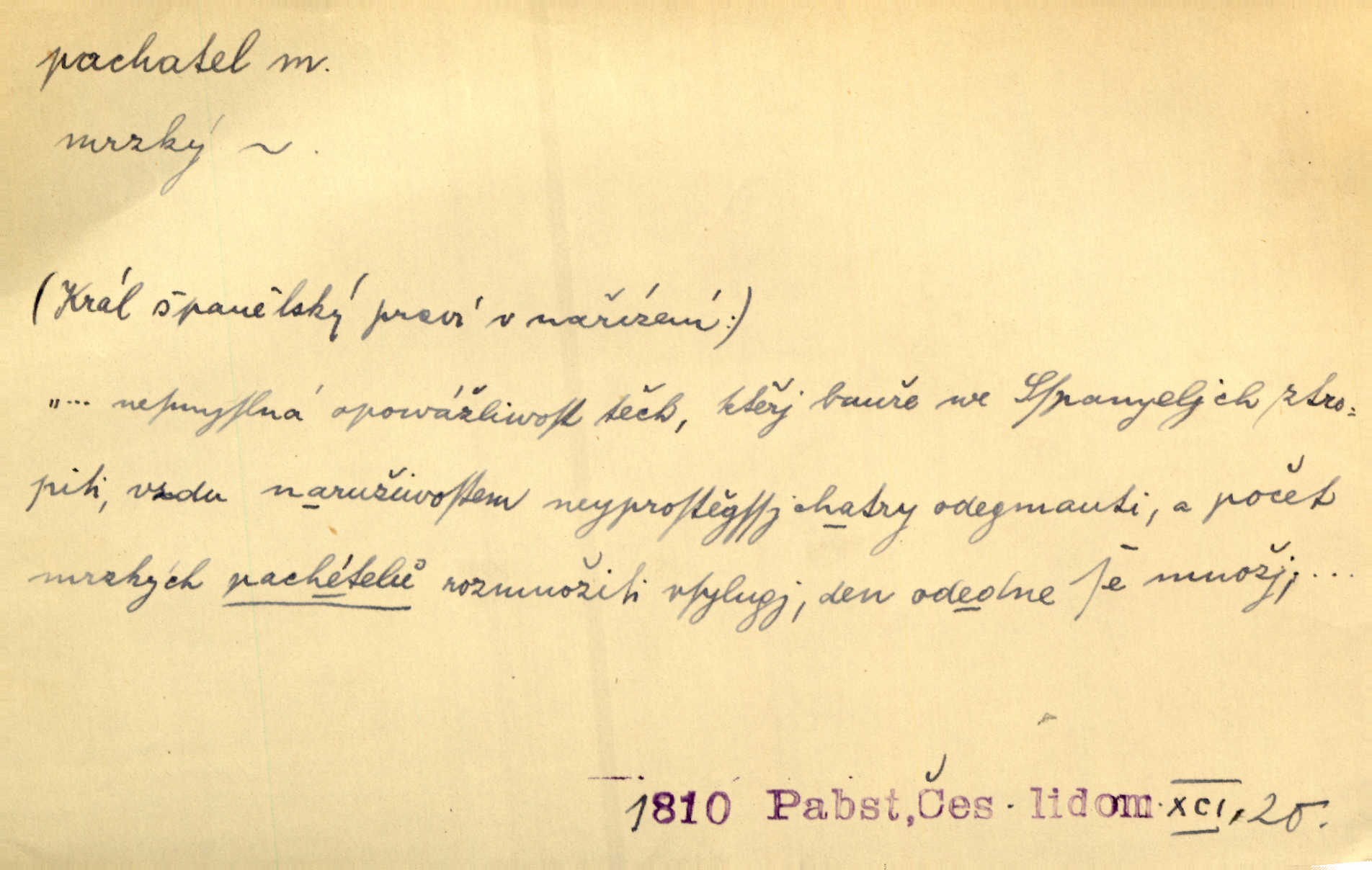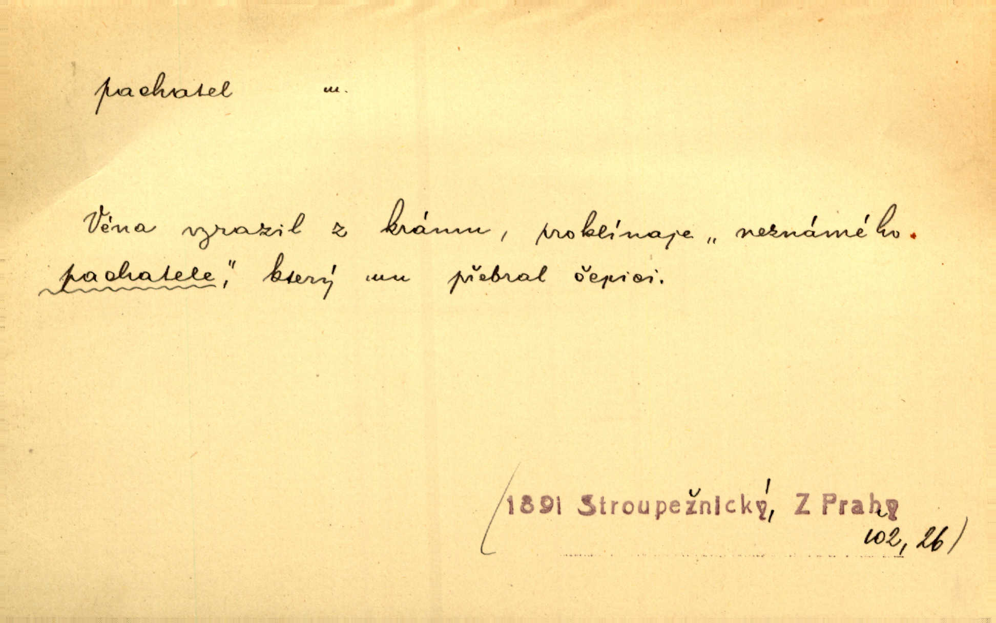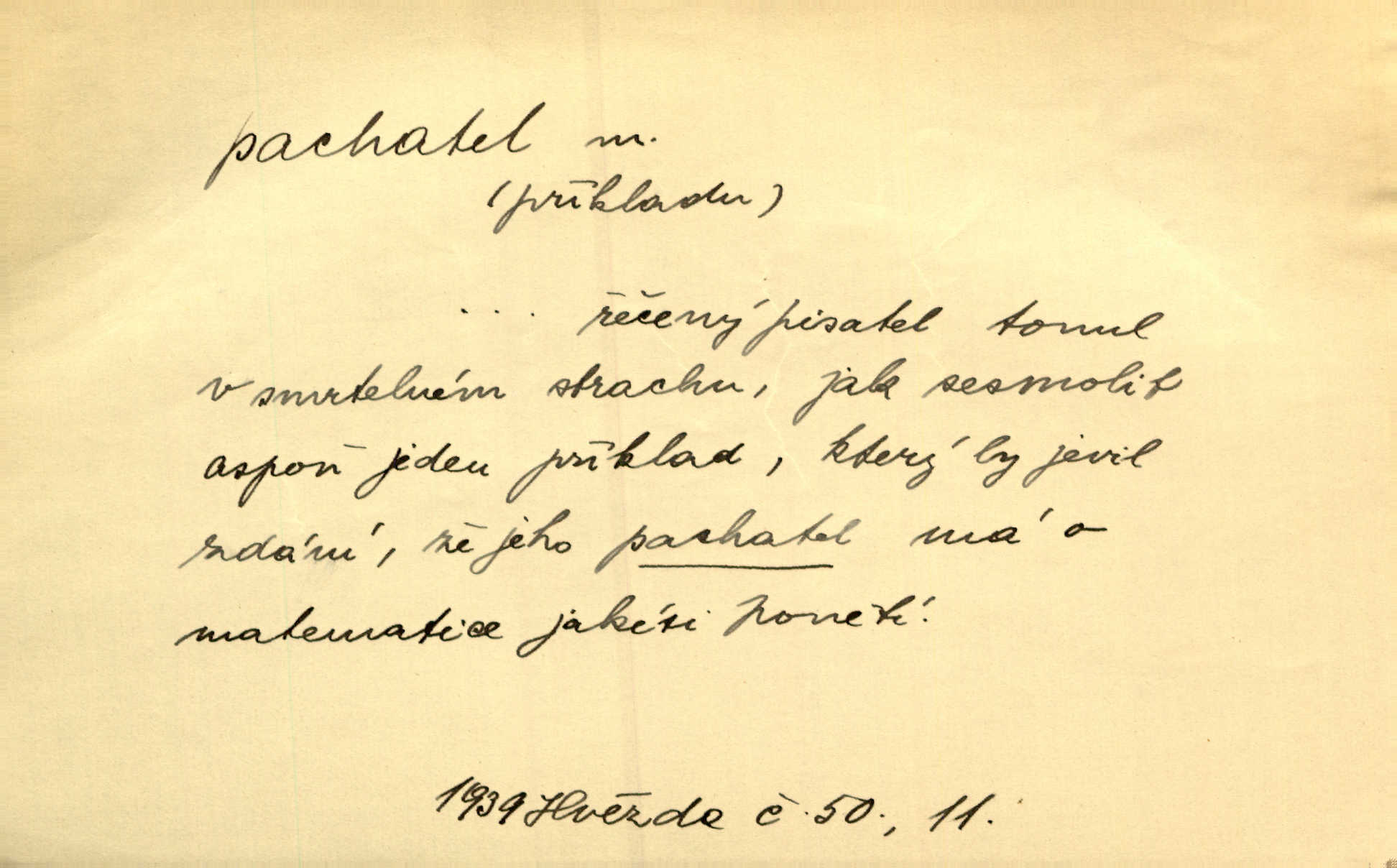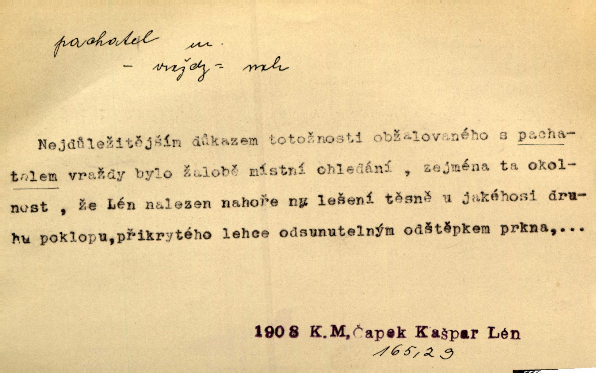 - pachatel, -e m. člověk, který něco spáchal, dopustil se zlého, nepěkného činu. Ježto rána Vénova označena jako těžké zranění, byl pachatel ponechán ve vazbě až do konfrontace s raněným. Čap. Ch. Vlastní podstata zločinu je prozatím nejasná a pachatel je také neznámý. Šrám. Ihned vysláni četníci, aby pachatele stíhali. Jir. Nejdůležitějším důkazem totožnosti obžalovaného s pachatelem vraždy bylo žalobě místní ohledání. Čap. Ch. Žert. Pan kanovník brání jesuity jen co pachatel veršů, které dle jeho náhledu nedošly dostatečného uznání. Ner. Práv. pachatel trestního činu osoba, která se něčeho dopustila.