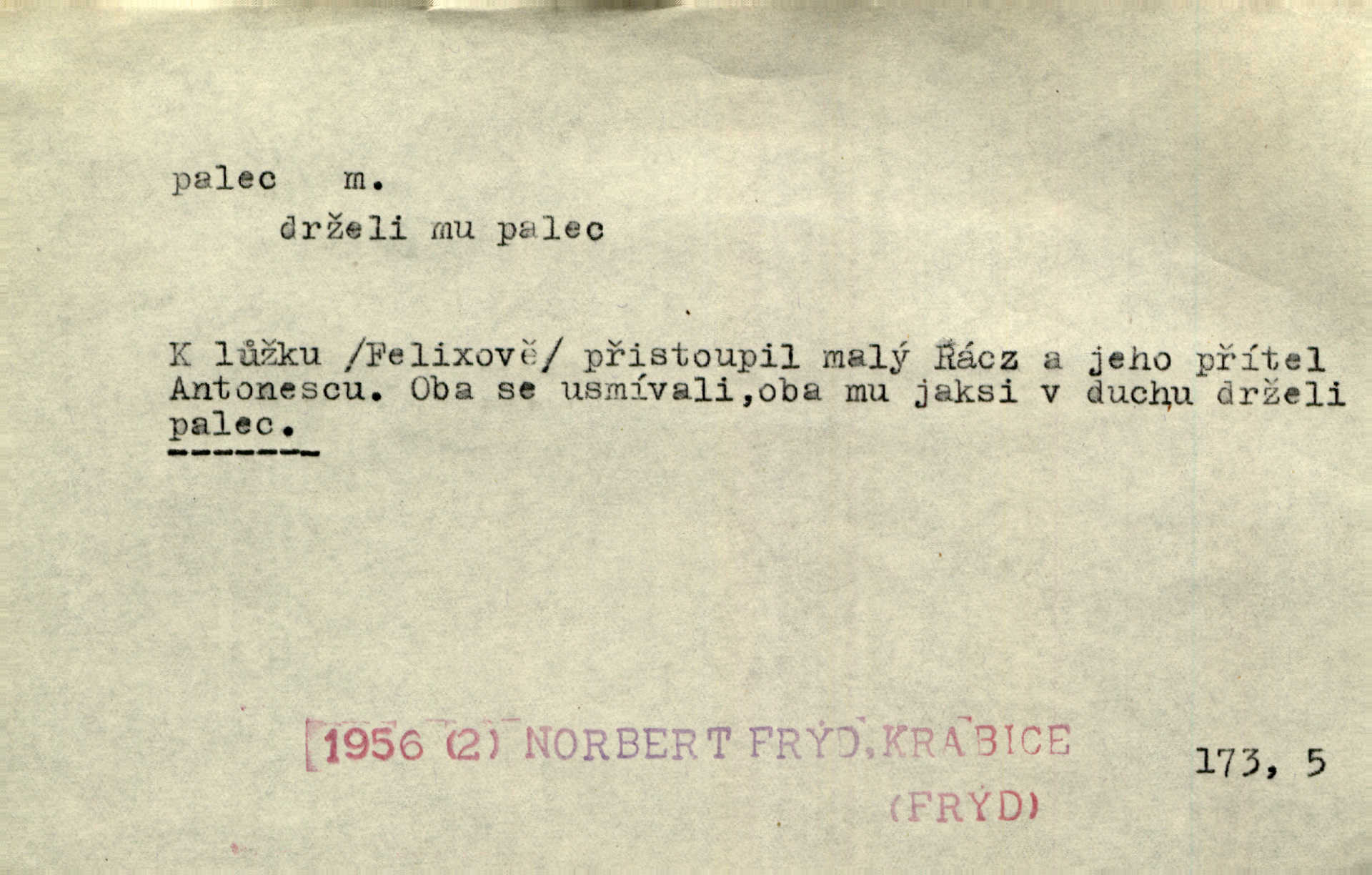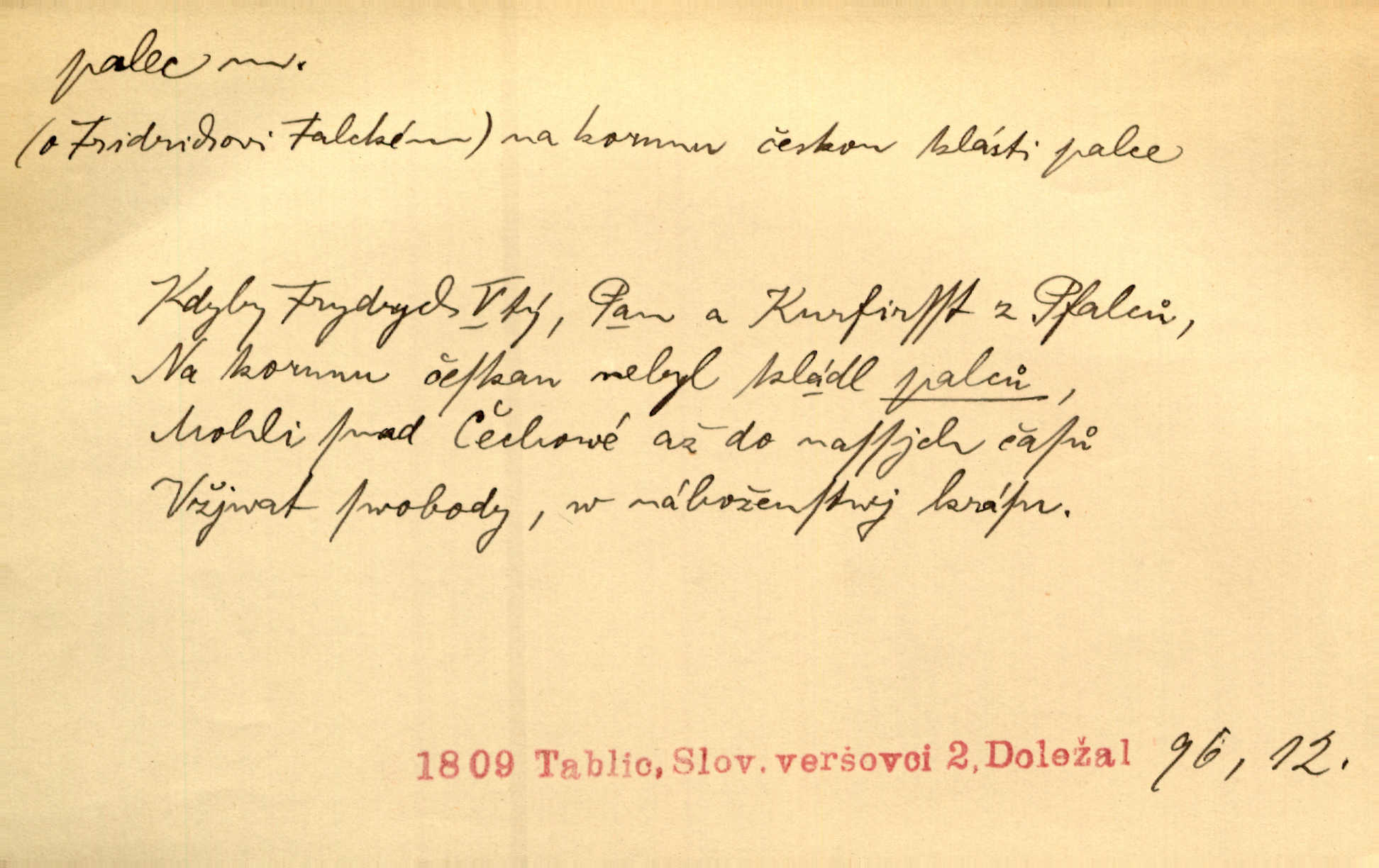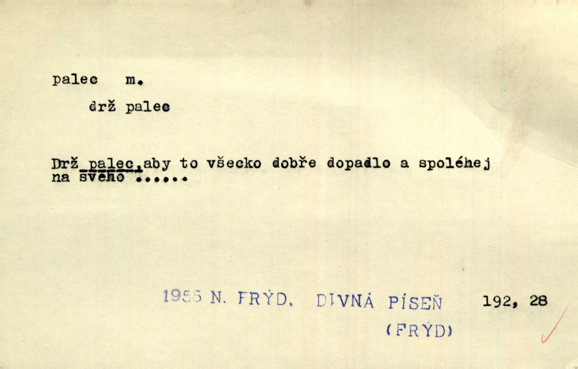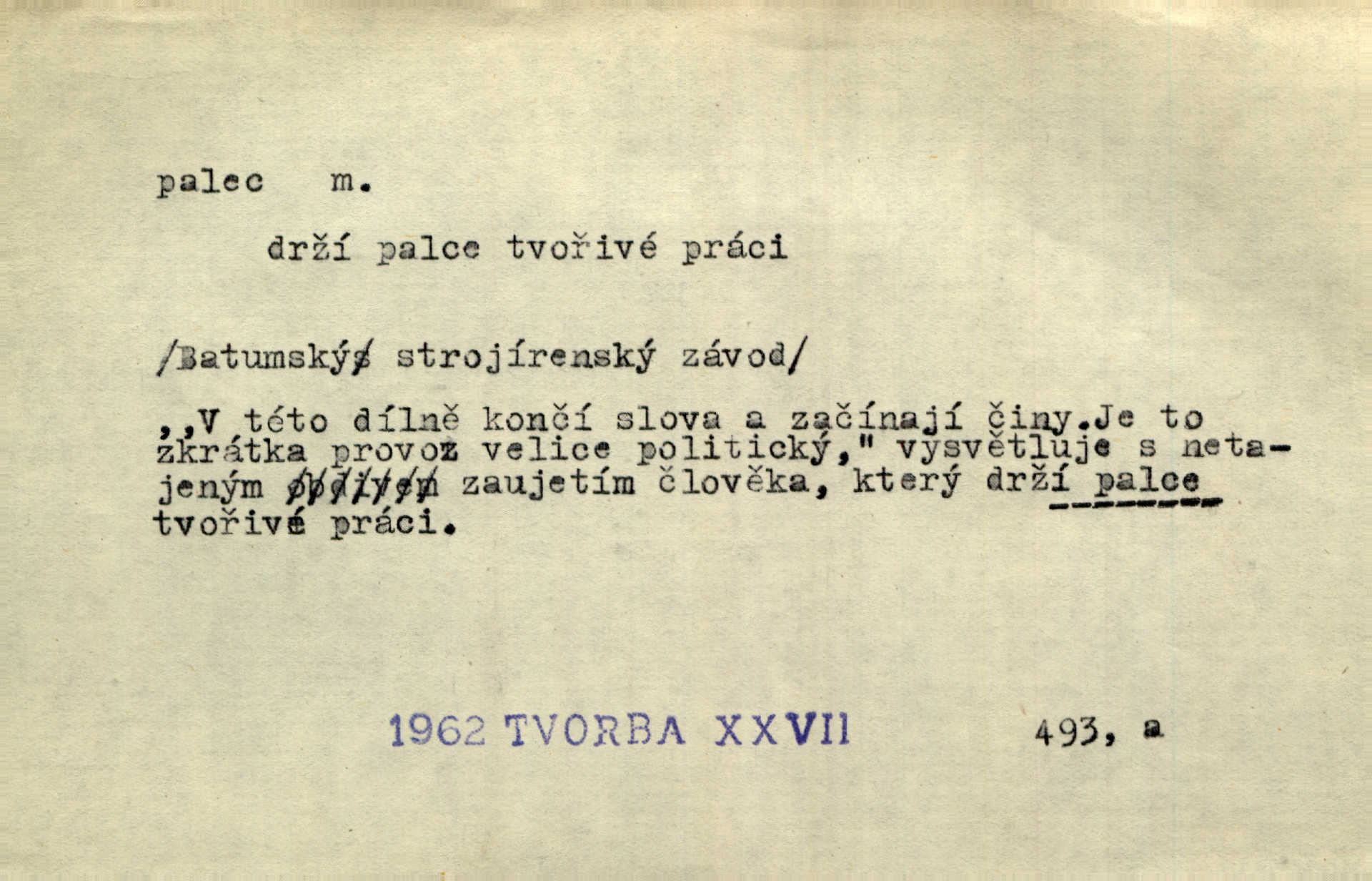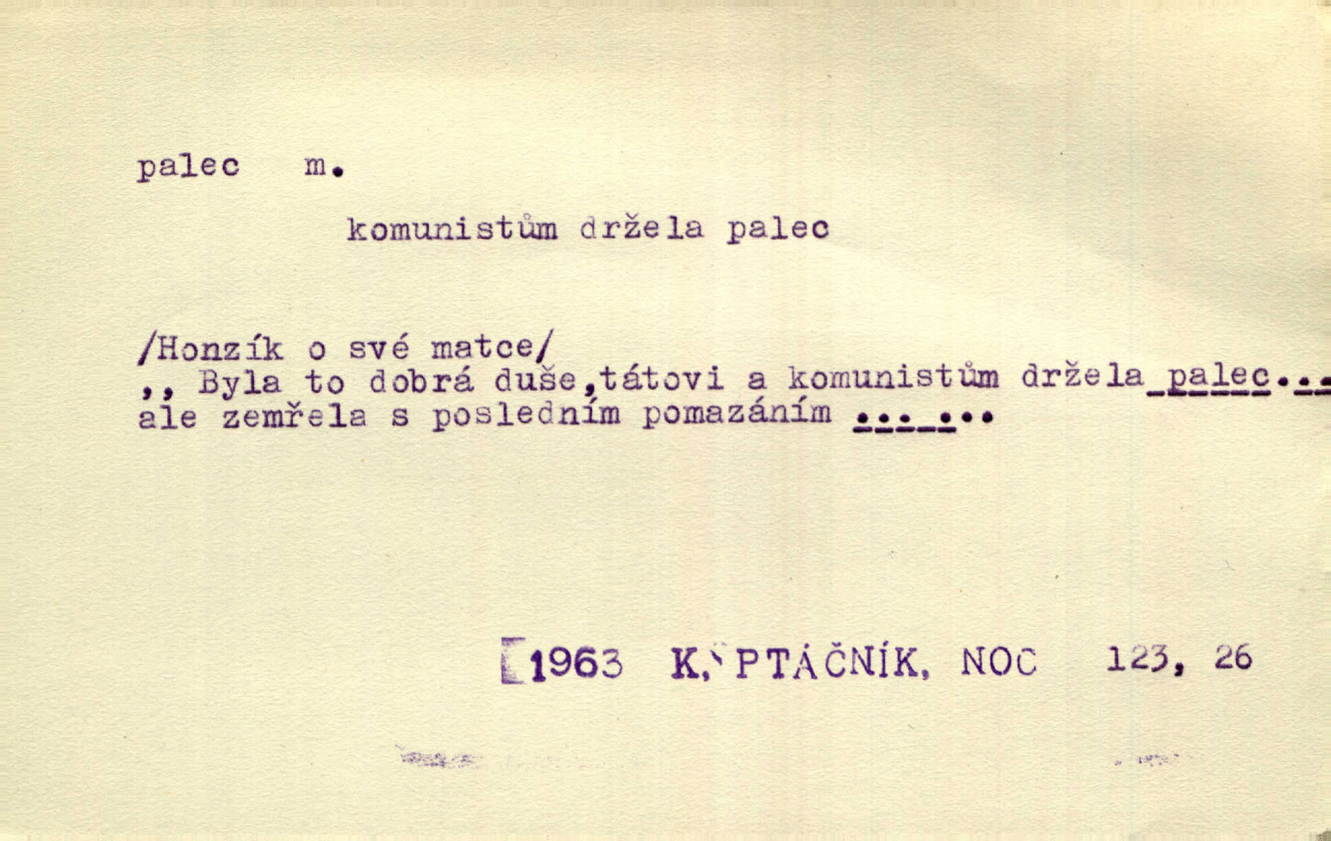 - palec, -lce m. nejsilnější prst u ruky n. nohy. [Babice] měla u pravé ruky tak široký palec, že jí celou dlaň zakrýval. Erb. Z boty vykukoval palec. Paleč. Chlapec jako palec utíkal Běláčkovi naproti maličký. Baar. Ještě dnes večer učiním mu nabídnutí k sňatku, strýče, a tu bych tě velice prosila, abys mi držel palec přál dobré pořízení mysle na mne! Čap. Ch. Nejen rakouské soudy, také státní zastupitelstvo drželo vždy policii a policajtům palec bylo jim příznivé. Herrm. Lidé by sice všichni rádi měli dobrou vládu, malé daně, spravedlivost, ale ani palcem k dosažení všeho toho hnouti nechtějí nijak se přičiniti. Havl. Víš, že ti pan Měřička skoupil včera dluhy? Víte, hoši, aby ho lepší dostal pod palec do své moci, aby ho ovládl. Šlej. K úřadům se chodilo odjakživa kuchyní do kanceláře a také sládek Krocín podmazával pánům palce podplácel je. Čečetka. Vrchní dostal asi hodně pod palec, že to [prodej panství] tak smluvil proti své vrchnosti hodný úplatek. Jir. Už jsem si včera vzpomněla, že bych pod palcem měla pro vás do Hor poslati tajně, skrytě. Šmil. [Dohazovač] vsadil všechno na kartu s Hornychem. Pod palcem měl sice také inženýrovu kartu… v záloze. Jah. D část rukavice kryjící palec. Rukavičky měly jen palce a žádných prstův. Krás. D stará délková míra, dosud běžná v anglosaských zemích, coul. Klády dvacet, čtyřiadvacet palců silné. V. Mrš. Jeník uvádí všechny granátníky své setniny jménem i jejich výšku na stopy, palce a čárky. Jir. D druh mučidla, palečnice. Španělkou, šatlavou, šibenicí, kládou a palci jí [duchovní vrchnosti] nepomůžete. Nov. D Stroj. dřevěný zub u ozubeného kola (palečného). Hosp. krátká klanice u žebřinových vozů.