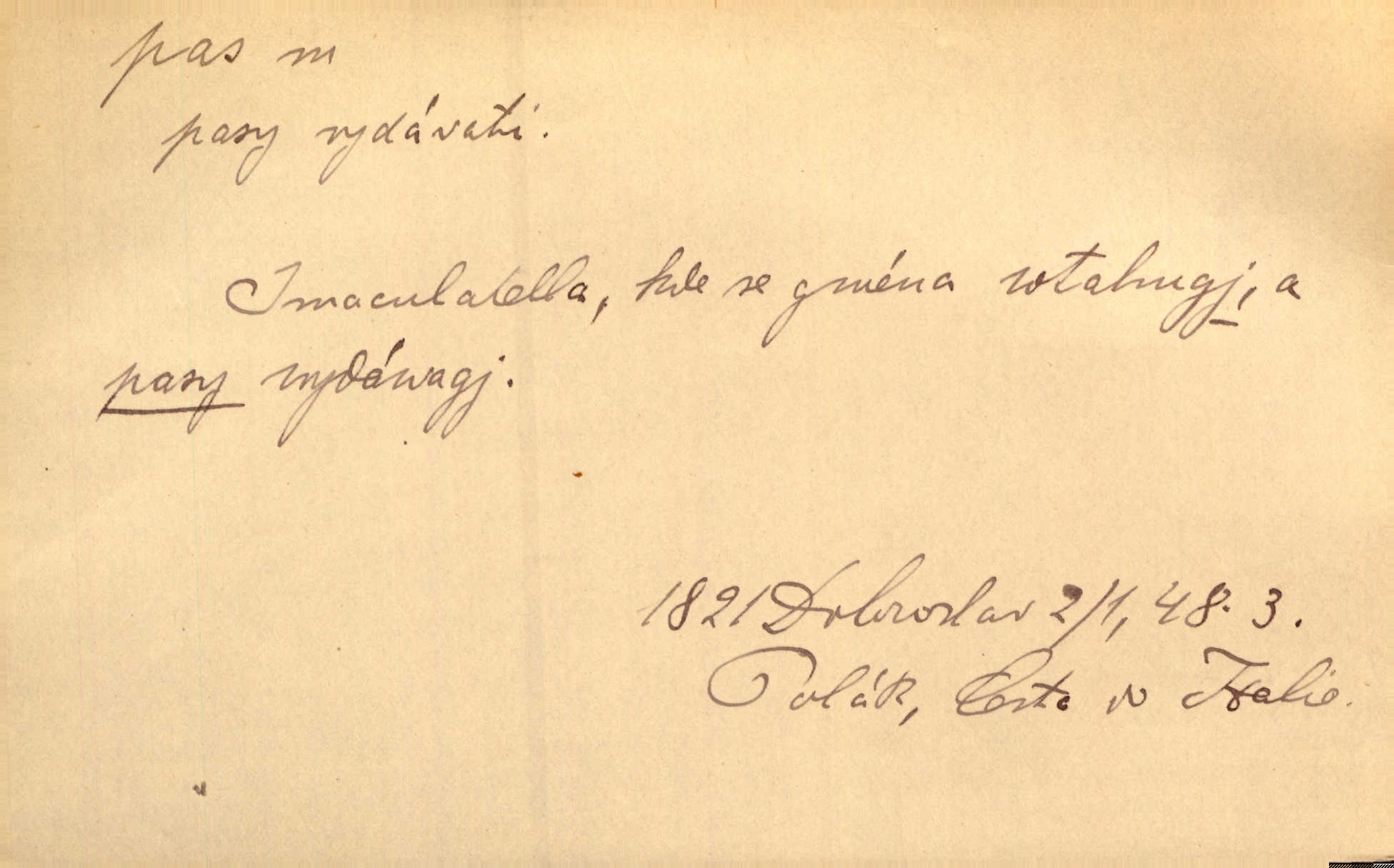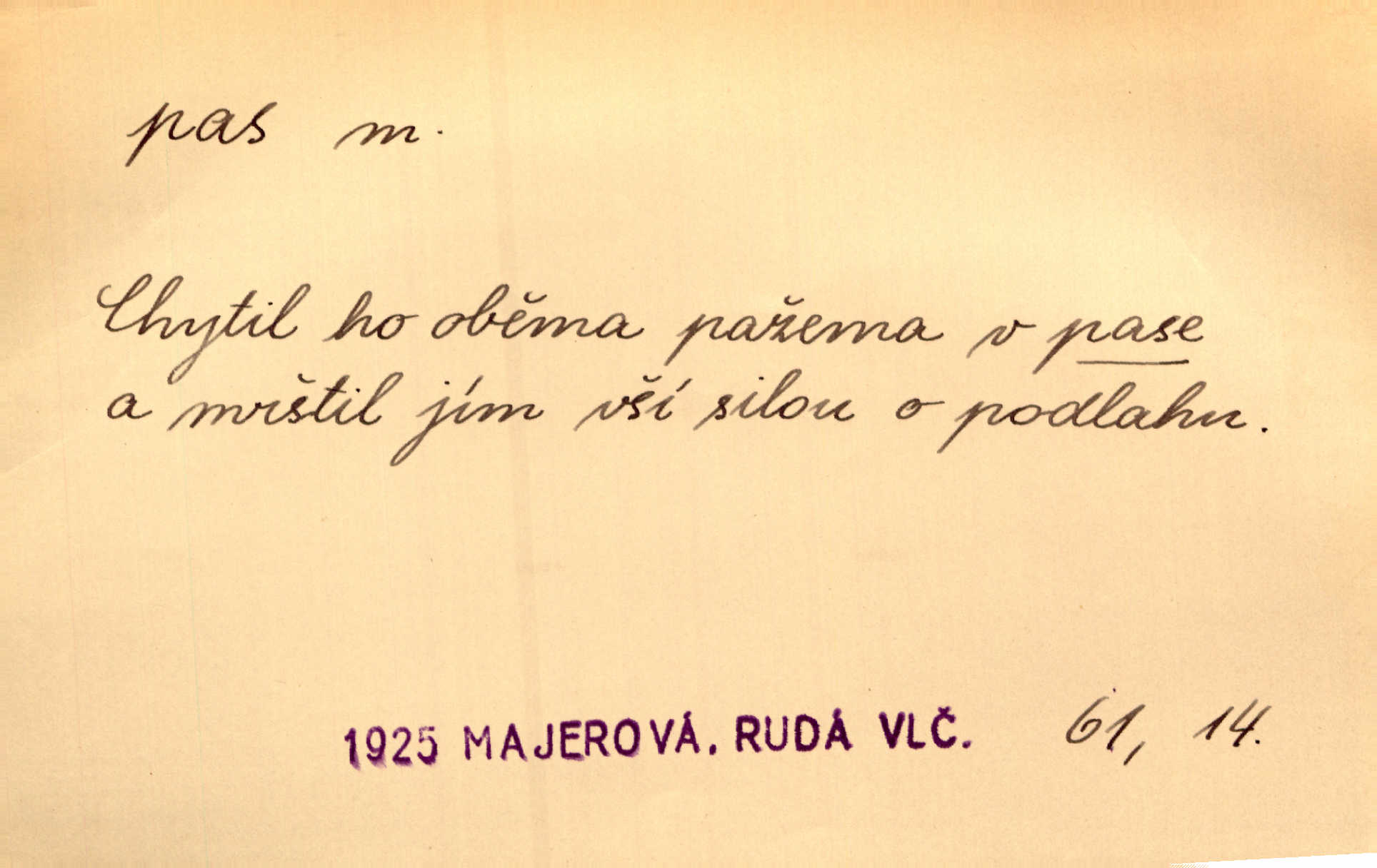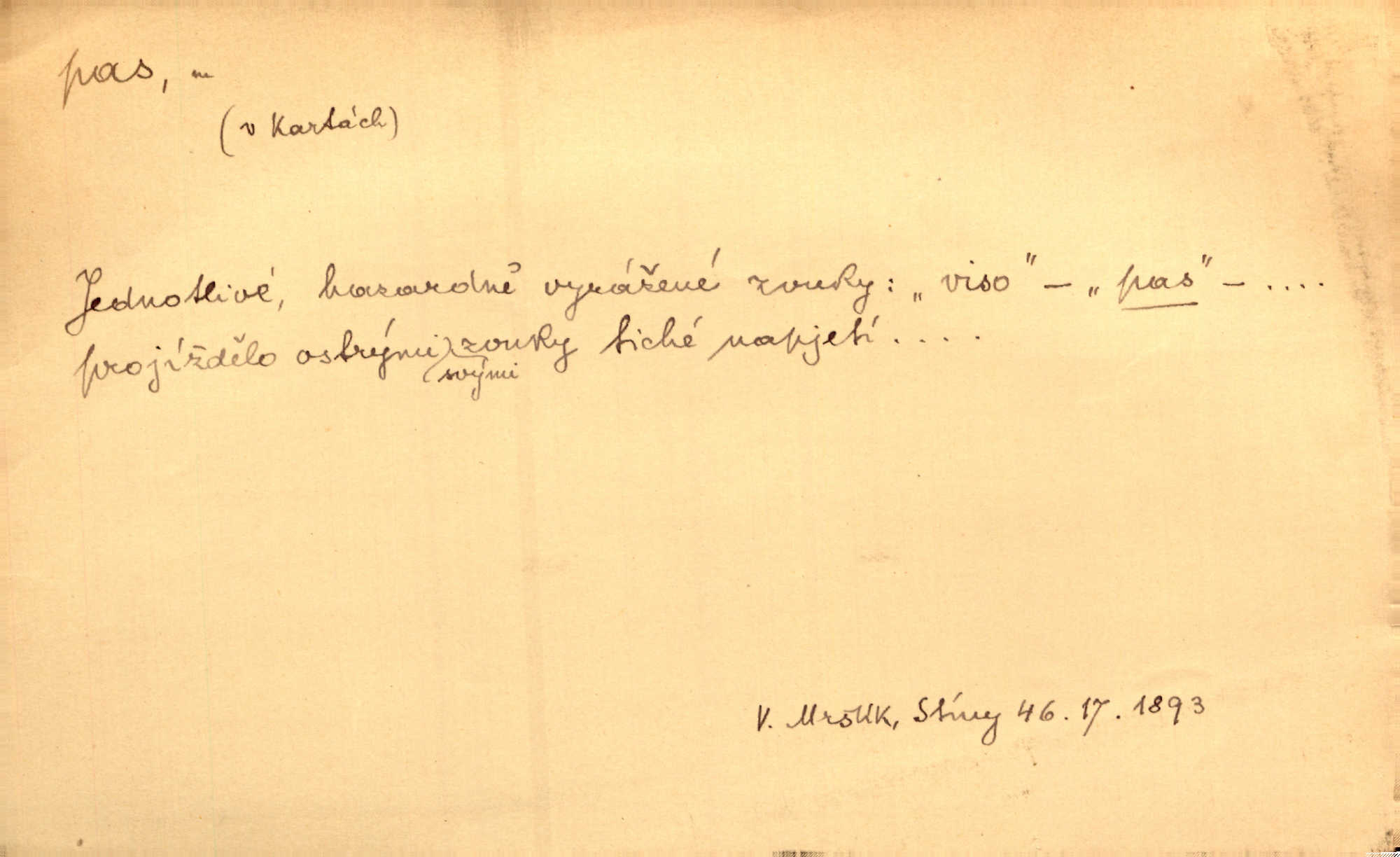 - pas (vysl. pa) n. neskl. taneční krok. Připomínala dámu, stoupající buď na koně, nebo v menuettu provádějící staromódní pas. V. Mrš.