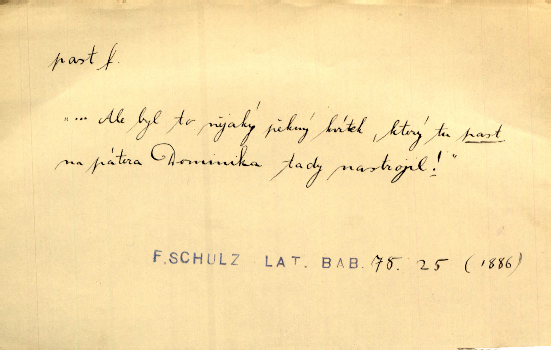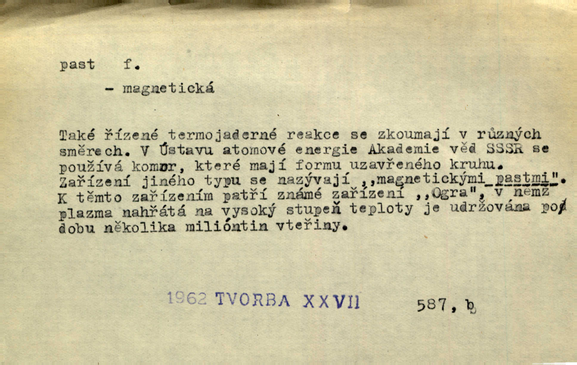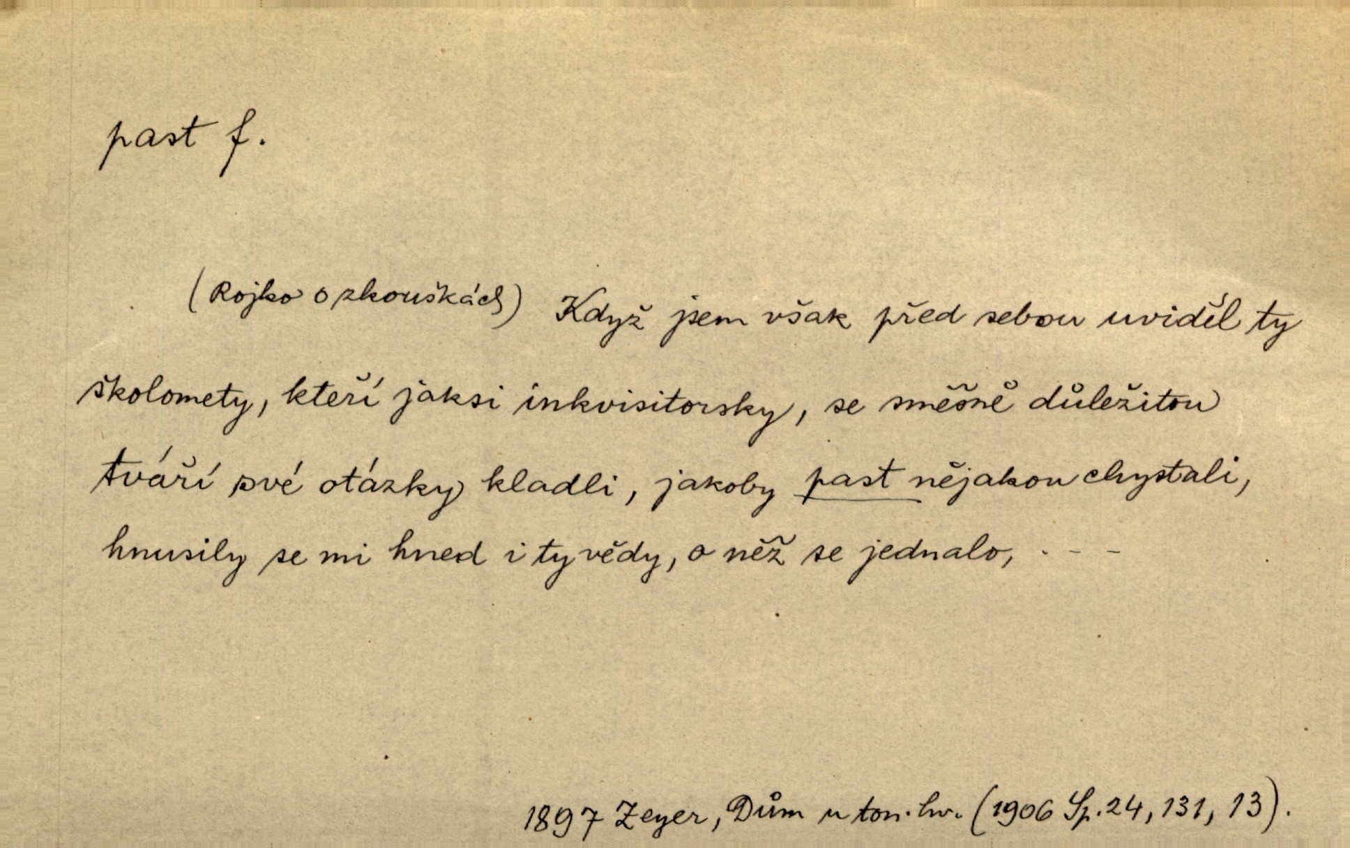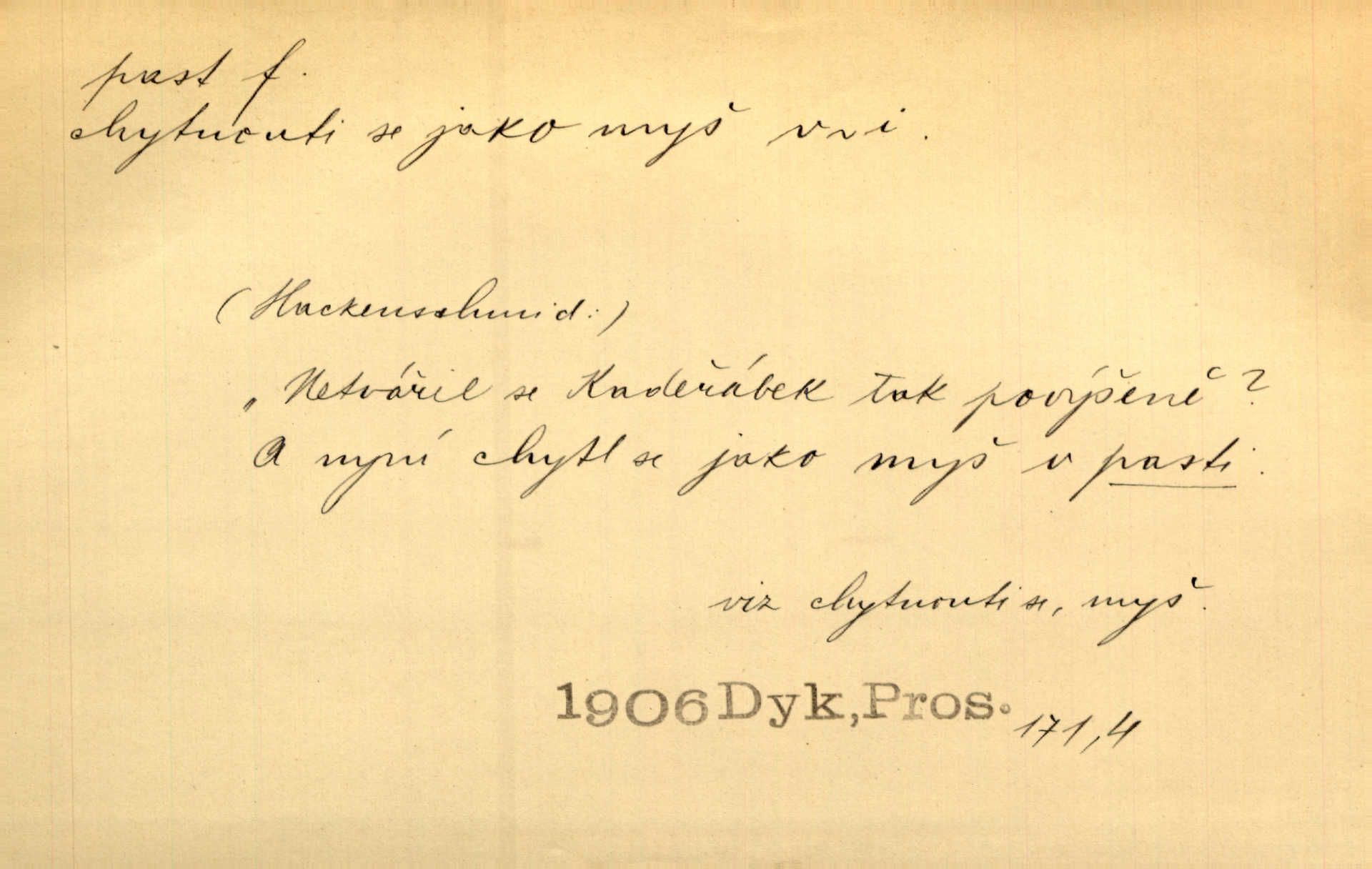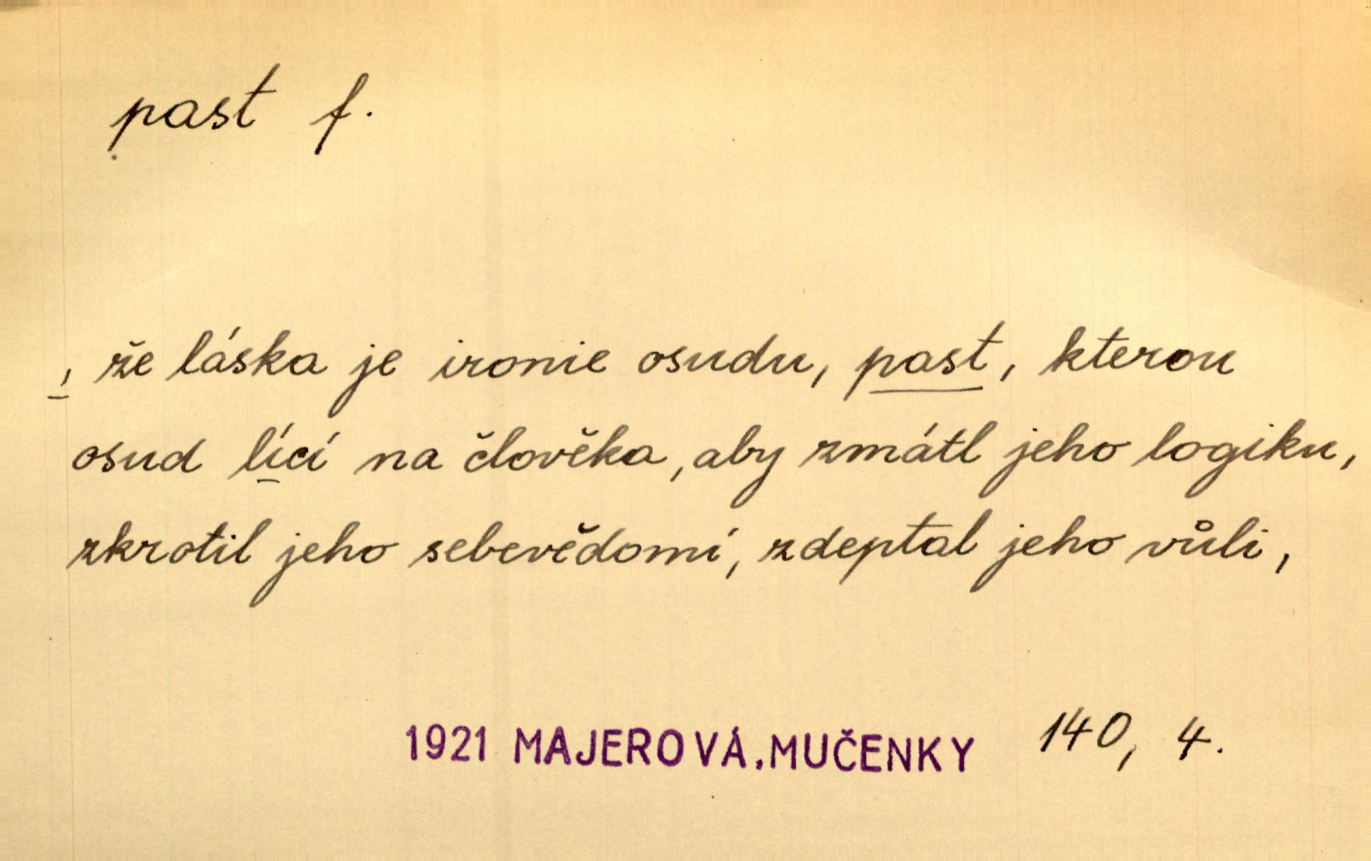 - past, -i f. zařízení k lapání škodné zvěře. Kde kdo v sousedství měl nějakou pasť na ptáky anebo na myši. Ner. Hošík vstával sahaje po své holi, na níž byly přivěšeny tři drátěné pasti. Kosm. Snad ji [lišku] chytne, já s ním byl pasti klást. Něm. Nyní chytl se [kadeřábek] jako myš v pasti podlehl nástrahám. Dyk. Světnice nízká, okénka jako do pasti malá. Rais. Huž sme kerak v pasti, vojska všudy kolem do kola obklíčeni. Jir. Hola, brachu, zle si steleš, do pasti hlavu strkáš v nebezpečí se vydáváš. Hol. Kdo se jednou v pasti přiskřípl, podruhé stěží do ní vleze byl oklamán, obelstěn. Šmil. Žert. Do té pasti manželské já nikdy nepolezu do stavu manželského. Svět. D nástraha, záloha uchystaná k zajetí, obklíčení někoho; léčka, úklad k přelstění, oklamání někoho. Jakmile tam [na Vítkově] bude naše posádka, nesmí ani jediný jezdec cestou k těm dvěma branám, a Pražané budou v pasti. Jir. Tlupa křižáků je [husity] měla v pasti. Mach. [Žižka] je sklíčen od pánů z Plzeňska a z té pasti nevyrazí. Jir. Již jsme je [podloudníky] měli zcela v pasti měli chyceny. Mož. Vida, že jest v pasti, dal se do běhu nebezpečně obklíčen. Prav. Byl to nějaký pěkný kvítek, který tu past na pátera Dominika nastrojil. Schulz. Jak jen je to možno, že jsem toho Bakulu nepronikl a vlezl mu do pasti. Hol. Strojí [intelekt] slovní pasti, aby vytvořil paradoxní slovní situace. K. Čap.
