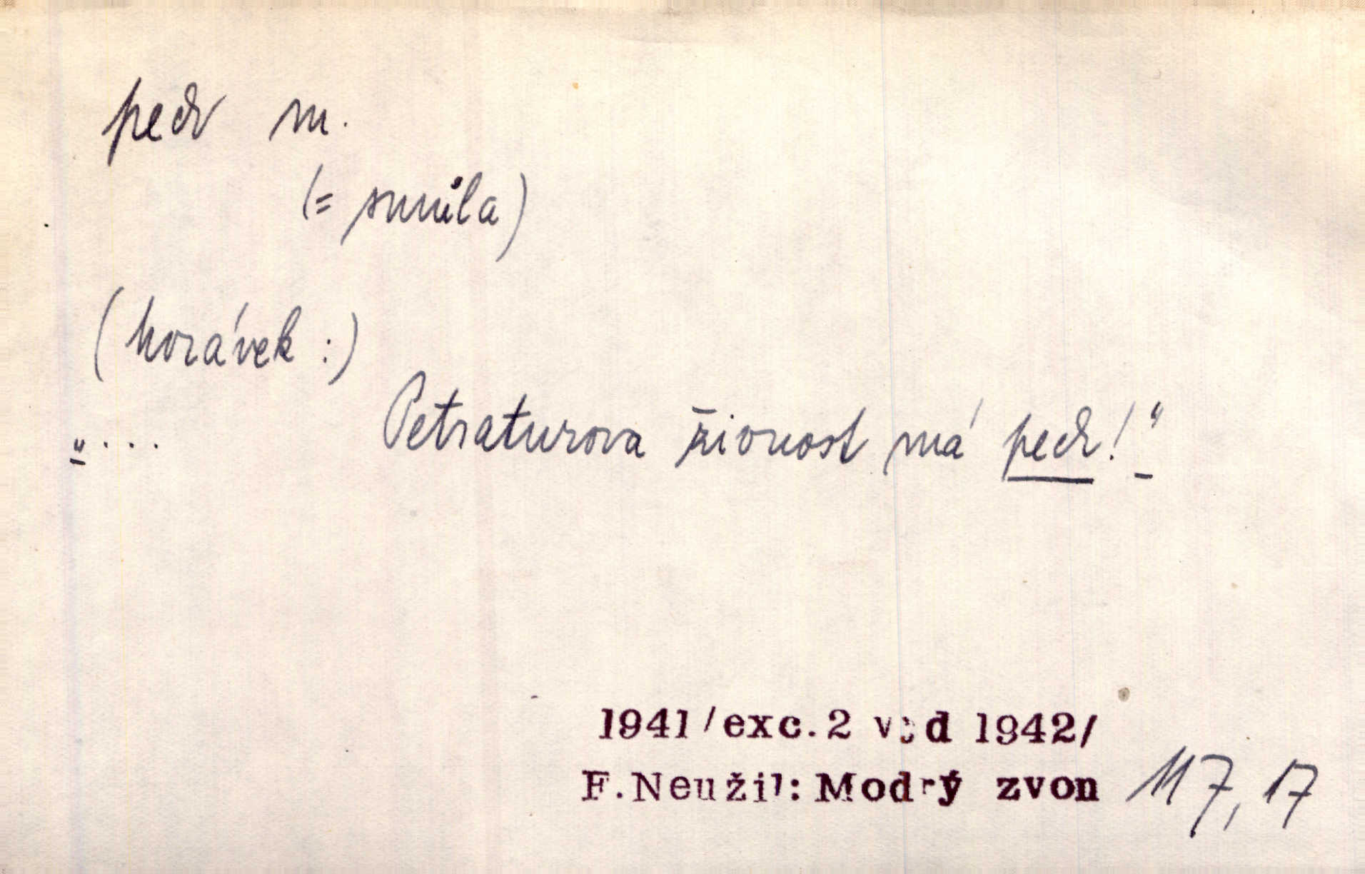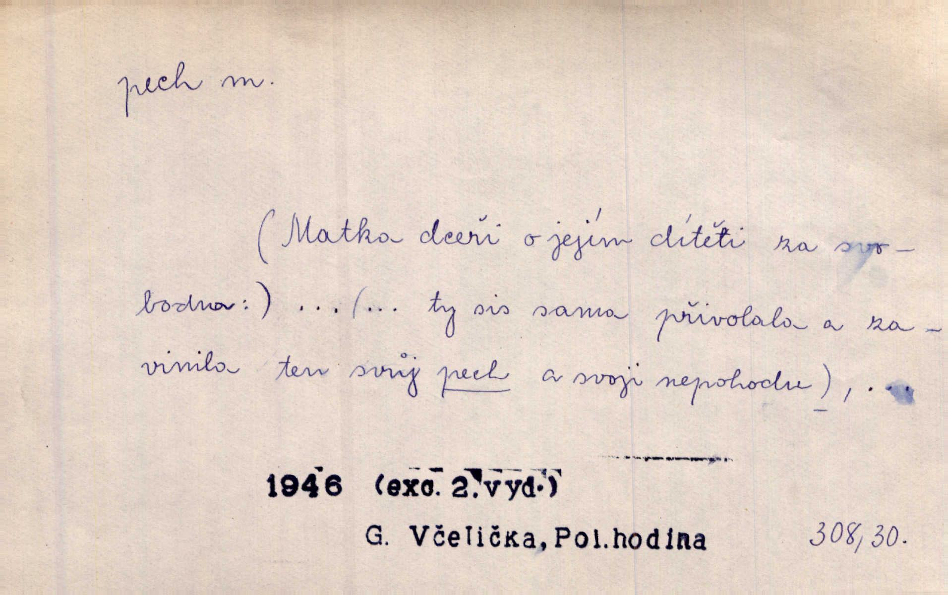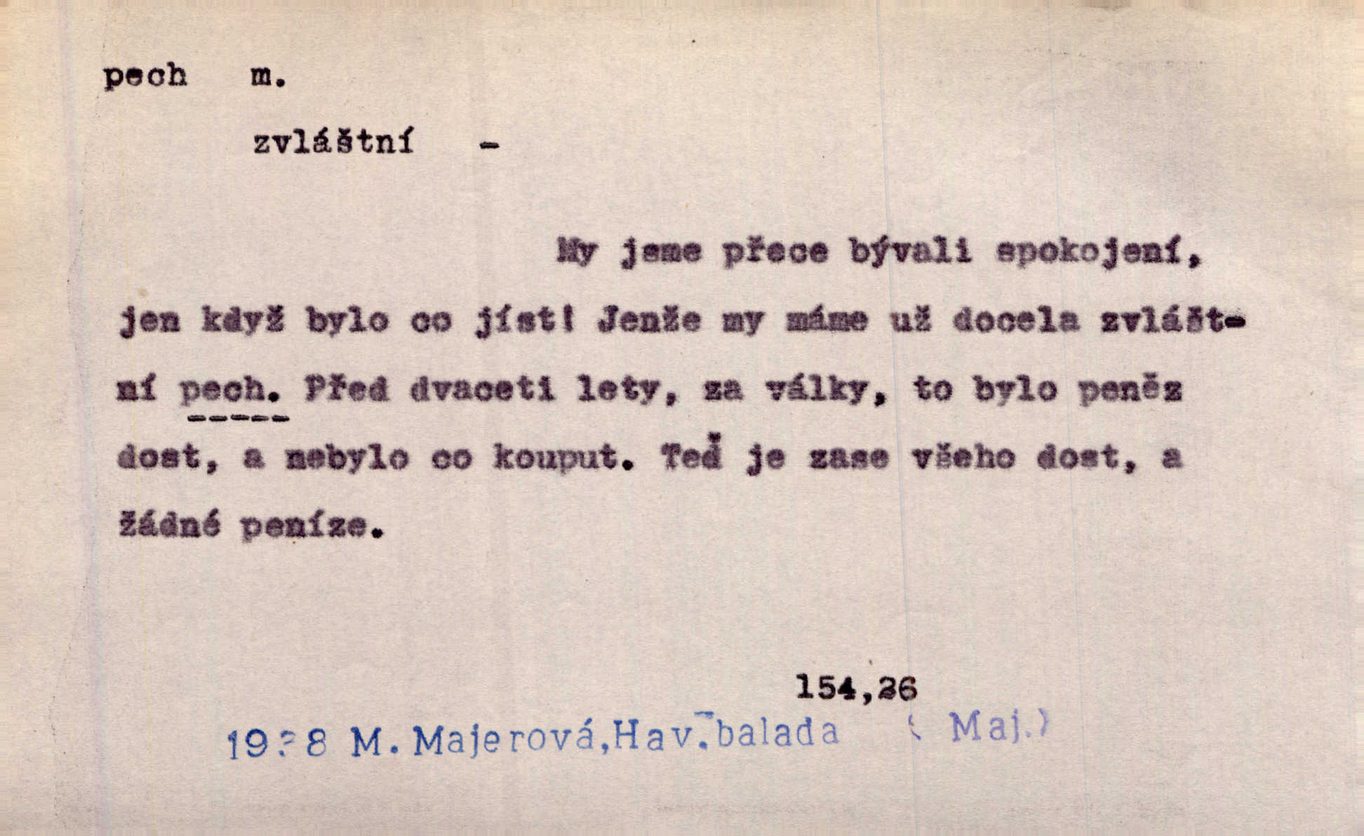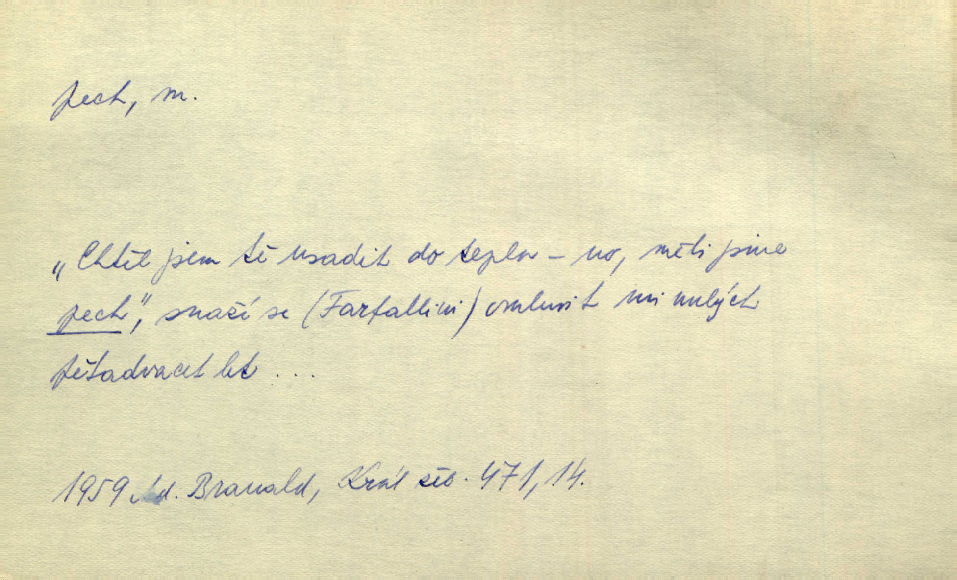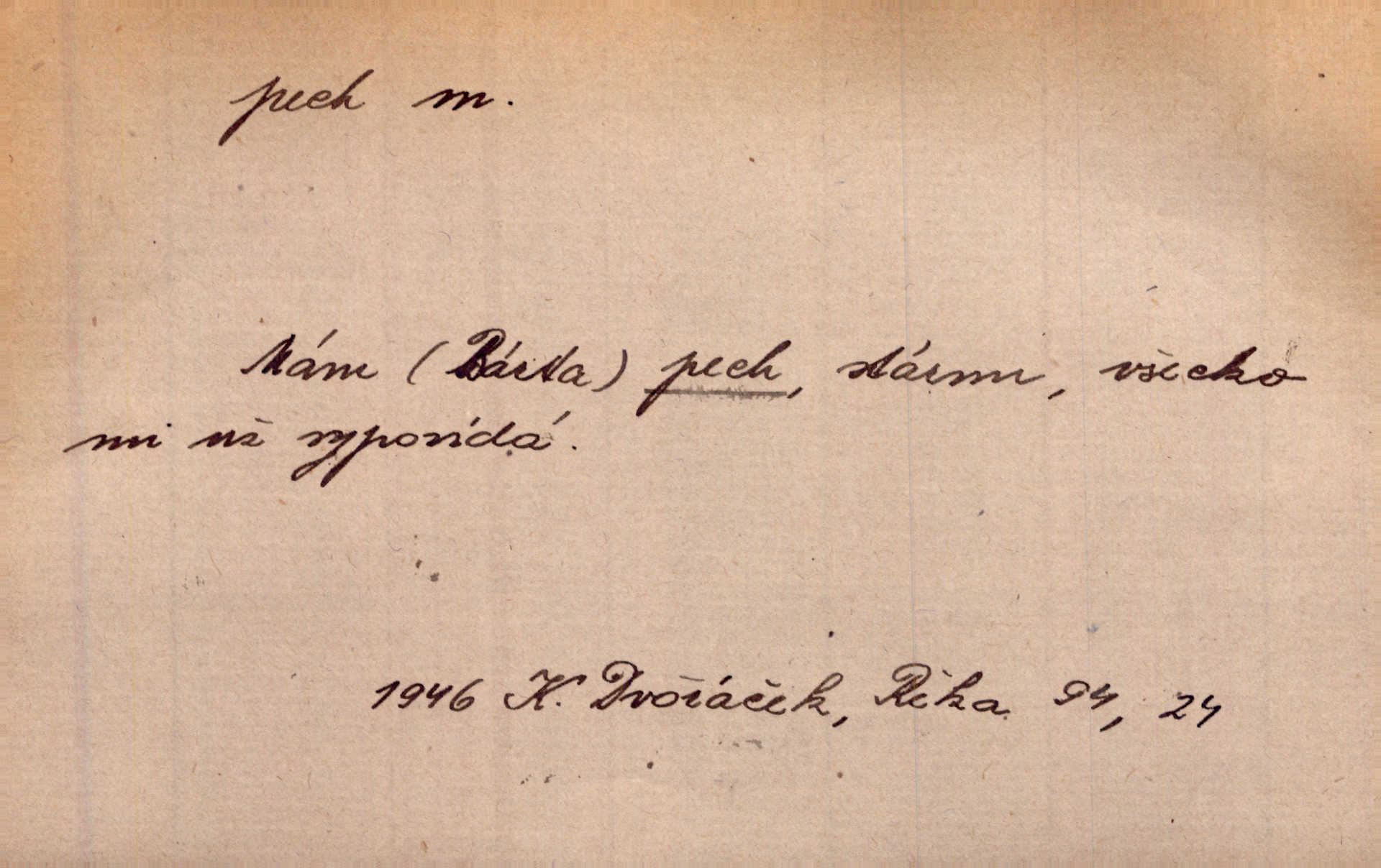 - pech, -u m. lid. nezdar, smůla. Osud tentokrát Rudlovi přál a příslovečný „pech“ se ho pustil. Böhn. Mám zatracenej pech v svým životě! Zaor. Ten [první hoch] štěstí měl, ten [druhý] pech. Dyk.