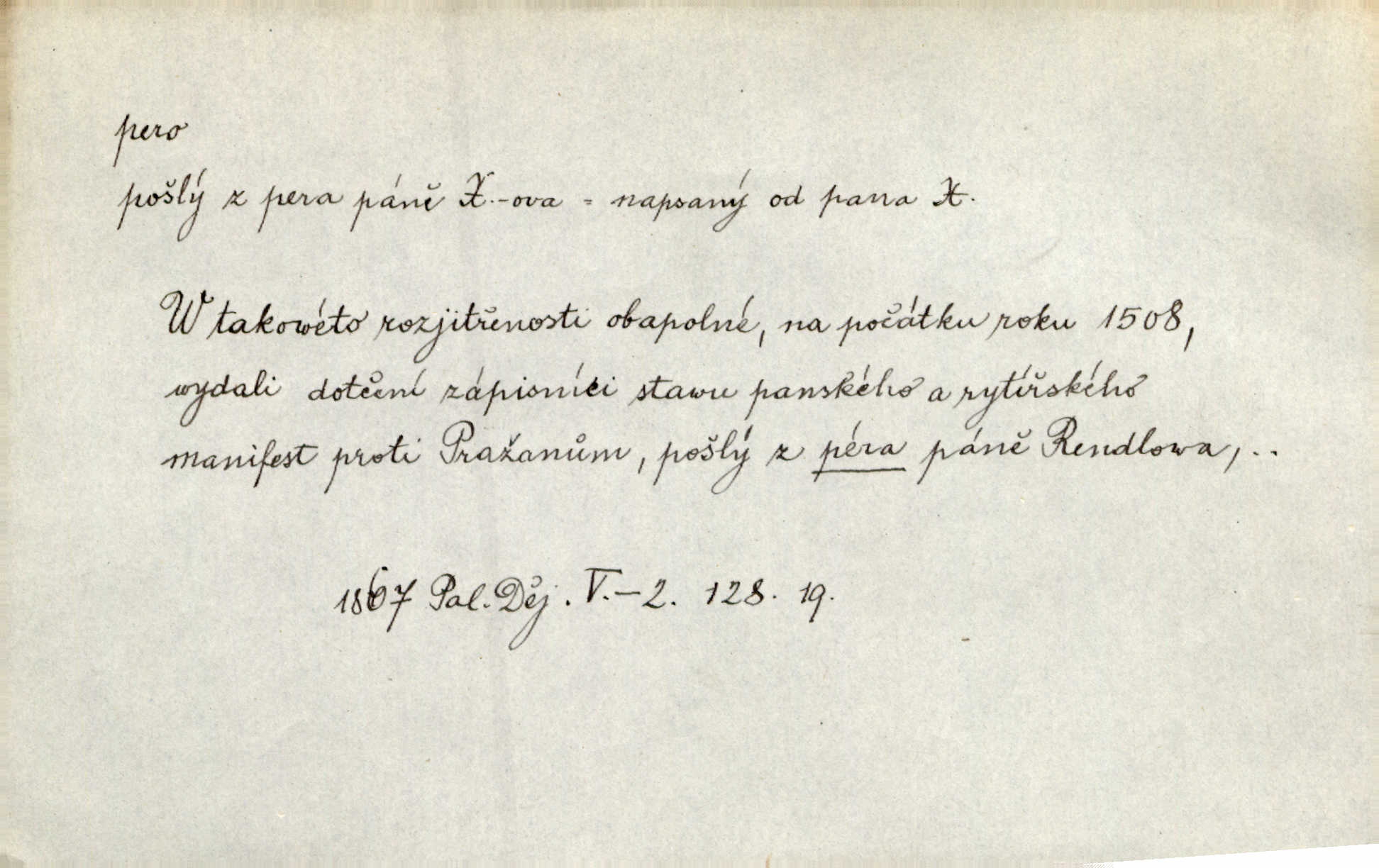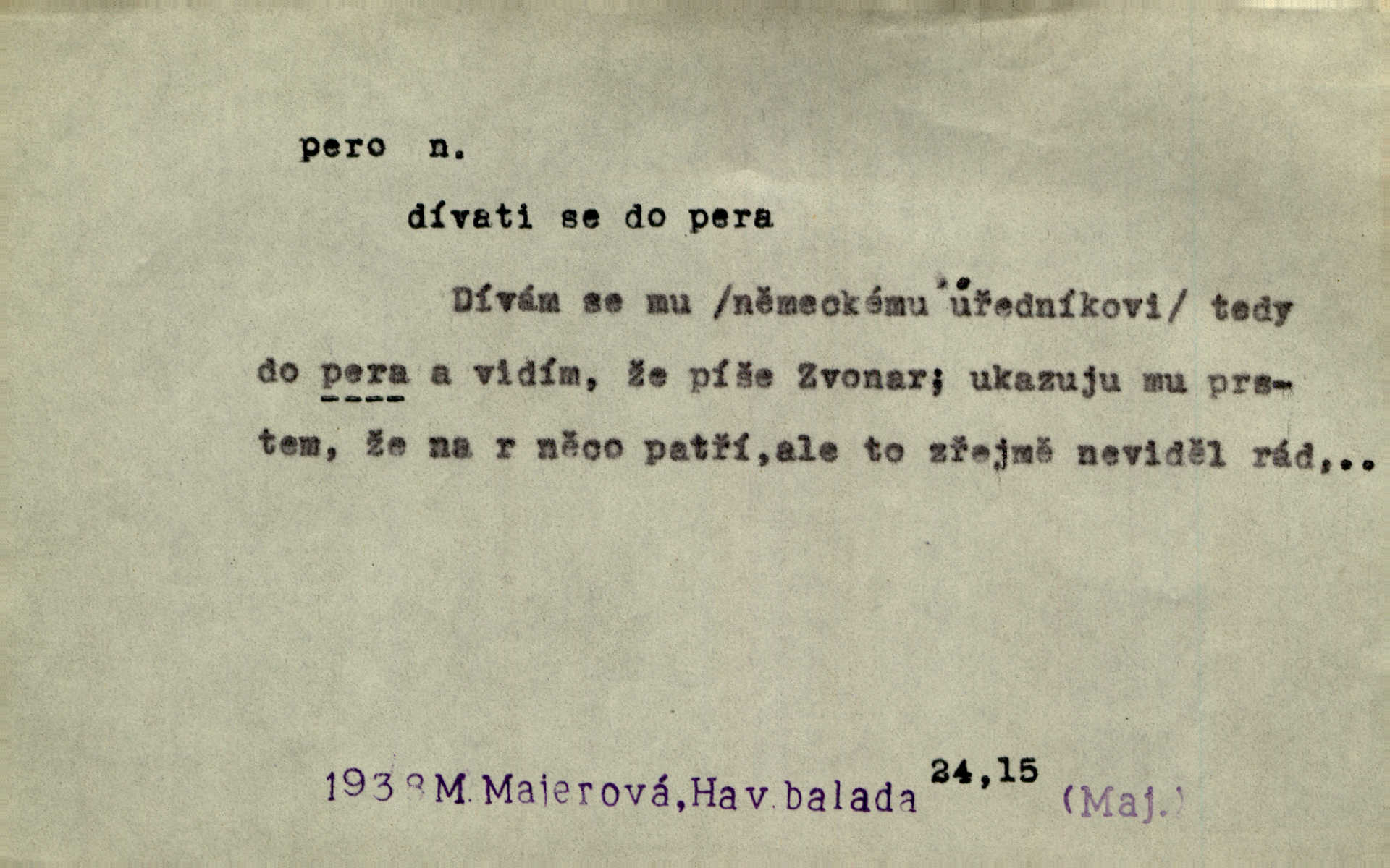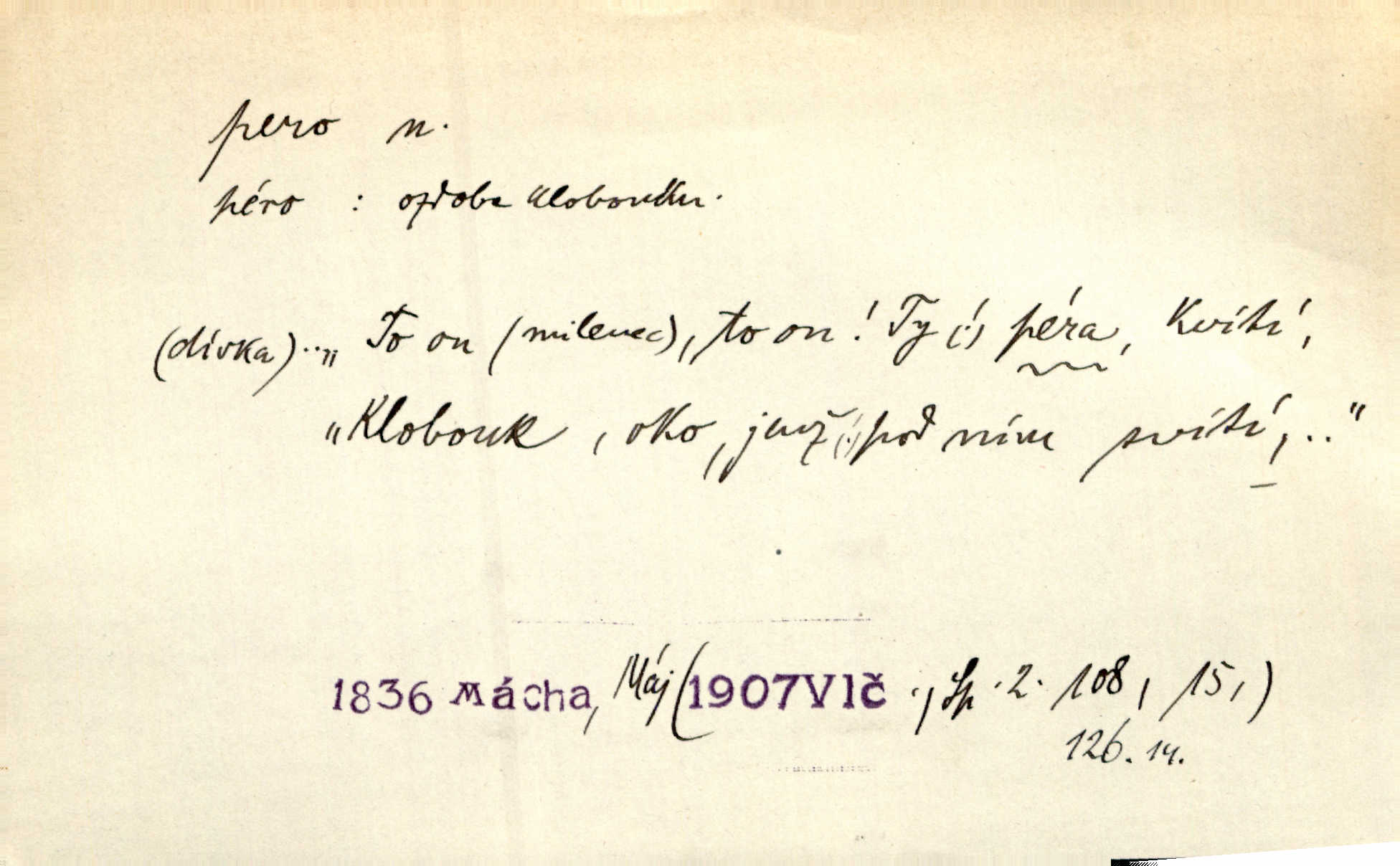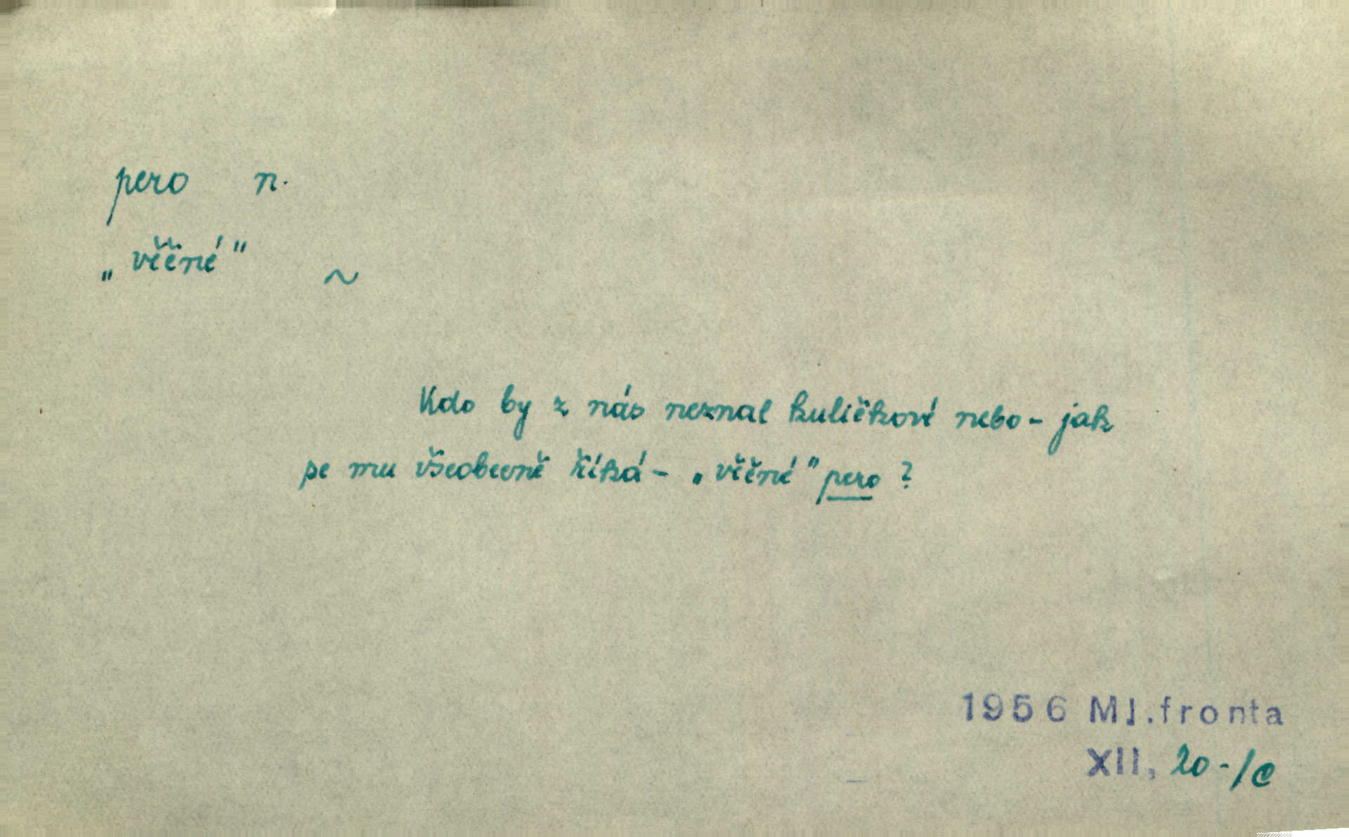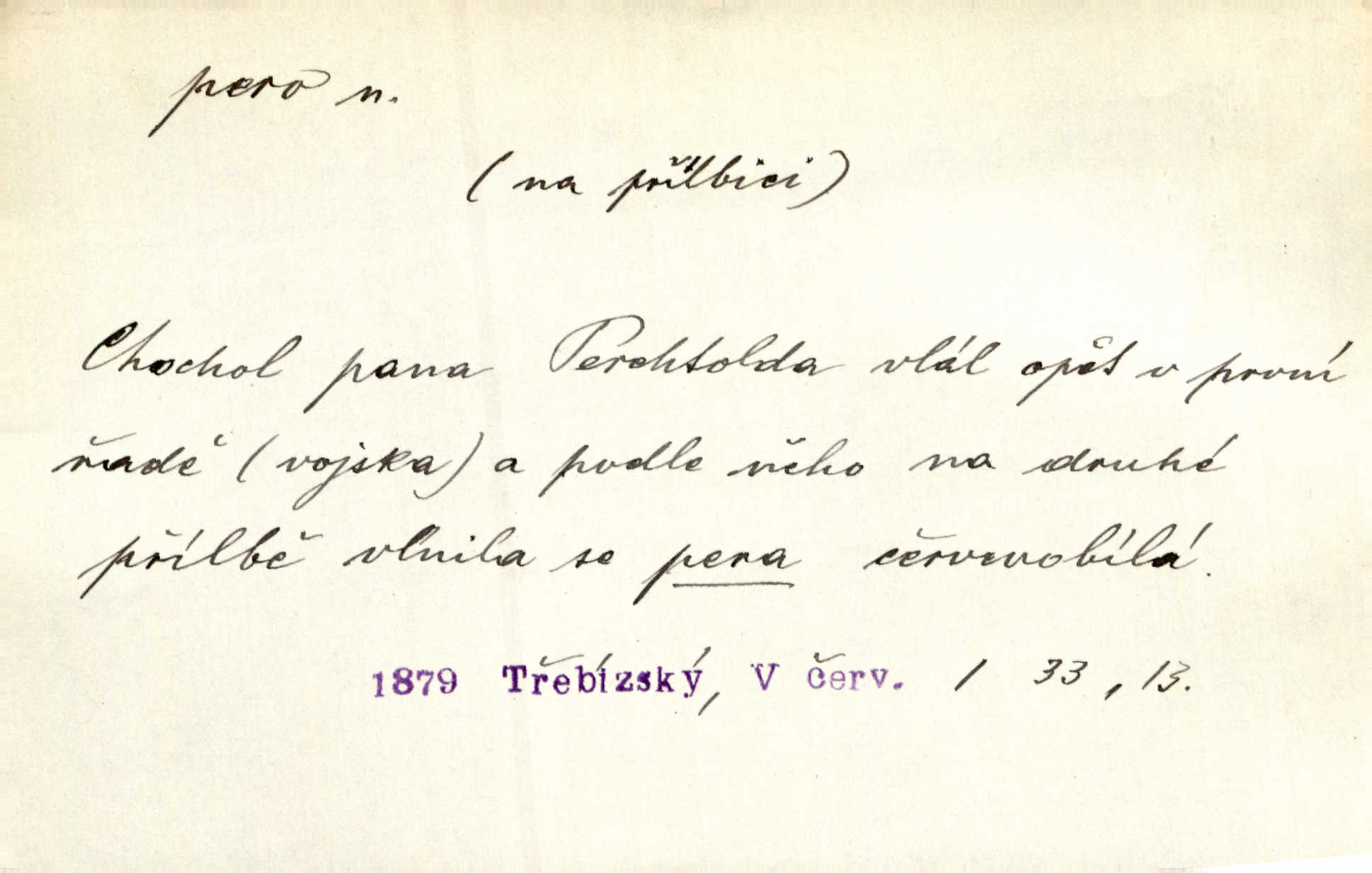 - pero, péro (arch. též píro), -a n. velké peří z ptačích křídel n. ocasu. Vysoké mu péro s přilby vlá. Vrch. Tiché, šťastné vísky kladou se v stínech hlubokých jako zavanutá péra obrovské labuti. Pfleg. Gouvernantka rozpačitá [tančí] stále skrytá za vějířem z pavích per. Vrch. Nějaké píro pštrosí ukaž! Win. Zool. péro obrysové, rejdovací. D nástroj ke psaní inkoustem n. tuší. Pero ocelové, skleněné, dámské, kuličkové, notové a j.; pero plnicí psací pero s inkoustovou nádržkou v držátku; pero rýsovací k vytahování čar tuší. Přiřízl si první péro rákosové. Ner. Před ním ležela kniha, papír, brková péra. Jir. Ustál. sp. Dal se do psaní Stazině. Ale nešlo mu z péra, po každé větě se zamýšlel. Šim. Stává se každý podezřelým, kdo proti odsuzování čarodějnic slovem neb pérem brojí písemně. Čech. Jsem přesvědčen, že ten pamětní spis pochází přímo z jeho péra že jej napsal. Čap. Ch. V kvartě chopil jsem se i péra počal jsem spisovati. Jir. Předchůdcové moji v soudní rubrice byli staří, osvědčení novináři, v péře honění zvyklí psáti. Herrm. Někdy se člověk dá k novinám, protože o sobě věří, že má dobré pero je dobrý stylista. K. Čap. „Veřejnému mínění“ od najatých per dokazováno, že Ludvík XIV. pochází od Karla Velikého od spisovatelů. Rez. Nevěděl byste ženicha pro mou nevlastní dceru Růženu? Musilo by to být něco lepšího, takhle něco od péra úředník. Staš. Advokáti říkali písařům do péra sáhodlouhé protokoly diktovali. Staš. Kdo to má zanedbanému lidu dáti do péra navésti jej? Šmil. D pružná součástka nějakého stroje, přístroje a p. Natáhl chrčivě se vzpírající péro budíčku. Vrba. Zoubek tlačí zoubek, pero žene pero. Bozd. Náhle, jakoby pérem vymrštěn, vzchopil se muž se stolu. Ner. Stiskl na stěně nějaké pero a objevily se tajné nízké dveře. J. J. Kol. Vyjížděl ze zámku panský kočár na ohromných perách. Jir. Klín povozu v pérách prudce zakolísal. Čap. Ch. Žlutá pera kulatých brejlí ztrácela se na spáncích v houšti vlasů. Jir. Tech. pružná součást rozmanitého tvaru sloužící k udržení polohy, k přenášení tahu n. tlaku, k zachycení n. utlumení rázů, k pohybu n. pohonu a j., zpružina, zpruha. Pero ohýbané, zkrucované, rovné, spirálové, šroubové a j.; pero listové složené z pásů (listů), pero bicí, hodinové, pojistné a p. Stroj. podélný klín bez úkosu. Technol. (v tesařství a v truhlářství) plochá lišta, která se vsazuje do drážek vyhoblovaných v obou hranách, jimiž spojovaná prkna k sobě přiléhají, n. lišta vyhoblovaná v hraně jednoho prkna a zasunující se do drážky vyhoblované v hraně druhého prkna. Spojení na pero a drážku. Stav. silná fošna n. krajina, která se připevňuje na piloty mostní bárky; část železné kované botky, kterou se připojuje botka k pilotě. D pružná vložka obuvi zvané perka. Rozškubaná péra [botek] vyčuhovala zpod kalhot až příliš krátkých. Merh. Vulg. Dyž ti mně, hochu, vodtamtuď vyndali péra, tak jako kdyby tě někdo rovnou přes nos praštil, poslali mě odtamtud. Němec. D Arch. kord. Na rohatině v řemenech zavěšen rapír nebo dlouhé péro. Win. Pravicí o hůl se opíral, po levém boku viselo v pantaleru mohutné „píro“ s rukojetí pěkně pletenou. Jir. D Dial. kytice. Z jara dělají se péra z lesních a polních květin. Něm. D Mysl. ocas jelení n. zaječí. D Zool. mořské péro polyp z čeledi Pennatulidae, Pennatula. D Kuch. hovězí maso mezi krkem a hřbetem.