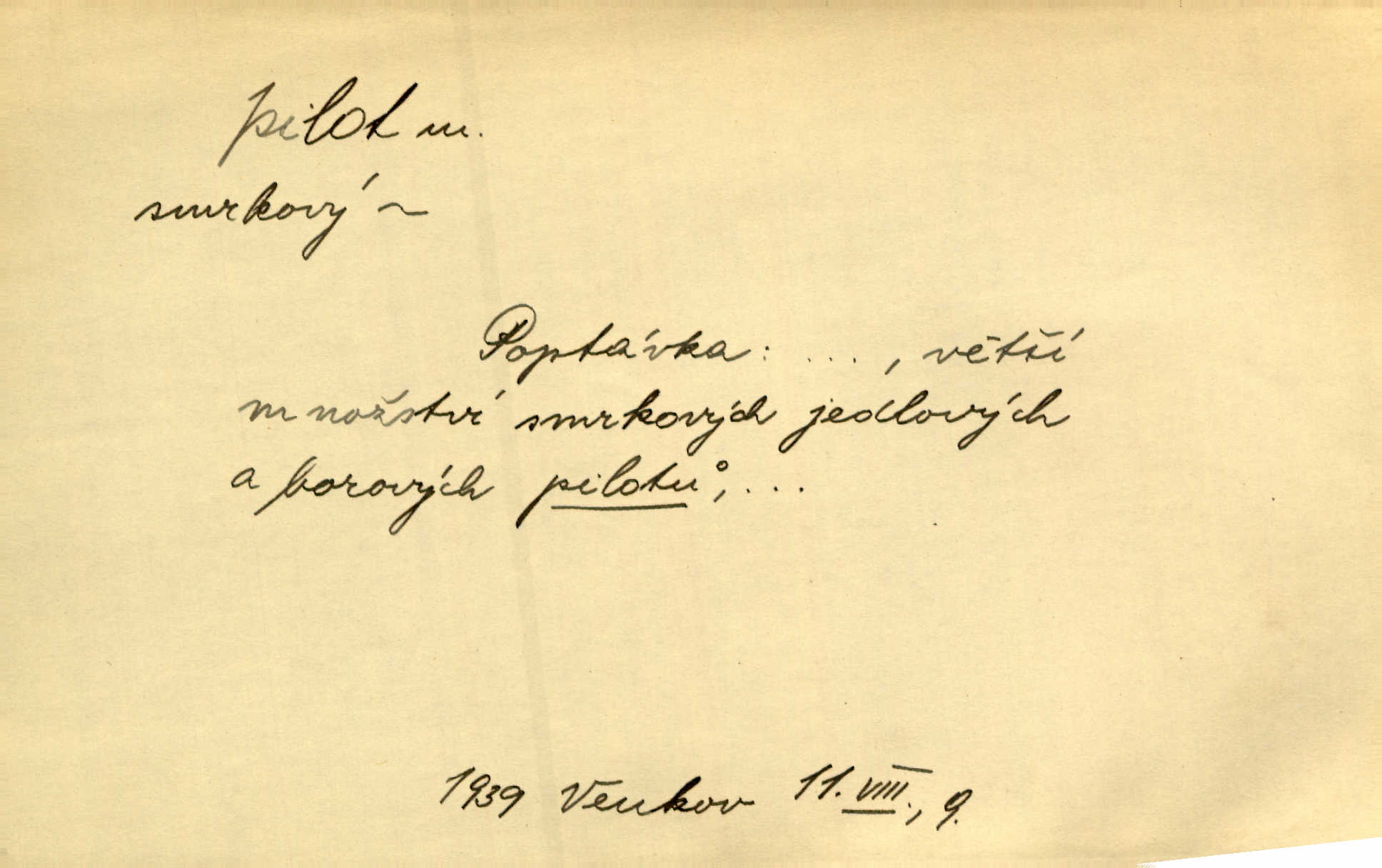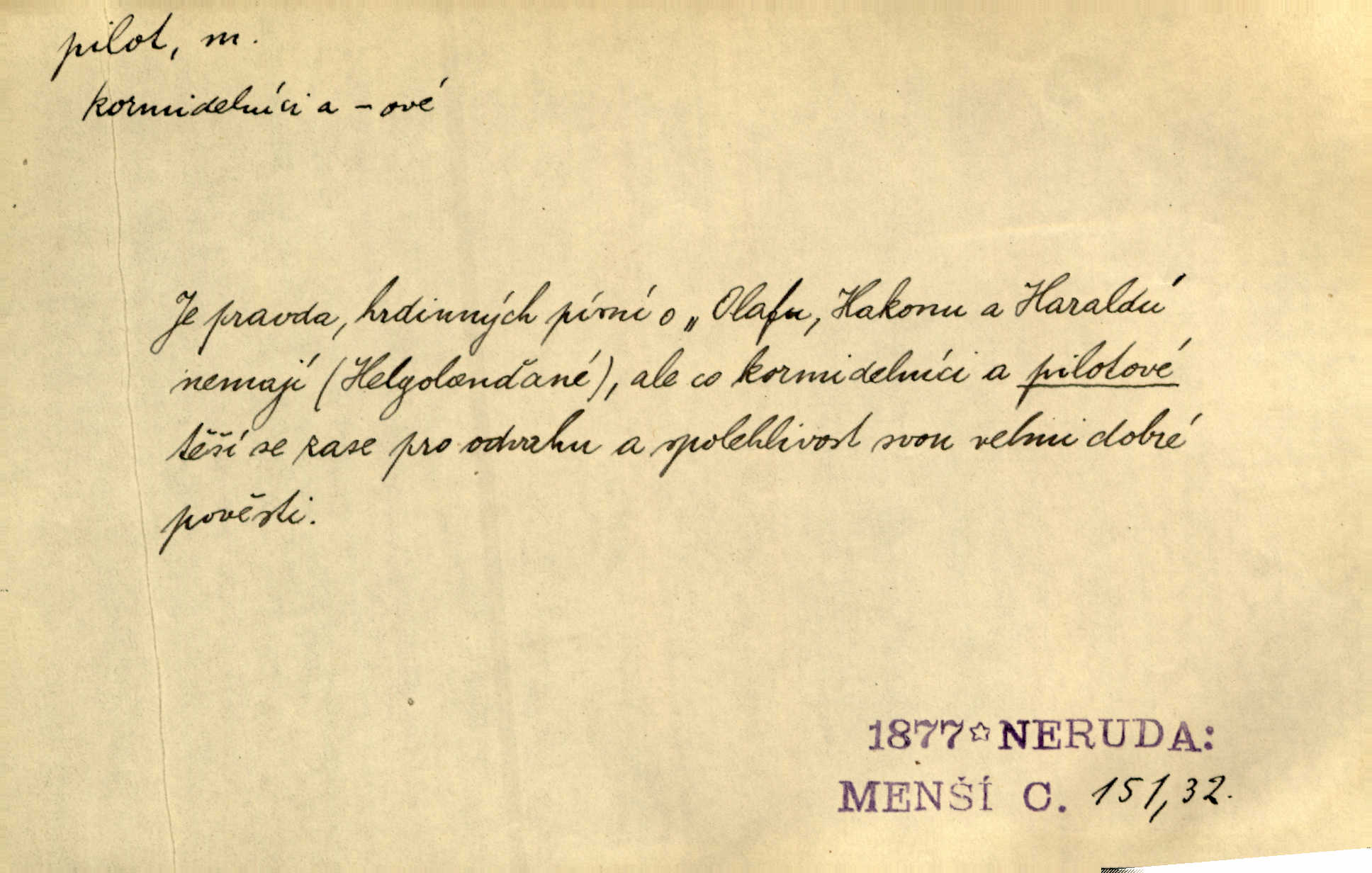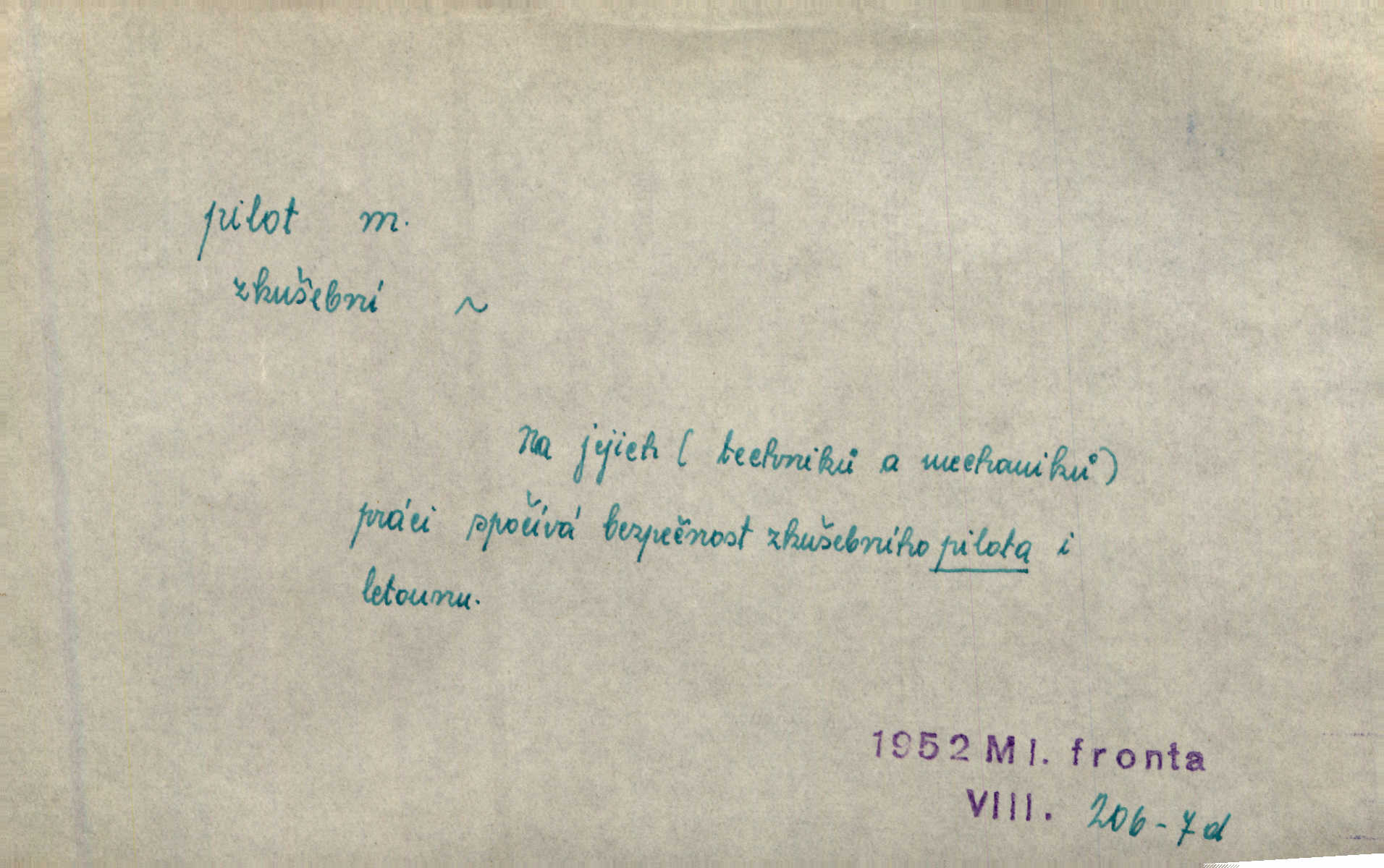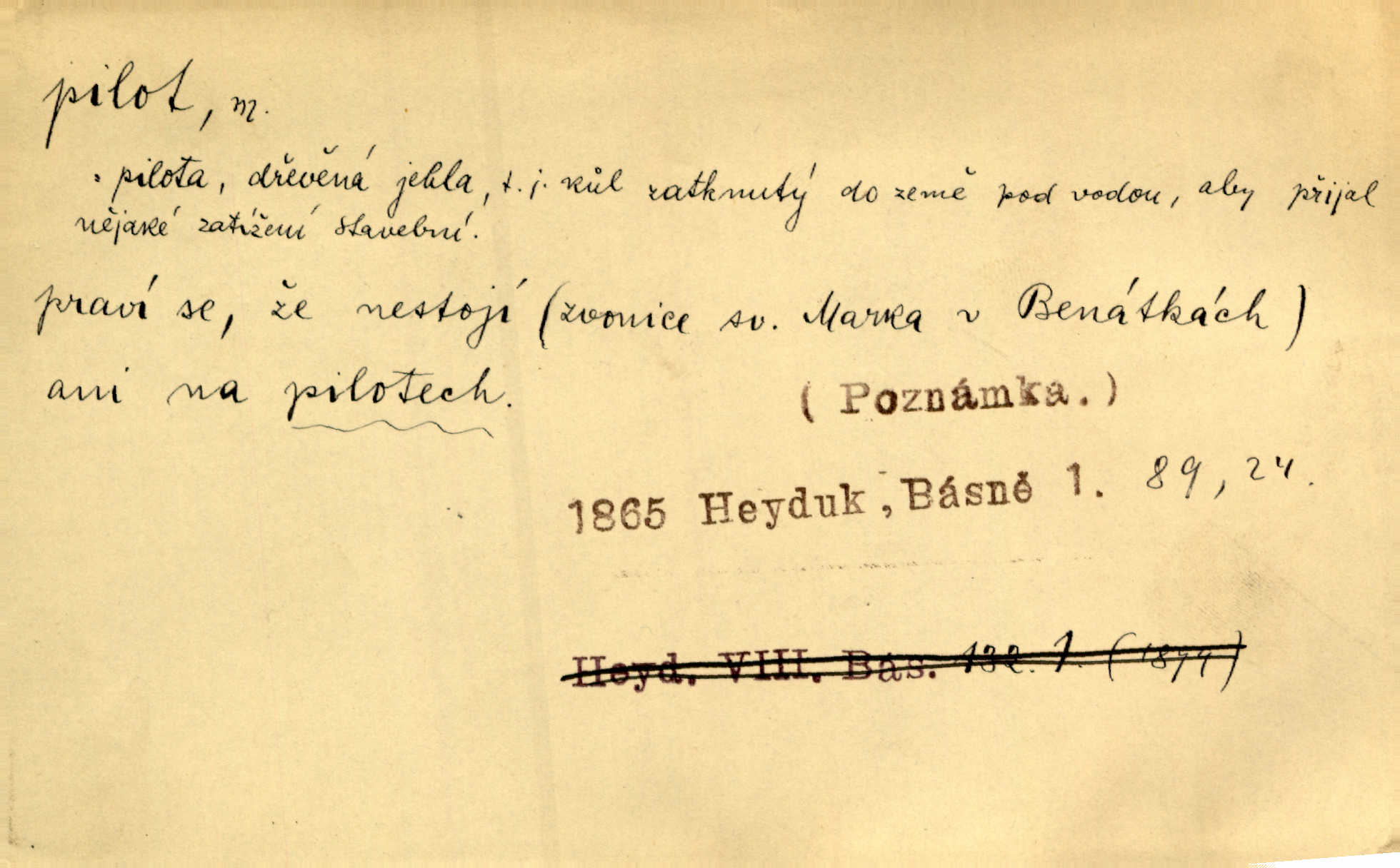- pilot, -a m. řidič letadla. Machar v šedesáti letech vstupuje na aeroplán, aby dodal chuti mladým pilotům. Čes. sl. D Zast. lodivod. Daleko do moře přijel nám naproti pilot. Štol. Sám sobě pilotem a sám být pevnou lodí, nechť přijde kdokoli. Vrch. D Zool. pilot pruhovaný ryba z čeledi Crangidae, Naucrates ductor. Žel. zvláštní zaměstnanec doprovázející vlak po jistých úsecích a obeznámený s místními poměry.