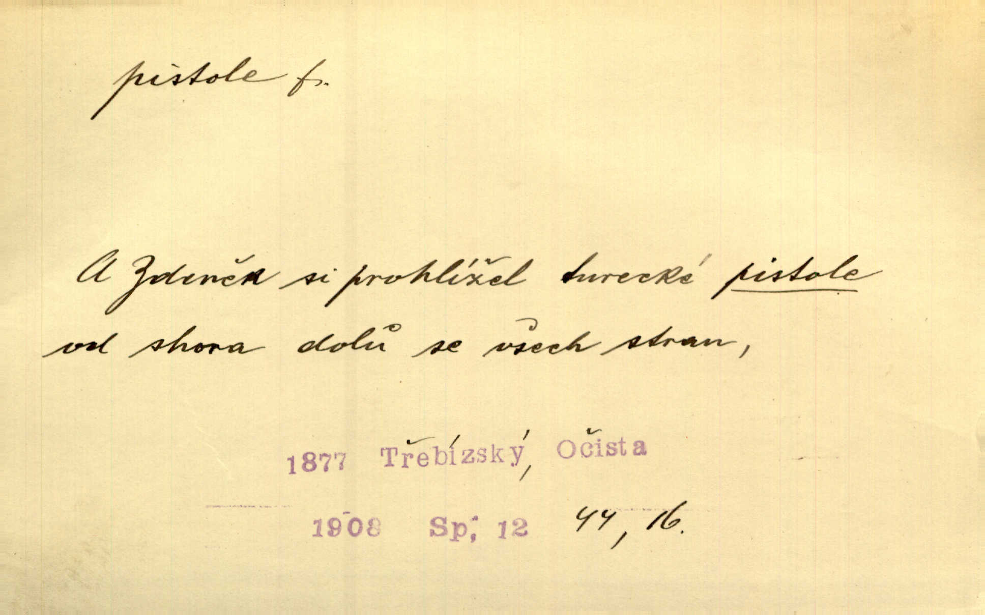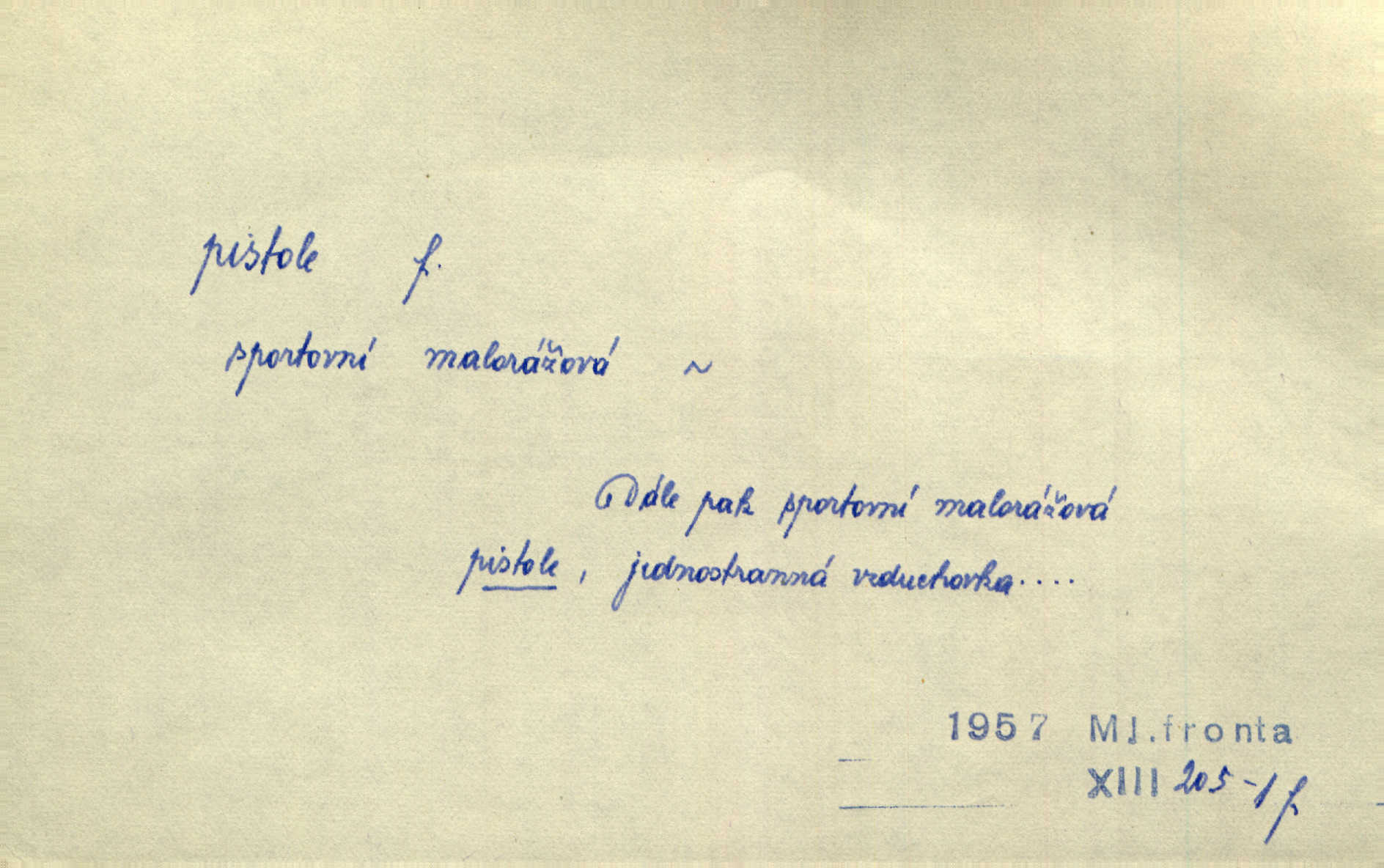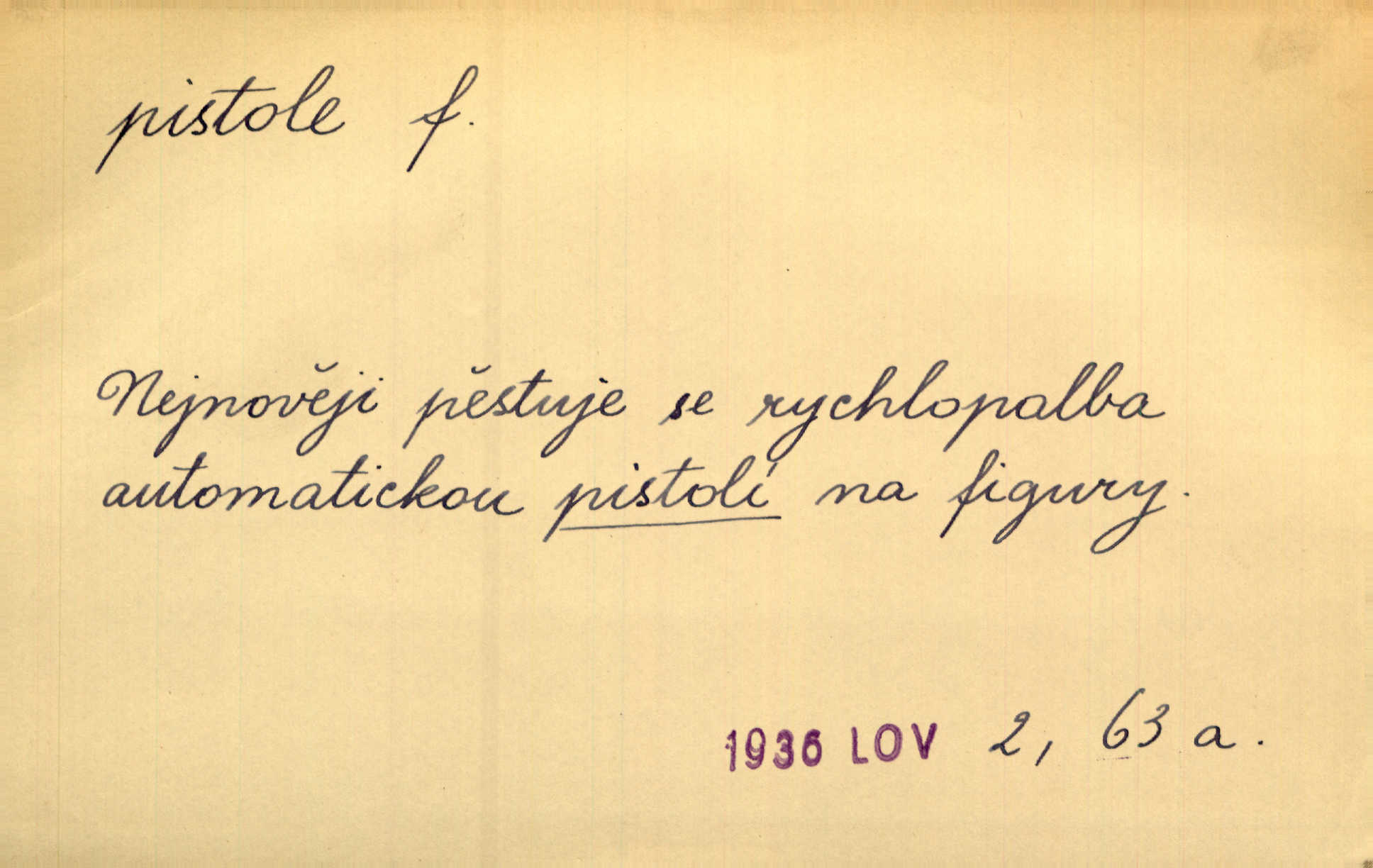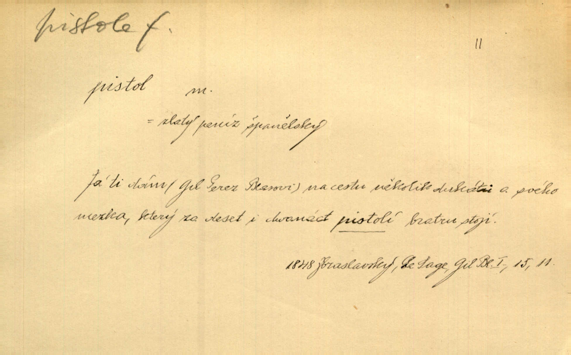 - pistole (zř. pistol; dial. pistule), -e f. (dial. pistola, pistula, -y f.; arch. pistol, -u m.) krátká jednoruční střelná zbraň ke střílení na nejmenší vzdálenosti. Zabil se ranou z pistole. Dyk. Sekne ho [rytíř draka] několikrát do hlavy a konečně vystřelí z pistole, drak se svalí. Něm. [Chlap] namířil proti nám pistoli. Arb. Vyzval jej na pistole, avšak v souboji sám jest postřelen. Staš. Jsem již jako stará pistola s křesacím zámkem. Kosm. Koně a „pistulu“ přinesl sv. Mikuláš [chlapci]. A. Mrš. Pistule a ftáci, to byla jeho záliba. Jir. Vytáhne z kapsy malý pistol. Klicp. [Zámek] přeskakoval, jako když z pistole střílí. R. Svob. Vybuchlo to [smích] z ní, jako když z pistole vystřelí Čap. Ch. Voj. služební pistole; pistole raketová na vystřelování rakety. Sport. pistole terčová. D Tech. přístroj k nanášení barev a laků n. roztaveného kovu rozprašovaným proudem vzduchovým. Pistole stříkací, lakovací, pokovovací.