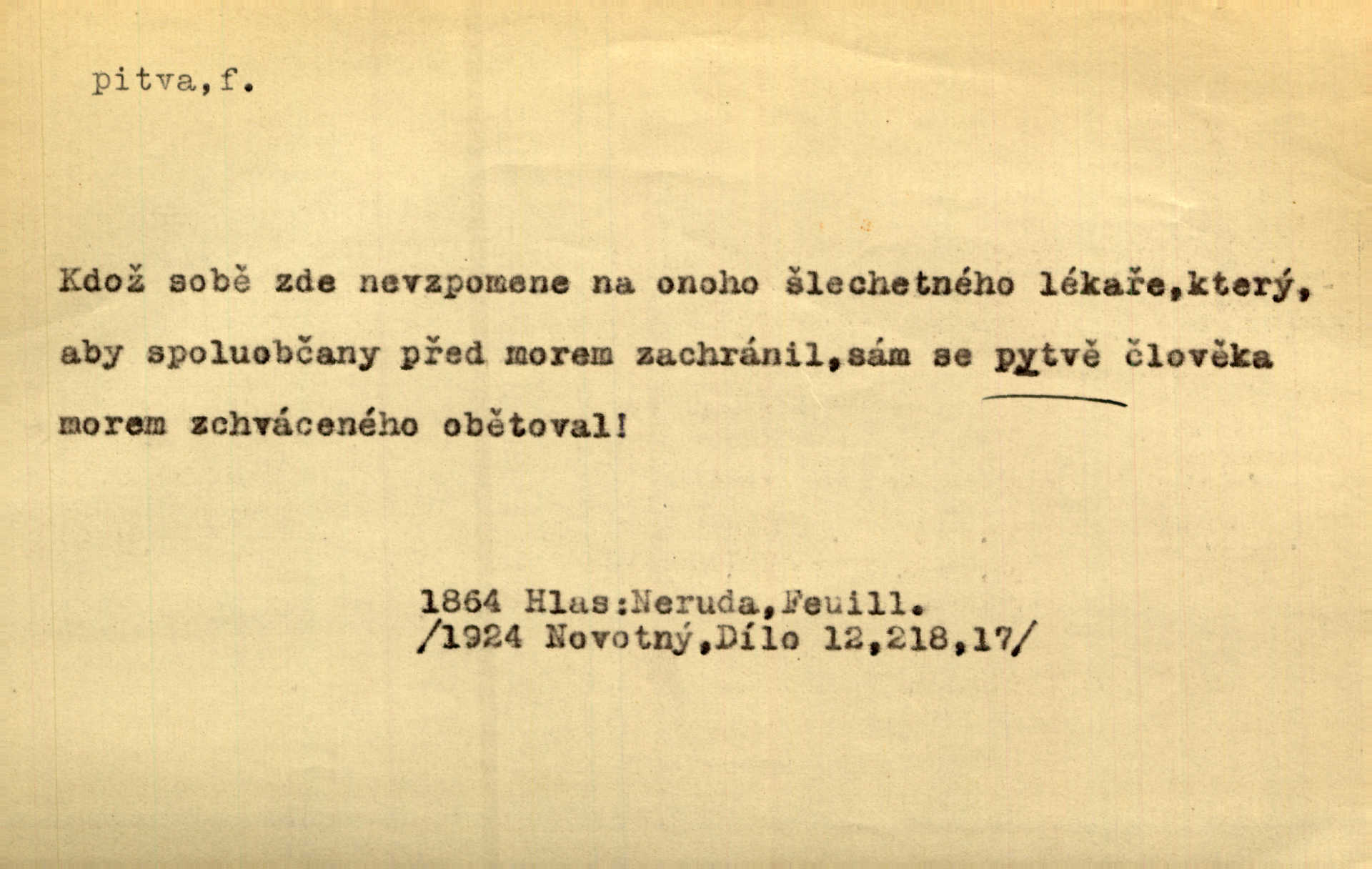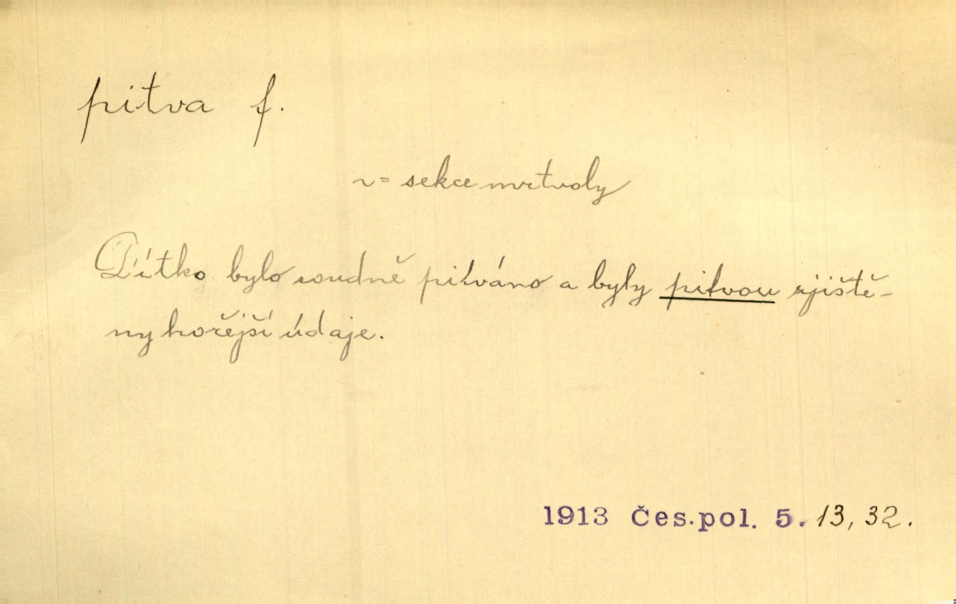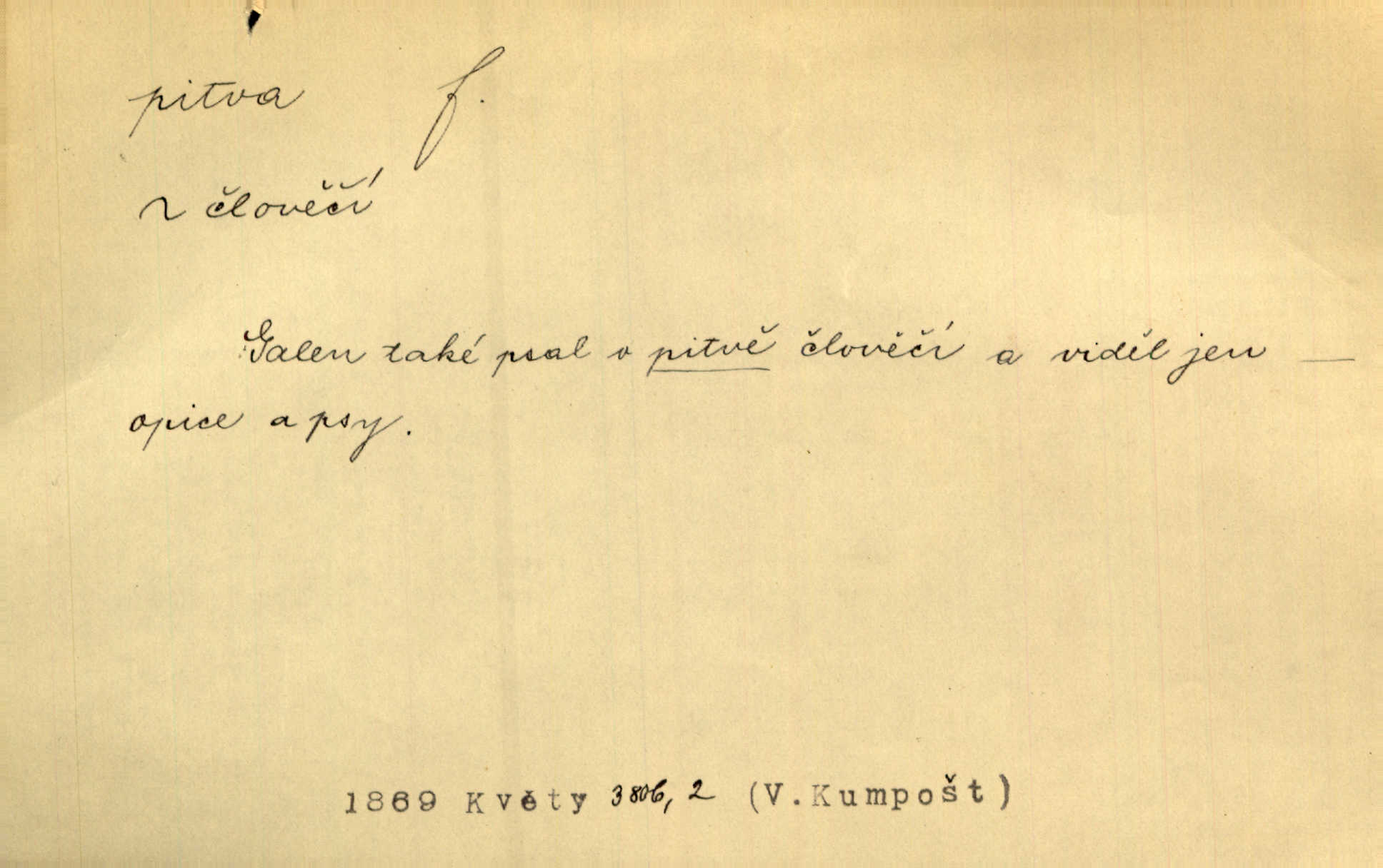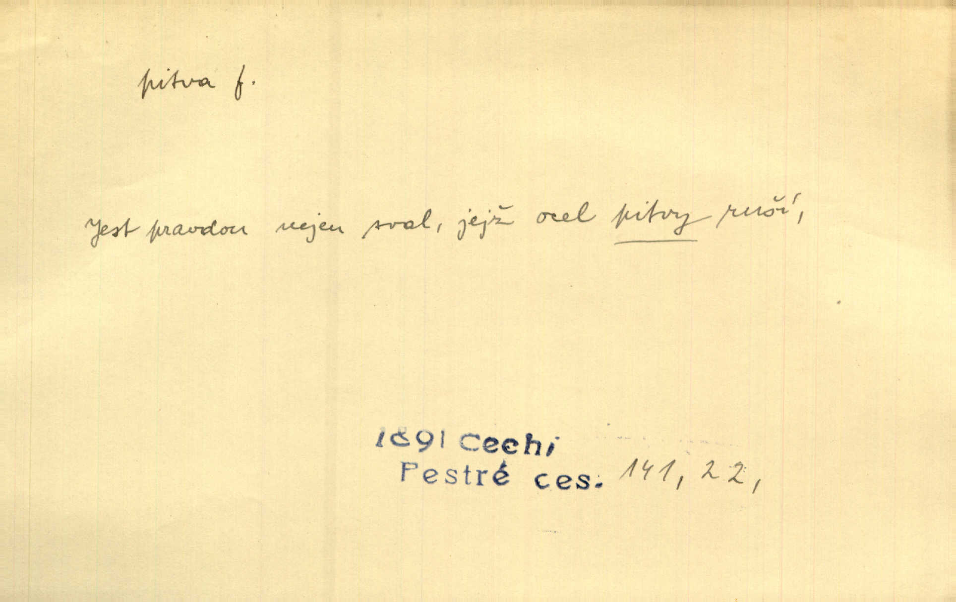 - pitva, -y f. lékařské otevření mrtvoly k odbornému podrobnému zkoumání. Díval se na svět, jako se anatom dívá na mrtvoly, jež před ním leží k pitvě. Staš. [Mrtvý] dodaný do ústavu k policejní pitvě, aby zjištěna byla skutečná příčina úmrtí. Čap. Ch. Práv. soudní pitva úřední pitva provedená ke zjištění příčiny smrti při podezření spáchaného trestního činu. D podrobné rozbírání, zkoumání něčeho. Tyto poznámky nemají být pitvou politiky. Přít. Doba Herodotova nebyla ještě k takové kri tické pitvě [pověstí] dospěla. Kvíč. Ušla by tím způsobem pitvě veřejnosti? Herrm.