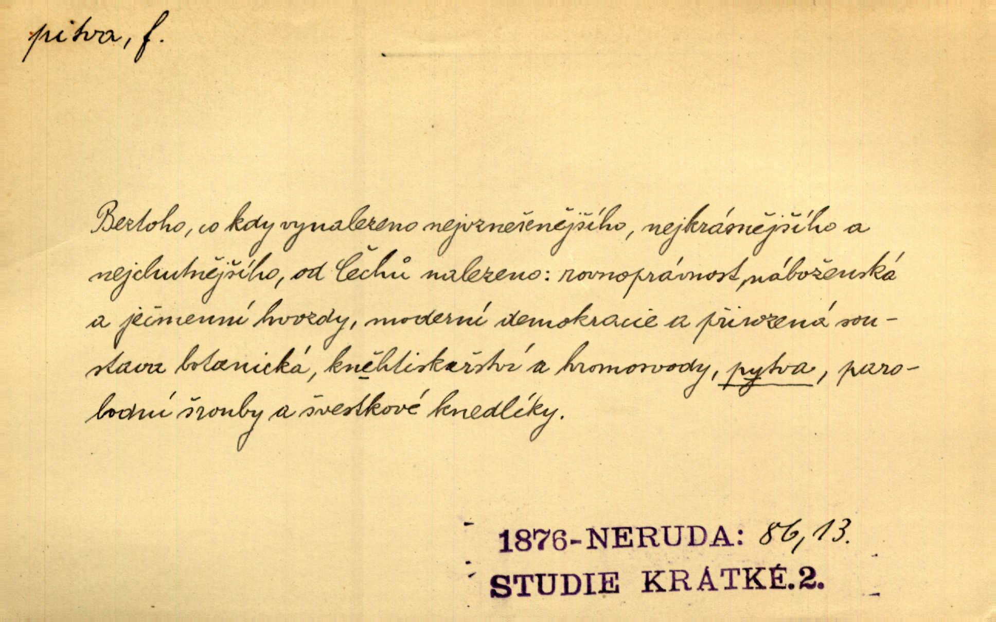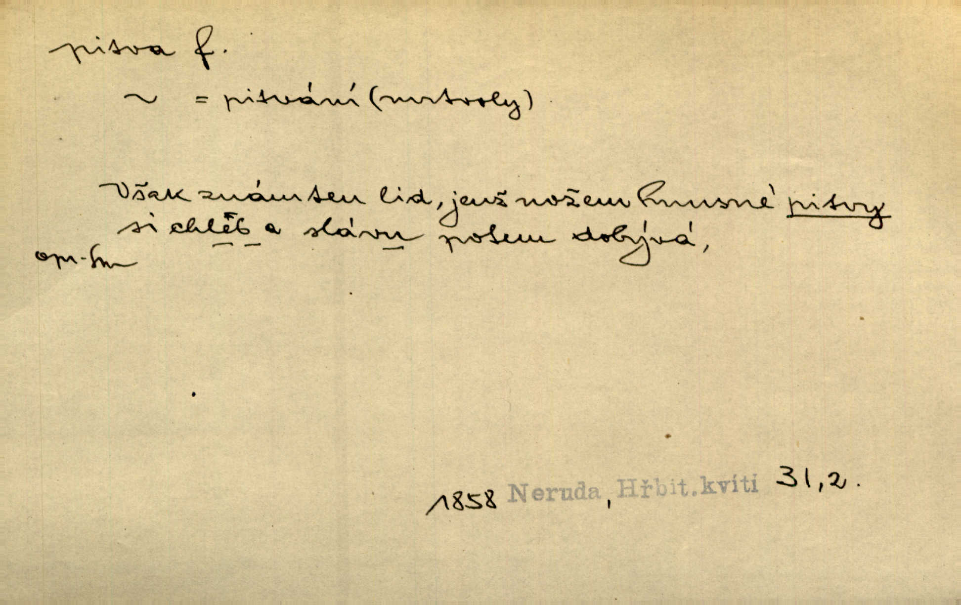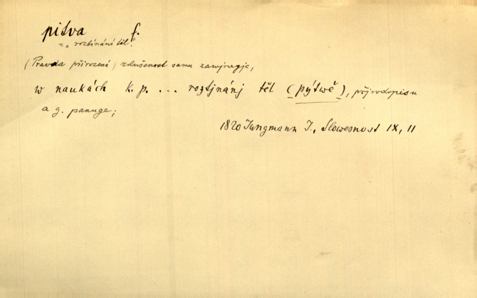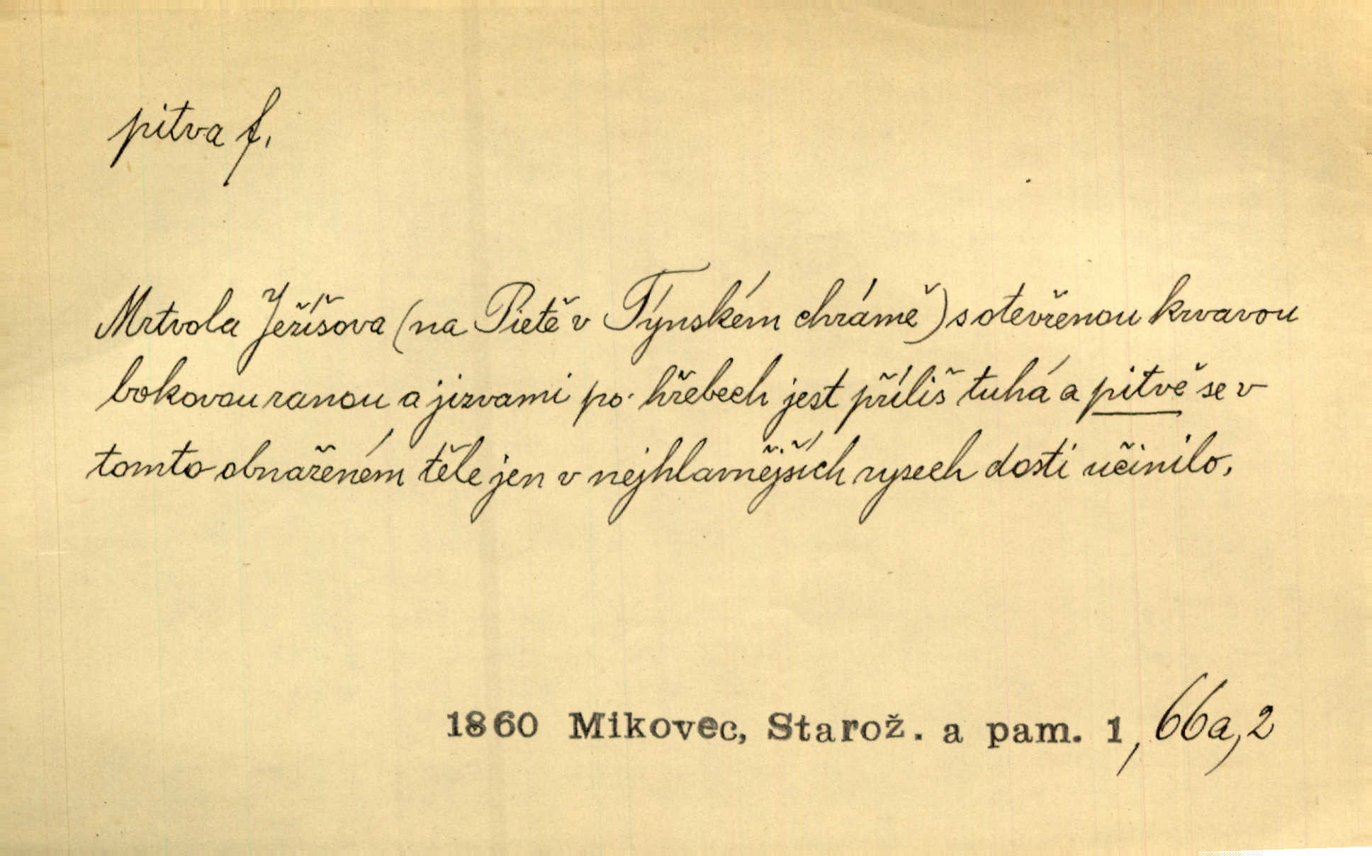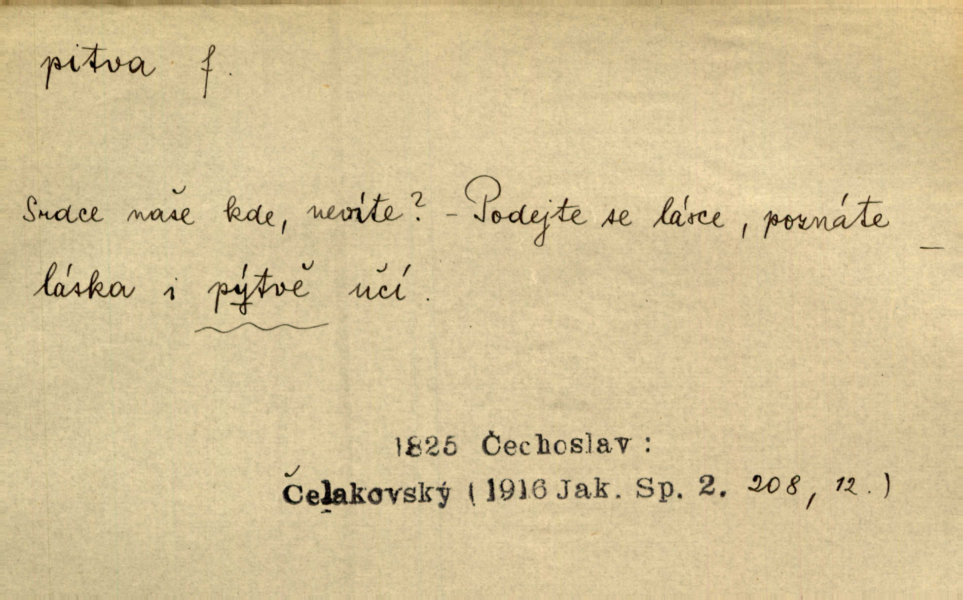 - pitva, -y f. lékařské otevření mrtvoly k odbornému podrobnému zkoumání. Díval se na svět, jako se anatom dívá na mrtvoly, jež před ním leží k pitvě. Staš. [Mrtvý] dodaný do ústavu k policejní pitvě, aby zjištěna byla skutečná příčina úmrtí. Čap. Ch. Práv. soudní pitva úřední pitva provedená ke zjištění příčiny smrti při podezření spáchaného trestního činu. D podrobné rozbírání, zkoumání něčeho. Tyto poznámky nemají být pitvou politiky. Přít. Doba Herodotova nebyla ještě k takové kri tické pitvě [pověstí] dospěla. Kvíč. Ušla by tím způsobem pitvě veřejnosti? Herrm.