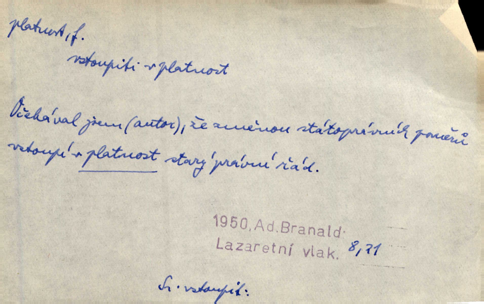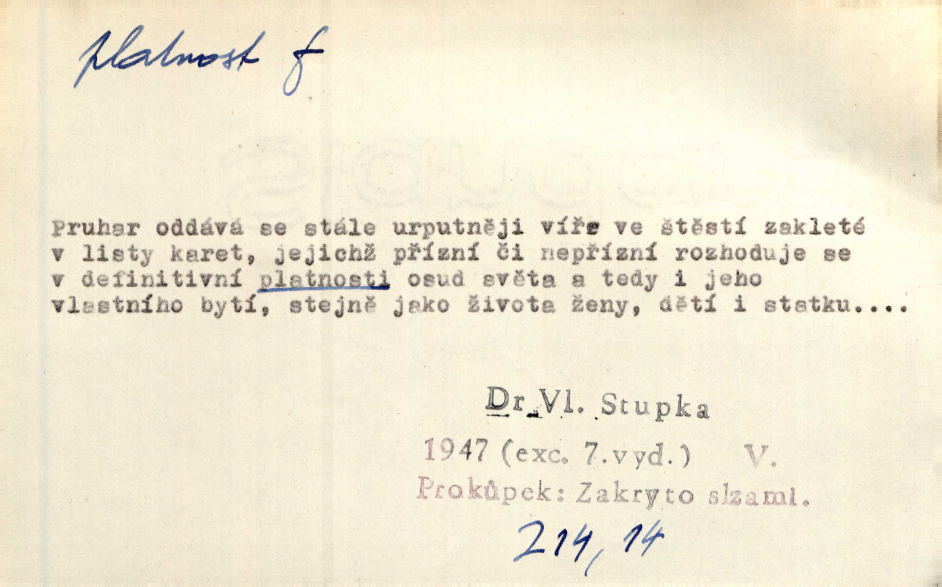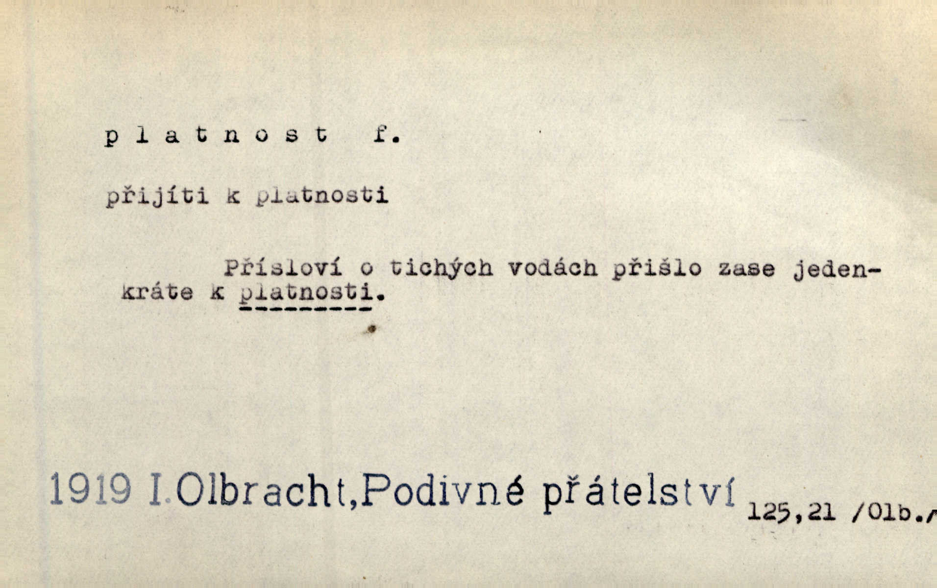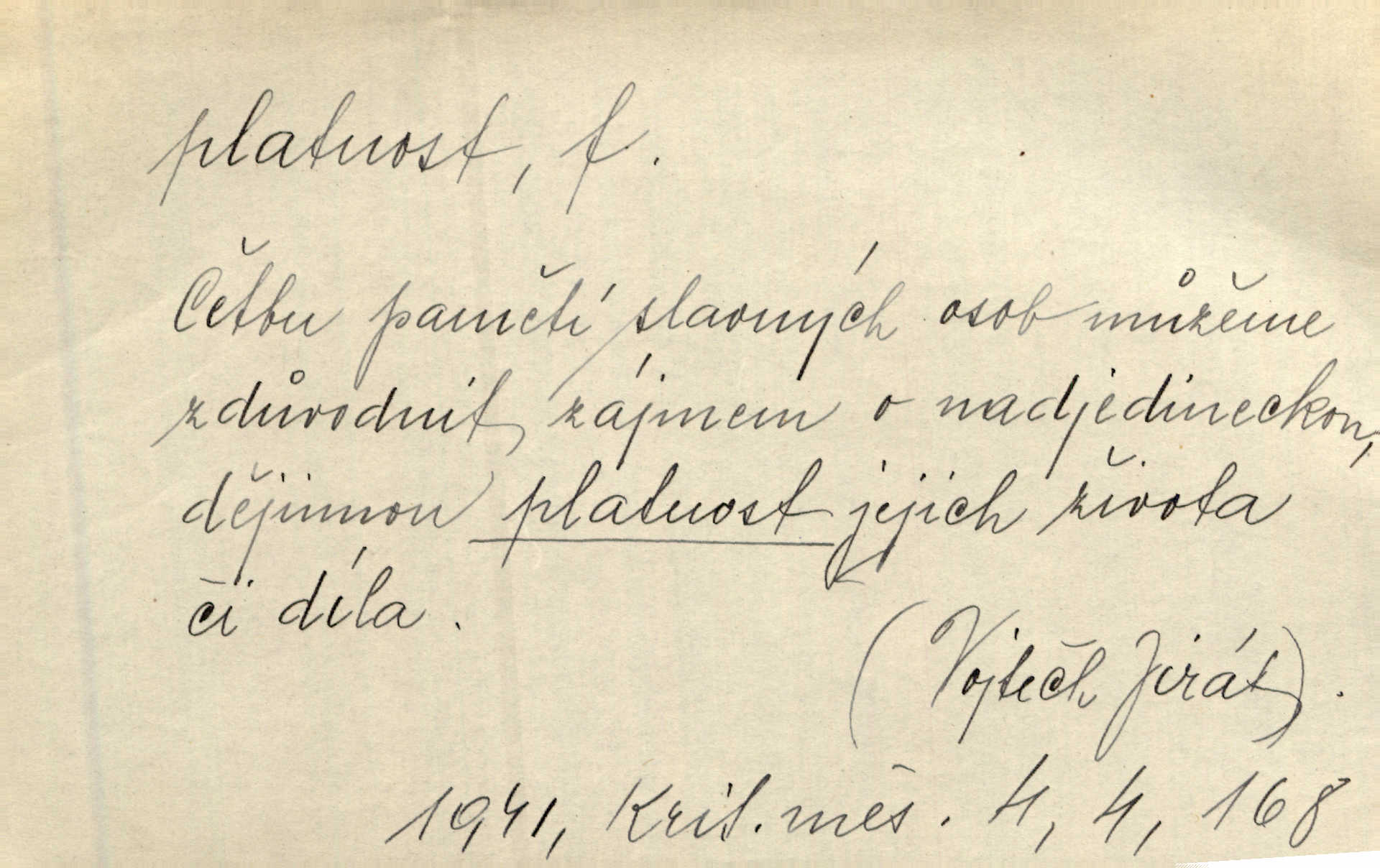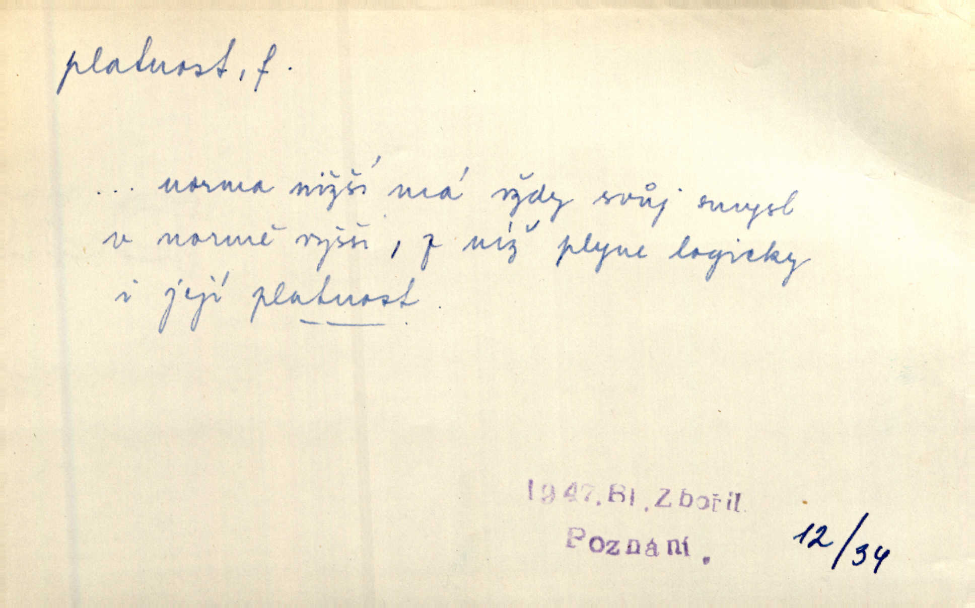 - platnost, -i f. vlastnost něčeho platícího, uznávaného n. majícího vlastnosti normy. Kterak možná jest minci v království českém ustanoviti tak stálou, aby kurs její, čili platnost a míra, nikdy se neměnily? Pal. Proslýchá se, že falešné banknotky ani na přes rok platnosti míti nebudou. Hum. kal. Kalvin zachoval v Ženevě zákony o čarodějství v platnosti. Čech. Rozsudek nabýval okamžité platnosti. Nor. Encyklika zatracuje učení o svrchovanosti národa a platnosti veřejného mínění co výrazu vůle národní. Grégr. Práv. vlastnost míti právní účinky. Platnost manželství, smlouvy. D vlastnost někoho n. něčeho nějak se uplatňujícího, projevujícího svou účinnost, svůj vliv, působení. U Náprstka nejednalo se o to, co některá věc poskytuje jemu výhodného, ale o to, jakou platnost má pro dobro všeobecné. Zey. Přišelť její vzrůst při této práci k plné platnosti. Svět. Ty že nejsi platen? Kdo tedy má platnost nějakou, ne-li muž, který všecku sílu obecnému dobru věnuje? Podl. Vítek oběma stranám slouží, ale jen pašerům k platnosti je. Mož. Co se týče řeči, mluví Hercegovec volněji a dává více platnosti dlouhým slabikám. Hol. Měla starost, aby náležitě k platnosti přicházely drahocenné šperky, jež měla na sobě. Her. Pod pavučinovým rouchem docházel plné platnosti i tělesný zjev tanečnice. Herrm. Nejmenší podrobnost ozdob [paláce] nepozbývá platnosti. Zey. Titulní úloha došla v rukou pana X. jen prostřední platnosti. Ner.