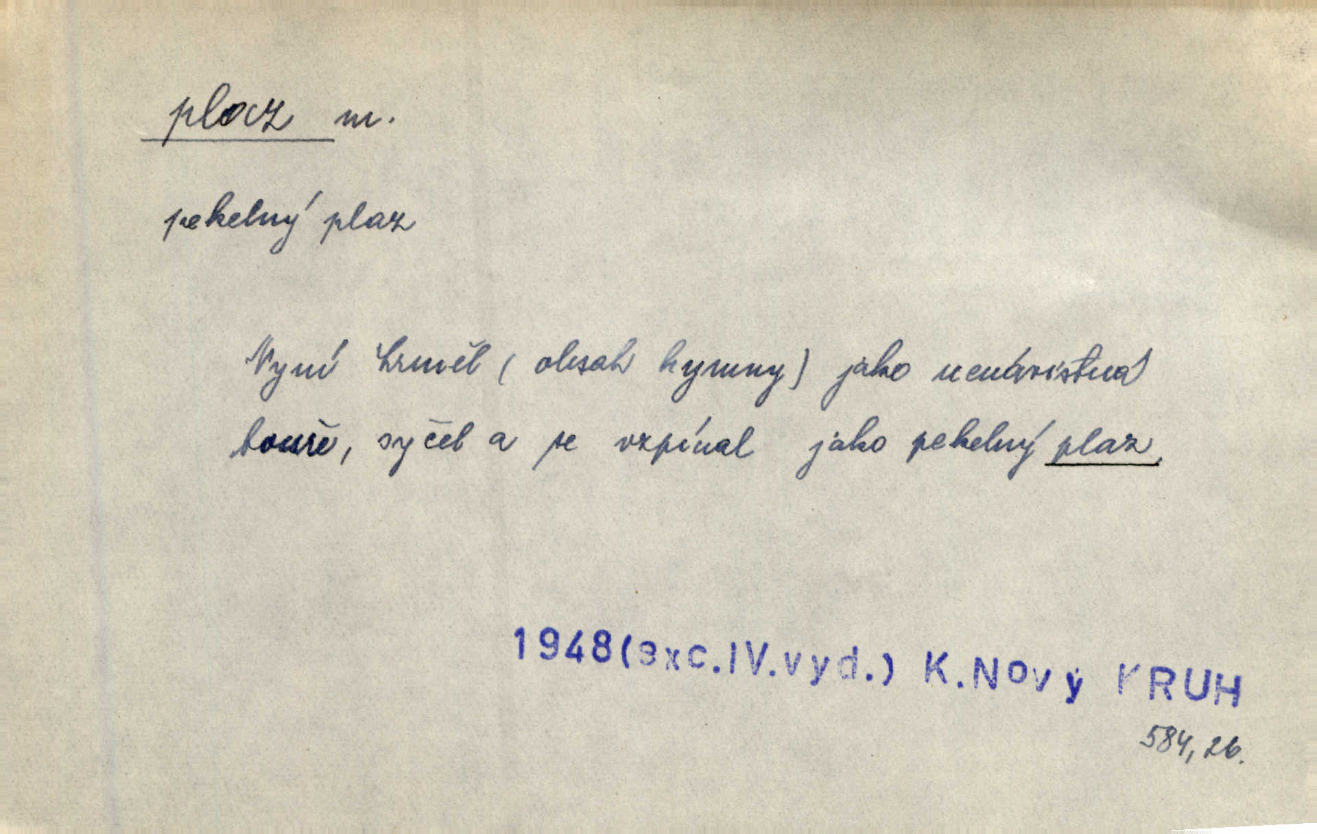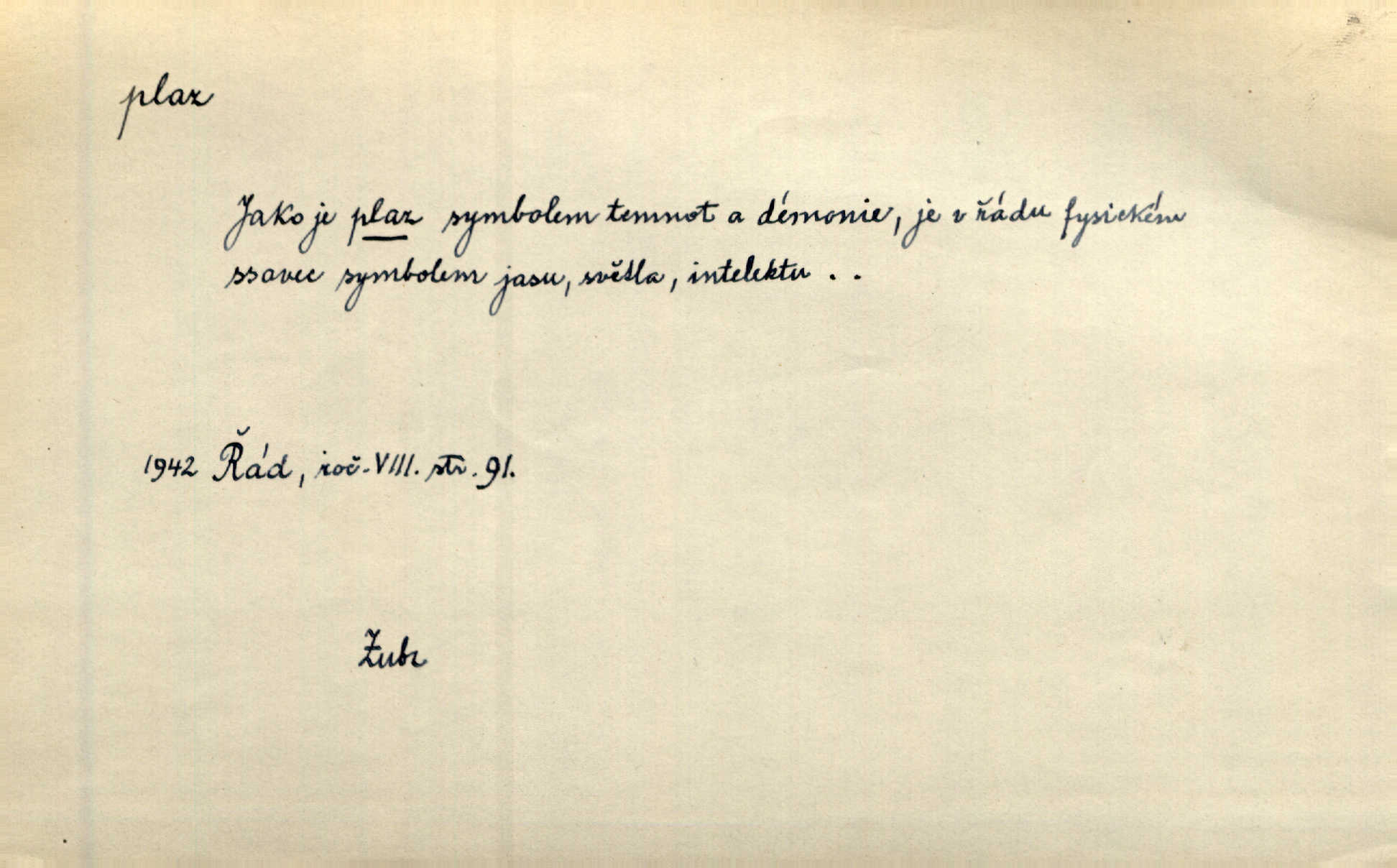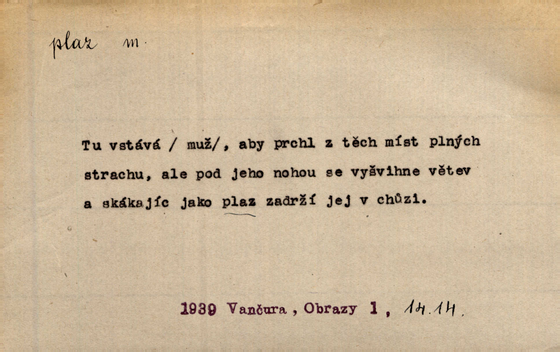 - plaz, -a m. plazící se živočich, obyč. had n. ještěrka. Hrady tvé se sov a plazů chlévem staly. Koll. V kořenů směsi hnízdí, syčí plazi. J. Kvap. Zasyčel jako plaz, na nějž někdo šlápnul. Herb. Děvče se uhnulo [Viktorovi], jako by se to sápal jedovatý plaz. Vach. Na vysočině pohybovala se volně výprava, táhnouc se do dálky jako ohromný klikatý plaz. Jan. Přen. o člověku ošklivém, zlém. Tělo její se zachvělo bezděčně nechutí před stykem s oněmi plazy jedovatými, jak Luhovské ve svém nitru nazývala. Svět. Zpět, chátro! zpátky, plaze otrocký. Vrch. Všecky lidi považoval za původně dobré; nevěřil, že jsou mezi nimi rození jedovatí plazi. Krás. Zool. plazi třída zvířectva, Reptilia; plazi šupinatí podtřída řádu plazů, Squammata.