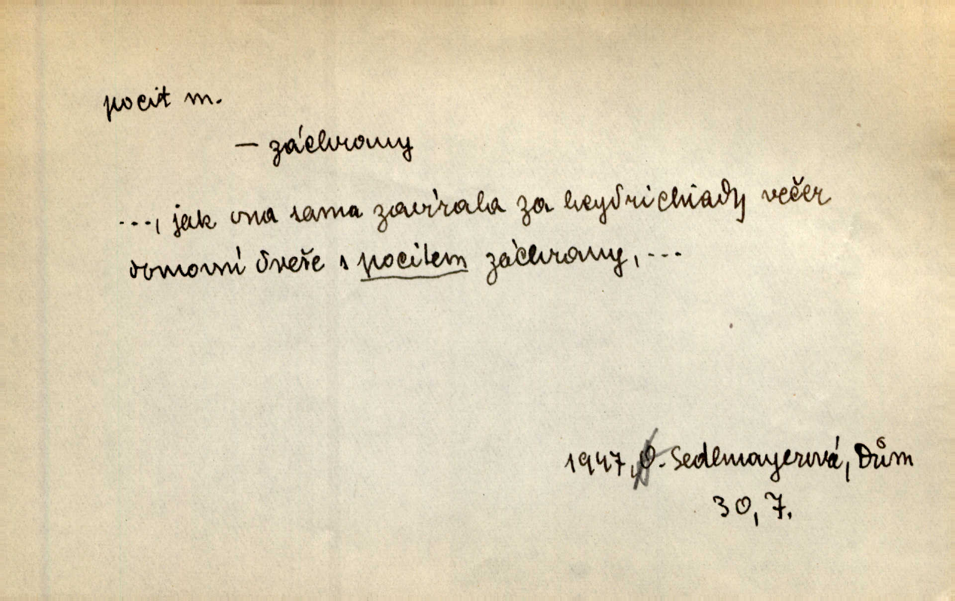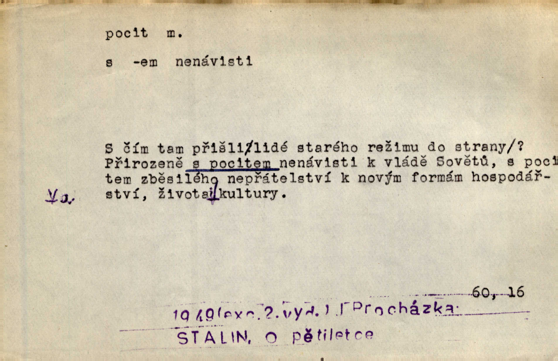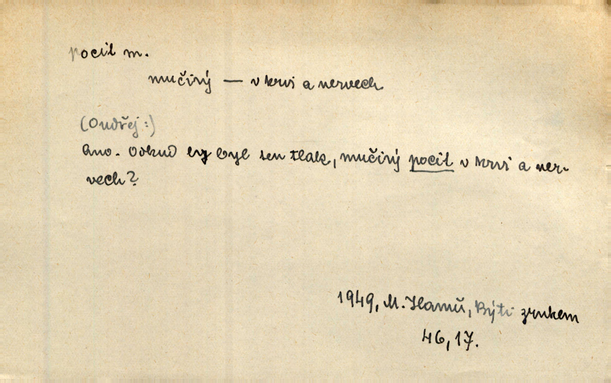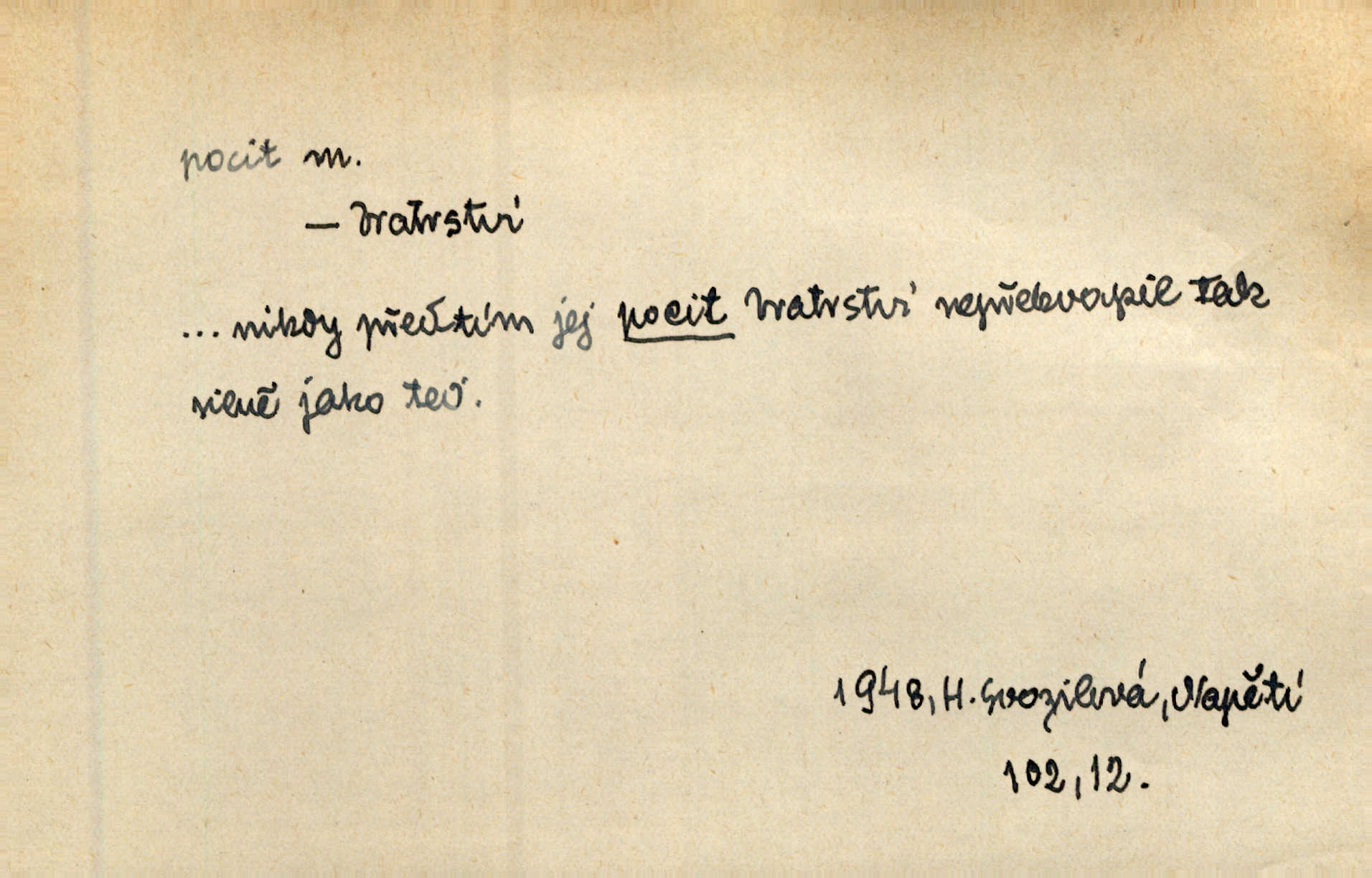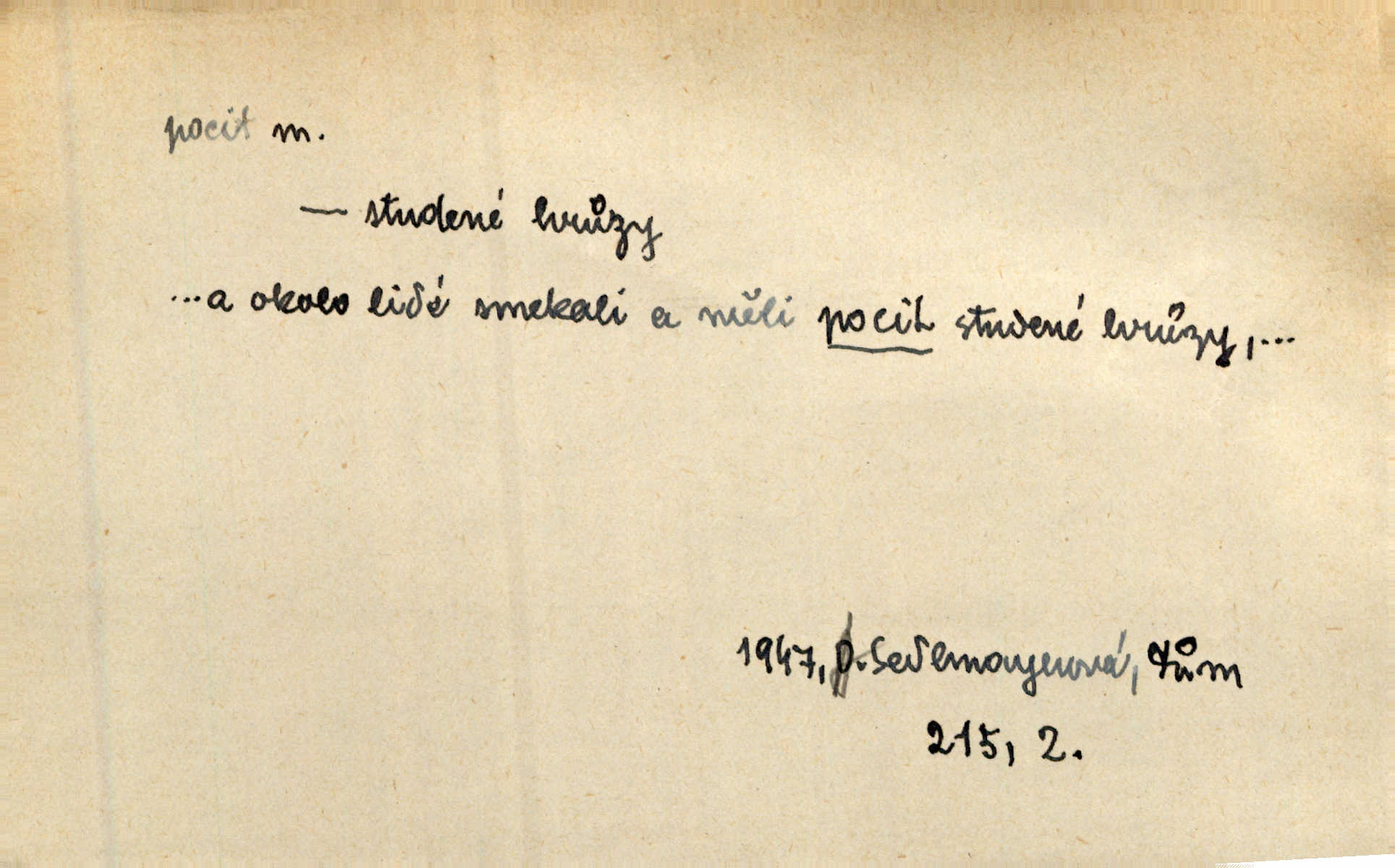 - pocit, -u m. citový zážitek něčeho příjemného n. nepříjemného. Pocit rozkoše projel mu celým tělem. Just. Libý pocit provanul ustrašenou duší její. Šmil. Ramena se zachvěla pocitem ošklivosti, jak se ho kat dotekl. Jir. Pocit nevolnosti, strachu naplňoval ho celého. Baar. Chuťové pocity lze rozdělit do čtyř základních kvalit: kysela, slana, sladka a hořka. Hovory. Měl pocit, jakoby ho dravá šelma držela v špinavé tlamě. Baar. D vědomí, uvědomění, ujasnění něčeho. Vymřel v nás pocit zodpovědnosti docela? Mach. Bylo mu úzko v tom pocitu vystřízlivění. Zey. V dnešní normální duši národní pocit převažuje nad pocitem přináležitosti k rodné vsi. Naše d. D cit. Nejvznešenější všech pocitů jest láska mateřská. Hál. Zápasily ve mně dva pocity: zvědavost a jistý odstín povinnosti. Šim. Pocit vzdoru zakmitl jí duší. Vach.