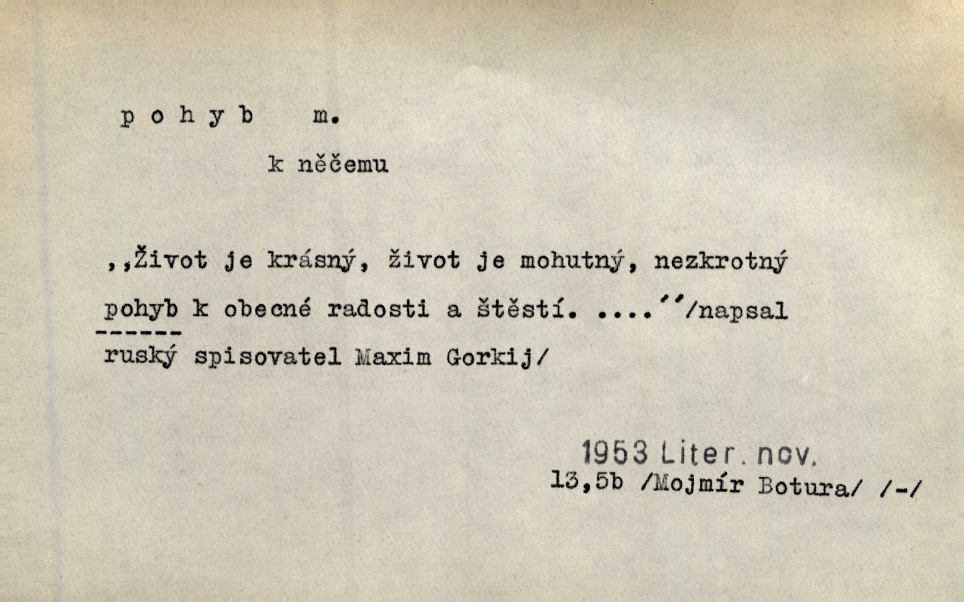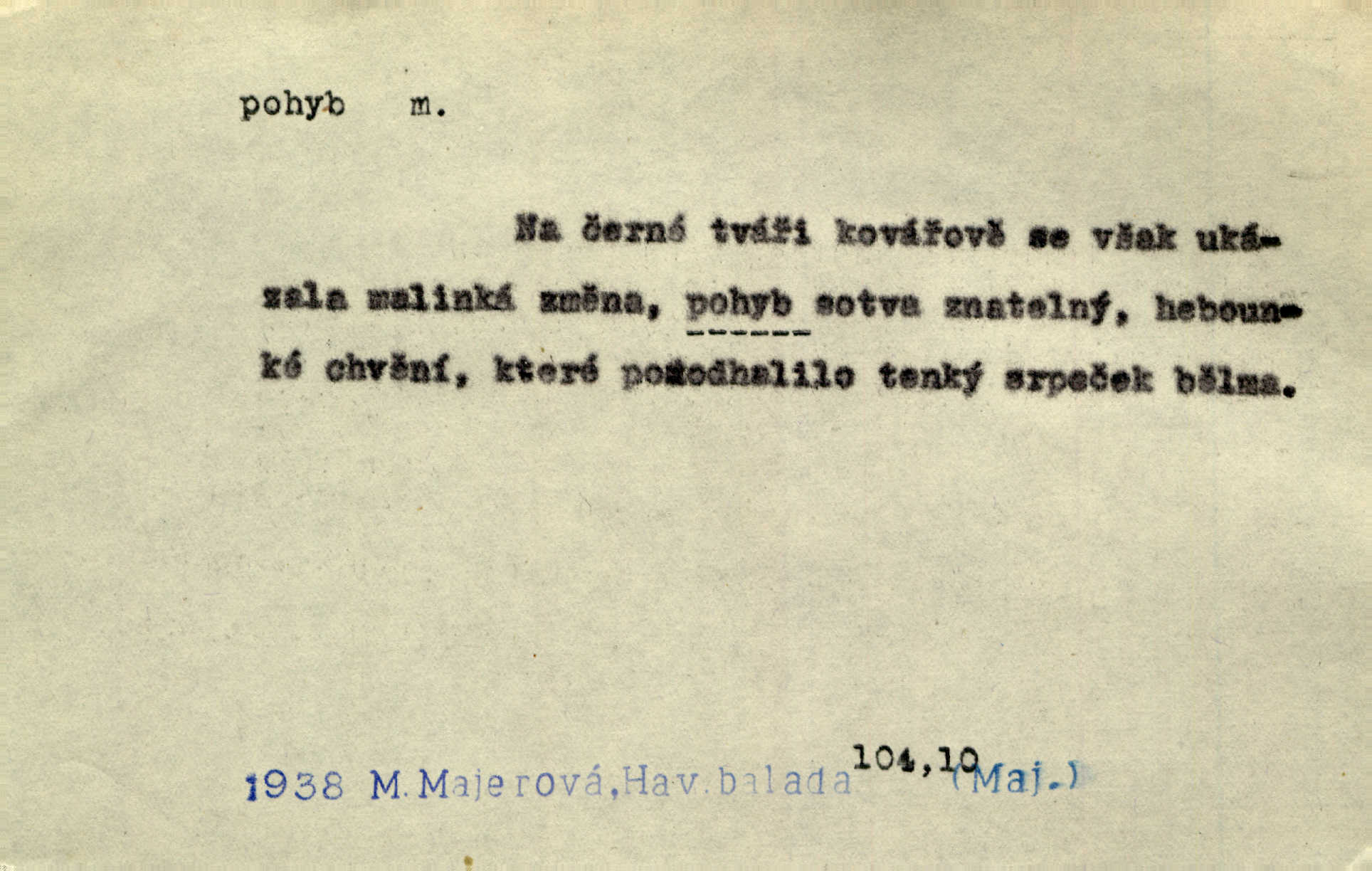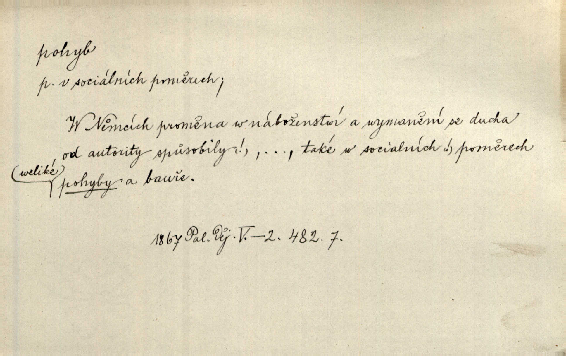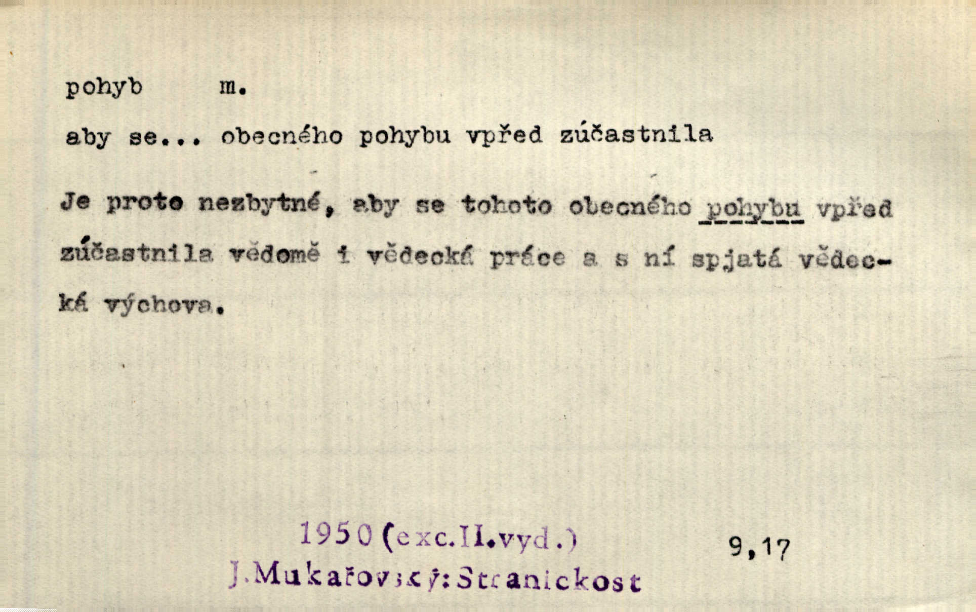 - pohyb, -u m. změna polohy těla n. některé jeho části. Svá slova provázel bezděčnými pohyby. Dyk. Děkan kulatým, vyškoleným pohybem přehodil štolu přes ruce snoubenců. Til. Přivítal ji několikerým pohybem hlavy. Rais. Cikán komediantským pohybem krku, rukou a celého těla dává bolesť na jevo. V. Mrš. Pes u mých nohou bez pohybu sedí. Mach. Každý pohyb Vácslavův byl mladě svěží. Ner. Pozoroval splašené, nezřízené pohyby svého Floka. V. Mrš. Každý jeho pohyb byl vždy odměřený. Svět. Fysiol. pohyb pudový, reflexní, vědomý. D změna polohy tělesa v prostoru. Přívozník s pomocníkem přivedli prám do pohybu. Kun. Selka uváděla hejčedlo v houpavý pohyb. Jir. Co tam větvemi se míhá? Kníže juž běh svého vrance staví a každý pohyb větví čile stíhá. Pfleg. Fys. pohyb přímočarý, křivočarý, postupný, otáčivý, kmitavý a j. Geol. pohyb epirogenetický (horotvorný), tektonický a j. Voj. pohyby vojska posuny, přesuny. D stále se opakující n. souvislé pohybování, kolování, činnost něčeho, oběh, cirkulace. Pohyb nebeských těles je vlastně jen tancem. Ner. Můj život jest mnohem jednotvárnější než pohyb hvězd. Vrch. Rozmanití cizinci, vířivá hudba a celý majestátní pohyb lidstva [v Benátkách] — je to obraz nade všechen popis krásný! Ner. Kolik prostředků technických i peněžních bylo tu [na světové výstavě] uváděno v pohyb, aby bylo lze zmocniti se diváka. Přít. Astron. pohyb denní, roční, sekulární a j. Hud. postup hlasů: pohyb rovný, smíšený a j.; rychlost hry, tempo: pohyb klidný, pomalý, rychlý a j. D stálá změna, stálé nabývání jiného vzhledu, rázu, podoby. [Básníci] vidí před sebou svět v pohybu a proměně. Götz. Po pět a půl roku není přesnějších měřítek pro posouzení pohybu životní úrovně. Právo l. Půda není zboží a její prodej znamená více než pohyb statku od výrobce ke spotřebiteli. Čteme. Jsou v politice jen dvě věci těžky, jedna: pohyb rozpoutat, druhá: pohyb v pravý čas zarazit. Ner. Březina je básník dramatický, plný vnitřního pohybu a vlnění. Šal. Sociol. pohyb obyvatelstva změna v jeho počtu. Obch. pohyb cen měnění cen (snížení n. zvýšení); pohyb zboží souhrn změn ve stavu zboží (nákup a prodej).