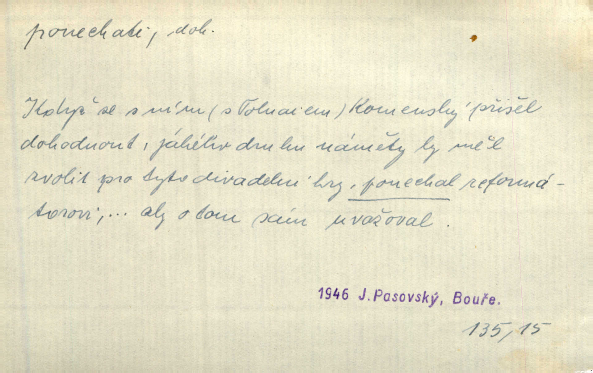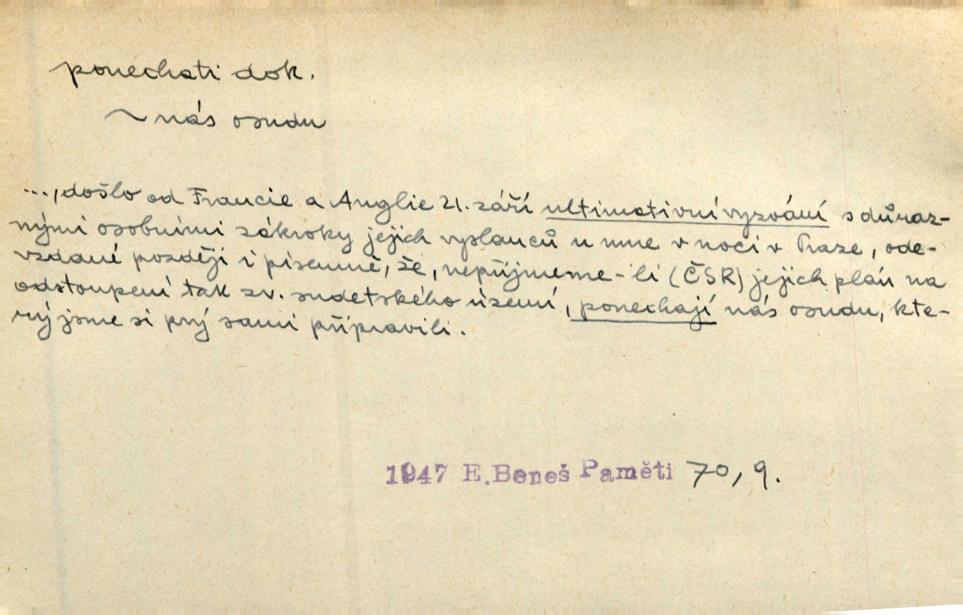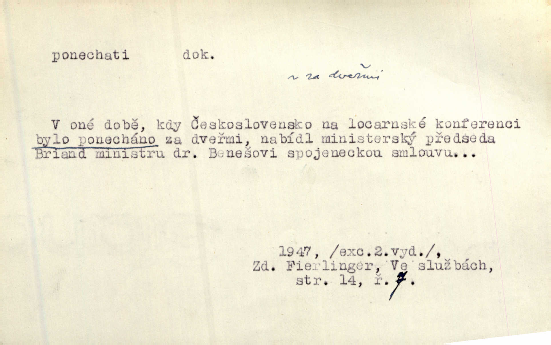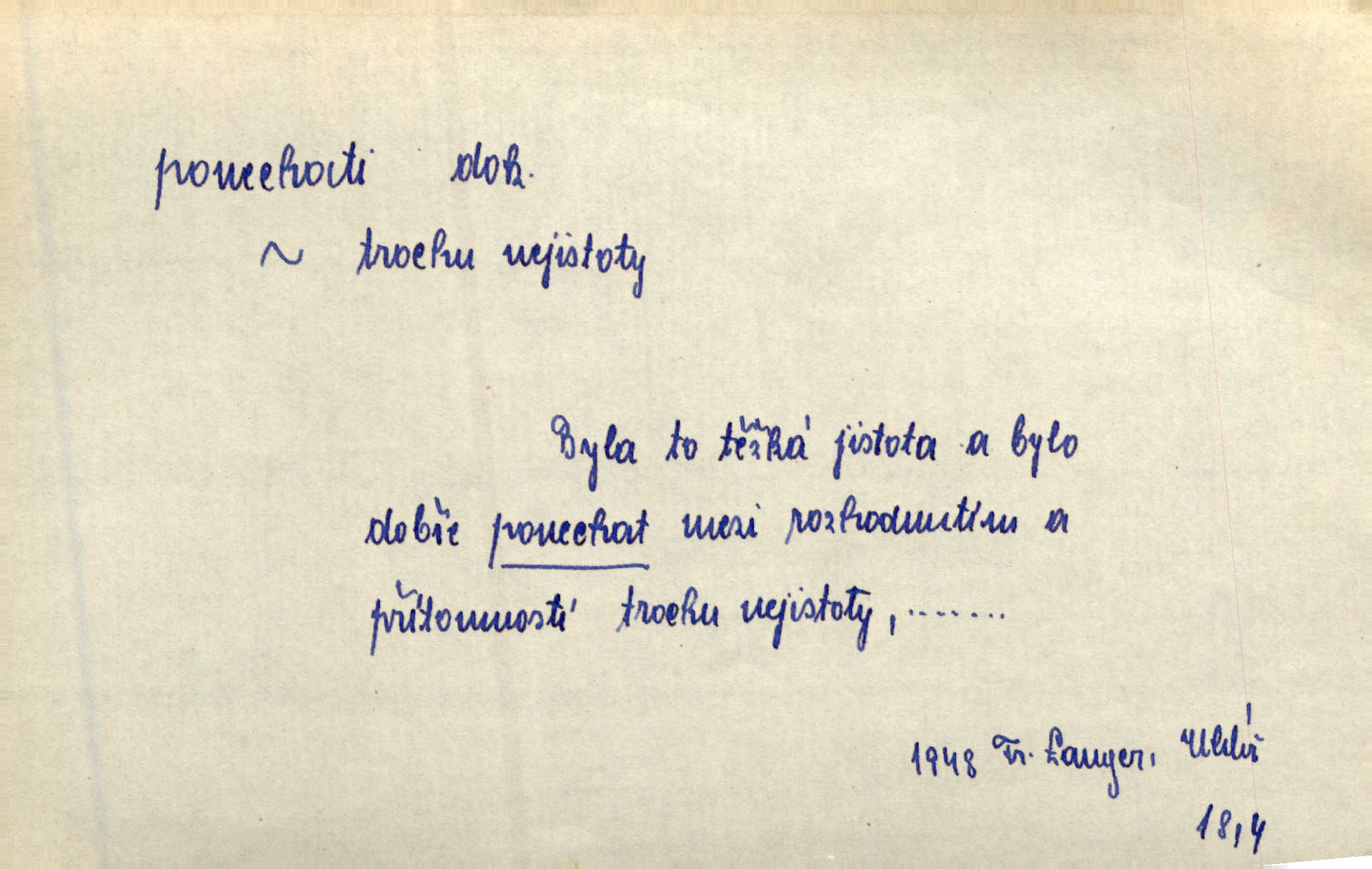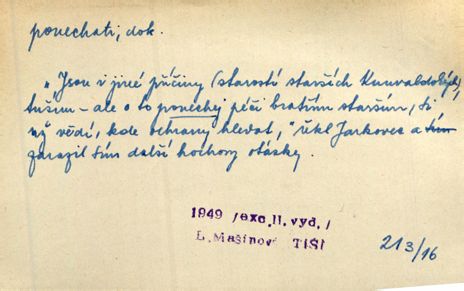 - ponechati dok. zůstaviti, dopustiti, nezabrániti. Zdálo se, že nás [teta] ponechala úplně našemu osudu. Obr. živ. Nejlépe bude, ponechají-li věcem průběh přirozený. Svět. Vyrval se z náruče její, ponechav ubohou žalu. Choch. Dospěv středu řeky, ponechal loďku proudu. Čap. Ch. Bylť nyní svoboden, nevázán, sám sobě ponechán. Pfleg. Dcerušku na chvíli ponechala samé sobě. Prav. Ostatní zatím ponecháni na pokoji. Hál. Ponechal jsem mu na vůli, zastaviti se, kde se mu bude líbiti. Prav. Dnes jen netrpělivě [matka] hlavu od něho odvrátila a ponechala mu slovo poslední. Svět. Když jí řekli, že ji nemohou ponechat na noc, div se nerozplakala. R. Svob. D (koho kde) podržeti někoho v dřívějším stavu, neodstraniti někoho odněkud. Jsem vám velmi povděčen, že jste mne ve službě ponechala. Pfleg. Synové ponecháni zatím ve službě. Jir. Pro zločin veřejného násilí ponechán ve vyšetřování. Herb. Nevíš, jak dlouho tě Pán Bůh zde na světě ponechá. Prav. Pertolta z Valdštejna má [král] také zajmouti, ale na živu jej ponechati. Pekárek. Vždycky užitek my větší máme, když v hlouposti ho [lid] trochu ponecháme. Ner. D (komu co, co kde) neodejmouti někomu něco, nezbaviti někoho něčeho, neodkliditi něco odněkud. Dar ponechám mu, nezruším svůj slib. Zey. Všecko, co jí dal, také jí ponechal. Mrš. Zapraven poplatek za další ponechání hrobu. Herrm. Ve slovech cizích ponechání orthografie cizí čtenáře českého másti mohlo. Pal. Ve svém stolku ponechati může práce ještě nezralé. V. Mrš. V ruce nesla vrbový proutek zcela hladký, pouze na konci s chvostem ponechaného listí. Svob. Velmistru ponechána moc, rozsudek umírniti. Choch. Ponechala se obci samé péče o její vlastní záležitosti. Tomíč. D zůstaviti, zanechati. Minuly žně, hrozné pro něj žně, nebo všecko musil ponechat cizím lidem. Jir. Tu knížku mi tu ponechte, za několik dní si sem přijďte. Pfleg. Petr ponechal své ženě dům i pole, peníze však určil k rozdání chudým. Goll. Pro nedostatek místa musíme úvahu o provedení ponechati pro číslo budoucí. Zl. Praha. Což snad zamýšlíte ponechati pana Josefa doma? Pfleg. Možno i, že je působivým trestem, ponechati někoho v místnosti tmavé. Ner. Svolil ponechati věc do svého návratu do Prahy. Podl. Ponechala podezření své u sebe. Paleč. D přenechati, přepustiti. Nesmí ji [sedlák žeň] na trzích prodati, nýbrž vrchnosti ji ponechati za cenu, kterou si sama určí. Svět. Markrabí zavřel se do pevného Znojma a ponechal otevřený kraj Čechům. Ritt. „Začni tedy a ponech úsudek nám,“ doložil doktor. Svob. To ponecháme učencům, jsou-li „kamna“ původní, naše jméno. Jir. Byla tak vůle bohů… Pomstu ponechte jim. Třeb. D ponechati si (co) podržeti u sebe něco, neodložiti něco, nevzdati se něčeho. Nemoha dohlížeti na hospodářství, ponechal si jen několik mír pole na setí. Herb. Mlynář si honitbu ponechal, ale sám stříleti neuměl. Svob. Dlouho vybírala [šátky] ptajíc se, který si má ponechati. Rais. Není mi třeba věna, ponechte si vše. R. Svob. Ponechal si svůj úsudek o této žádosti pro sebe. Svět. Rozhodnutí si ponechala na příští neděli. Svob. Na konec ponechali si stavové poslední, největší trumf. Rez.