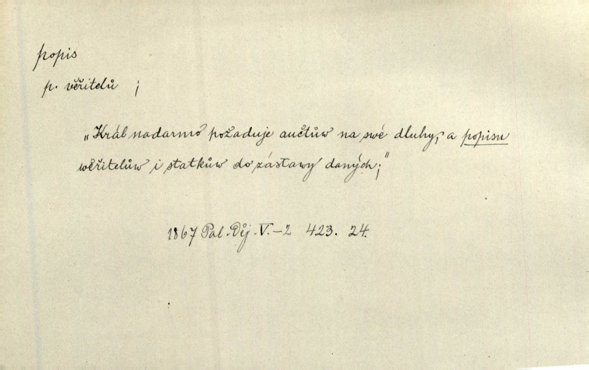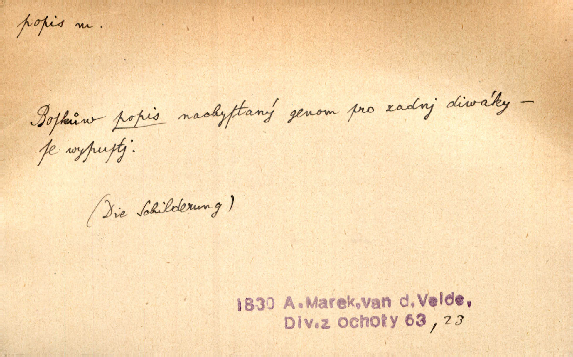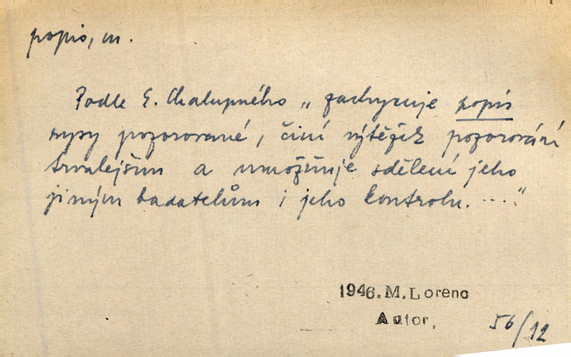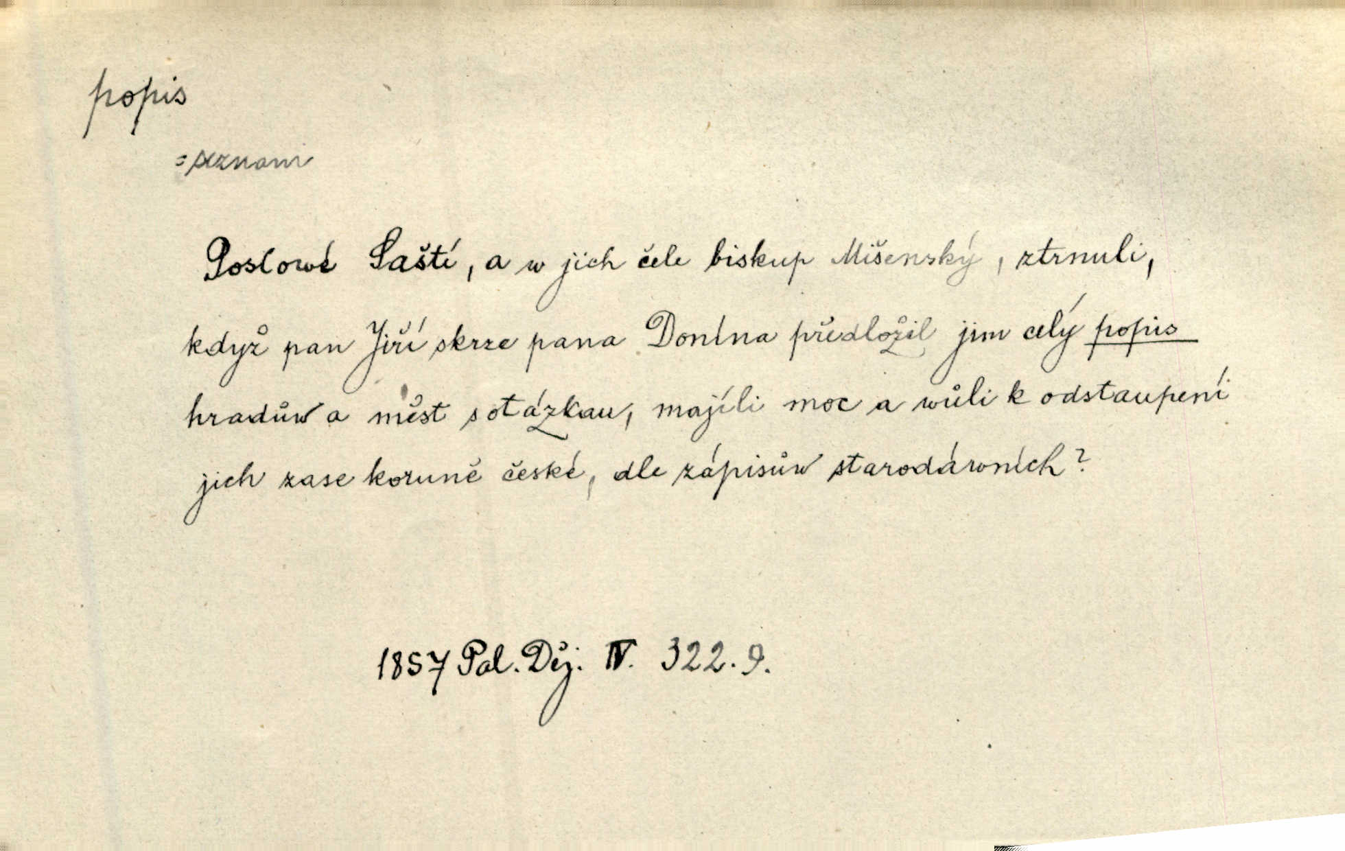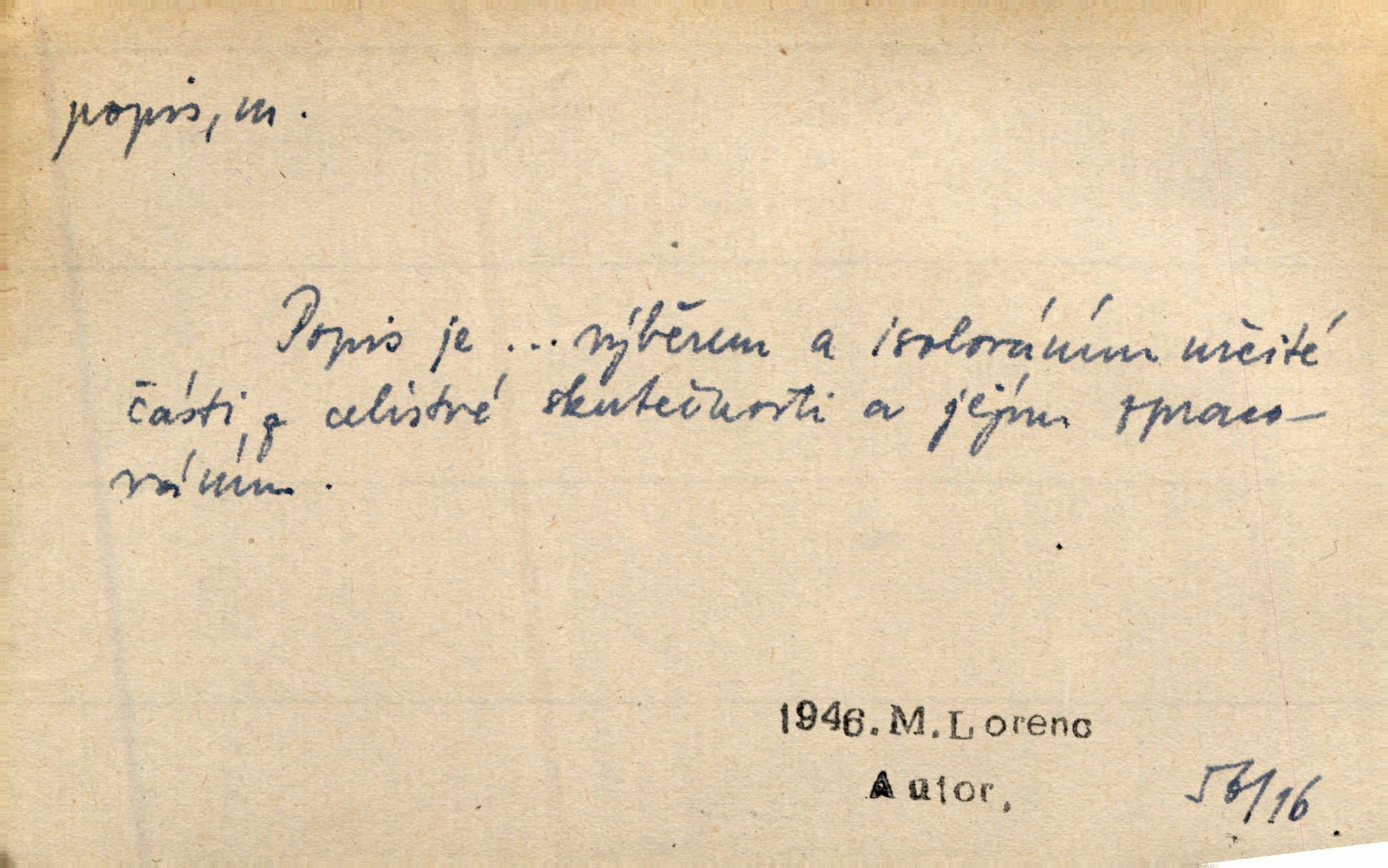 - popis, -u m. souvislá charakteristika podoby někoho n. něčeho. Přikročíme k popisu osad, které na Dyji leží. Bran. Následuje obšírný, dosti básnický a ozdobný popis celé slavnosti. Havl. O pohádku se [Wilde] více zajímá než o přesný popis každodennosti. Kar. Dle tvého popisu jsem chatu našel. Vrch. [Pojezdná] každý týden podrobný popis o tom, co se ve dvoře dělo, zaslati měla. Svět. Střih i s popisy provedení. Hvězda. Villemain vycítil nedostatek methody věd přírodních, která usiluje jen o klassifikaci a popis. Tille. Popis jest až dosud nejrozšířenější formou sociologické literatury. Chalup. D výčet charakteristických znaků osoby, který slouží k zjišťování. [Soudní komise] dala si dívku popsati; ale když souhlasný popis svědkyň porovnán s popisem v čelední knížce, shledáno, že popisy — nesouhlasí. Arb. [Hrabal] musil udati, jak [Josef] vyhlíží, co na sobě měl a co s sebou vzal, když mu utekl. Popis ten se vsadil do novin. Prav. Telegrafujeme, aby byl zadržen cestující na lůžku číslo 14. Můžete nám dát jeho přesný popis? Lid. nov. Malíř ho ihned poznal dle popisu Kalinova. Jir. Zool., bot., fys. a j. odborný výčet znaků něčeho. Úř. kvalifikační popis ocenění osobních vlastností veřejných zaměstnanců, důstojníků a p. Knihovn. část zpracování knihy v knihovně. D soupis, sčítání. Petrohradský mezinárodní kongres statistický z r. 1872 zařadil „La langue parlée“ mezi skutečnosti, jež obligatorně mají býti při všeobecném popisu lidu zjišťovány. Čes. pol. D Tech. popis výkresu, rysu, náčrtku a p. číslice, písmena a nápisy. Zem. popis mapy jména měst, hor, řek a p.