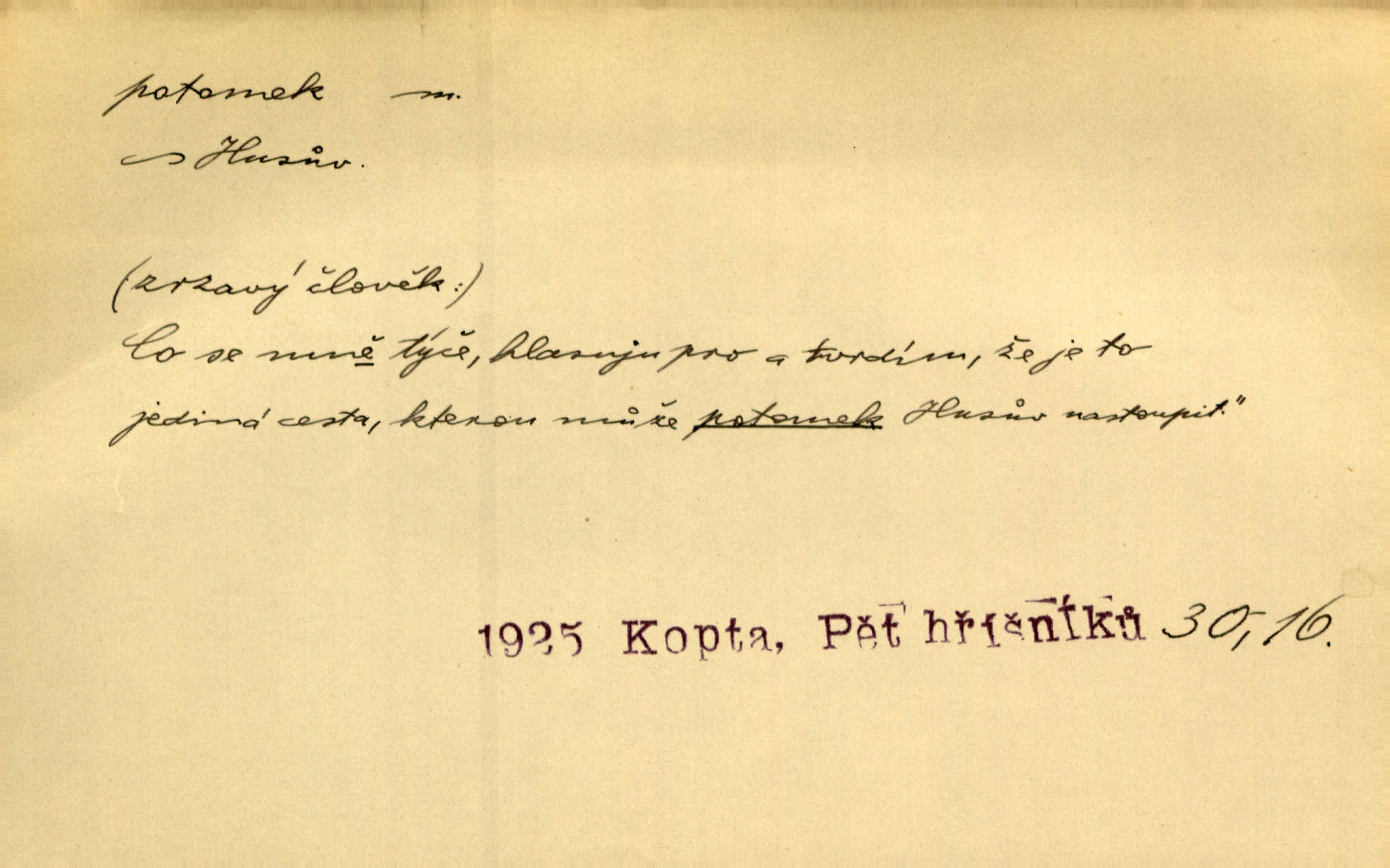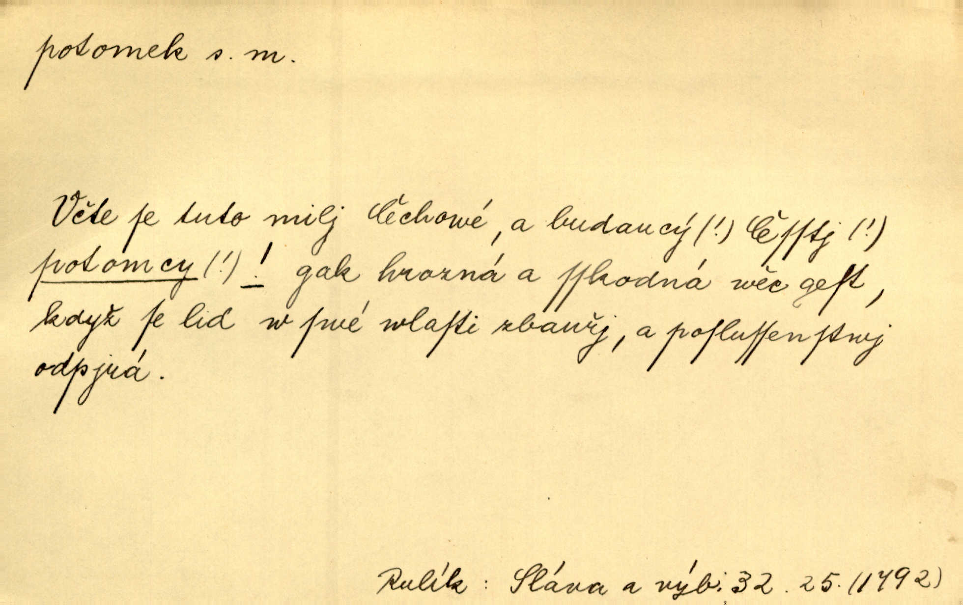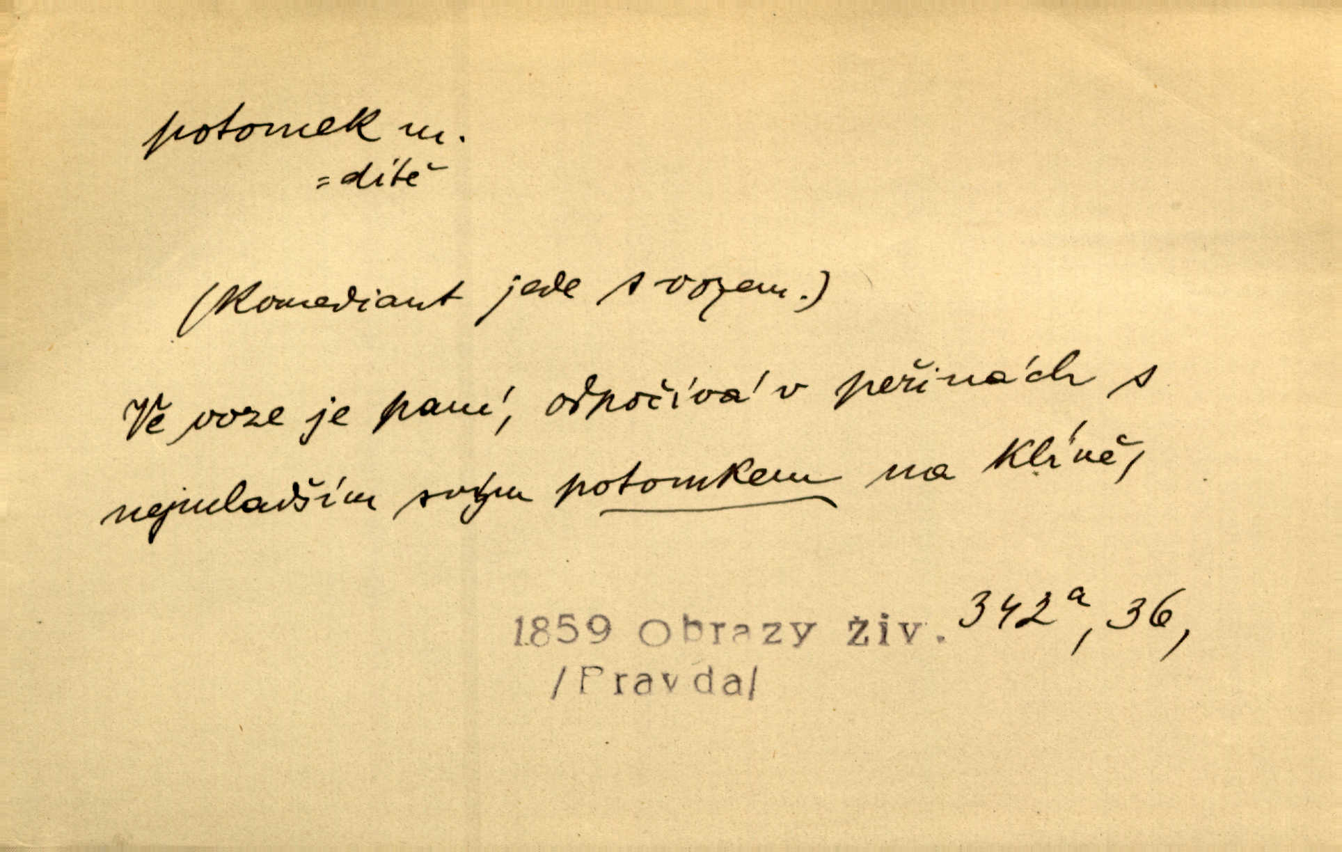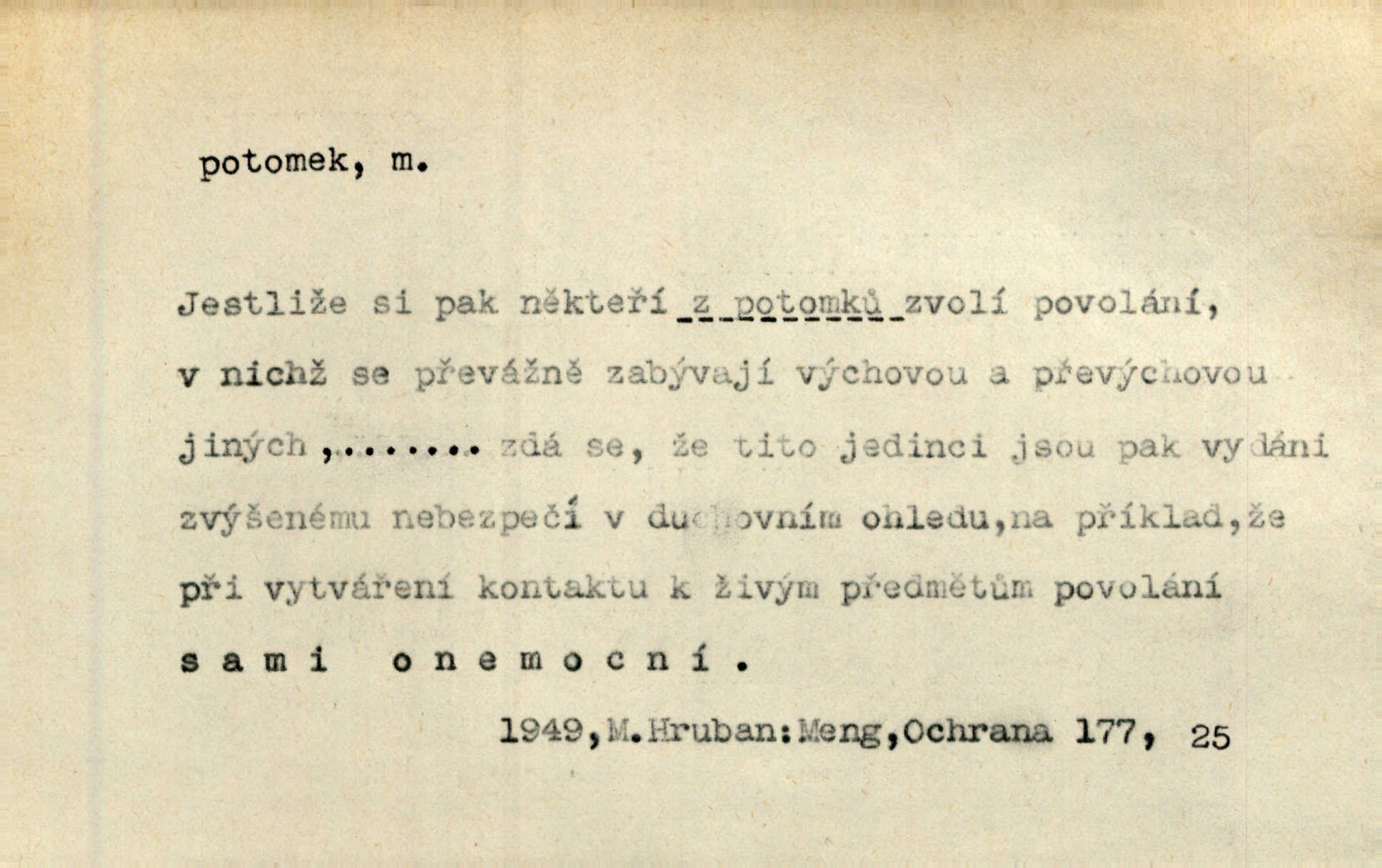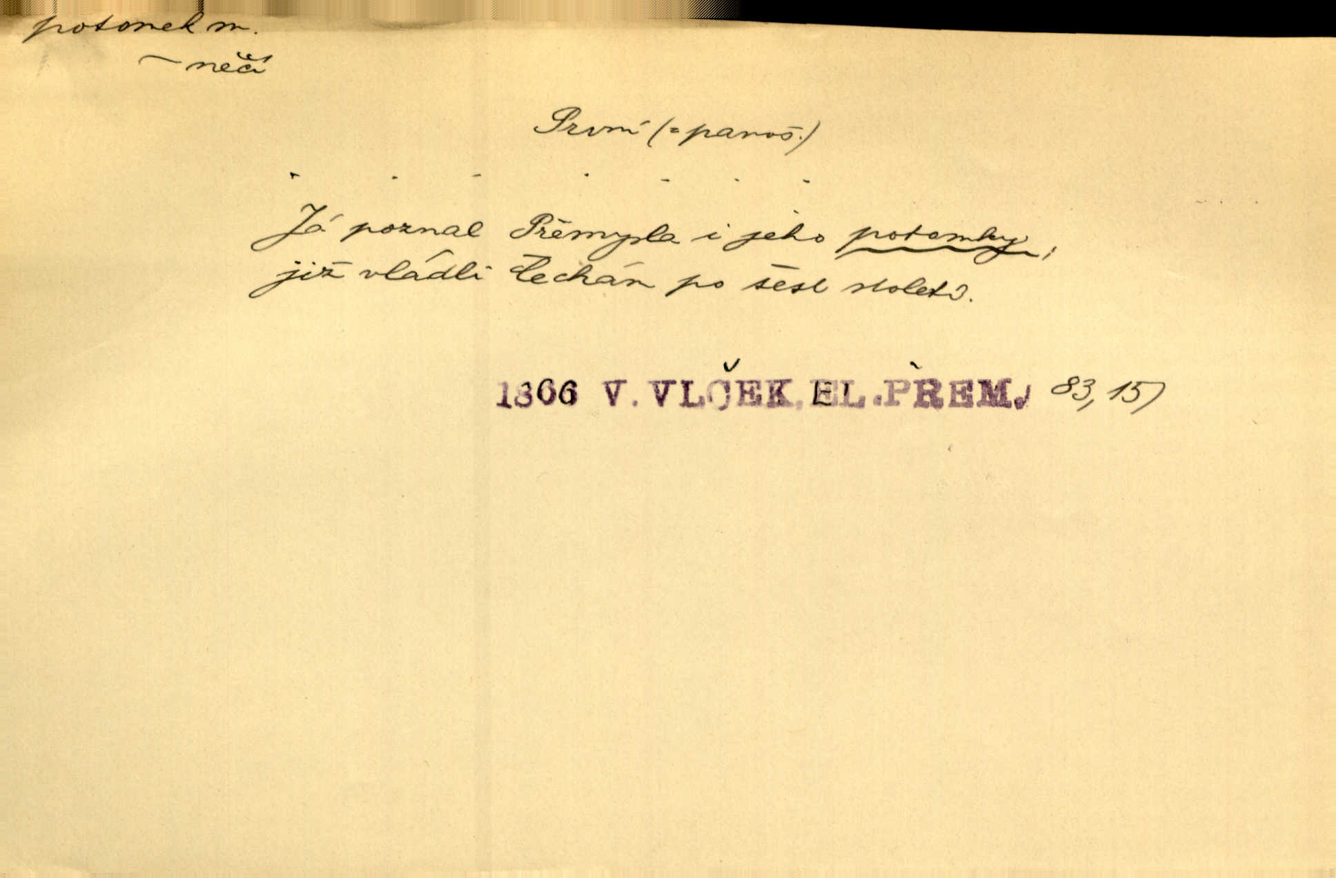 - potomek, -mka m. kdo z někoho přímo n. nepřímo pochází, syn, vnuk atd. Všichni vespolek mají sobě pomáhati, čeho předkové začali, aby potomci jejich dokonali. Tomek. Poslední potomek starého rodu po meči náhle skončil svůj život. Hlad. „A není žádných dědicův?“ „Ani potomkův ani příbuzných.“ Jir. Ve voze je paní s nejmladším svým potomkem na klíně. Prav. Přen. Učiněn pokus, zdali by nebylo možno dopátrati se přímých potomkův oněch keřů, jichž vlastnosti byly tak vynikající. Her. D člen pozdější generace. Klar dobyl si lidumilým působením vděčného uznání souvěkých a památky u potomkův. Zel. Co se mne týče, hlasuju pro a tvrdím, že je to jediná cesta, kterou může potomek Husův nastoupit. Kop. Bratří Čeští, potomci Husovi, od cizincův po celé století nazýváni byli „bratřími Valdenskými“. Pal. Romantism, svým původem buržoasní a revoluční, zplodí radikální subjektivism symbolistů, estétů, Baudelaira, Verlaina, Rimbauda a potomků. Šal.