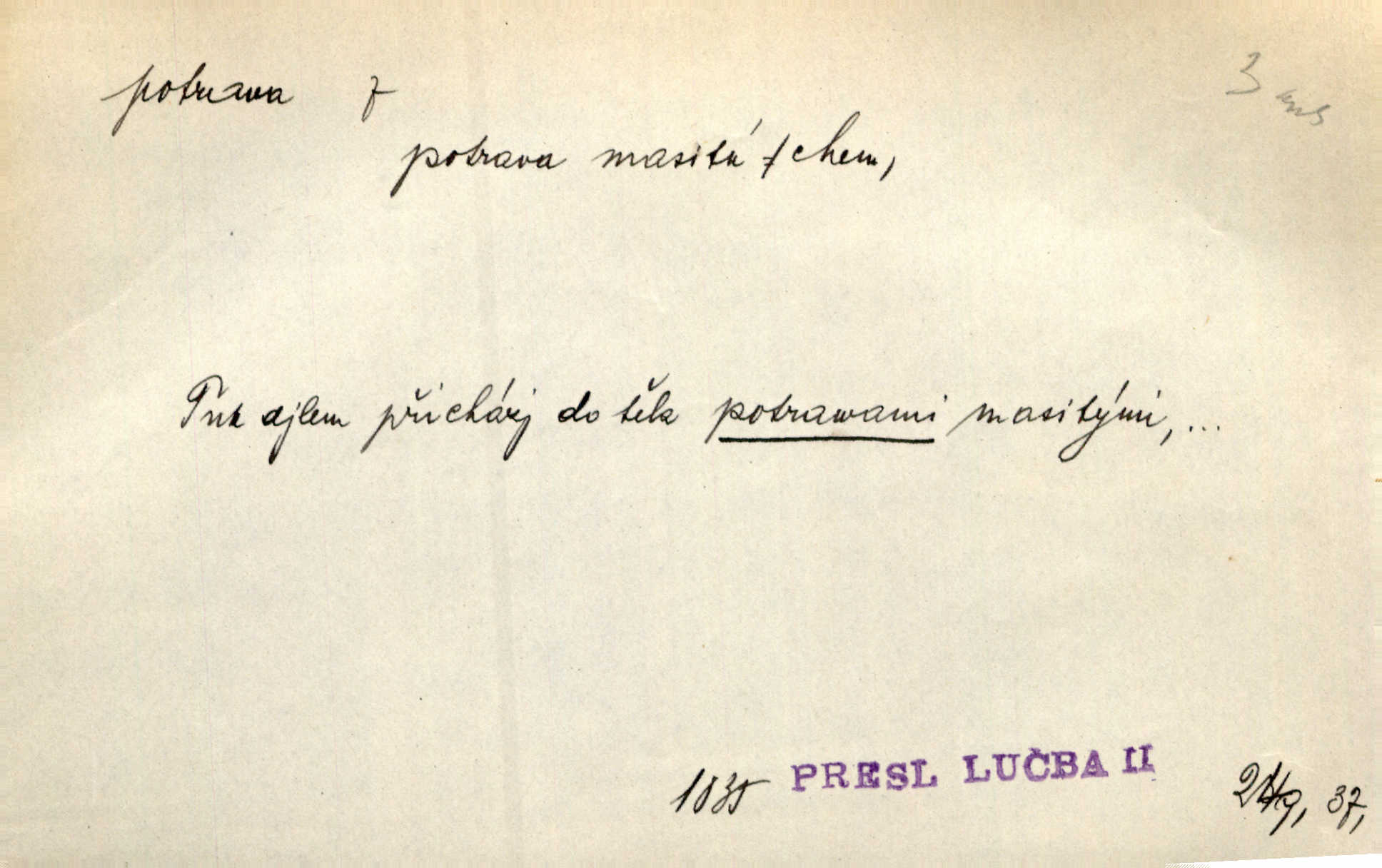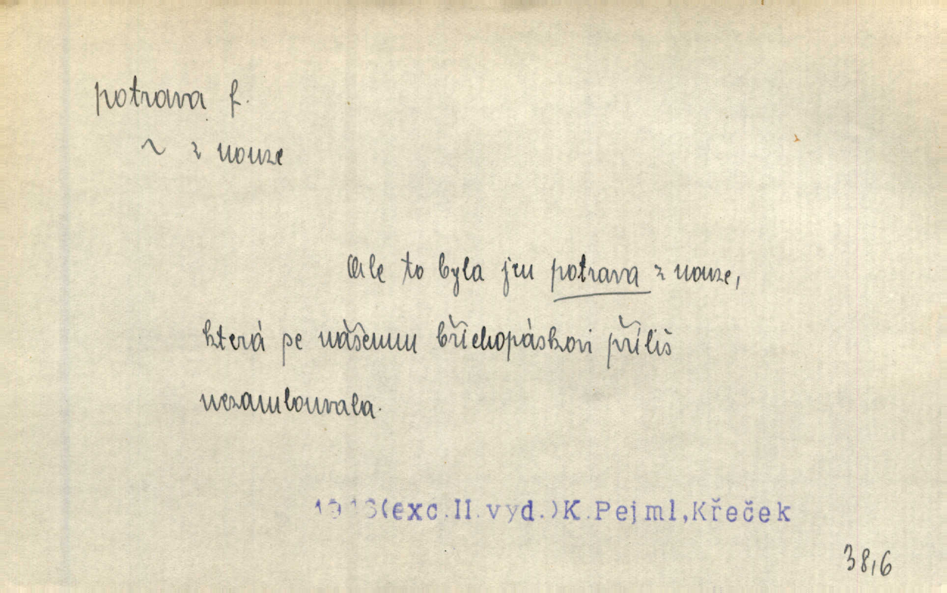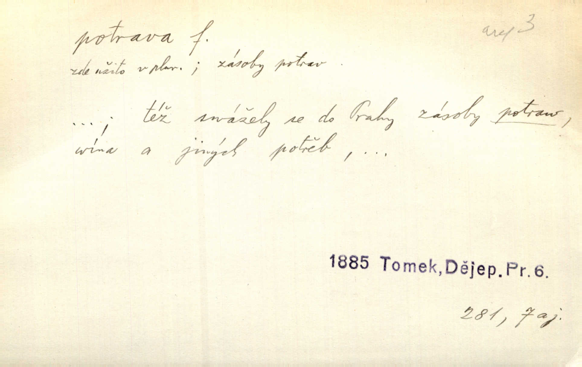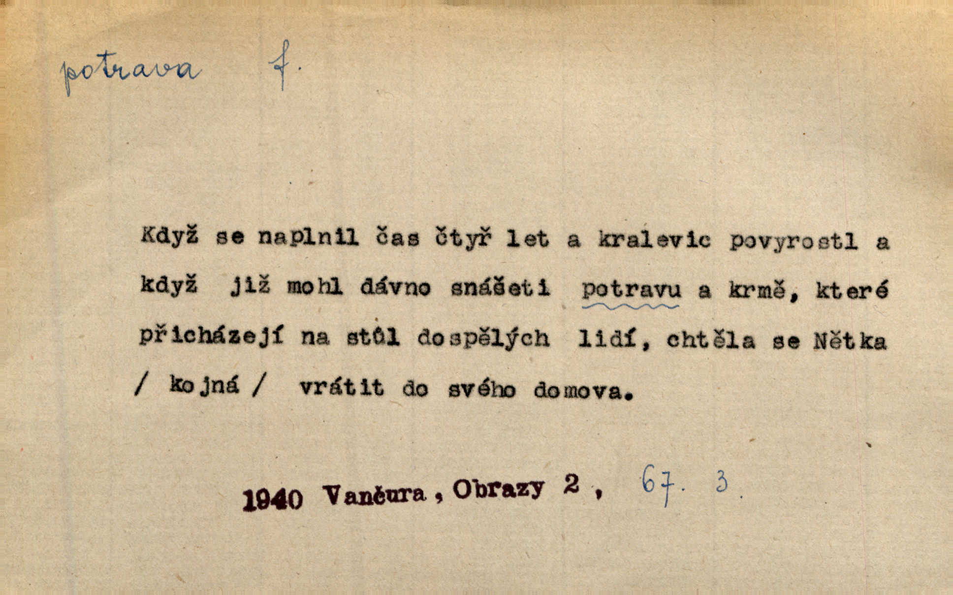 - potrava, -y f. (pl. jen arch.) živné látky, jež přijímají tvorové, zvl. lidé, k výživě; pokrm, jídlo, krmivo, píce a pod. Nasycoval útroby těla svého potravou. Sab. Na zádech nesly si [poutnice] ranečky, v nichž měly potravu. Něm. Nebylo nikde [v lese] potravy, ani jediné jahody, ani jediného zrnka! Zey. [Ptáci] najdou potravu v poli. Sab. [Krávy na jetelišti] širokými tlamami nabíraly čerstvou paličkatou potravu. Rais. Sklepy a špižírny byly všelikými potravami a nápoji hojně zásobeny potravinami. Čel. Hosp. směs živin a krmiv. Bot. všechny látky, jež rostliny přijímají svými listy jako plyny a svými kořeny z půdy jako roztoky. D vůbec látka něco udržující, podněcující, posila. Dříví se hodí nad jiné pod kotel, protože jest nejrychlejší potrava ohně. Vilikovský. [Výstava,] kde zrak má tolik potravy. Ner. Marnivost, která si hledala potravu v parádě, v šatech. Hál. Každého dne dostávalo se nějaké potravy mému podezření. Herb. Vycházky poskytovaly čerstvou potravu zábavám. Šmil. V městech denníky jsou jedinou skoro potravou duševní. Herb. [Gutenberg] svým vynálezem umožnil, aby všichni hrali podíl na duchovní potravě. Lit. noviny.