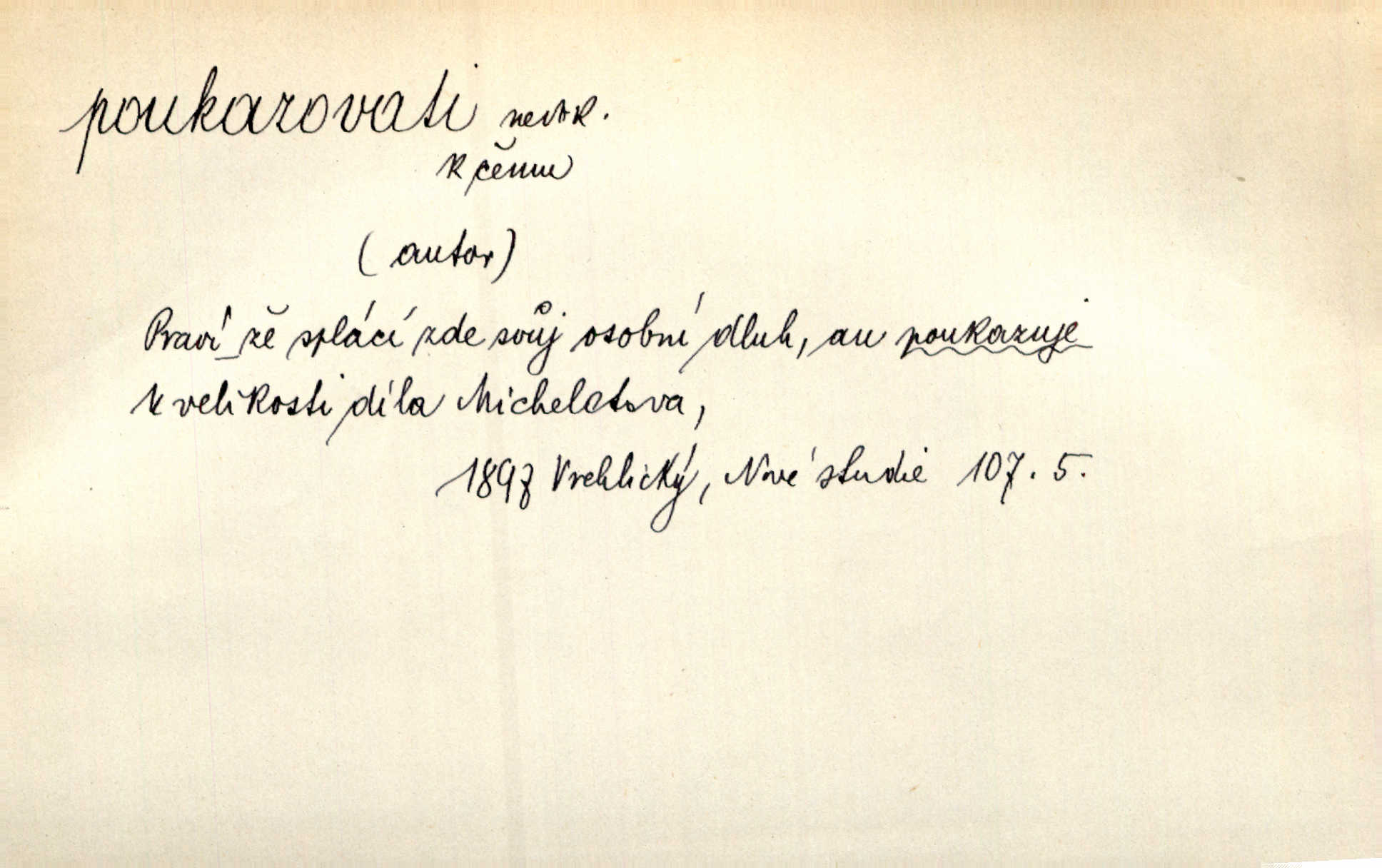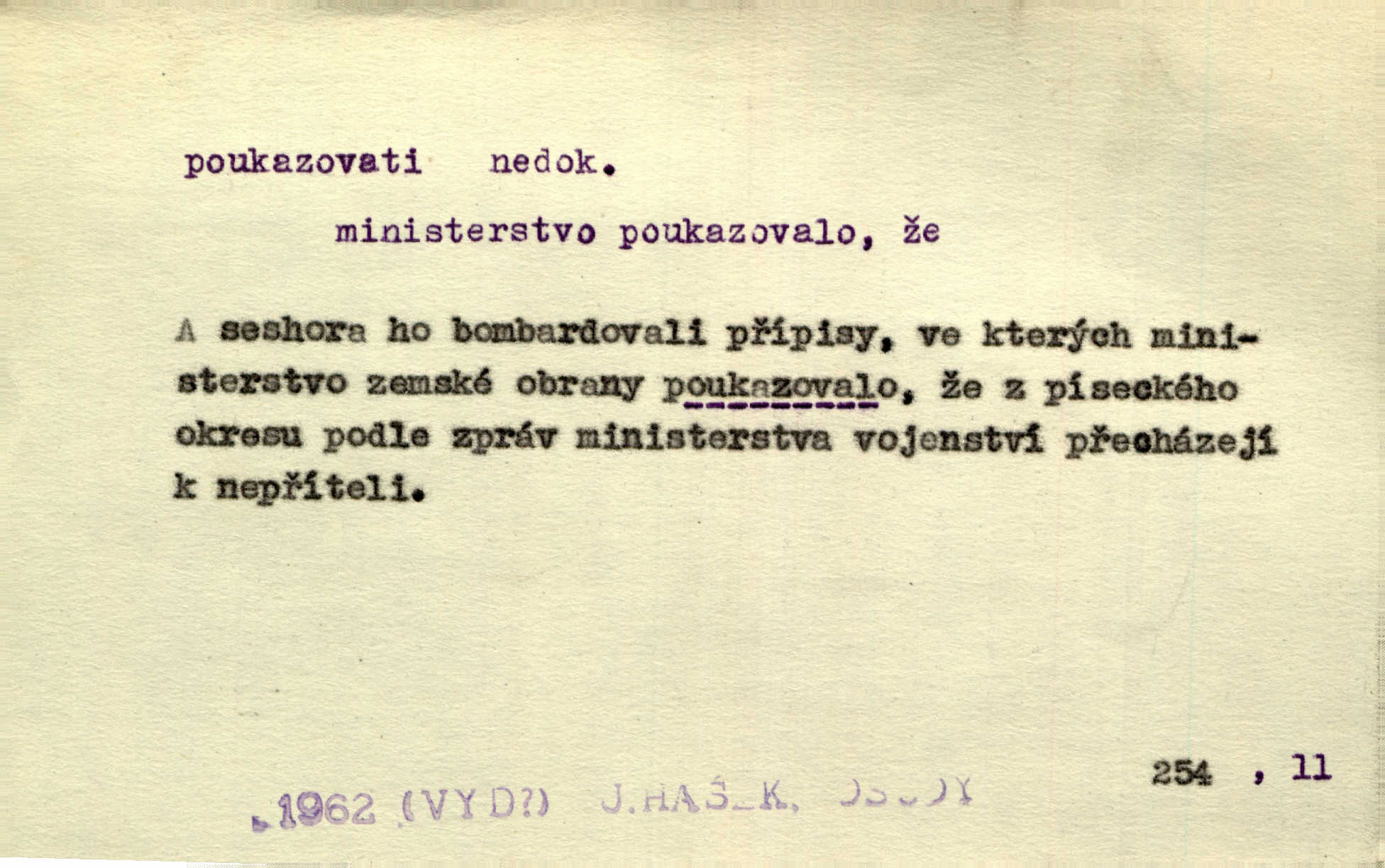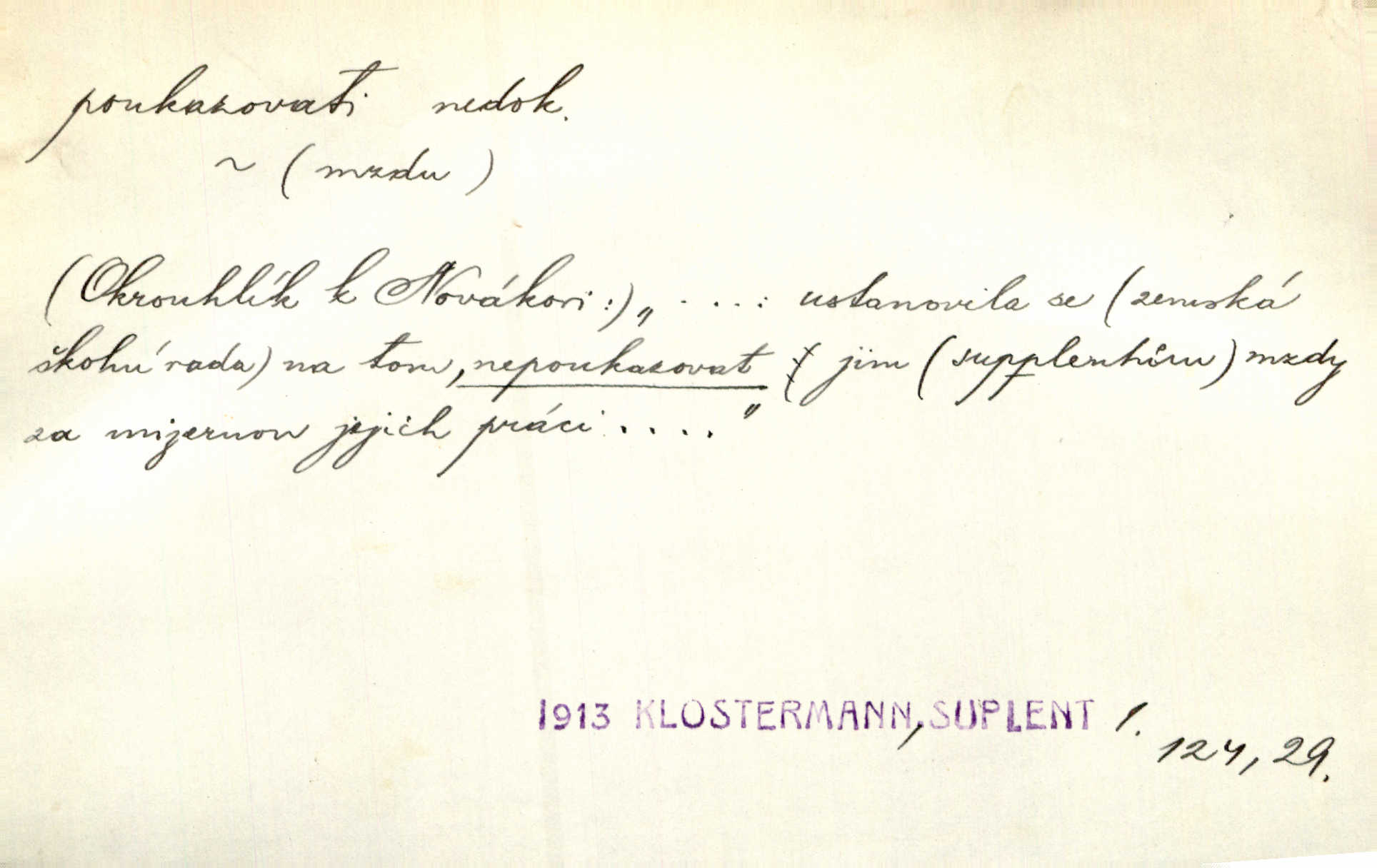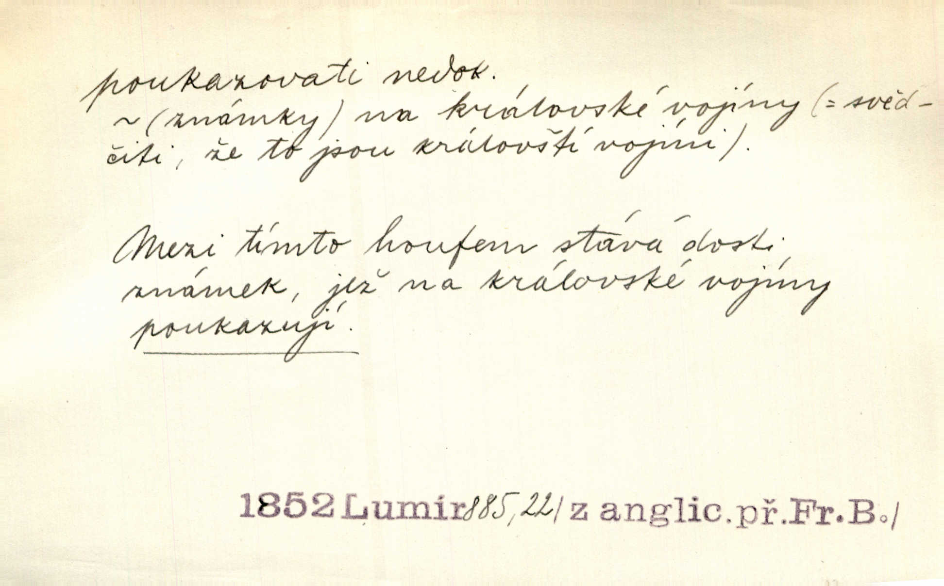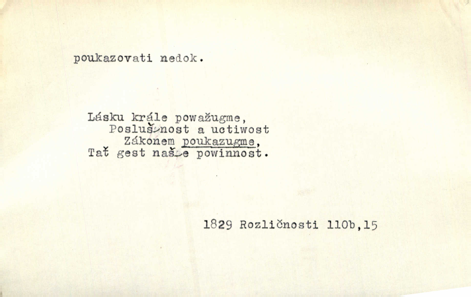 - poukazovati ned. jistým pohybem ruky n. prstu ukazovati. Rozčilil se zas, a poukazuje mokrým šátkem od potu, volal za ním mávaje. V. Mrš. D upozorňovati, obraceti pozornost. Poukazuji p. prokurátora na to, co ukazuje skutečnost. Havl. P. Karásek důrazně poukazoval v „Nivě“, že starší poesie p. Sládkovy jsou neprávem zapomínány. Mach. Poukazuji na motivování, na psychická hnutí u jednotlivých osob. Zey. Z počátku jen jaksi mimochodem na to [pohoršlivé chování žebráků] poukazováno. Arb. D býti dokladem, důkazem, svědectvím něčeho, svědčiti pro něco. Nejstarší listina poukazuje na to, že se dříve v okolí Jílovském zlato ze zlatonosného písku vypíralo. Lum. Prvotiny Máchovy poukazovaly na zcela jiný směr, nežli v jakém se později osvědčil. Sab. D přikazovati. Každý poukazující úřad má koncept poukazu. Předp. zahr. min. Práv. dávati příkaz osobě jiné, aby plnila osobě třetí. Poukazovati výplatu.