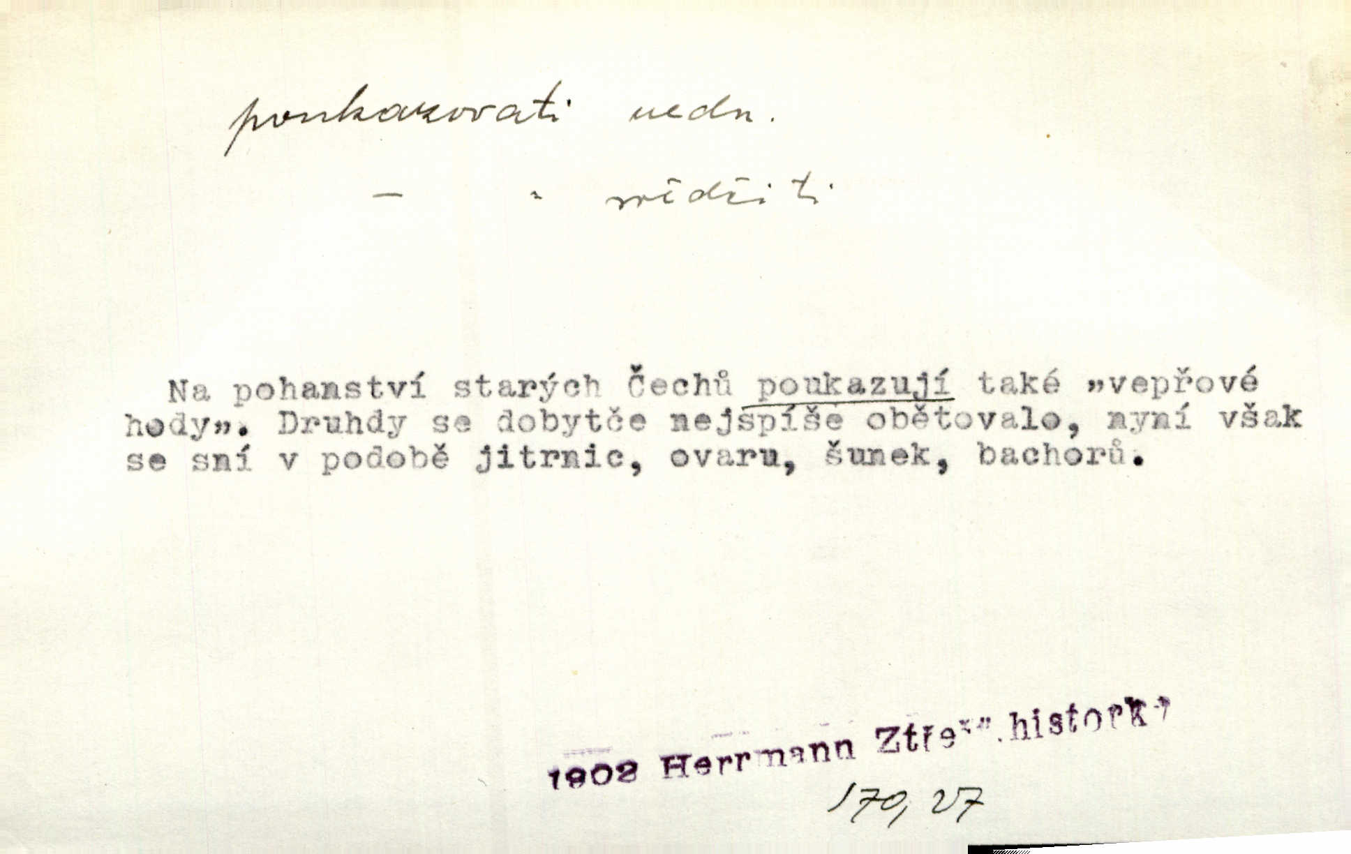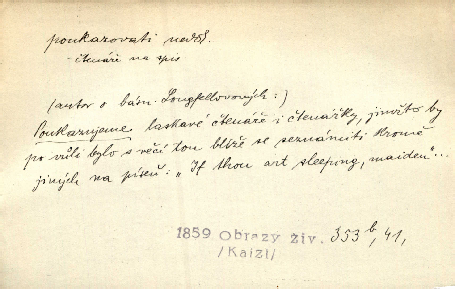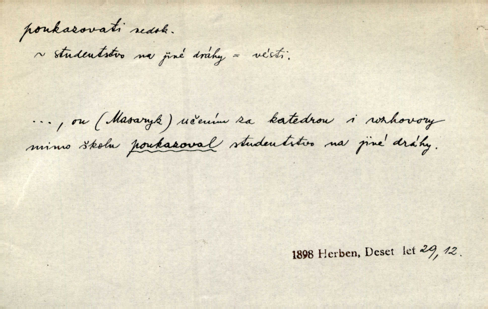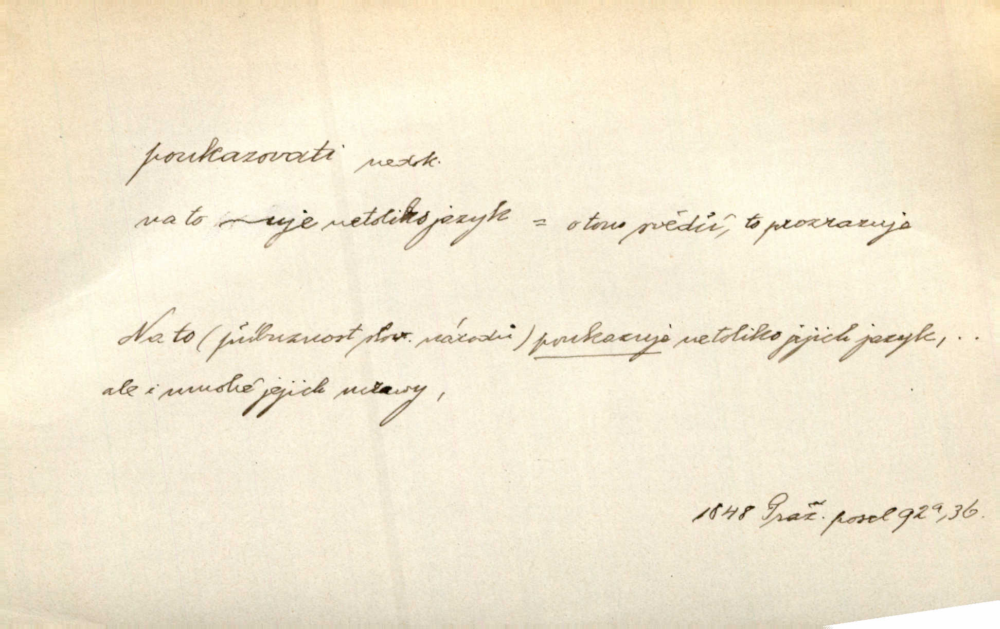 - poukazovati ned. jistým pohybem ruky n. prstu ukazovati. Rozčilil se zas, a poukazuje mokrým šátkem od potu, volal za ním mávaje. V. Mrš. D upozorňovati, obraceti pozornost. Poukazuji p. prokurátora na to, co ukazuje skutečnost. Havl. P. Karásek důrazně poukazoval v „Nivě“, že starší poesie p. Sládkovy jsou neprávem zapomínány. Mach. Poukazuji na motivování, na psychická hnutí u jednotlivých osob. Zey. Z počátku jen jaksi mimochodem na to [pohoršlivé chování žebráků] poukazováno. Arb. D býti dokladem, důkazem, svědectvím něčeho, svědčiti pro něco. Nejstarší listina poukazuje na to, že se dříve v okolí Jílovském zlato ze zlatonosného písku vypíralo. Lum. Prvotiny Máchovy poukazovaly na zcela jiný směr, nežli v jakém se později osvědčil. Sab. D přikazovati. Každý poukazující úřad má koncept poukazu. Předp. zahr. min. Práv. dávati příkaz osobě jiné, aby plnila osobě třetí. Poukazovati výplatu.