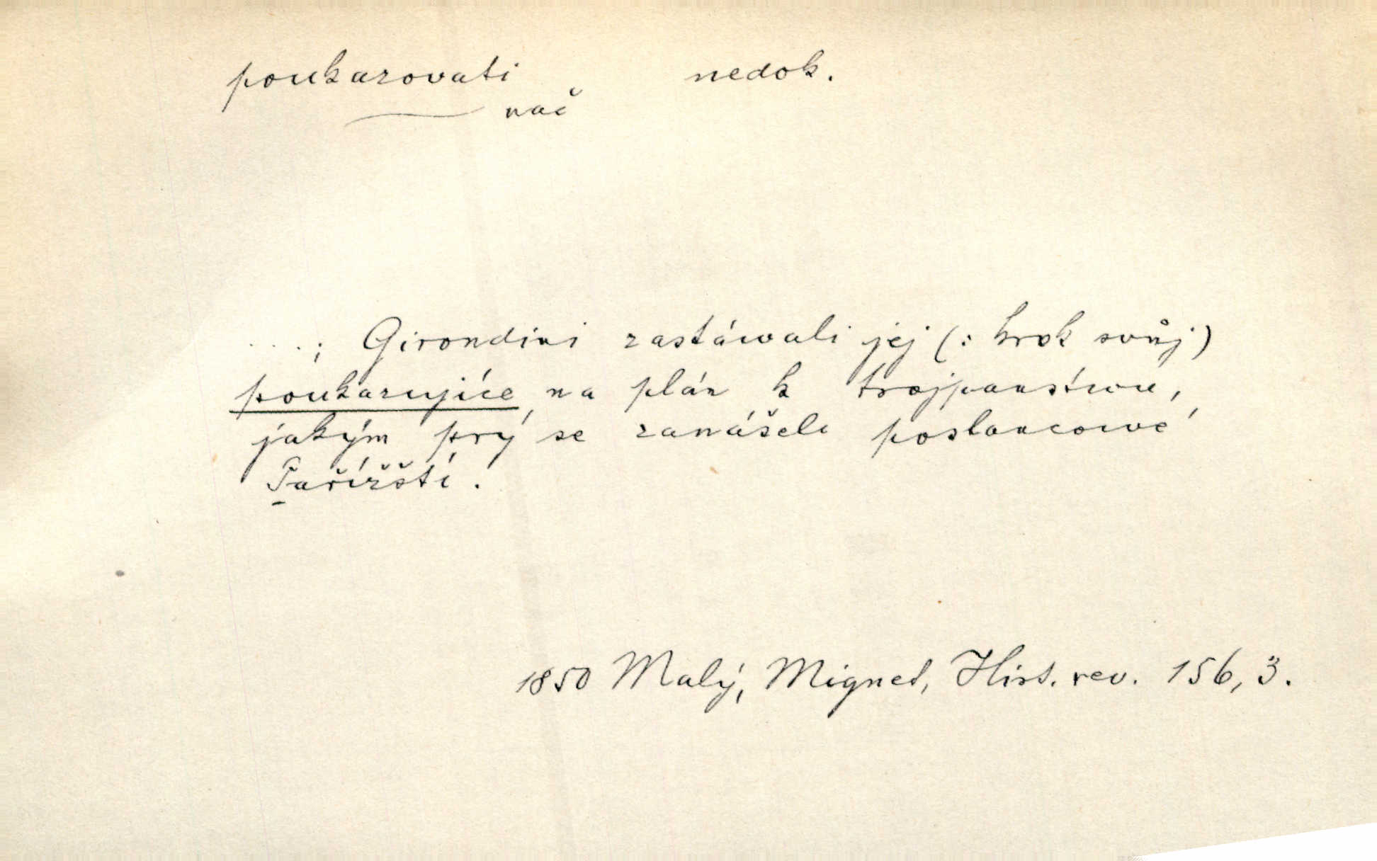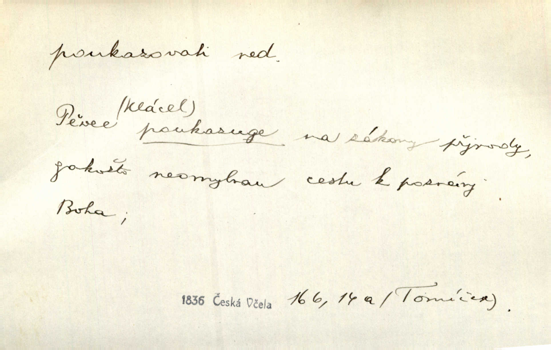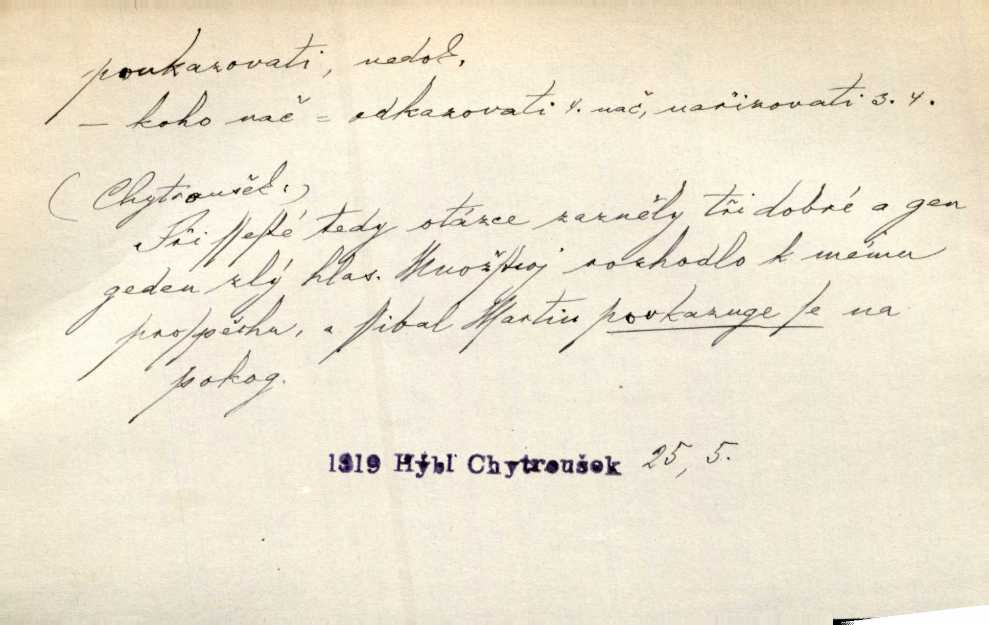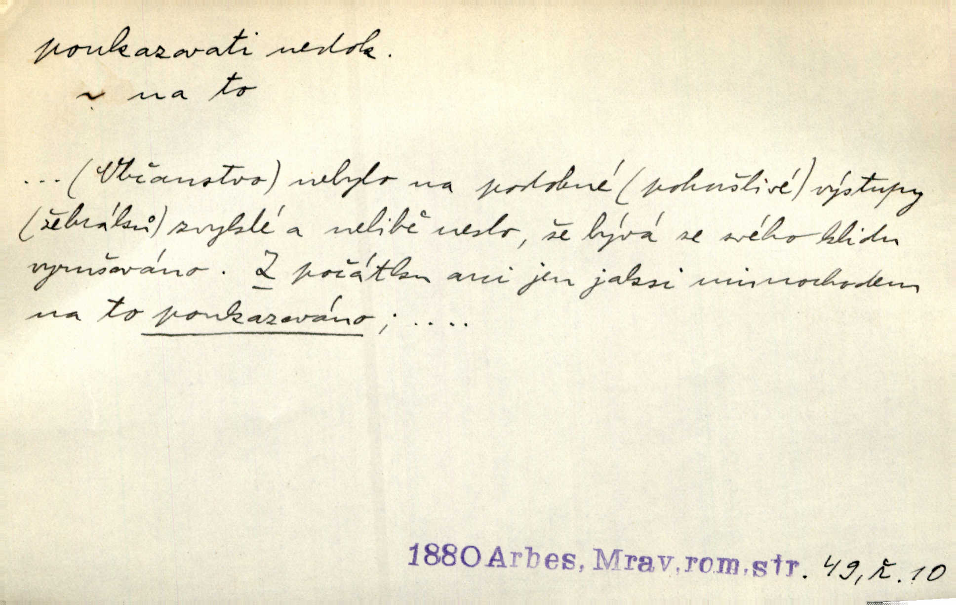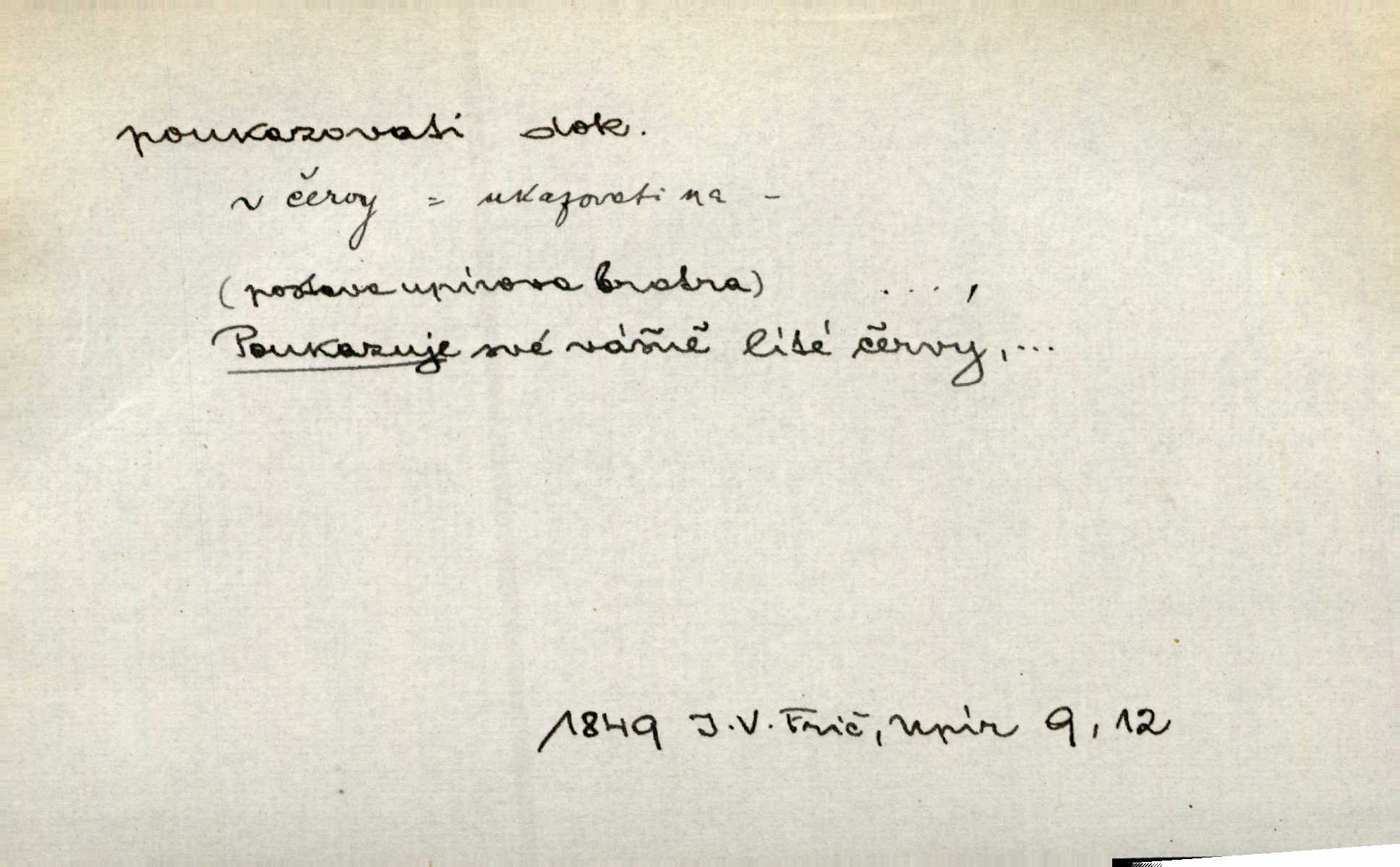 - poukazovati ned. jistým pohybem ruky n. prstu ukazovati. Rozčilil se zas, a poukazuje mokrým šátkem od potu, volal za ním mávaje. V. Mrš. D upozorňovati, obraceti pozornost. Poukazuji p. prokurátora na to, co ukazuje skutečnost. Havl. P. Karásek důrazně poukazoval v „Nivě“, že starší poesie p. Sládkovy jsou neprávem zapomínány. Mach. Poukazuji na motivování, na psychická hnutí u jednotlivých osob. Zey. Z počátku jen jaksi mimochodem na to [pohoršlivé chování žebráků] poukazováno. Arb. D býti dokladem, důkazem, svědectvím něčeho, svědčiti pro něco. Nejstarší listina poukazuje na to, že se dříve v okolí Jílovském zlato ze zlatonosného písku vypíralo. Lum. Prvotiny Máchovy poukazovaly na zcela jiný směr, nežli v jakém se později osvědčil. Sab. D přikazovati. Každý poukazující úřad má koncept poukazu. Předp. zahr. min. Práv. dávati příkaz osobě jiné, aby plnila osobě třetí. Poukazovati výplatu.