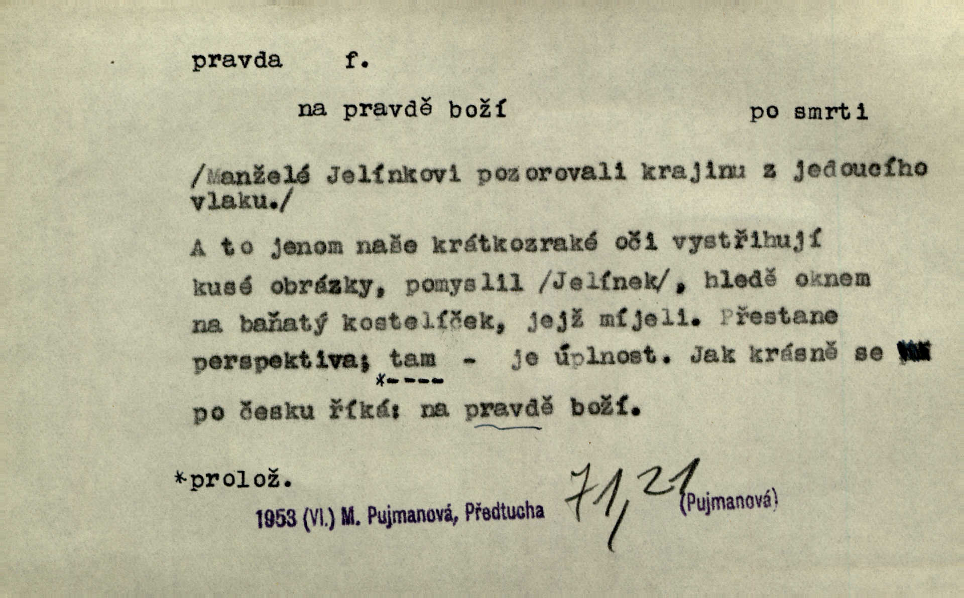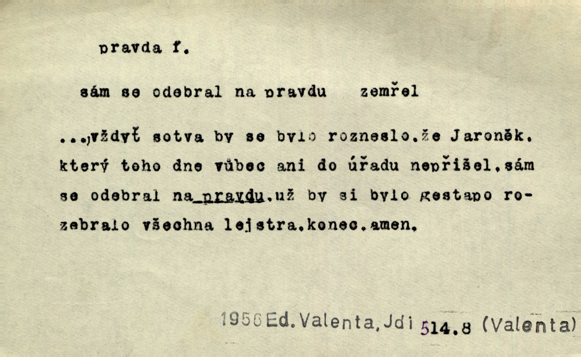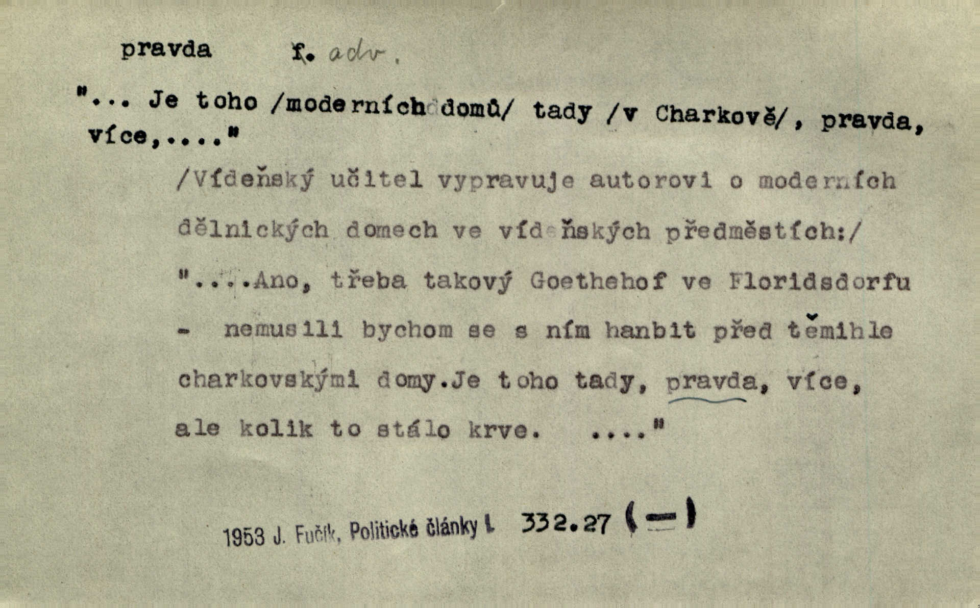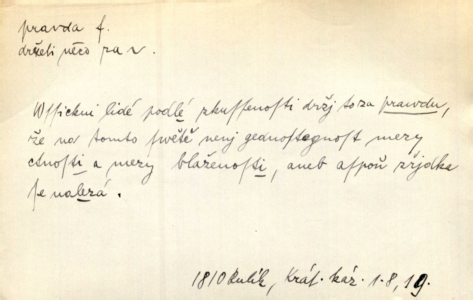 - pravda adv. vyjadřuje souhlas s proneseným míněním, zajisté, ovšem. Pravda, stromy jsou ještě neživé. Marcha. Tvá Milost pravda hned nemůže, je třeba sebrati vojsko. Jir. [Strnádek:] „Dnes vám vzal šunky z komory, zítra vezme pečeni z trouby.“ [Konipas:] „Pravda, pravda.“ Šmil. Má pohádka mi náhle s bohem dává — ach, pravda, starým člověkem jsem zase. Mach. D vyjadřuje dotaz po správnosti proneseného mínění, žádost o souhlas. A chlapeček neplaká, dobře se vyspal, pravda? Herb. Ach, matku moji též jste viděl, pravda? Zey, To je vaše jediňátko, pravda, moje milá? Heyd. Pravda, stařenka mne vždycky chovala? Preis.