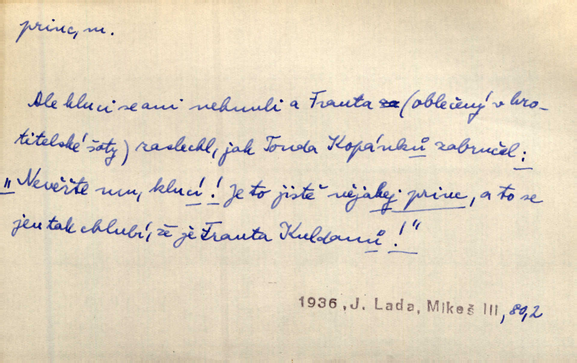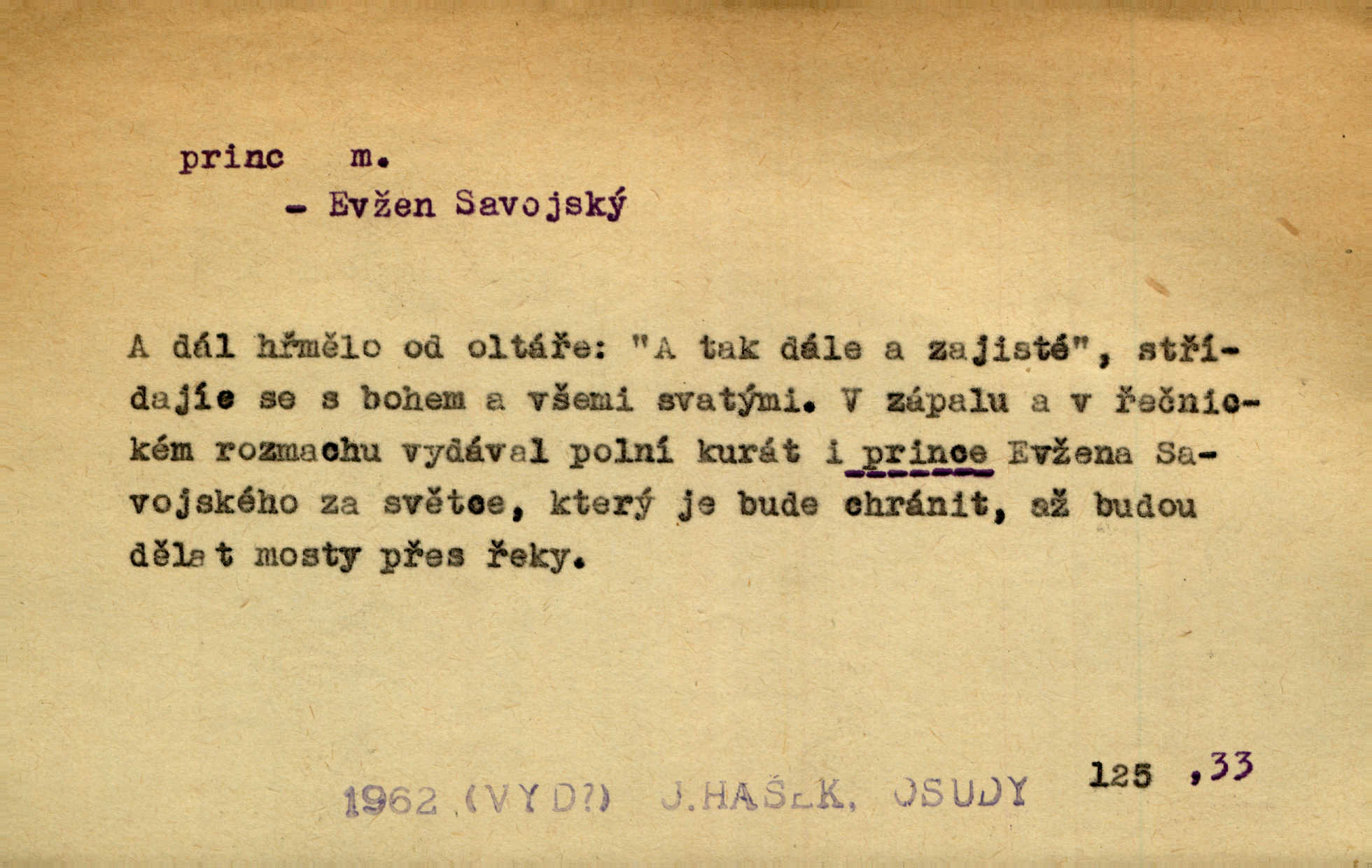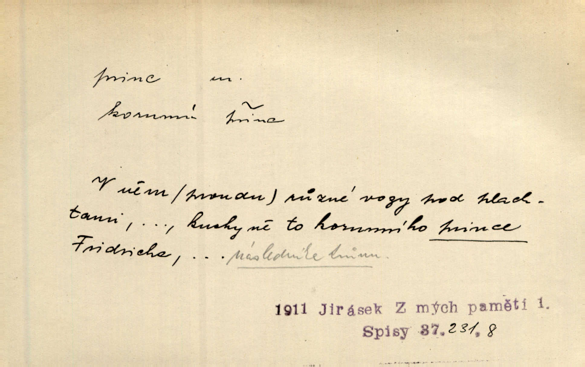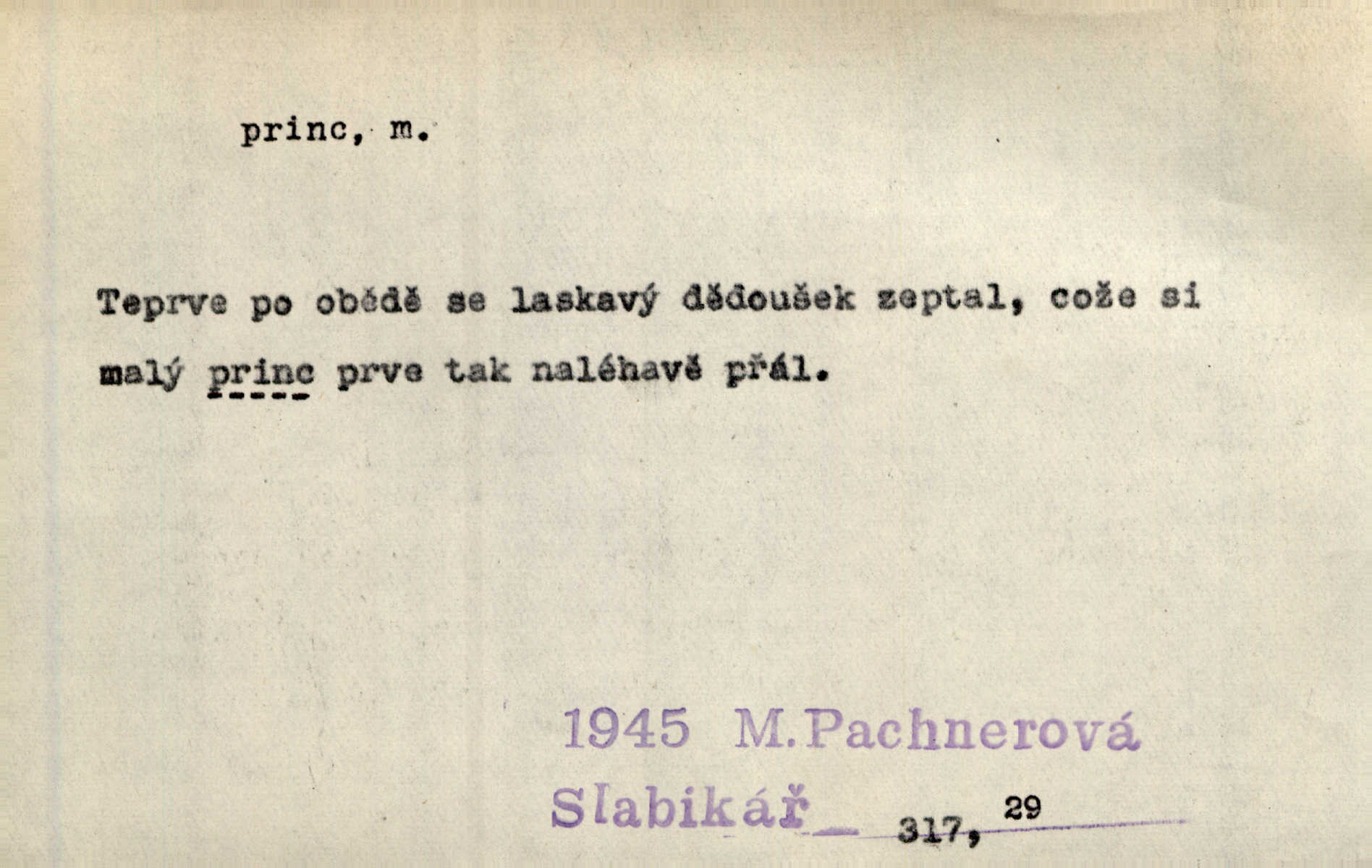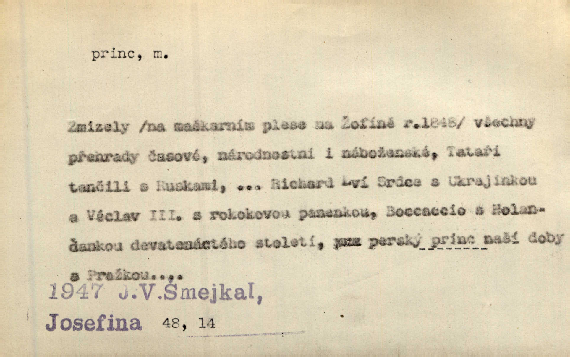 - princ, -e m. nepanující mužský člen panovnického n. knížecího rodu. Korunní princ následník trůnu. Slyšel jste o Budhovi? To byl dokonce královský princ. Vach. Pozvali si mladého pana knížete na hon, aby se měli čím pochlubit; princ přijel, ale na srnce po několik nocí marně číhal. Staš. Jdu do lesa a vesel jak princ z pohádky se vracím. Heyd. Domů se vrátila zářící a veselá, jakoby pro ni byl přišel princ. V. Mrš. Ženy a spanilé děvy dostavily se v hojném počtu, aby holdovaly princi Karnevallu tančily. Lier. D Hypok. synáček. Tonička má prince, slyšíte, hocha jako malinu! Rais. Tatínek, ač chce-li mít se svým princem dobrou vůli, běží koupit mu koníka. Bes.