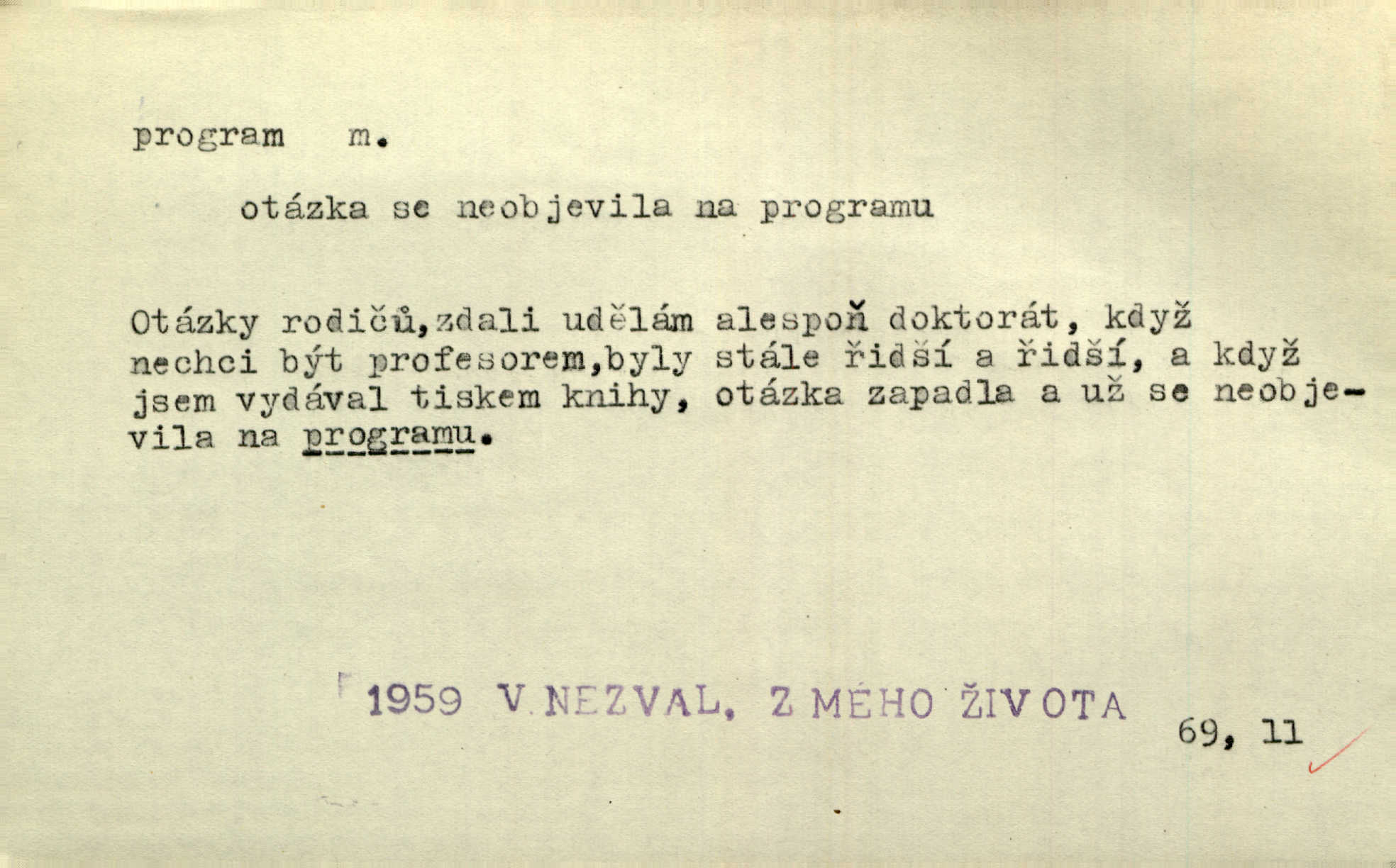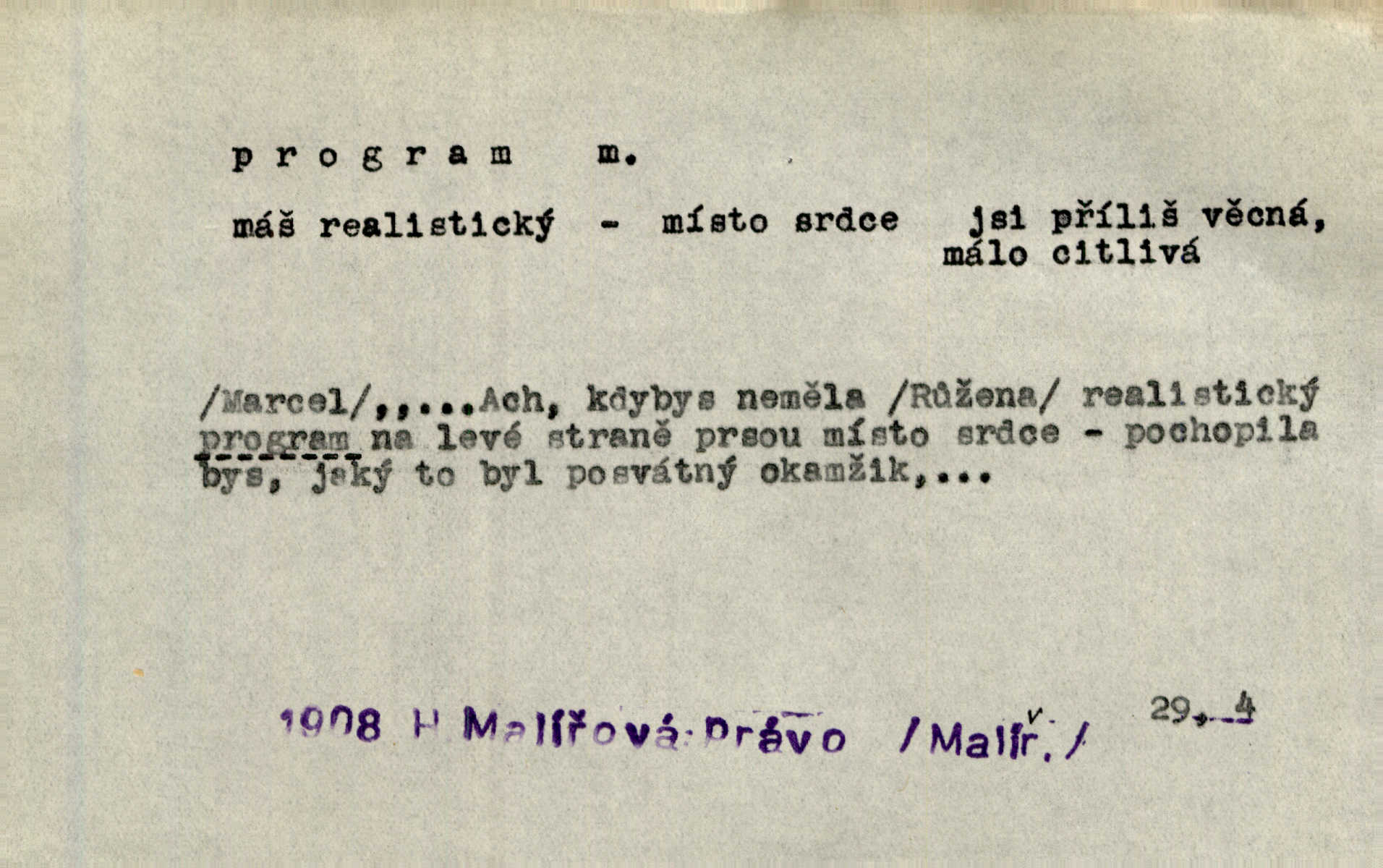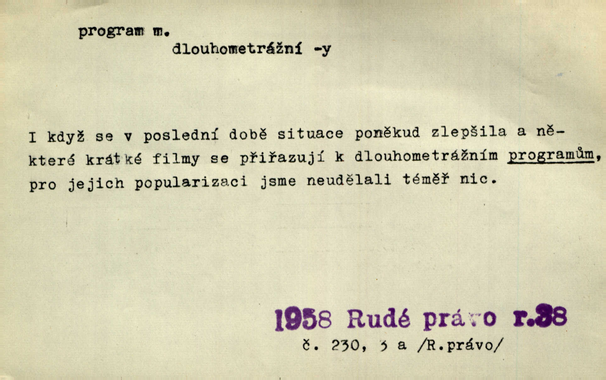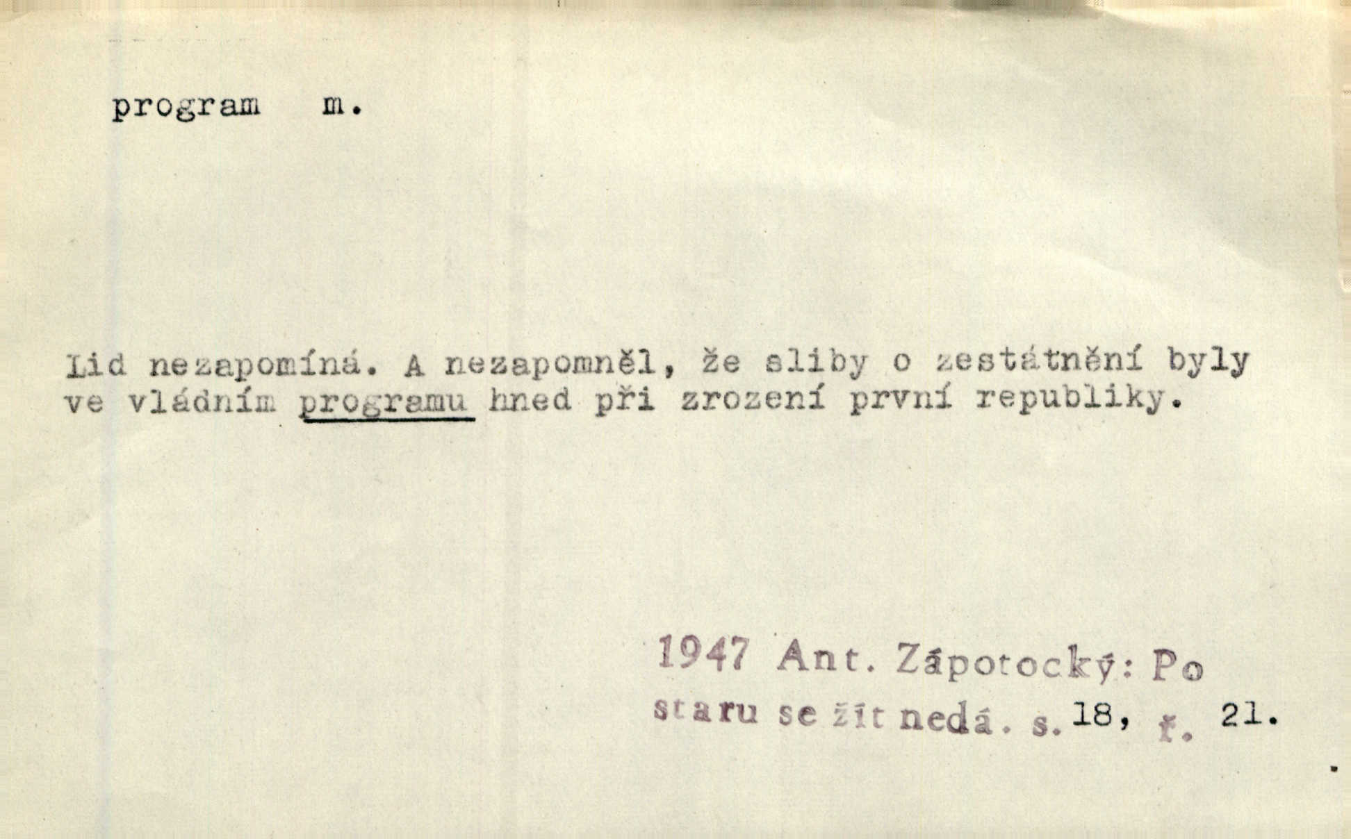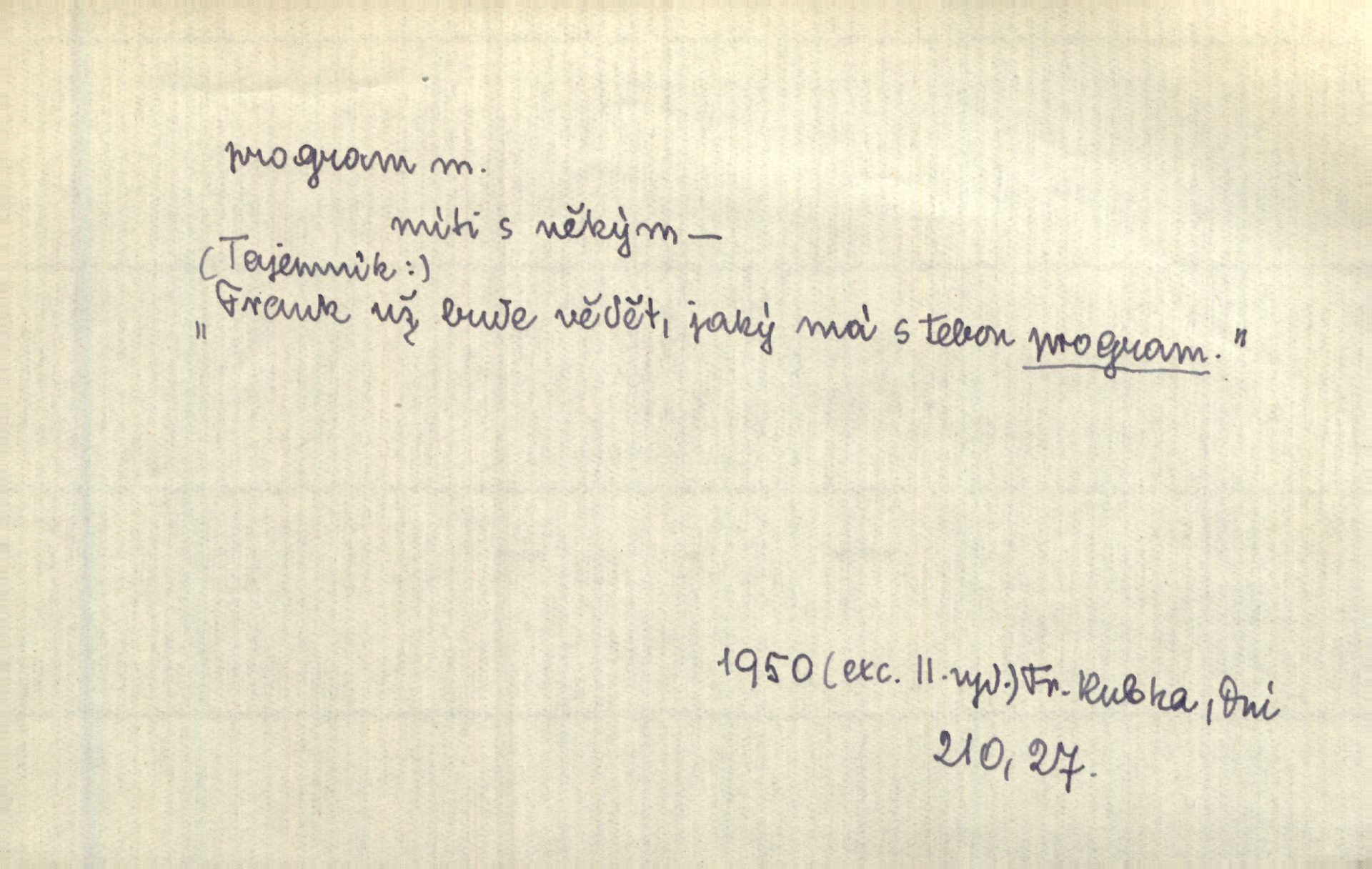 - program, -u m. předem stanovený pořad slavnosti, koncertu a pod. n. vůbec lidského podnikání. Náš rozhlas provedl v hudebním svém programu díla světové tvorby. Krit. měs. Vy jste patrně nebyl na novém programu ve variété. Bass. Program již byl určen i mnohokrát opět zavřen. Havlasa. Jídlo a pití bylo celým programem zábavy. Podl. Zachovala jsem náš obvyklý každodenní program. Krás. Udělal věc, která jaksi nebyla v programu: klekl k Baštovi, strčil mu do ruky housku. Lid. nov. Kdyby vyšší instance svolaly jednou anketu všech subalterních, viděly by, jaký pracovní program bychom sestavili. Herrm. Ani tak důležitý předmět jako mravouka nedán na učební program. Krás. D cíl, kterého chce jedinec nebo skupina prací dosáhnout; zásady. Vykládal svůj program o vzdělání lidu. Herb. Programem [listu] bylo vyhovět ve všem všudy knížeti. Čap. Ch. Ničeho není tak Liliencron vzdálen, jako úmyslu básniti dle nějakého programu. Kar. Balbín je nadčasovým zjevem netoliko tím, čím barokní program naplňuje, ale i tím, čím jej již v zárodku překonává. Krit. měs. Bylať učená, ale její duševní program, abych tak řekl, nebyl veliký obzor. Podl. D myšlenkový obsah hudebního díla. Pro představovou neurčitost hudby je třeba, aby nám skladatel podal slovný výklad, t. řeč. „program“ skladby. Zich. D tištěné oznámení pořadu, zprav. se seznamem vystupujících osob. Když četl na programu tištěné své jméno, pocítil poprvé vlny nevylíčitelné pýchy. Svob. [Učitel] rozbalil lejstra a podal [vrchnímu] program [besedy]. Rais. D tištěná výroční zpráva, zprav. školská, s výkazem činnosti za uplynulý rok. Koho věc zajímá, nechť si prohlídne středoškolské programy české za léta 1860—1888. Herb.