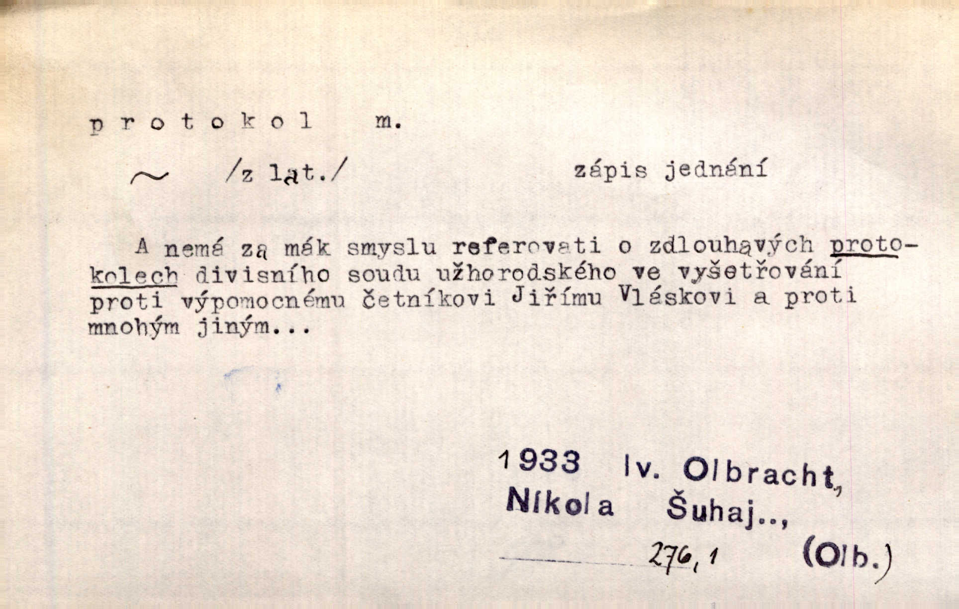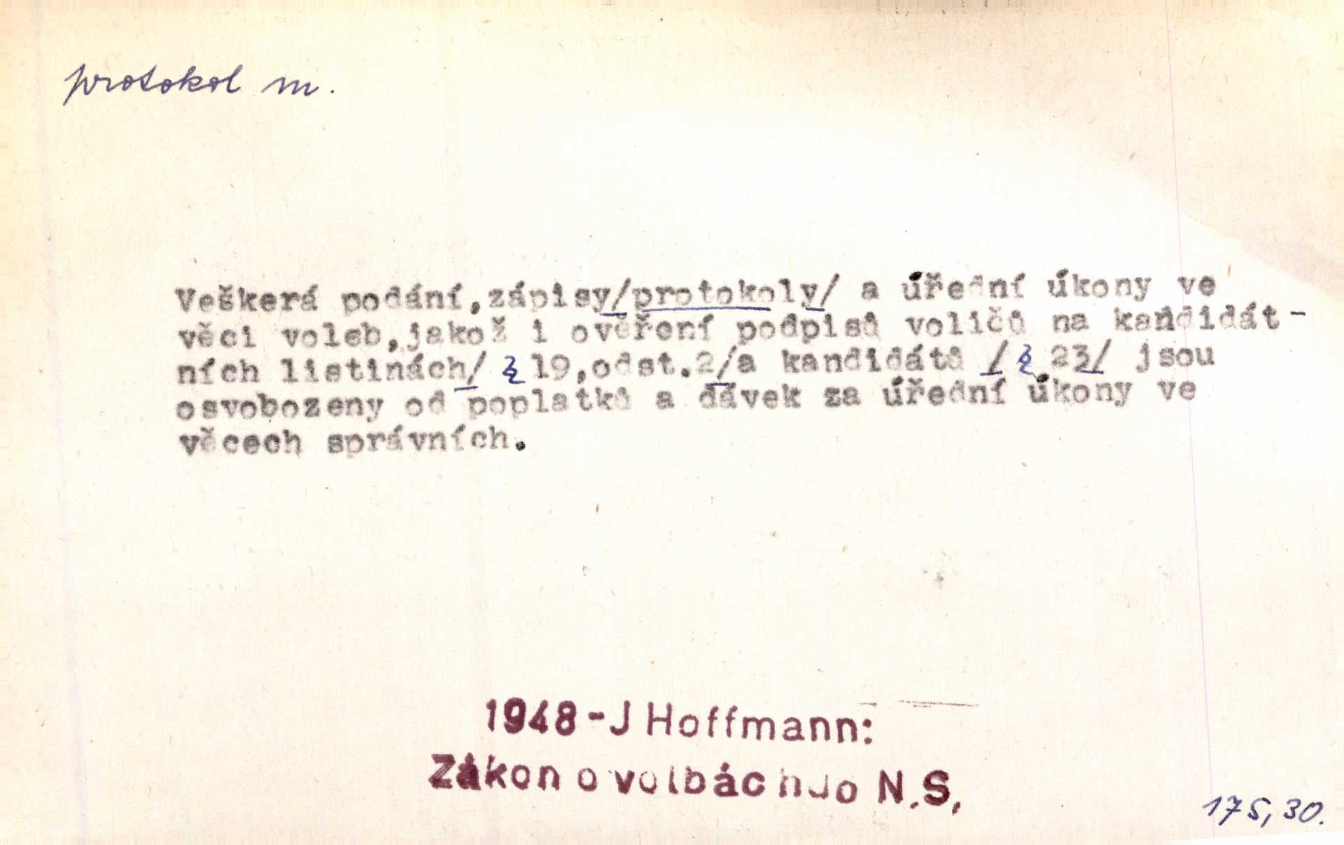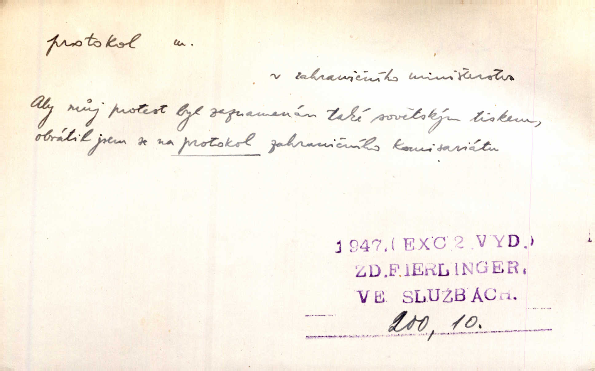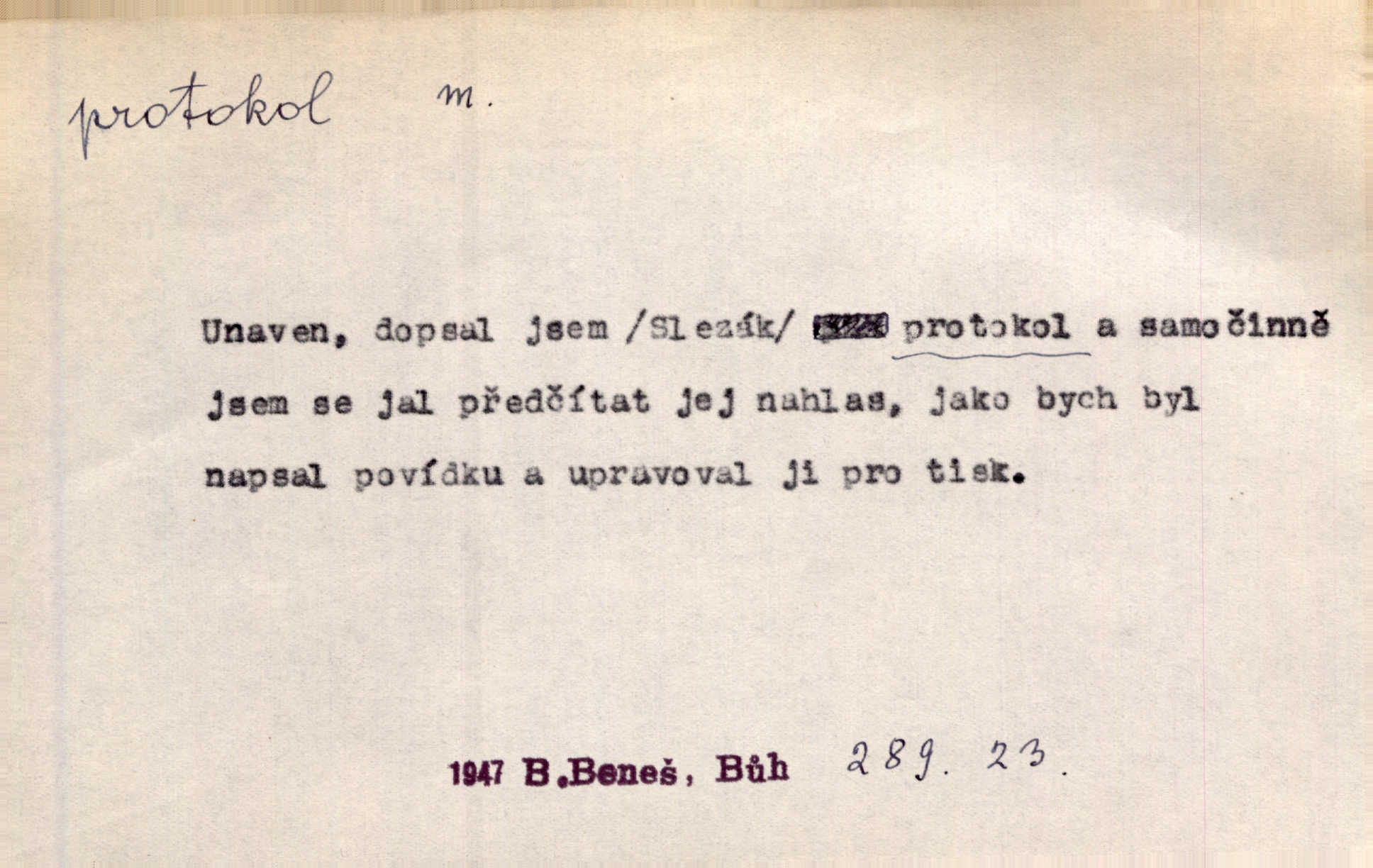 - protokol, -u m. zápis, hlavně veřejný, o ústním jednání, o výsledku ústního jednání. Uctili jste, velectění pánové, povstáním jeho památku a svolíte zajisté, aby uctění naše bylo zapsáno do protokolu dnešní schůze. Jir. Konferenční protokoly se vyřizovaly v ten rozum, že je žádoucno, aby výkony žáků se posuzovaly přísně. Klost. Vzalo se to vše [svědectví o neštěstí] do protokolu, odbyl se výslech svědků. Prav. Akta o Jírovi Skaláku byla v protokolech trestního vyšetřování na zámku opočenském. Jir. „Tuto otázku jsem neslyšel. Jinak bych musil s vámi ihned zavésti protokol,“ odpověděl přednosta. Pfleg. Úř. protokol jednací formální zápis o úředním jednání a o jeho výsledku; protokol podací kniha, do níž se zapisují došlá podání s poznámkou, jak a kdy byla vyřízena; protokol úřední místnost, v níž se přijímají podání, podatelna. Práv. protokol soudní zápis o soudním řízení; protokol parcelní seznam parcel vedený podle obcí a vlastníků u příslušné berní správy. Polit. (v mezinárodním styku) zápis o jednání n. usnesení. Dipl. diplomatický protokol souhrn společenských a úředních pravidel, jimiž se upravuje vzájemný styk diplomatů; oddělení zahraničního úřadu příslušné pro styky diplomatů. Šéf protokolu. D Odb. zápisník pro záznam soustavného pozorování. Protokol délkový, nivelisační, úhlový a j.