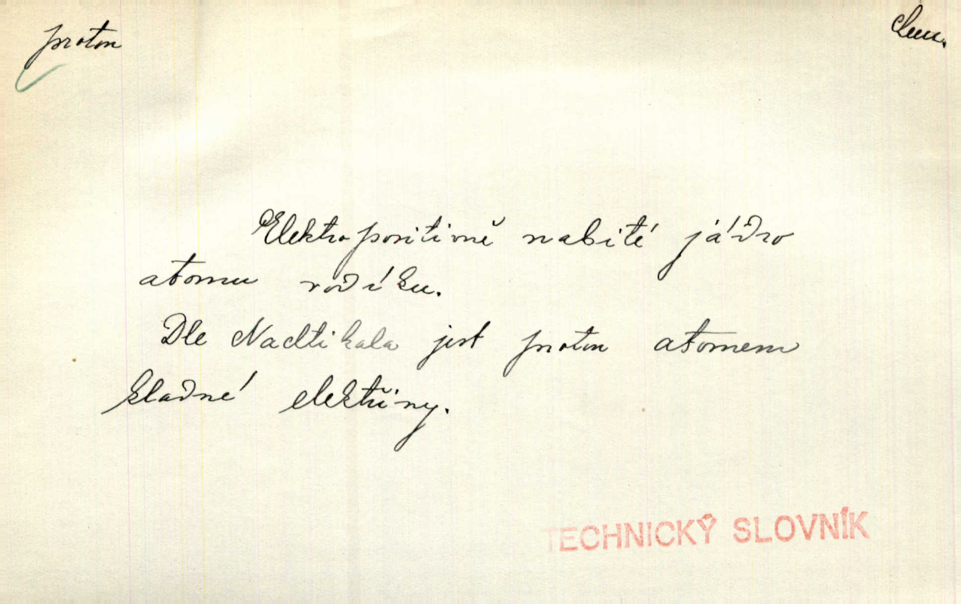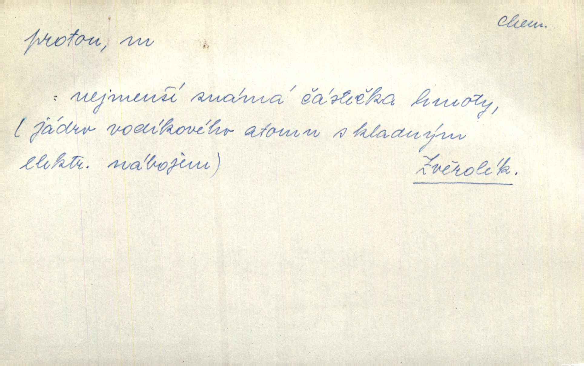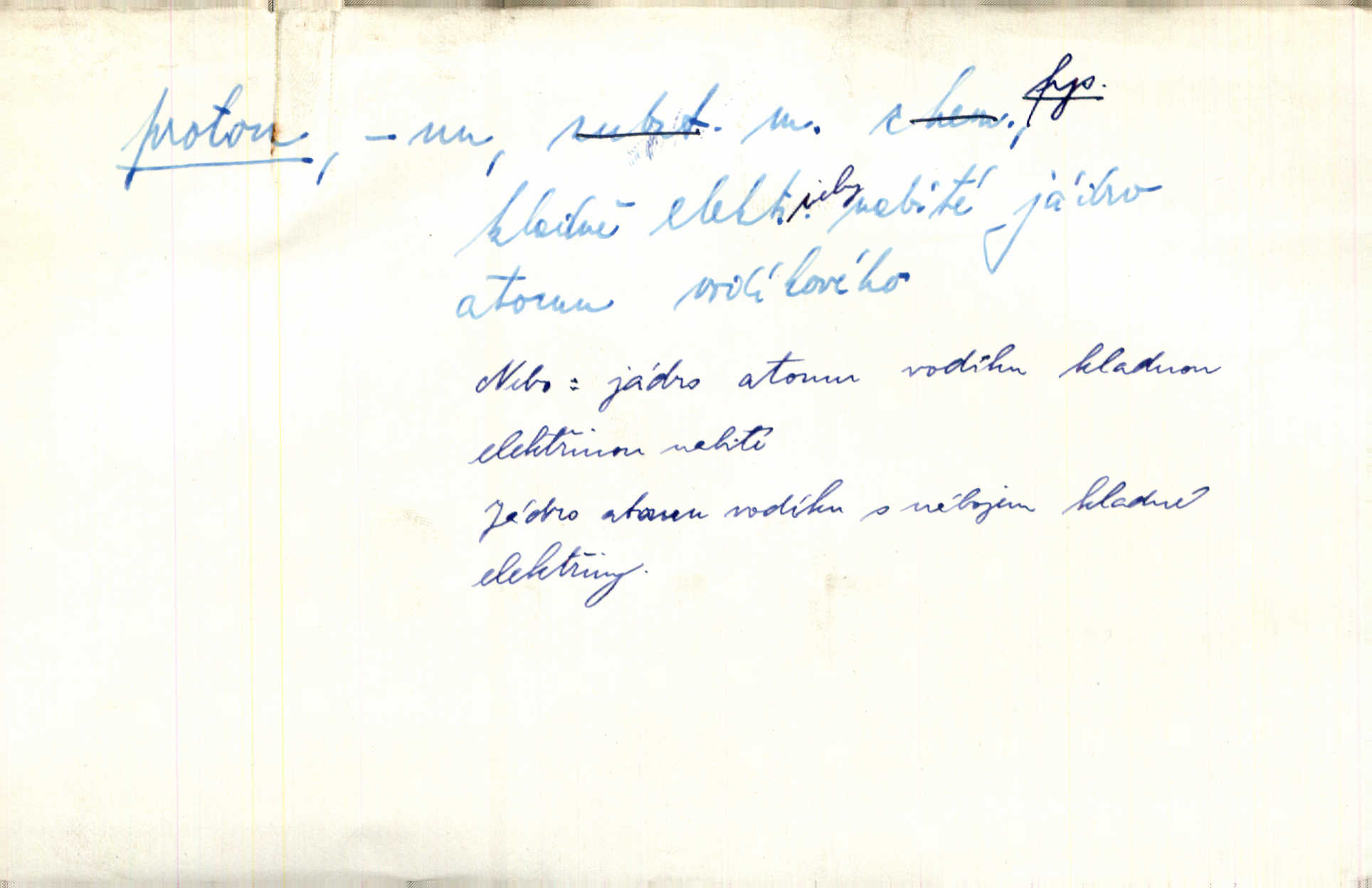jádro atomu vodíku s nábojem kladné elektřiny.