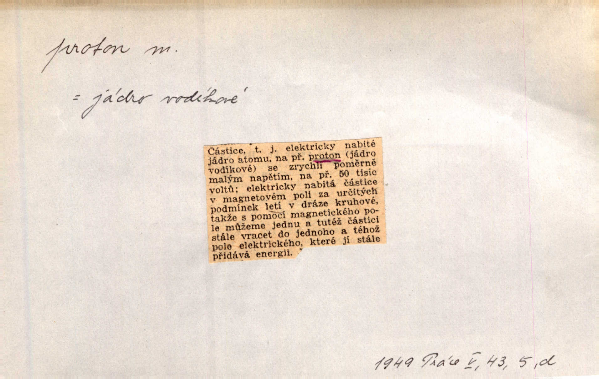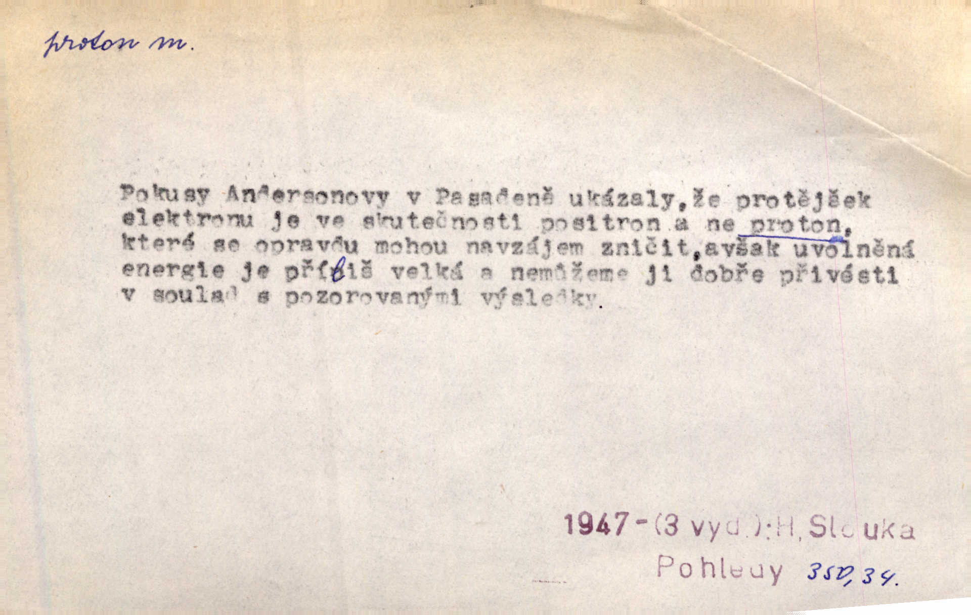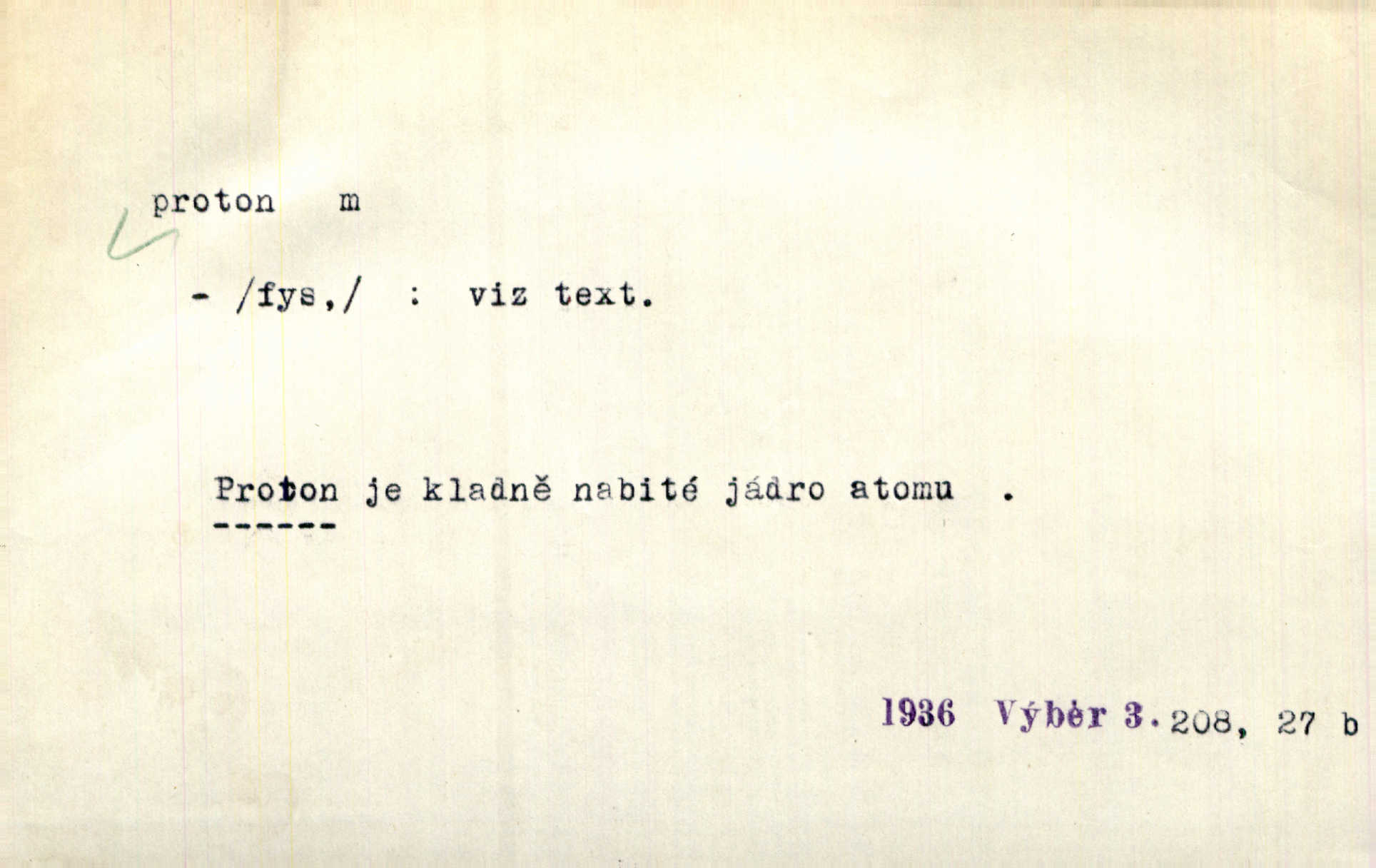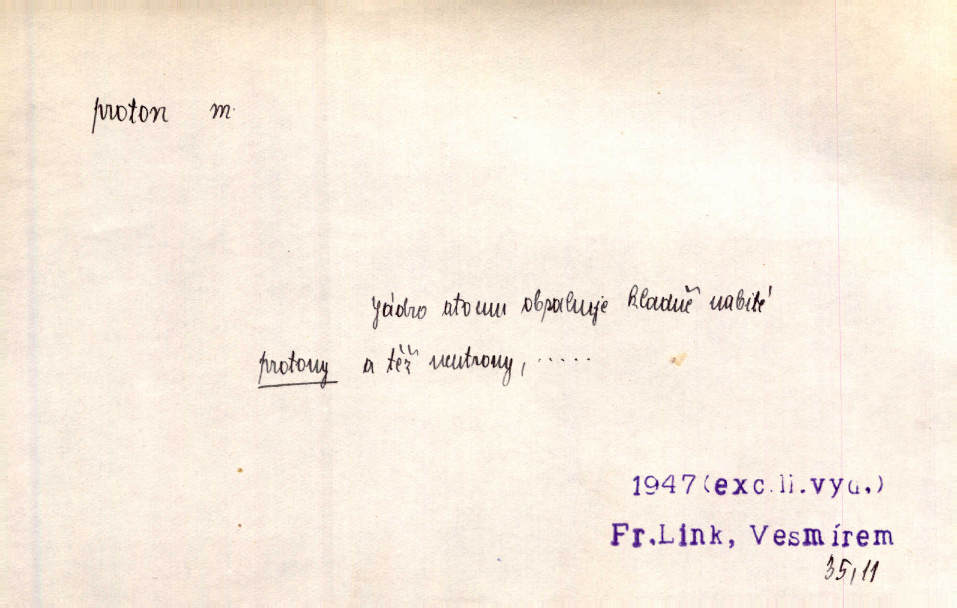 jádro atomu vodíku s nábojem kladné elektřiny.