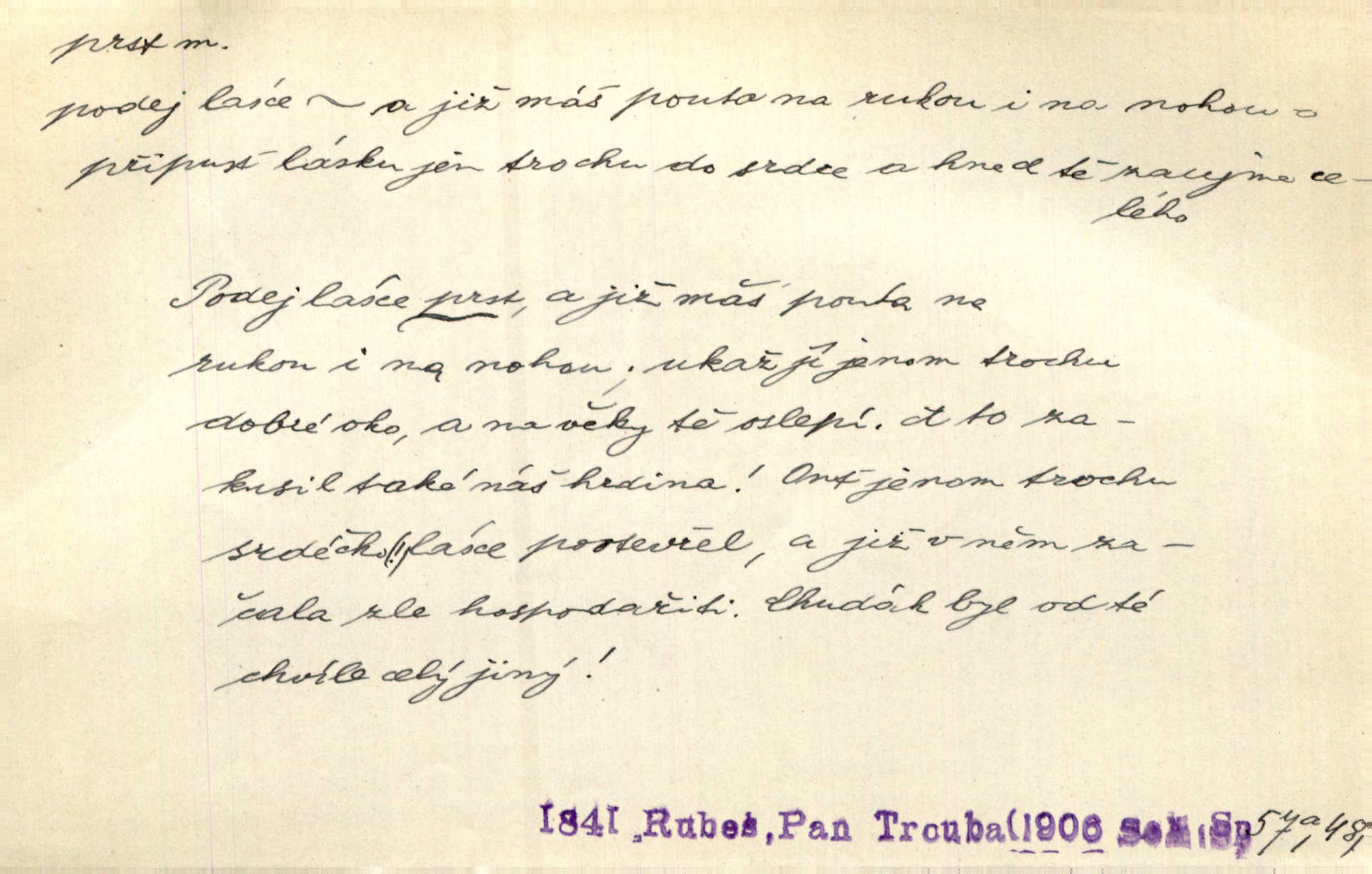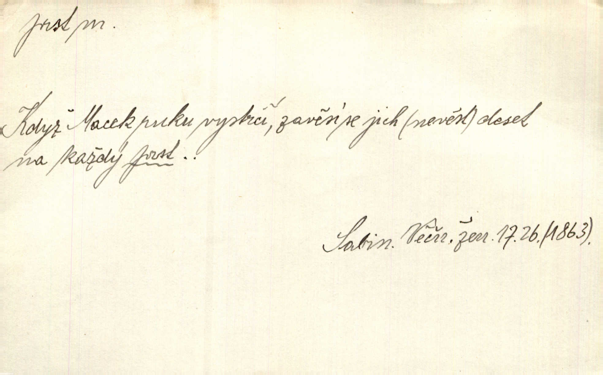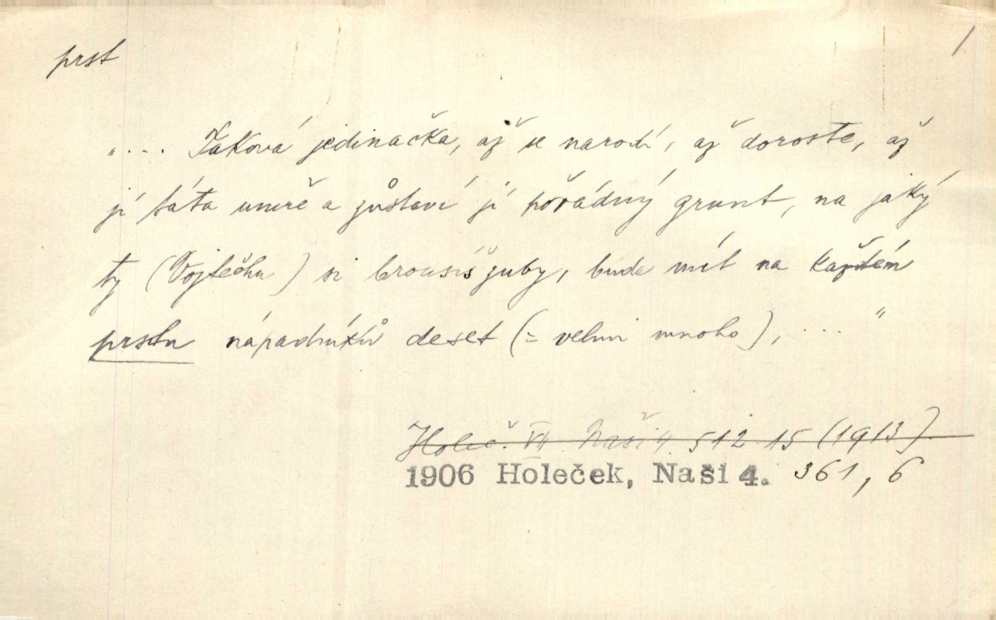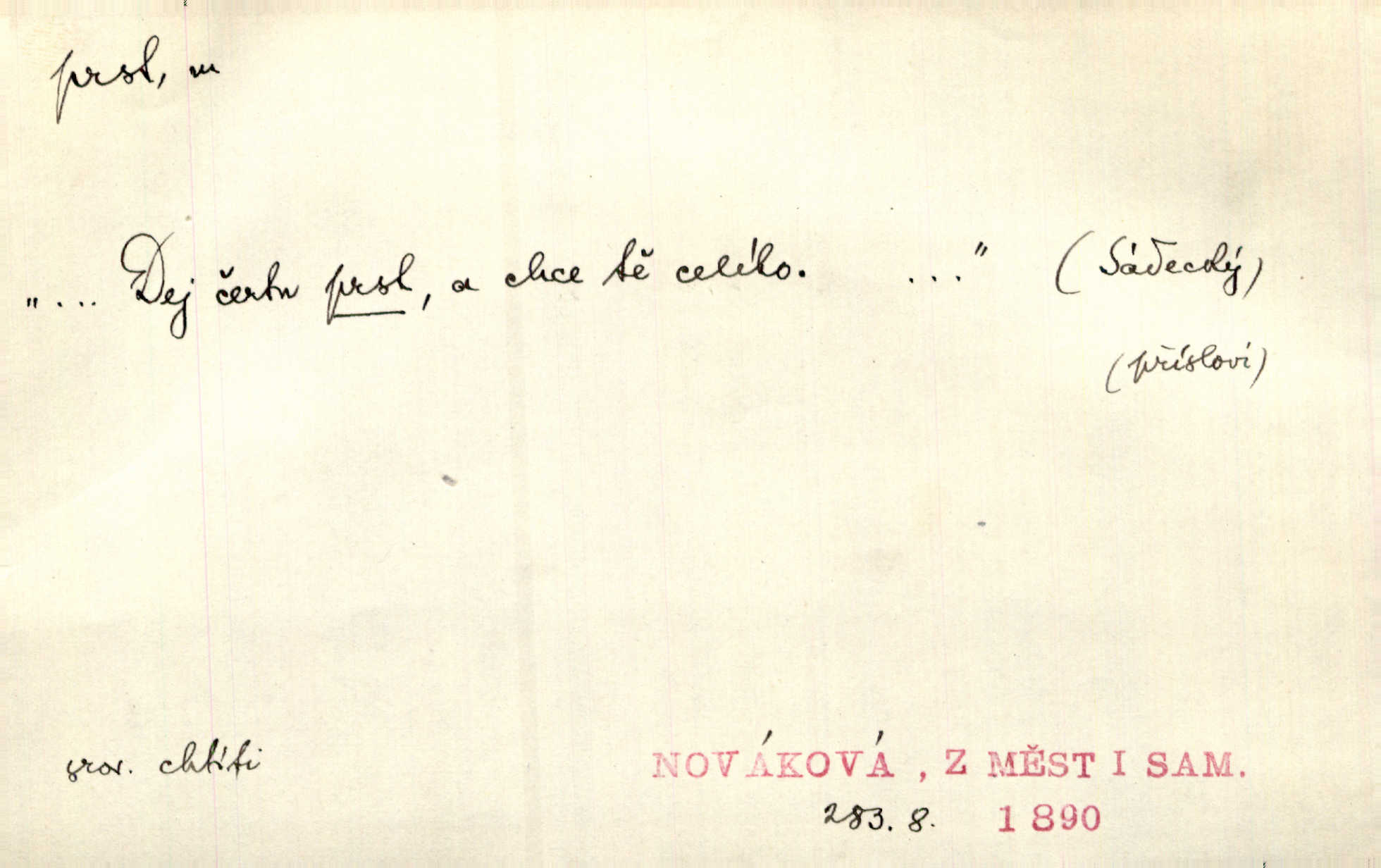 - prst, -u m. jeden z pěti pohyblivých chápavých útvarů zakončujících ruku. [Stařena] prstem do dálky zahrozila. Rais. Barunka učila babičku jedním prstem hrát [na klavír:] „To jsou koně …“ Něm. Dáma po dámě docházely k zrcadlu a dotekem prstů opravovaly si účesky. V. Mrš. Historiky, kteří v těch letech psali monografie, spočítáš na pěti prstech je jich málo. Herb. Byl čas, kde se vlastenci čeští počítali na prsty. Štulc. Dobře mu není, toť si dovedeš vypočítat na prstech! snadno si domyslíš. Rais. Zvěř kolem mlýna má [strýc] spočítanou, řeklo by se, na prstech přesně, do posledního kousku. Herb. Ale především — prst na ústa, synáčku! Ani slova žádnému o tom mlčet. Tyl. Moudrý člověk, chceli všudy dobře vyjíti, musíť na ledacos skrz prsty hleděti shovívavě přehlížeti. Kram. Přestávají se na přistěhovalce dívat skrz prsty pohrdavě se dívati, přezírati. Rais. Prstem na mne okazují sousedé a zlořečí jmenu mému. Choch. Myslíte, že někdo v této věci prstem pohne? Sokol. Ten pán měl prsty všade do všeho zasahoval. Švan. Připustil, že si do těchto zlodějských obchodů namočil prsty. Lid. nov. Není dobře, do všeho nejdříve prsty strkat. Tyl. Proč si pálit prsty pro cizí kaštany? míchati se do cizích záležitostí, způsobovati si nepříjemnosti. Sez. Podejte jim prst, chytí vás hned za celou ruku. Něm. „Buďte tak dobrý,“ chopil se rada podávaného prstu. Her. Ruka s hranolovitými prsty bušila neúnavně do křemene. Jah. Od nynčka padne na každé tvé slovo mých pět prstů facka. Tyl. Krev z toho vycedím, kdo prstem sáhne na posla! sebe méně mu ublíží. Tyl. Ustál. sp. Nejraději jen za pět prstů kupují kradou. Svět. Přišel ke dvorci za pět prstů krádeží, zadarmo. Třeb. Řekla, že je Mojžíš Poberto, ze mu zůstane všecko pod prstem. Něm. Žes chtěl kupovati za deset prstů, tu máš odplatu! krásti. Kosm. Redaktor si oblízne prsty, když mu článek zašleme bude velmi rád. Tyl. [Obchodník] hleděl všude zřízencům na prsty měl na ně dobrý pozor. Hlad. Koukali se každému pod prsty, kolik mu co vynáší. Bass. Jak já jsem ti viděl do prstů! prohlédl tvé plány. Svob. V něm [dopise v novinách] byl hodně klepán přes prsty starosta, že prý: kolik se stržilo za sena a kde jsou peníze? Herb. Potká [hoch] na pastvě mužíka na prst velikého jako prst velikého. Tille. V zimě je den krátký jako prst — ve čtyři hodiny už je tma. Baar. Ta to s ním [mužem] umí — kolem prstu si ho otočila učinila si ho ve všem povolným. Rais. Jsou spolu několik neděl, a juž ho má [žena] takhle kolem prstu. Rais. Přivedli jsme ho [Štěpána]‚ nahého jako prst do pokoje. Hol. „Kdo ti co namluvil?“ — „Z prstu si to lidé nevycucali“ nevymyslili, nevybájili. Tyl. Je v tom cizím světě sám jako prst. Kosm. [Hospodář] je tu šestým prstem na ruce je zbytečný, nic neplatí. Hol. Věděl, jak snadno lze dosíci jejich [děvčat] lásky. „Na každý prst deset,“ říkával. R. Svob. Šimonovi se nabízí nevěst, že by si mohl na každý prst jednu pověsit. Prav. Z každého prstu mu vtipnost a rozmyslnost vykukuje! Klicp. Uhodil-li nevinné dobytče, že to měl, takořka, v prstech, již očekával, že mu kmet domluví měl to již ve zvyku, v krvi. Prav. Lenka hrávala na piano. Měla zlaté prsty! hrála velmi pěkně. Šmil. Takový [pán] nemá dlouhé prsty do kapsy, takový se nepředá není štědrý. Jir. [Tesař] měl dlouhé prsty, takže mu v kapse mizely skoby a hřebíky kradl. Til. Krade jen bohatým, ale lepkavé prsty má od jakživa je nenechavý. Šmil. Přen. [Odpolední slunce] dotýká se světlými prsty vlasů paní Hordové. Jah. K okénku měsíc naklonil se hebce, a prstem třpytným nad svou skráň se chýle, tkal do tvojich snů rosné růže bílé. Vrch. Podávaly si révové úponky klidně své zelené prsty. Vrch. [Světlo] stékalo po rozestřených prstech palm. V. Mrš. D prst Boží, Páně a p. řízení, zásah, působení a p. Boží. Dobrý Bože! teď poznávám tvůj prst! Klicp. Vidím v tom prst boží, který mě vedl na toto místo. Herb. Někteří v tom [neštěstí] viděli trestající prst Páně. Rub. Prst prozřetelnosti hnal mne z domu. Herb. Přen. Krásná, prstem času dosud nedotknutá žena. Podl. Nebylyť [tváře] zorány prstem starostí vezdejších. Svět. Upomínku na slastný okamžik nevyhladí nikdo, leda jen ledový prst, pod nímž však i srdce tlouci ustane smrt. Jir. Žert. „Otevřít tadyhle tu truhlu!“ velel úřední prst úřední orgán, úředník. A. Mrš. D díl rukavice, který kryje prst. Nosí rukavičky, třeba s děravými prsty. Hol. Měla černé rukavice s polovičními prsty. Kop. [Dívky měly] dlouhé pletené rukavice bez prstů. Jir. Lék. kaučukové prsty jednotlivé (na poraněné, znetvořené prsty). D jeden z pohyblivých útvarů zakončujících chodidlo nohy. Málo sejde po tom, je-li do posledního detailu proveden prst ruky nebo nohy. Kar. Zatím jim koukaly prsty z bot měli bídu a nouzi. Svět. Po prstech se vykradl ze sedničky po špičkách, tiše. Pfleg. Mnohem raději mu [chudákovi] vidí paty než prsty raději vidí jeho odchod než příchod. Svět. D Zool. prsty konečná část okončin ssavců. D (v přibližném udávání míry) šířka prstu ruky; stará délková míra. Tuhle si zakrojte, na prst tlustě namažte. Jah. Ani o tři prsty mne nepřibylo. Rais. Na skvostném, čtyři prsty širokém pasu visel mu těžký meč. Třeb. Prst je šířka 4 ječných zrn položených vedle sebe. Vilikovský. D věc vzhledem podobná prstu. Mysl. část lopat daňka. Stroj. strojní součást v podobě prstu ruky. Prsty žacího stroje hroty s přiostřenými hranami umístěné vpředu na žacím rámu a odhrnující plodinu.