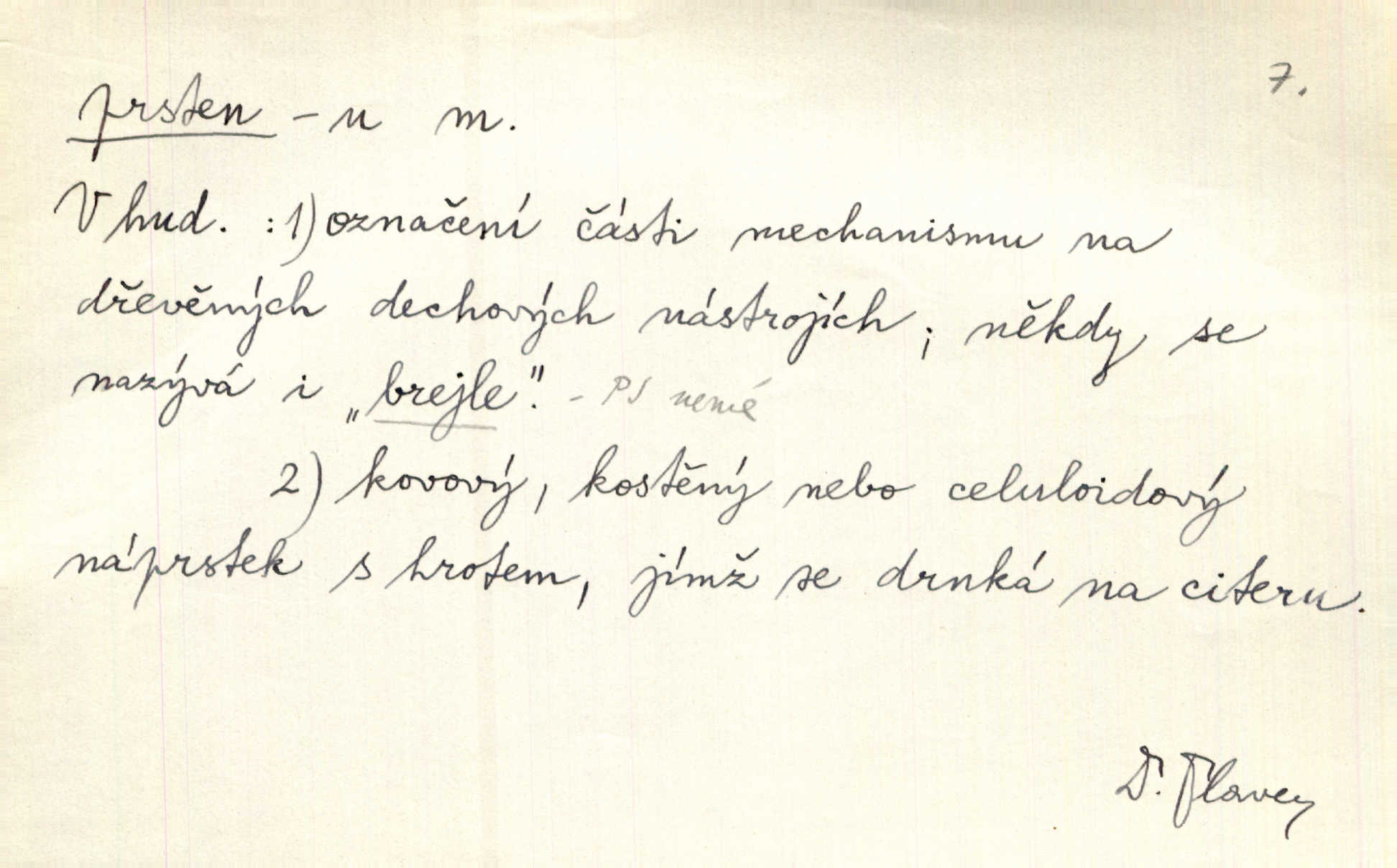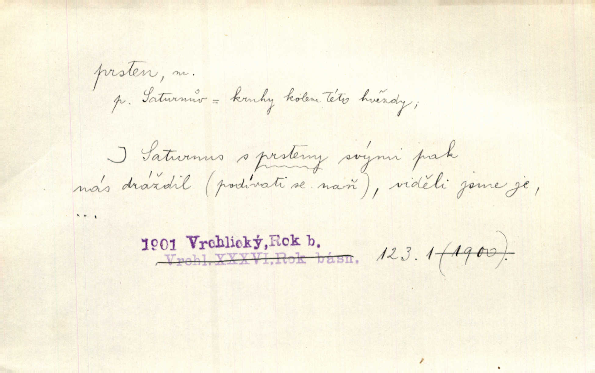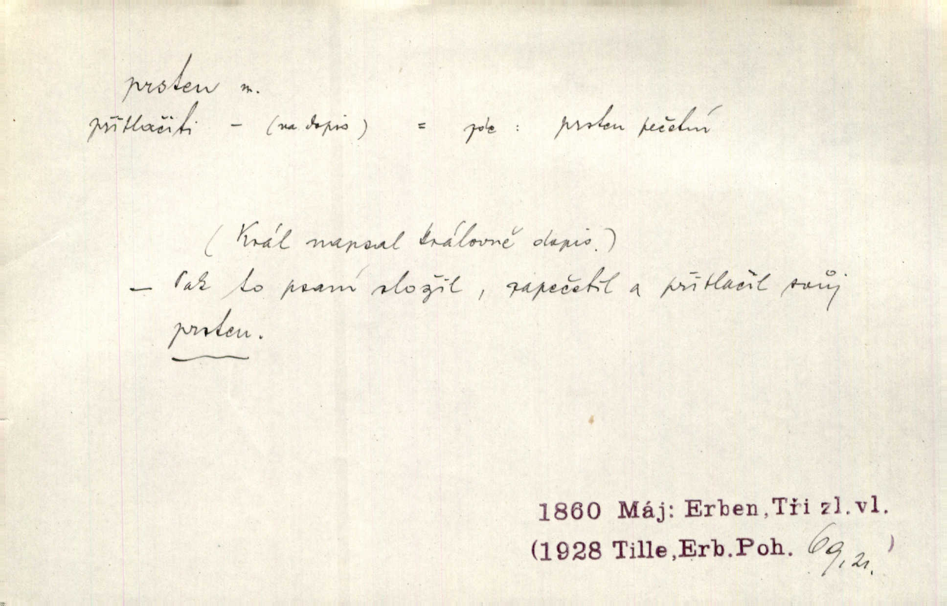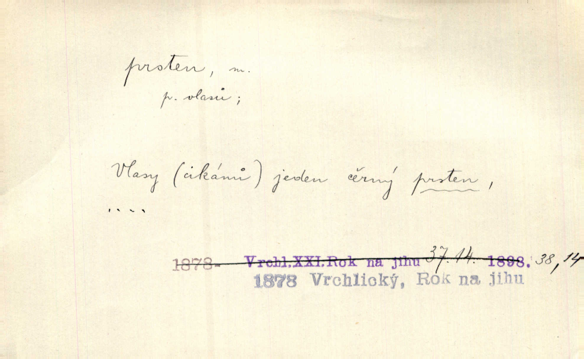 - prsten, -u m. kroužek, obyč. z drahého kovu, navlékaný na prst jako ozdoba, odznak důstojenství, manželství a pod. Na prstech měl [Kvoch] několik prstenů. Hál. Nejbohatší krámy v Římě jsou krámy zlatnické, v nichž plno brillantových prstenů kněžských. Ner. Já měl jen srdce a trochu těch písní, on [sok] dům ve Frydku a prsteny zlaté. Bezr. Stařec dá Blažkovi prsten, plnící ve jménu božím každé přání. Tille. Pak to psaní složil, zapečetil a přitlačil svůj prsten. Erb. Ochotně jej vyslechneš a směníš s ním snubný prsten. Šmil. Círk. prsten rybářský odznak biskupské hodnosti papeže, na jehož pečeti je vyryto lovení ryb sv. Petrem. Sport. hra na zlatý prsten druh dětských her. D kroužek navlékaný na prst a uzpůsobený jako zbraň. Drotar měl proraženu hlavu železným prstenem, jejž Bavoři rádi nosí a jichž při pranicích používají. Něm. D kruh. Jen v těch místech kraj není obklíčen prstenem lesů. Hol. Prsten lidí se rozstoupil. Hol. Strašný ryk revoluce prorazil prsten činžáků města. Vach. D něco stočeného do kroužku, zvl. pramen vlasů, prstenec. Měl [Antoš] hladkou tvář, vlasy jeden prsten. Svět. Drobná dceruška, po hlavě samý zlatý prsten, opustila své místo u mých nohou. Ner. Vlasy [cikánů] jeden černý prsten. Vrch. Nebylo tam [v hradě] sloupce, okolo něhož by se nebyl vinul [břečťan] v temných prstenech. Svět. Astron. prsten Saturnův prstencovité seskupení hmotných částic kolem planety Saturna. D předmět tvarem podobný prstenu. Geom. kulový prsten těleso vytvořené rotací kruhové úseče kolem průměru ji neprotínajícího. Tech. strojová součást v tvaru prstenu n. kruhu; prsten kalibrovací, nárazníkový. Zeměd. železný kruh na kosišti, za který se upevňuje patka kosy. Archit. vypuklý architektonický článek kruhového tvaru. Sklář. šamotový kruh plující na roztavené sklovině, z něhož se sklovina nabírá. Hud. část mechanismu na dřevěných dechových nástrojích; kovový, kostěný nebo celuloidový náprstek s hrotem, jímž se drnká na citeru. Bot. prstenec.