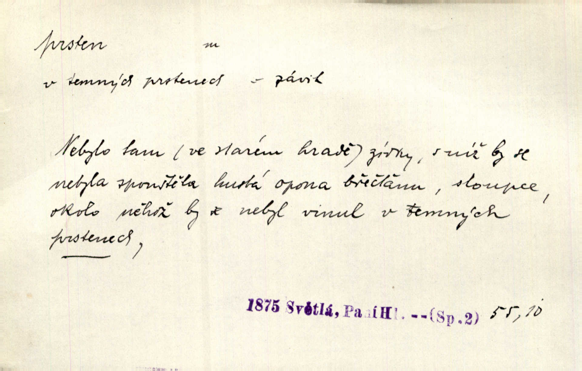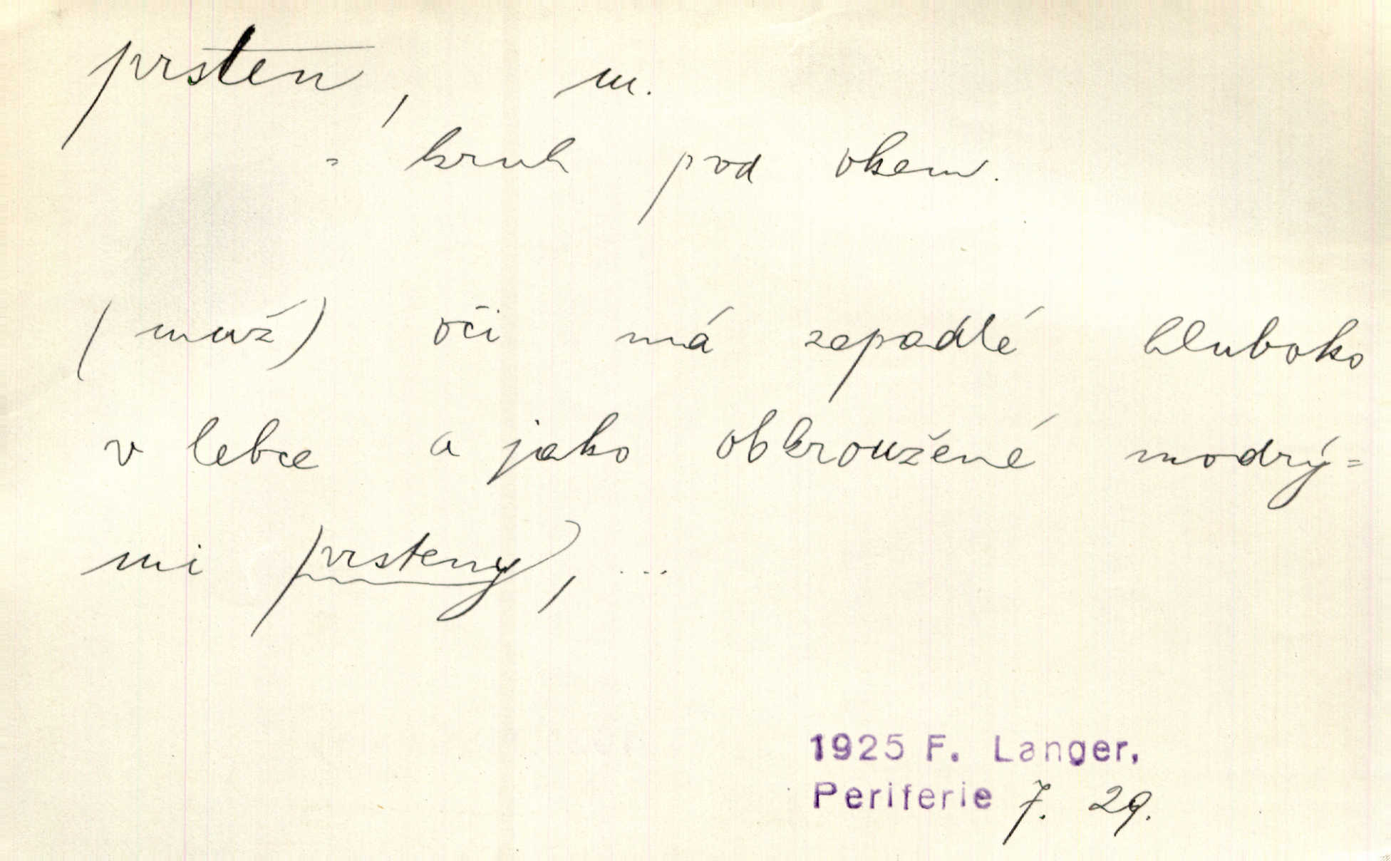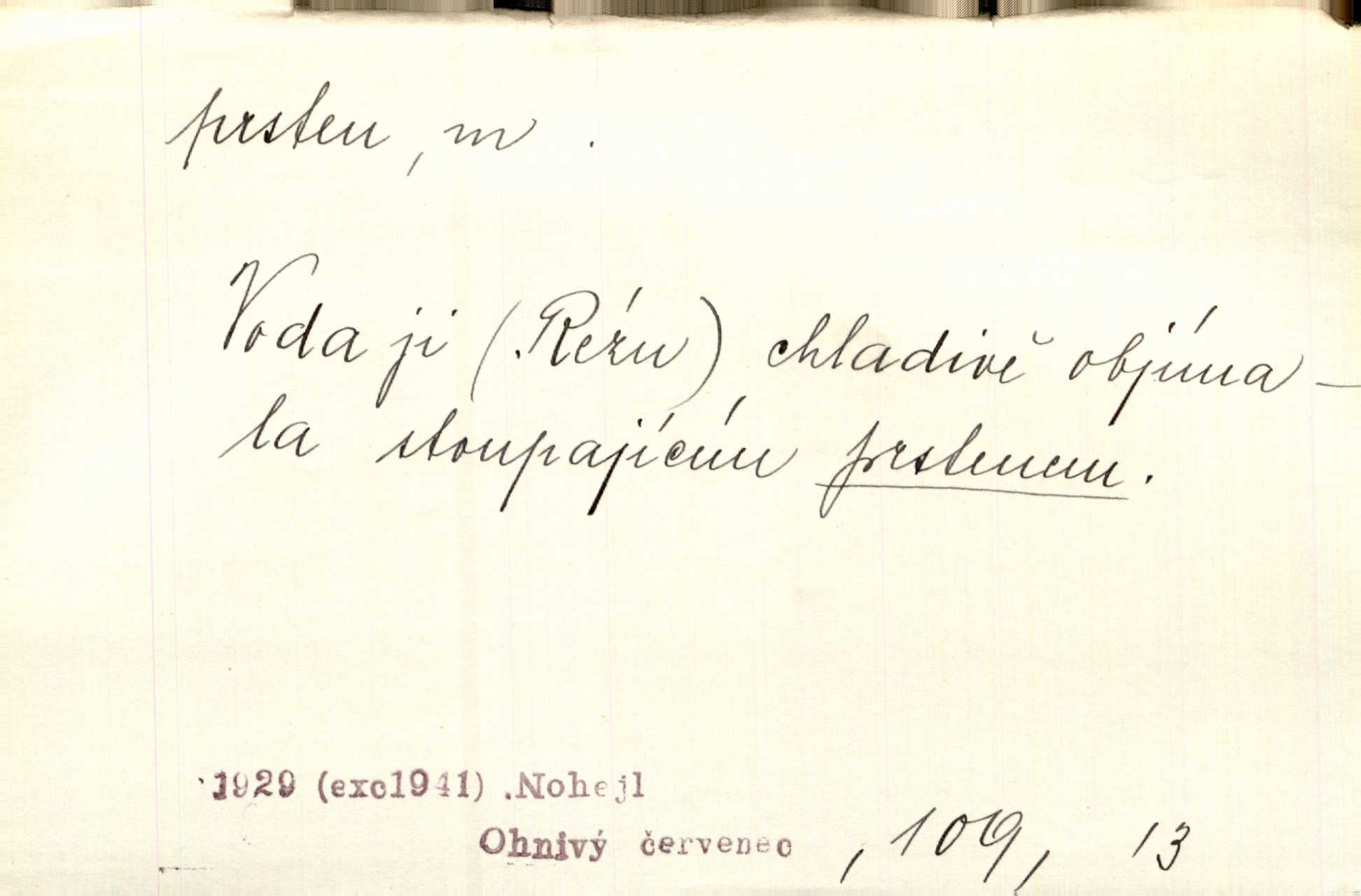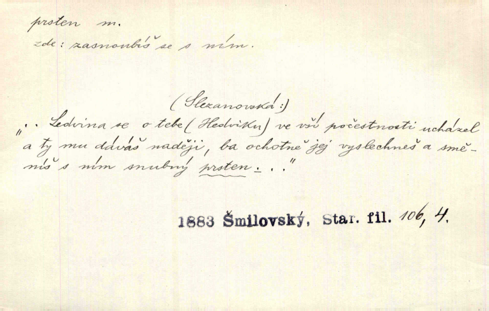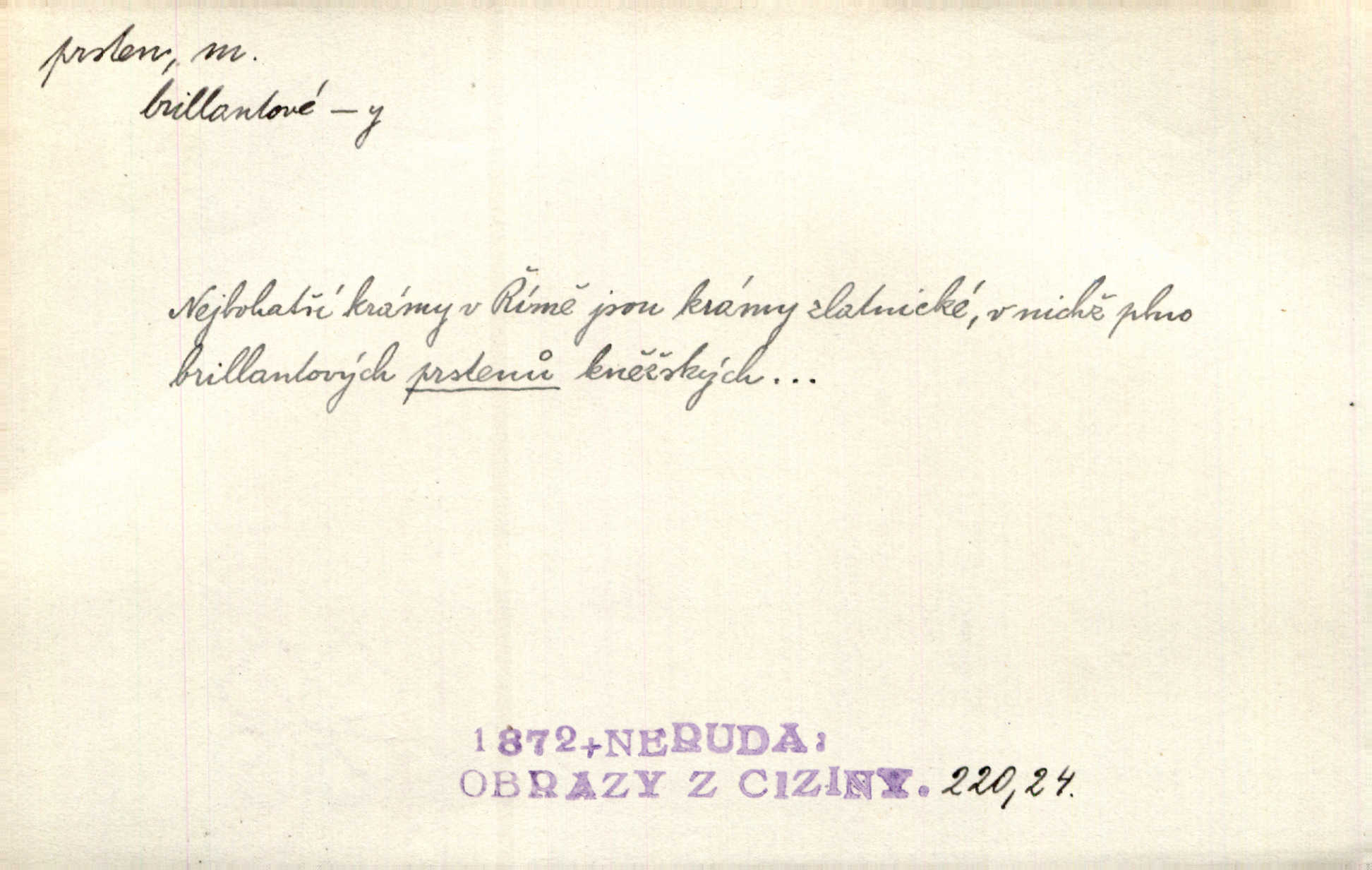 - prsten, -u m. kroužek, obyč. z drahého kovu, navlékaný na prst jako ozdoba, odznak důstojenství, manželství a pod. Na prstech měl [Kvoch] několik prstenů. Hál. Nejbohatší krámy v Římě jsou krámy zlatnické, v nichž plno brillantových prstenů kněžských. Ner. Já měl jen srdce a trochu těch písní, on [sok] dům ve Frydku a prsteny zlaté. Bezr. Stařec dá Blažkovi prsten, plnící ve jménu božím každé přání. Tille. Pak to psaní složil, zapečetil a přitlačil svůj prsten. Erb. Ochotně jej vyslechneš a směníš s ním snubný prsten. Šmil. Círk. prsten rybářský odznak biskupské hodnosti papeže, na jehož pečeti je vyryto lovení ryb sv. Petrem. Sport. hra na zlatý prsten druh dětských her. D kroužek navlékaný na prst a uzpůsobený jako zbraň. Drotar měl proraženu hlavu železným prstenem, jejž Bavoři rádi nosí a jichž při pranicích používají. Něm. D kruh. Jen v těch místech kraj není obklíčen prstenem lesů. Hol. Prsten lidí se rozstoupil. Hol. Strašný ryk revoluce prorazil prsten činžáků města. Vach. D něco stočeného do kroužku, zvl. pramen vlasů, prstenec. Měl [Antoš] hladkou tvář, vlasy jeden prsten. Svět. Drobná dceruška, po hlavě samý zlatý prsten, opustila své místo u mých nohou. Ner. Vlasy [cikánů] jeden černý prsten. Vrch. Nebylo tam [v hradě] sloupce, okolo něhož by se nebyl vinul [břečťan] v temných prstenech. Svět. Astron. prsten Saturnův prstencovité seskupení hmotných částic kolem planety Saturna. D předmět tvarem podobný prstenu. Geom. kulový prsten těleso vytvořené rotací kruhové úseče kolem průměru ji neprotínajícího. Tech. strojová součást v tvaru prstenu n. kruhu; prsten kalibrovací, nárazníkový. Zeměd. železný kruh na kosišti, za který se upevňuje patka kosy. Archit. vypuklý architektonický článek kruhového tvaru. Sklář. šamotový kruh plující na roztavené sklovině, z něhož se sklovina nabírá. Hud. část mechanismu na dřevěných dechových nástrojích; kovový, kostěný nebo celuloidový náprstek s hrotem, jímž se drnká na citeru. Bot. prstenec.
