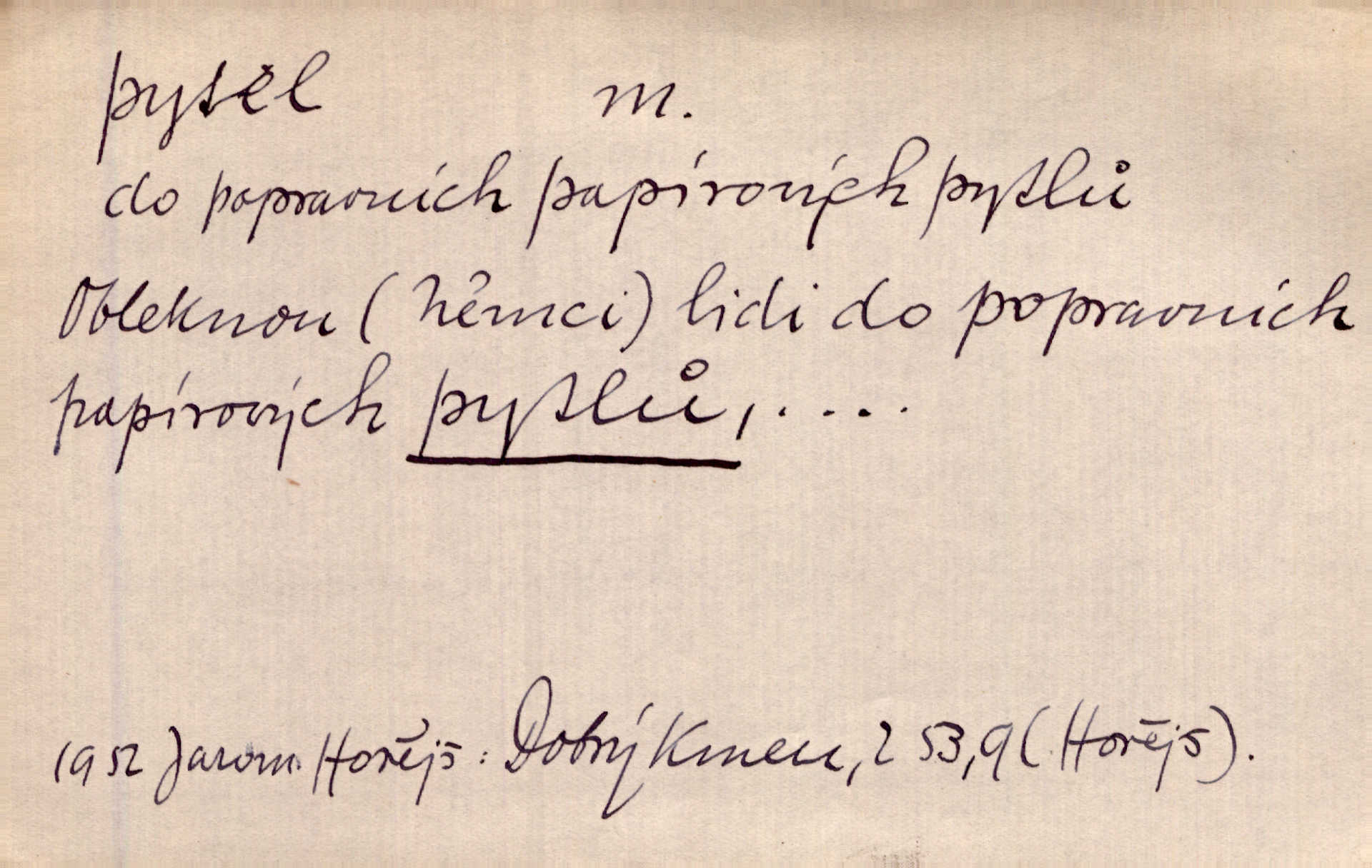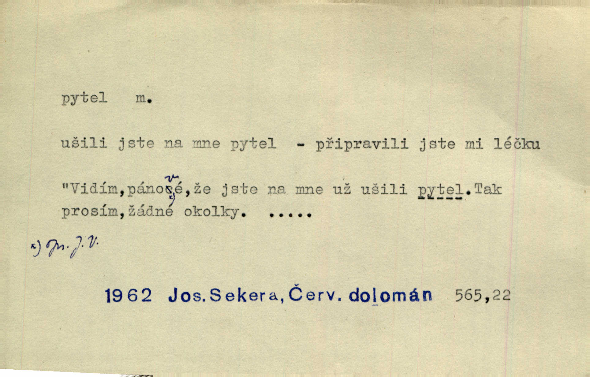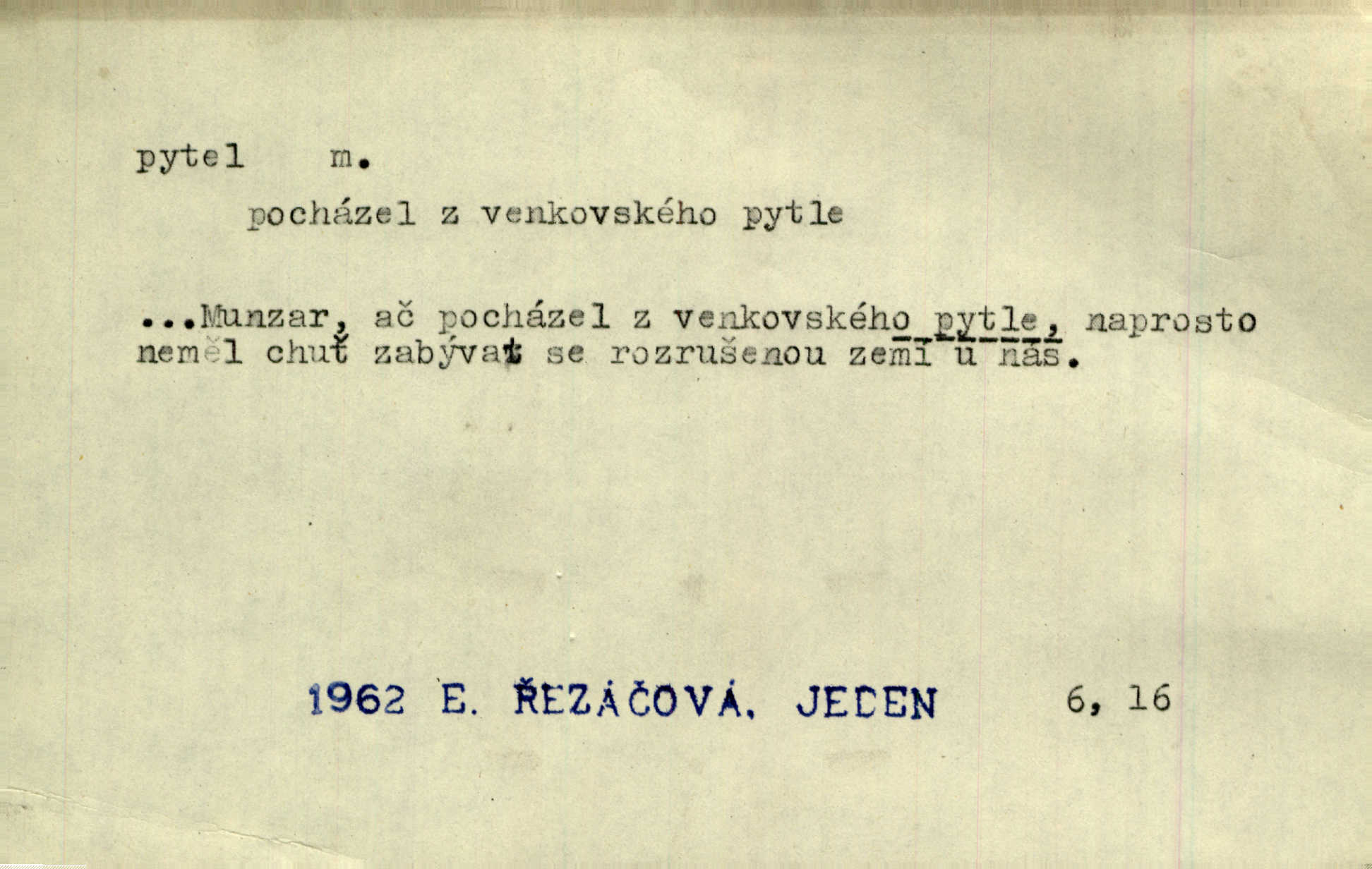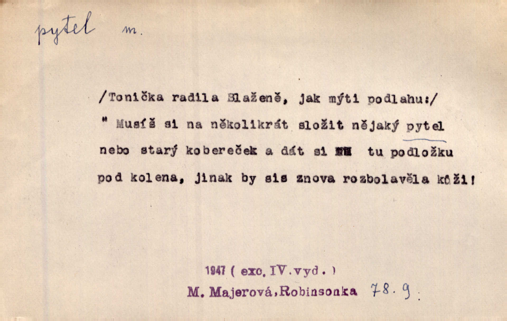- pytel, -tle m. podlouhlý obal z nějaké tkaniny, zprav. speciální, hrubé, zvané pytlovina, nebo z kůže, papíru a p., na přenášení n. uchovávání rozličných věcí. [Podruh] veze na trakaři pytel obilí. Jir. Vrátiv se [mleč] s pytli mouky i otrub, zajel do cihelničky. Rais. Pytlů rozestaveno hojně se zbožím. Ner. Utíkal muž s pytlem na zádech. Šmil. Tma bylo jako v pytli. Klost. Mlha jako pytel hnala se při zemi. J. Šír. Točí se jako sochor v pytli nemotorně. Hol. Budu se [při tanci] motat jako sysel v pytli? M. Jahn. Slova mu plynou z úst, jako by je z pytle sypal. Prav. Já už mám hlavu jako děravý pytel mám špatnou paměť. Kop. Není na hlavu padlý, „pytlem praštěný“, jak se říká. Her. K stáru vzíti pytel a jíti žebrat. Hál. Koš na ryby, pytel na raky (výraz podivu). Čel. Víc na pytli než v pytli (o pěkném zevnějšku, kryjícím chatrný vnitřek). Přísl. Šídlo se v pytli neutají. Přísl. Nekupuj zajíce v pytli věc, kterou jsi důkladně neviděl. Přísl. Už bys mohl přestat házeti pana Jahodu do jednoho pytle s oněmi skláři. Klost. Říkával, že „svázat je [ženy] všechny do jednoho pytle,“ že nejhorší vždycky na vrchu ostane. Čech. Každé nepřátelství města a venkova je nesprávné. Jsme z jednoho pytle a patříme dohromady. Brázda. Je [děvče] z chudého pytle z chudé rodiny. Herrm. Jak se [Hantych] pohne, je na něm vidět, že je ze selského pytle. Šim. „První jsme přišli, první musíme odejíti.“ „A to ne! První do pytle a poslední z pytle.“ Baar. [Zábavy,] s nimiž se v nastalém podzimu roztrhl pytel. Herrm. Slepá ulička, člověk skrze ni za cílem svým pospíchá, a najednou je v pytli — nemůže dál. Paleč. Tuna byl v pytli, neboť nevěděl, co to [slovo] je. Prav. Rozhodne se, který kterého strčí do pytle překoná, přivede do úzkých. Šmil. Začíná ho bavit, jaký pytel na něj tihle dva ušili a jak si myslí, že ho do něho nedostanou. Ros. Ta věc [útěk dceřin] nezůstane v pytli neutají se. Kosm. Děvčata [při tanci] dávala pánům košem či po česku řečeno „pytlem“ odbývala je. Win. Z dnešní řeči už soused vyrozuměl, že kdyby [na námluvy] přišel, že by syn jeho pytlem nedostal nebyl odmítnut. Jir. Nepořádné vydávaní časopisu na jisto jej sprovodí do pytle Abrahamova na onen svět. Kos. Pošt. poštovní pytel na listovní zásilky a pytlovky. Let. větrný pytel pytel z lehké látky, který se větrem nadme a ukazuje letcům směr a částečně i rychlost větru na letišti. D Expr. šat pytlovité podoby. Na tu [košili v Sibiři] se bere kamlejka, dlouhý pytel s rukávy, který nahoře má kulatou díru, skrze niž se hlava prostrkuje. ČČM. Při každém pohřbu je některé z těch padesáti římských bratrstev v nějak barveném pytli svém, do něhož pro oči jsou vypíchnuty díry. Ner. Oděv. spací pytel. D Les. hluboko zabíhající kout porostní stěny, do něhož se vítr těsná, takže hrozí průlomem celé porostní hloubky. Mysl. úmyslný otvor (větší mezera mezi střelci) při kruhovém honu, záhyb střelecké čáry, vzniklý nestejně rychlým vykračováním. D Expr. velké množství něčeho. Kdyby člověk se tak s ní potkal, ten pytel nadávek a ta hanba, kterou by člověku udělala! Klost. Všeho se dočkáš, člověče, máš-li zdravý kořen a trpělivosti pytel. Herrm. Říká se, že jest hrstka jistoty lepší, než pytel naděje. Havl. Kouká jako pytel neštěstí. Šim. D Expr. obyč. pejor. o člověku. Je jí to divné, jak se s tím prázdným pytlem může [učený pán] pustit do řeči s hloupým člověkem. Don. Tak jsem selský chomout, hrubý selský pytel — no, hezké věci to řekla o mně tvá matka! Mor. [Směr,] kterým odešel ten pytel neštěstí Robinson. Zaor. Ten starý pán je neobyčejný pytel dobroty velký dobrák. Hol.
