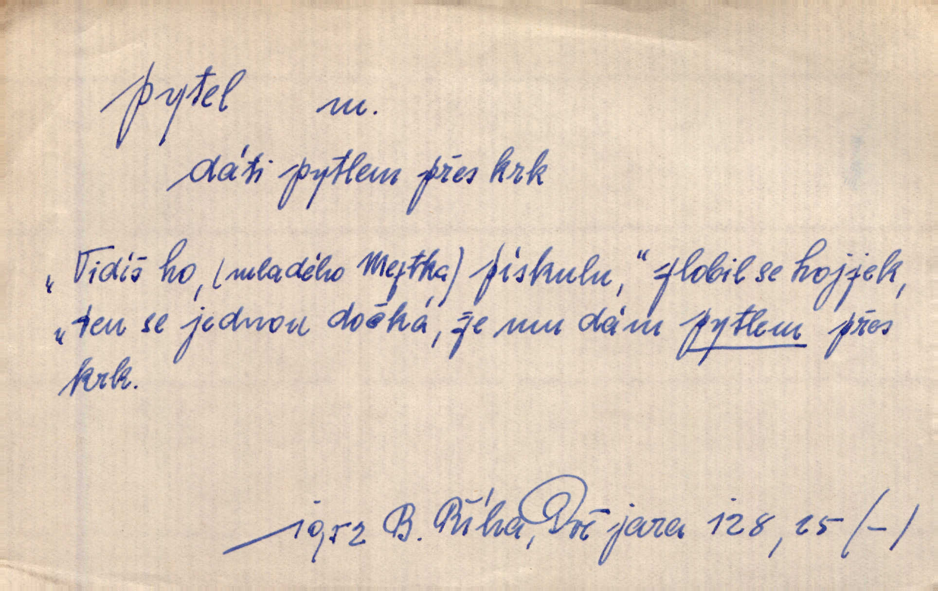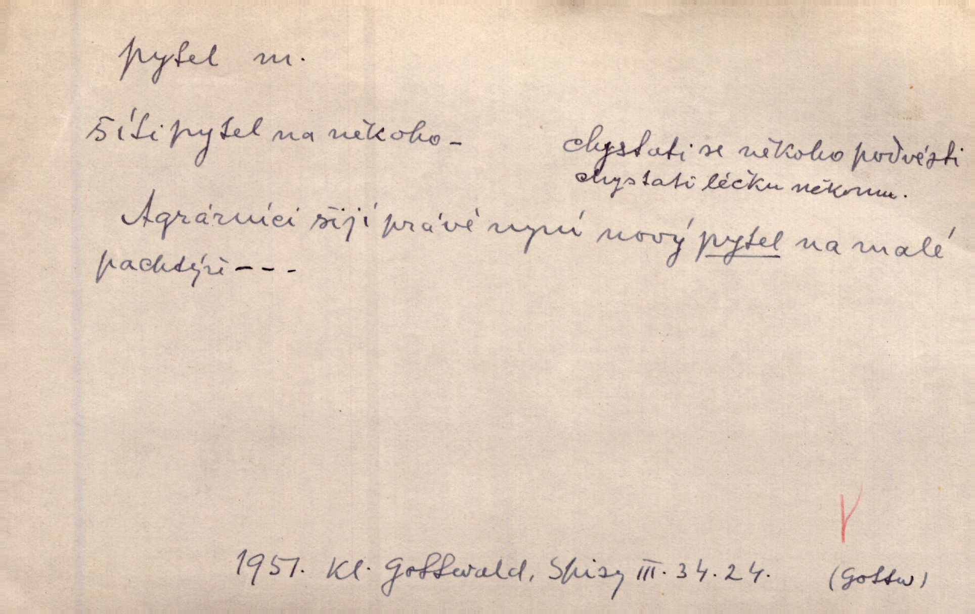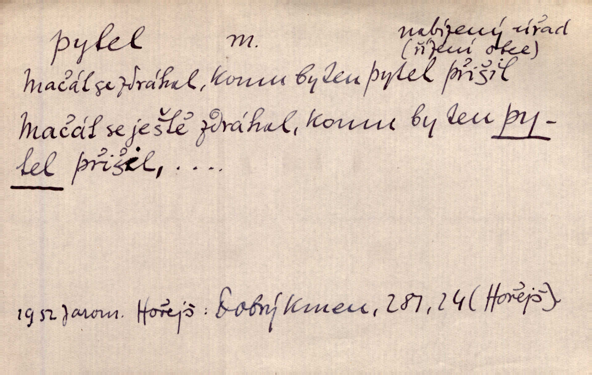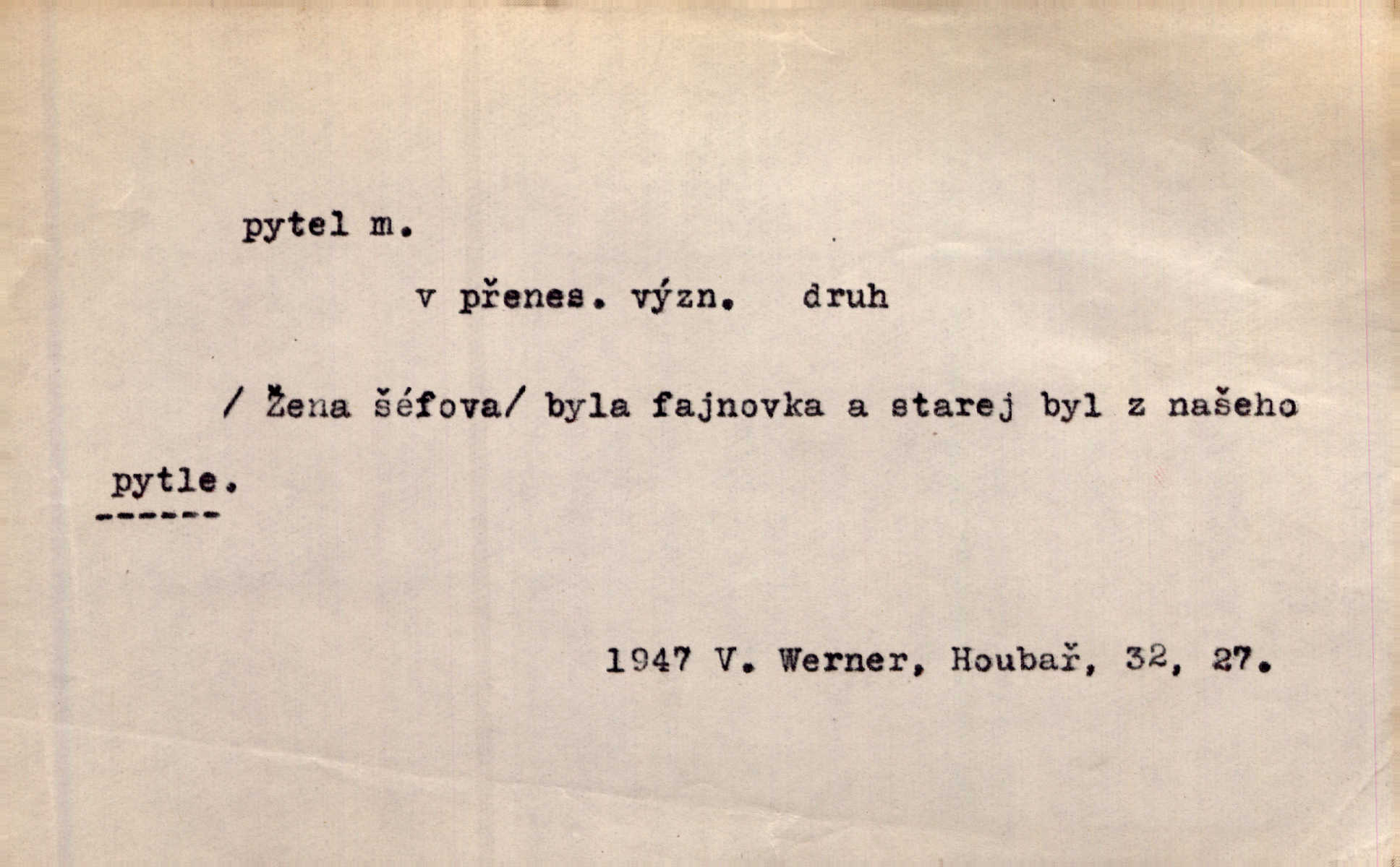 - pytel, -tle m. podlouhlý obal z nějaké tkaniny, zprav. speciální, hrubé, zvané pytlovina, nebo z kůže, papíru a p., na přenášení n. uchovávání rozličných věcí. [Podruh] veze na trakaři pytel obilí. Jir. Vrátiv se [mleč] s pytli mouky i otrub, zajel do cihelničky. Rais. Pytlů rozestaveno hojně se zbožím. Ner. Utíkal muž s pytlem na zádech. Šmil. Tma bylo jako v pytli. Klost. Mlha jako pytel hnala se při zemi. J. Šír. Točí se jako sochor v pytli nemotorně. Hol. Budu se [při tanci] motat jako sysel v pytli? M. Jahn. Slova mu plynou z úst, jako by je z pytle sypal. Prav. Já už mám hlavu jako děravý pytel mám špatnou paměť. Kop. Není na hlavu padlý, „pytlem praštěný“, jak se říká. Her. K stáru vzíti pytel a jíti žebrat. Hál. Koš na ryby, pytel na raky (výraz podivu). Čel. Víc na pytli než v pytli (o pěkném zevnějšku, kryjícím chatrný vnitřek). Přísl. Šídlo se v pytli neutají. Přísl. Nekupuj zajíce v pytli věc, kterou jsi důkladně neviděl. Přísl. Už bys mohl přestat házeti pana Jahodu do jednoho pytle s oněmi skláři. Klost. Říkával, že „svázat je [ženy] všechny do jednoho pytle,“ že nejhorší vždycky na vrchu ostane. Čech. Každé nepřátelství města a venkova je nesprávné. Jsme z jednoho pytle a patříme dohromady. Brázda. Je [děvče] z chudého pytle z chudé rodiny. Herrm. Jak se [Hantych] pohne, je na něm vidět, že je ze selského pytle. Šim. „První jsme přišli, první musíme odejíti.“ „A to ne! První do pytle a poslední z pytle.“ Baar. [Zábavy,] s nimiž se v nastalém podzimu roztrhl pytel. Herrm. Slepá ulička, člověk skrze ni za cílem svým pospíchá, a najednou je v pytli — nemůže dál. Paleč. Tuna byl v pytli, neboť nevěděl, co to [slovo] je. Prav. Rozhodne se, který kterého strčí do pytle překoná, přivede do úzkých. Šmil. Začíná ho bavit, jaký pytel na něj tihle dva ušili a jak si myslí, že ho do něho nedostanou. Ros. Ta věc [útěk dceřin] nezůstane v pytli neutají se. Kosm. Děvčata [při tanci] dávala pánům košem či po česku řečeno „pytlem“ odbývala je. Win. Z dnešní řeči už soused vyrozuměl, že kdyby [na námluvy] přišel, že by syn jeho pytlem nedostal nebyl odmítnut. Jir. Nepořádné vydávaní časopisu na jisto jej sprovodí do pytle Abrahamova na onen svět. Kos. Pošt. poštovní pytel na listovní zásilky a pytlovky. Let. větrný pytel pytel z lehké látky, který se větrem nadme a ukazuje letcům směr a částečně i rychlost větru na letišti. D Expr. šat pytlovité podoby. Na tu [košili v Sibiři] se bere kamlejka, dlouhý pytel s rukávy, který nahoře má kulatou díru, skrze niž se hlava prostrkuje. ČČM. Při každém pohřbu je některé z těch padesáti římských bratrstev v nějak barveném pytli svém, do něhož pro oči jsou vypíchnuty díry. Ner. Oděv. spací pytel. D Les. hluboko zabíhající kout porostní stěny, do něhož se vítr těsná, takže hrozí průlomem celé porostní hloubky. Mysl. úmyslný otvor (větší mezera mezi střelci) při kruhovém honu, záhyb střelecké čáry, vzniklý nestejně rychlým vykračováním. D Expr. velké množství něčeho. Kdyby člověk se tak s ní potkal, ten pytel nadávek a ta hanba, kterou by člověku udělala! Klost. Všeho se dočkáš, člověče, máš-li zdravý kořen a trpělivosti pytel. Herrm. Říká se, že jest hrstka jistoty lepší, než pytel naděje. Havl. Kouká jako pytel neštěstí. Šim. D Expr. obyč. pejor. o člověku. Je jí to divné, jak se s tím prázdným pytlem může [učený pán] pustit do řeči s hloupým člověkem. Don. Tak jsem selský chomout, hrubý selský pytel — no, hezké věci to řekla o mně tvá matka! Mor. [Směr,] kterým odešel ten pytel neštěstí Robinson. Zaor. Ten starý pán je neobyčejný pytel dobroty velký dobrák. Hol.
