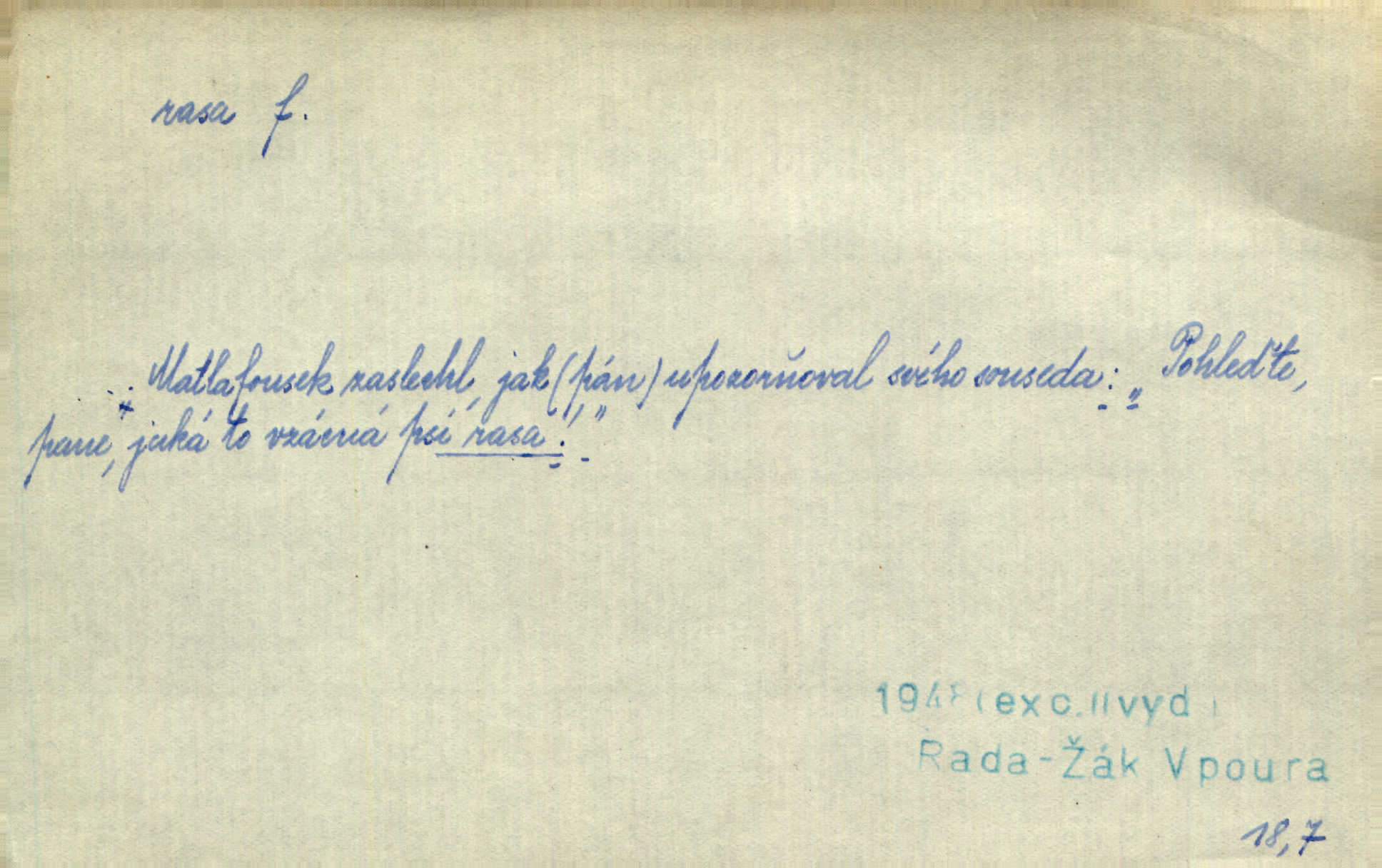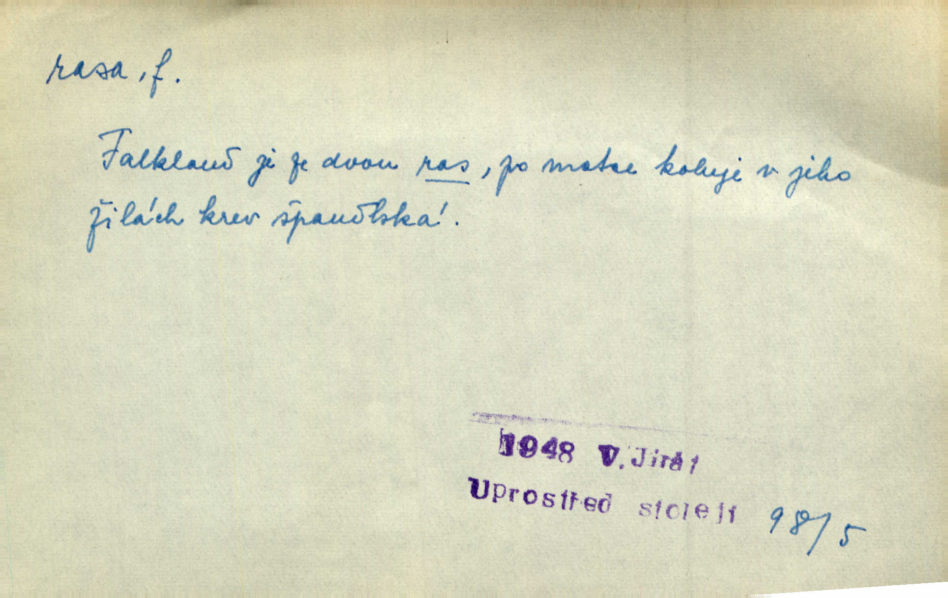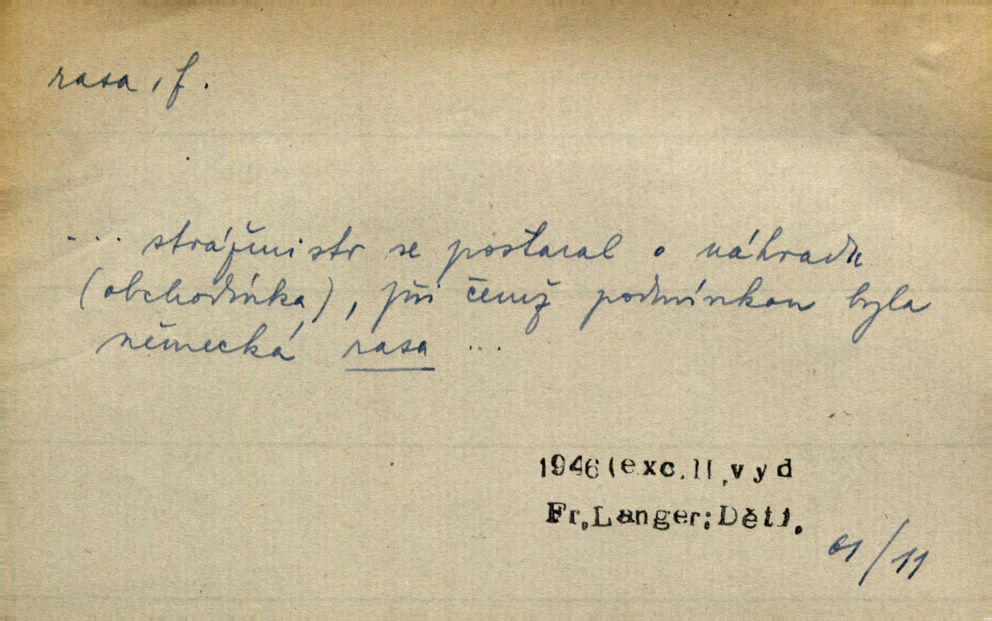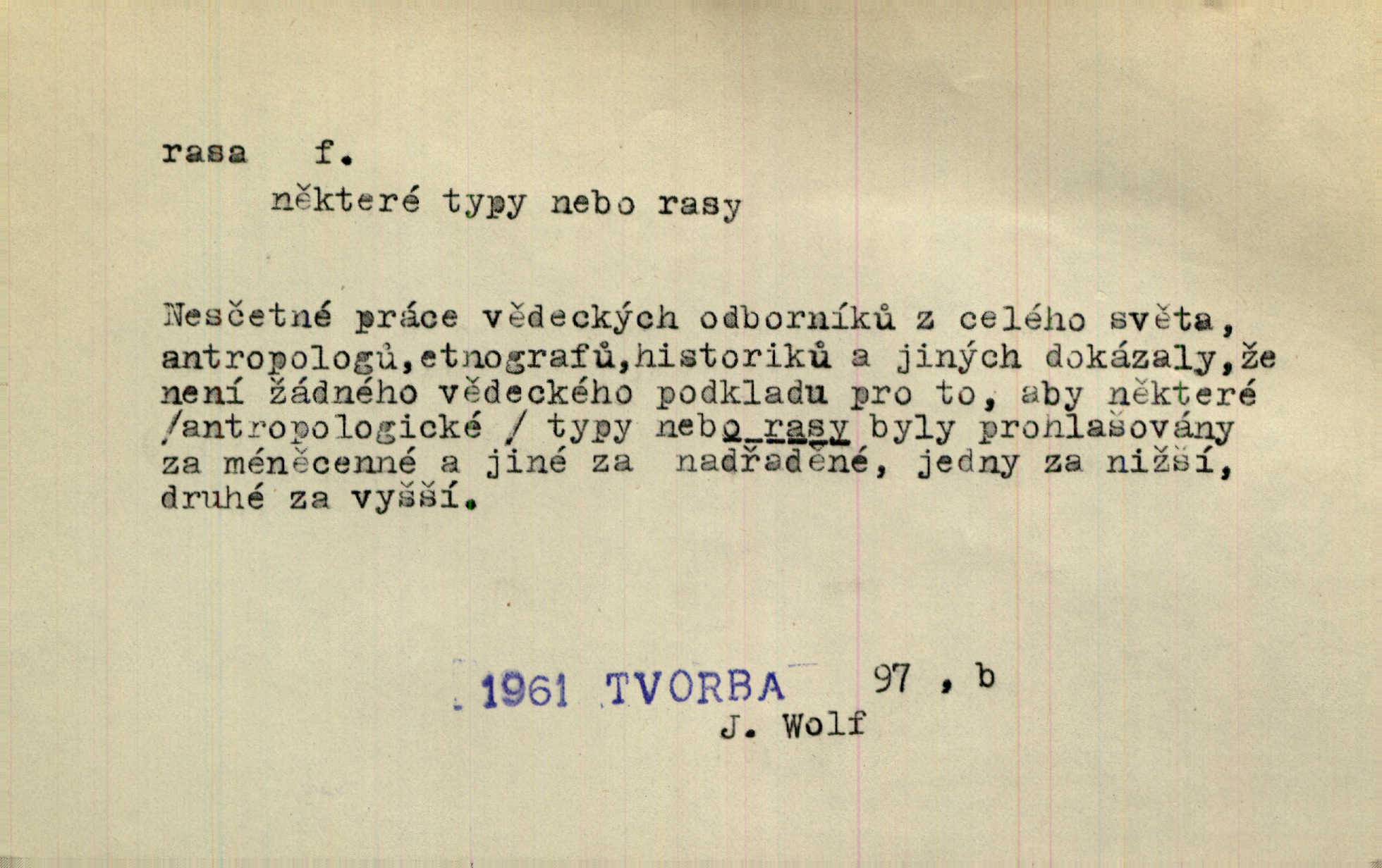 - rasa (ps. též raça), -y f. skupina individuí, která pocházejí ze stejné rodové linie a zdědila tedy stejné tělesné i duševní vlastnosti, plemeno. Zvíře non plus ultra. Čistá raça! Herrm. Smečka psů nejušlechtilejší rasy letěla před koňmi. Zey. Je to brána východu, jíž procházejí snad všechny rasy Asie. J. Havlasa. Čím zachovalejší a čistší raça toho kterého národa, tím zdravější a čistší je také jeho plod. V. Mrš. Zool. kategorie v systematice zoologické nižší než druh a vyšší než odchylka, subspecies. Bot. odchylka kulturní rostliny člověkem vědomě vypěstovaná a získaná výběrem n. křížením, sorta.