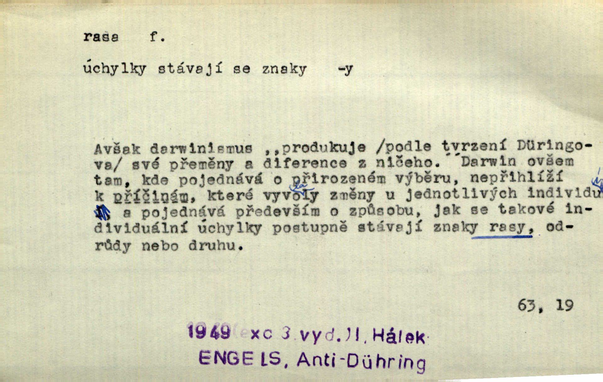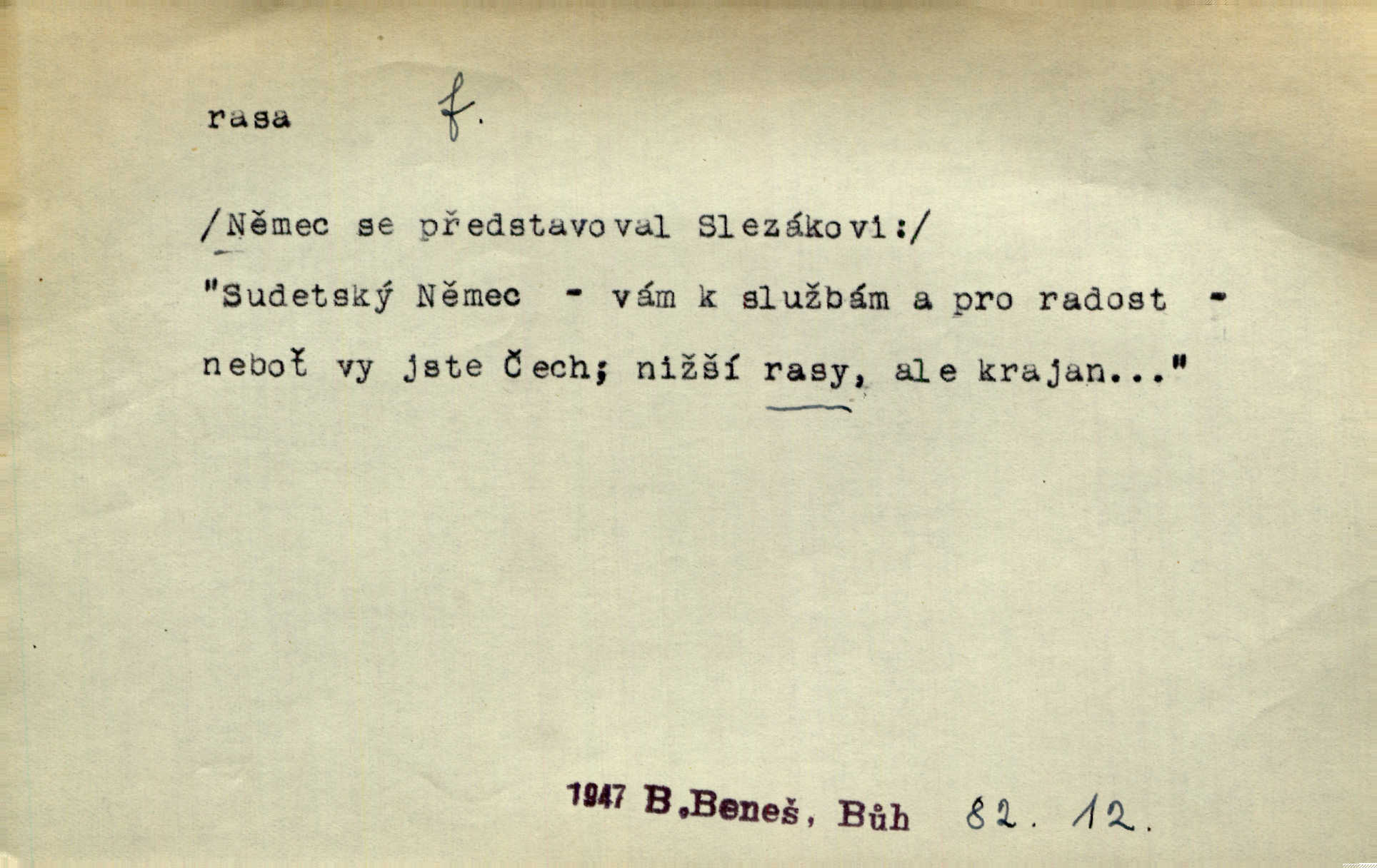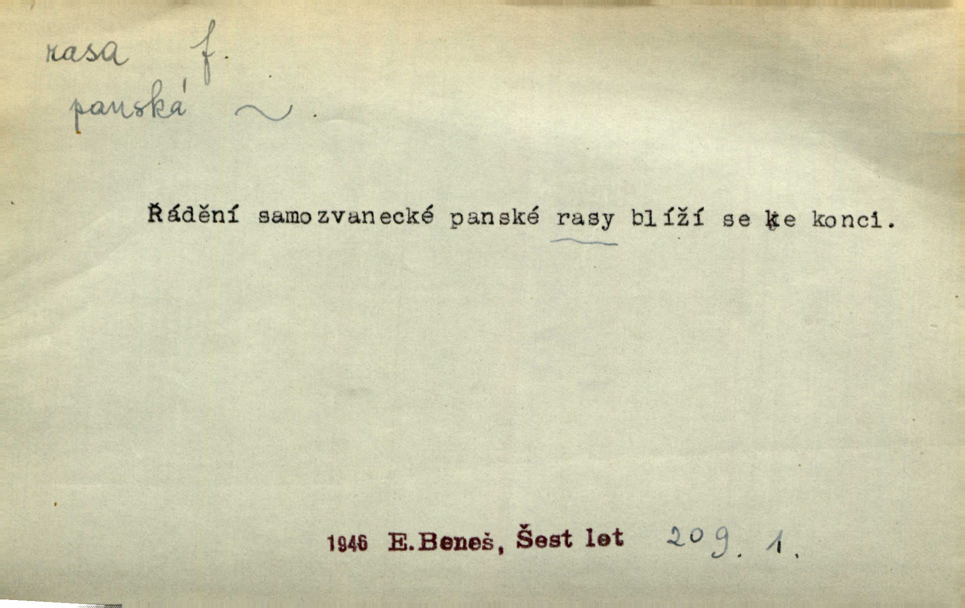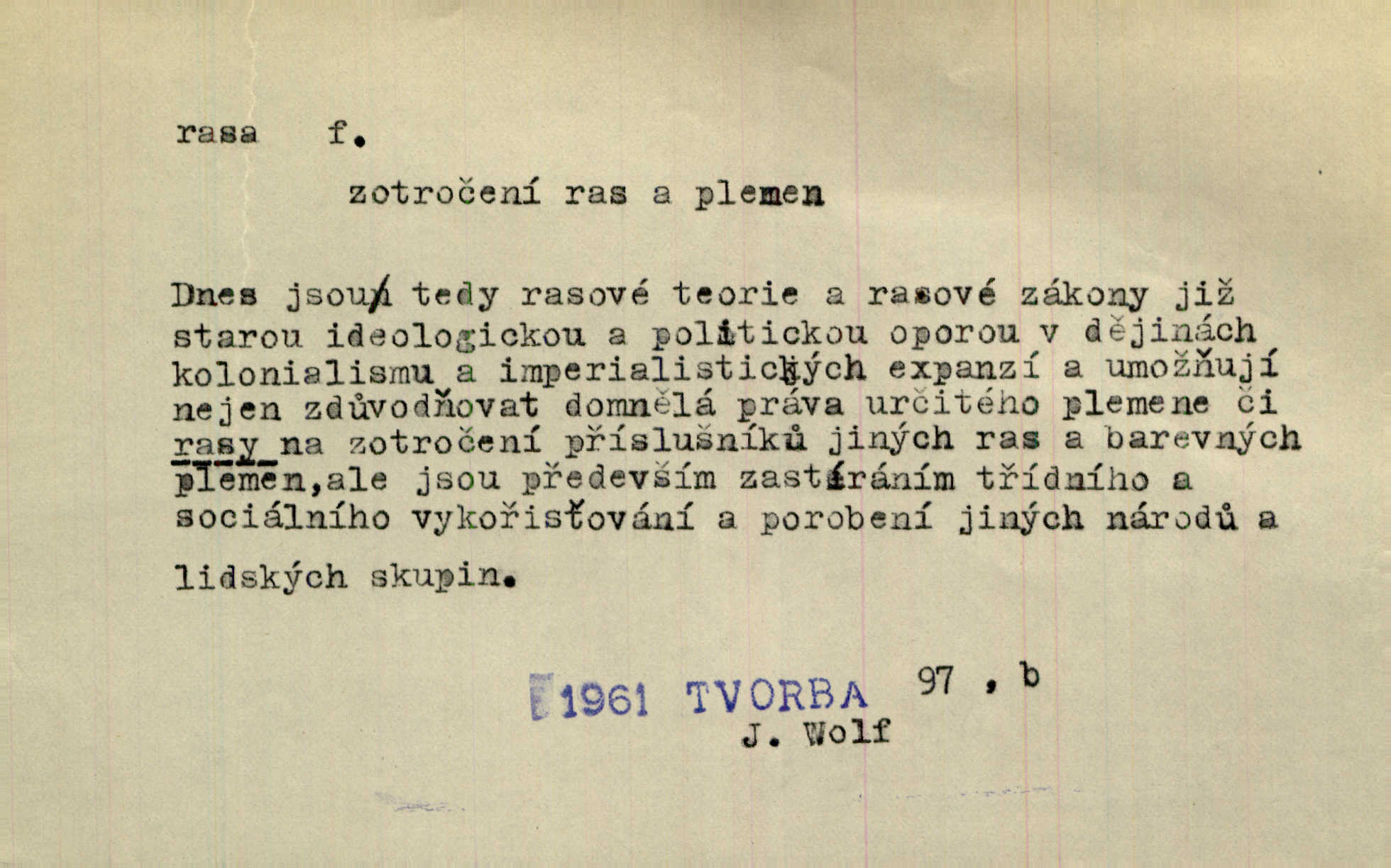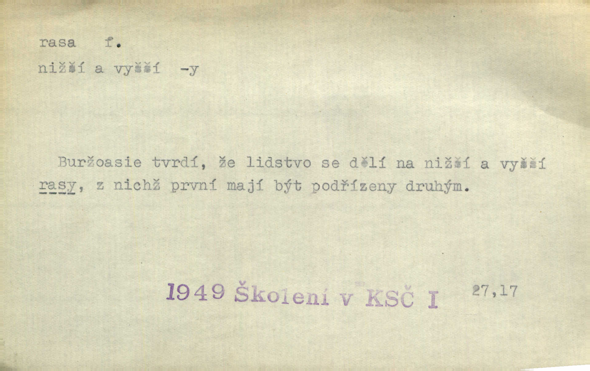 - rasa (ps. též raça), -y f. skupina individuí, která pocházejí ze stejné rodové linie a zdědila tedy stejné tělesné i duševní vlastnosti, plemeno. Zvíře non plus ultra. Čistá raça! Herrm. Smečka psů nejušlechtilejší rasy letěla před koňmi. Zey. Je to brána východu, jíž procházejí snad všechny rasy Asie. J. Havlasa. Čím zachovalejší a čistší raça toho kterého národa, tím zdravější a čistší je také jeho plod. V. Mrš. Zool. kategorie v systematice zoologické nižší než druh a vyšší než odchylka, subspecies. Bot. odchylka kulturní rostliny člověkem vědomě vypěstovaná a získaná výběrem n. křížením, sorta.