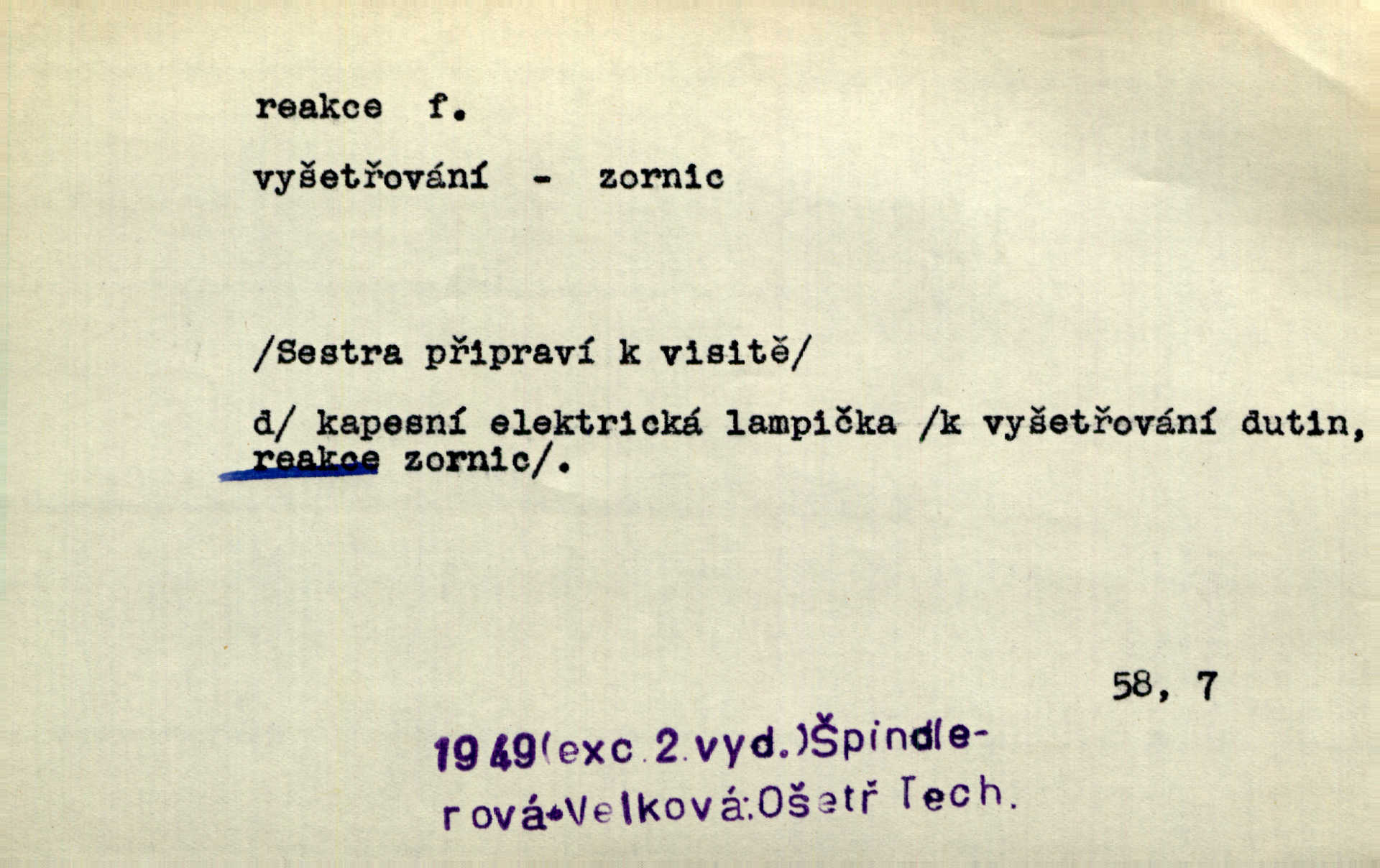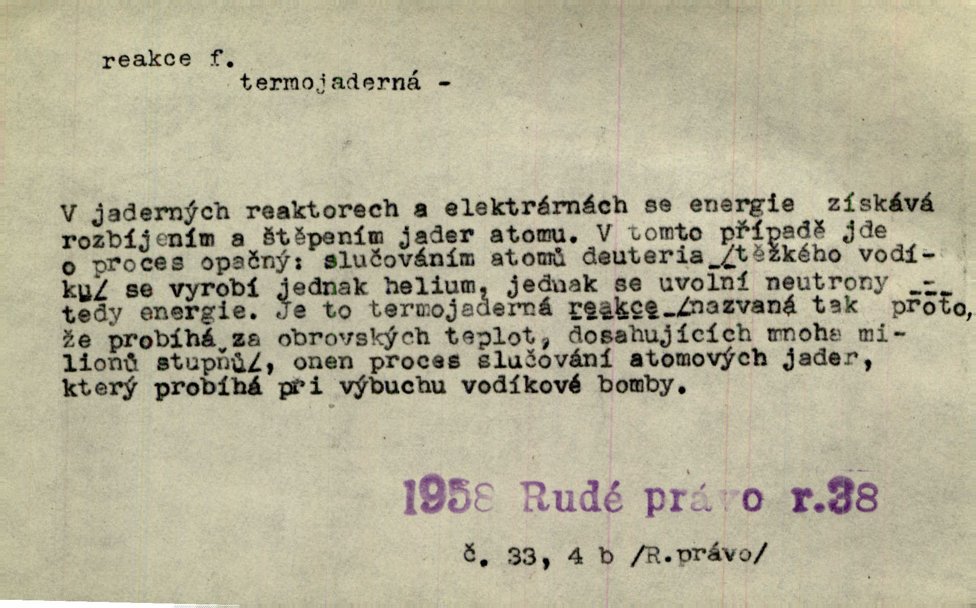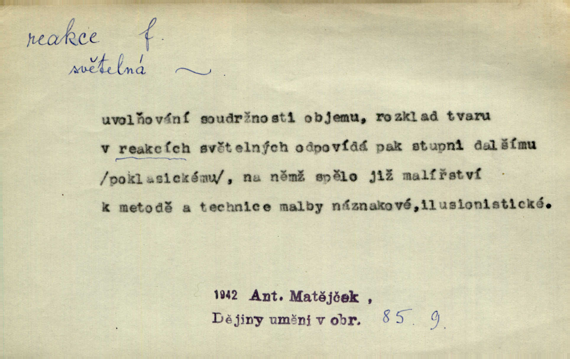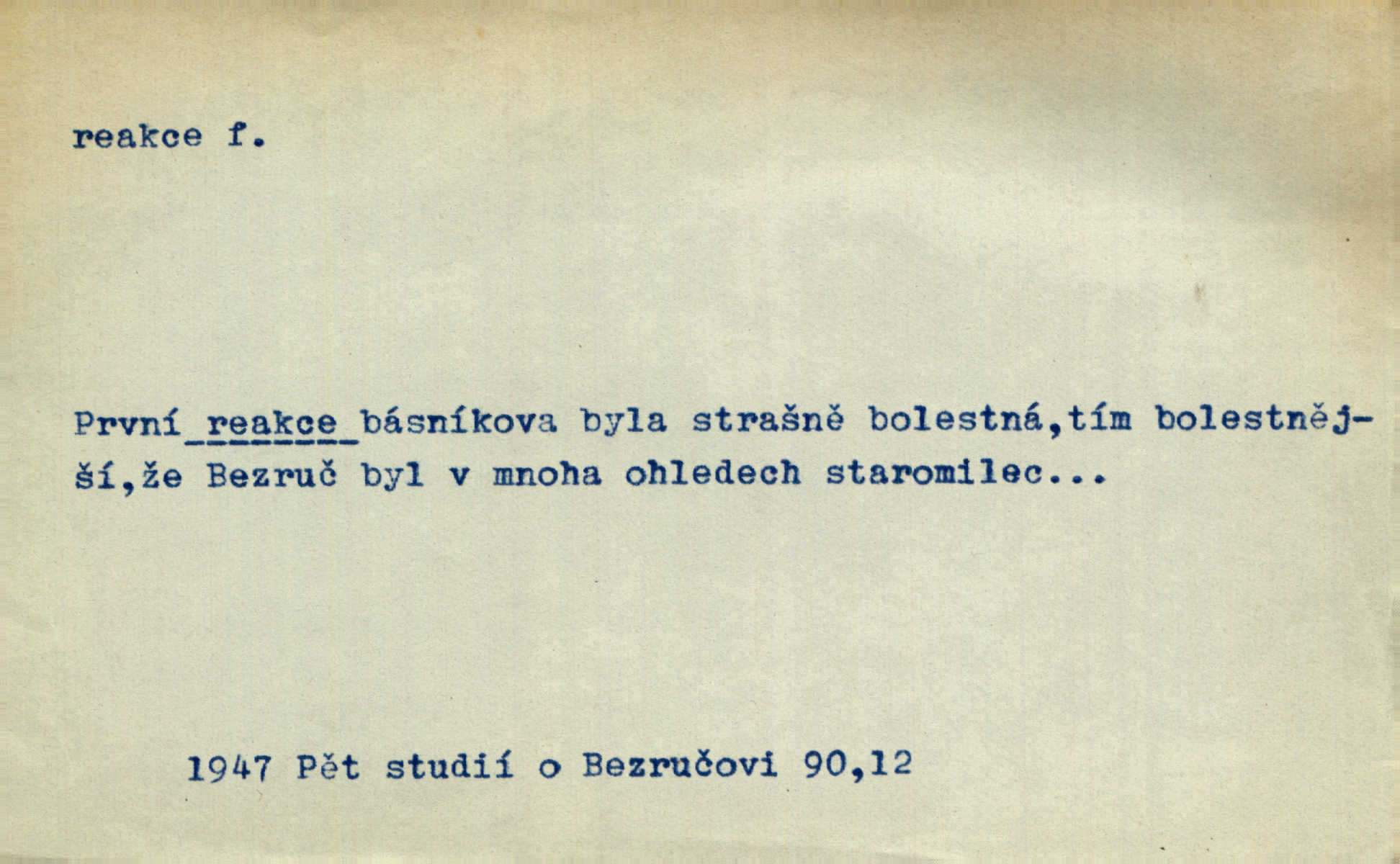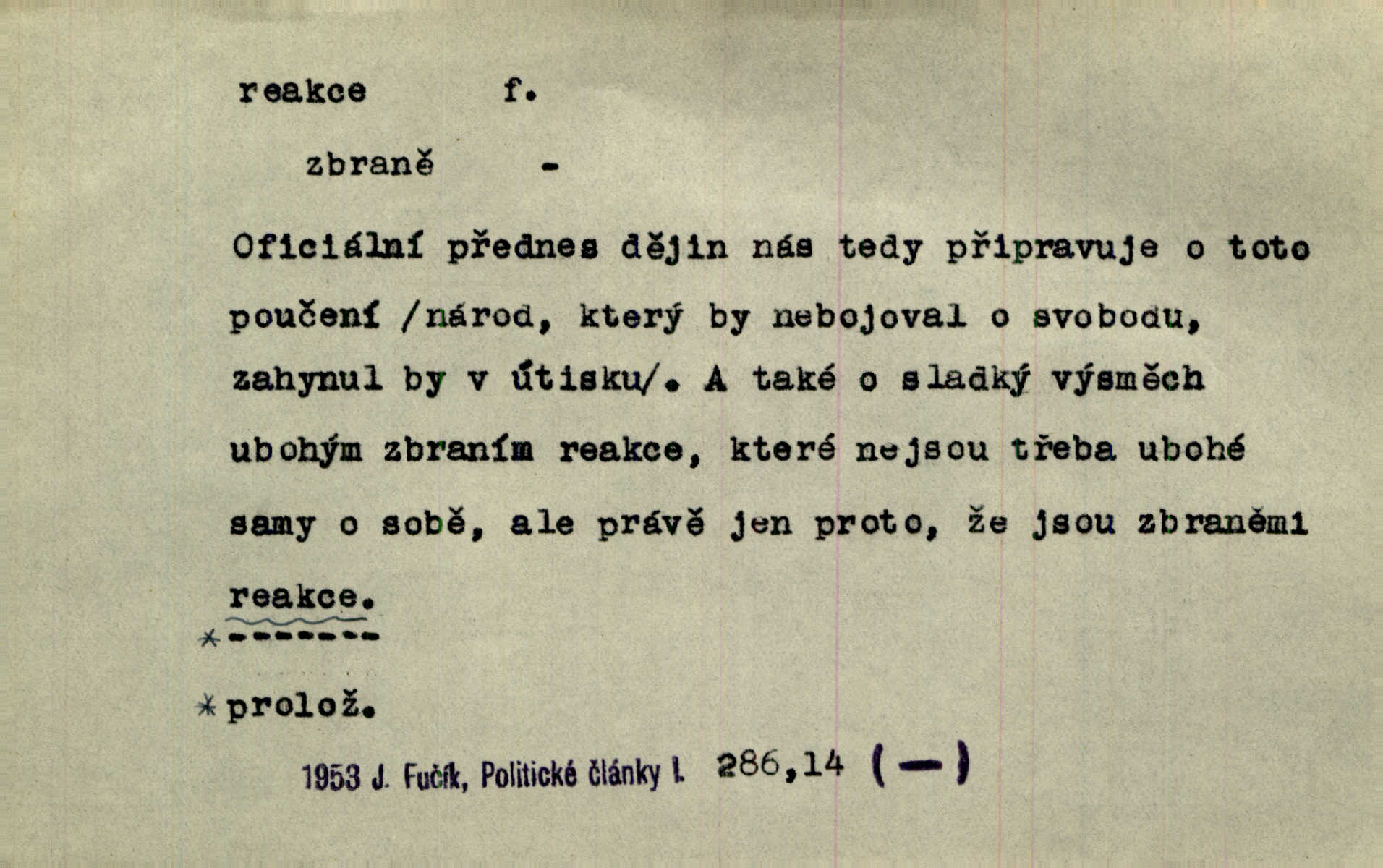 - reakce, -e f. (zast. reakcí, -í) f. činnost n. stav vzbuzený nějakým popudem, podnětem, ohlas, odezva. Pochybuje se o činu lidském, který by byl něco kladného a svéprávného, t. j. něco jiného než pouhá reakce na něco vnějškového. Šal. Zakňučení strachy bylo jedinou reakcí [hraběte] na pohrůžku. Čap. Ch. Pravidlem jsou u něho [Svobody] tlumené akce a reakce průměrného sentimentu. Sez. List otcův způsobil ve mně hlubokou reakci. Kun. Chci se zmínit o několika dopisech, jež mi byly doručeny jako reakce či odezva na mé články. Nor. Chem. chemický pochod, při němž nastávají změny látkové; reakce skladné, rozkladné, barevné, isolované a j. Reakce prostředí kyselá, neutrální, alkalická. Fysiol., psych. změna v celém organismu n. jednotlivých ústrojích odpovídající na popud n. podráždění. Lék. reakce očkování a pod. Fys. silový děj způsobený jiným dějem, akcí; Newtonův princip akce a reakce. D stav, hnutí jsoucí v protikladu k stavu, hnutí předcházejícímu. Nezkalená veselost [pana domácího] trvala jen několik dní. Nastala reakce, jakási ochablost. Arb. Proud slzí se zarazil, nastala reakce, hněv zaujal místo bolu. Klost. Asketa probudil se opět v Xaveru a reakce jeho opojení byla trpká! Zey. Tenkráte [v době husitské] tmavé a šeré barvy [krojů] nabyly vrchu. Ale již koncem 15. stol. nastala v tom reakce. Nádhera krojů zavládla zase. Jir. D politické hnutí, jež po období převratů a politických n. j. společenských reforem usiluje obnoviti dřívější řád, zpátečnictví. Výstřednosti francouzské revoluce vyvolaly nutně všeobecnou reakci. Grégr. Smrt Ludvíka XIV. byla heslem k reakci. J. Malý. Kleomenes pokouší se o zavedení reakce v Athenách. Kvíč. Svoboda vychází z dětských střevíčků, reakcí ze starého haraburdí. Ner. Nastal v celé říši zpátečnický ruch, a reakce byla brzo v plném květu. I. Klicp. V době reakce bachovské osvědčilo se úplně, co [Náprstek] předvídal! Zey. D hnutí, směr potírající něco, stavějící se proti něčemu, odpor proti něčemu. Silná reakce proti utlačování předešlých roků trvá ještě. Zl. Praha. Bylať jednota Strakonická reakcí proti Poděbradským. Světozor. Jeť ve mně reakce proti materialismu. Podl. Nastala i reakce proti němu [Březinovi]. Dur. V malbě krajin impresionism jest poměrně mladý, jest reakcí proti formalismu. Lier.