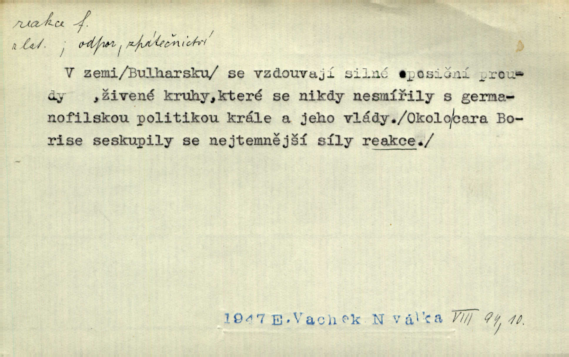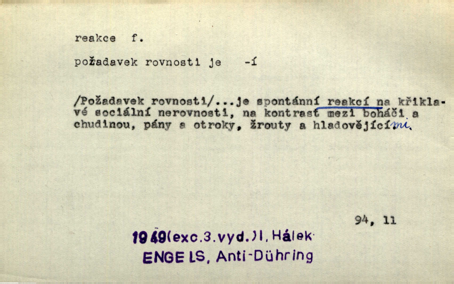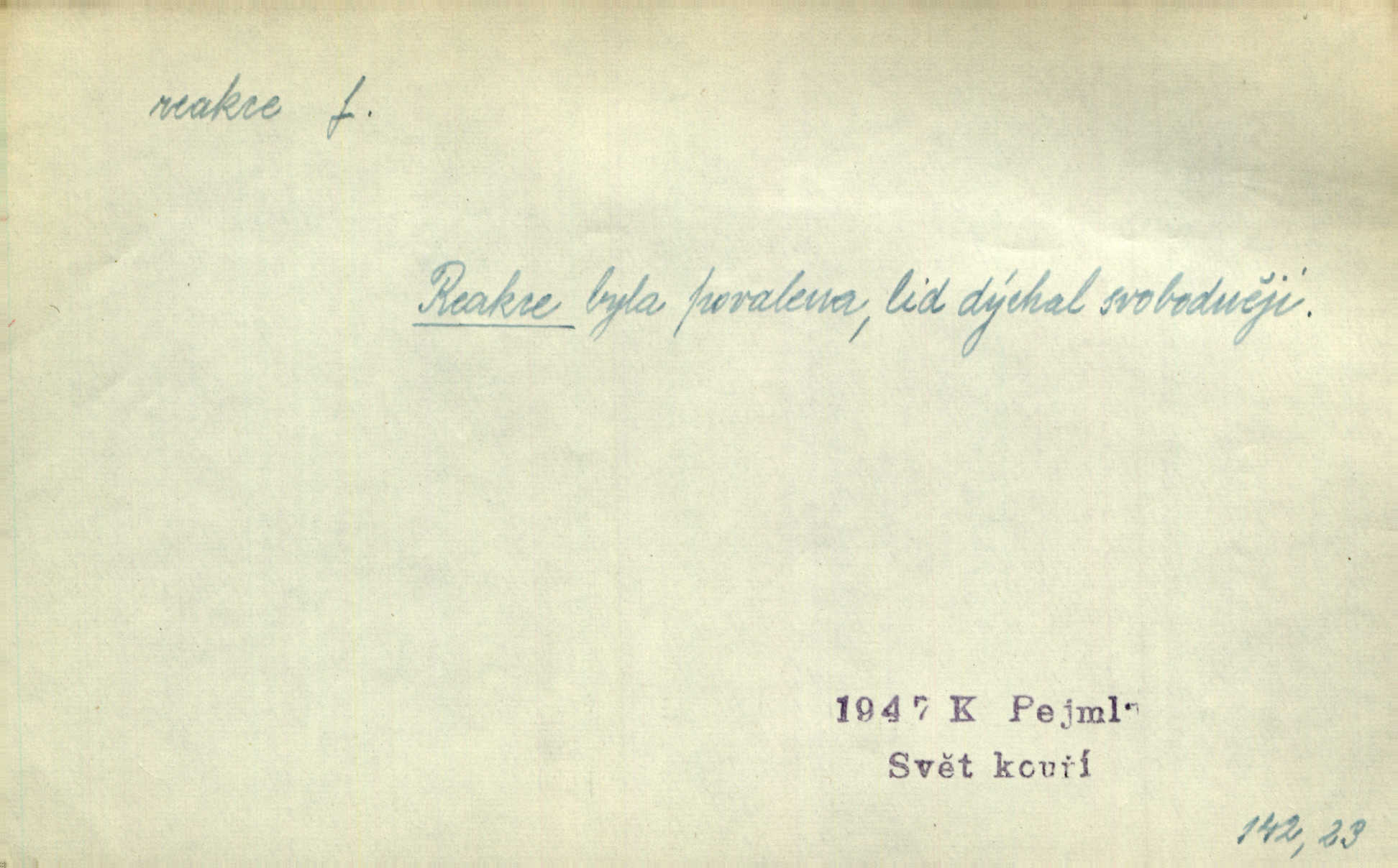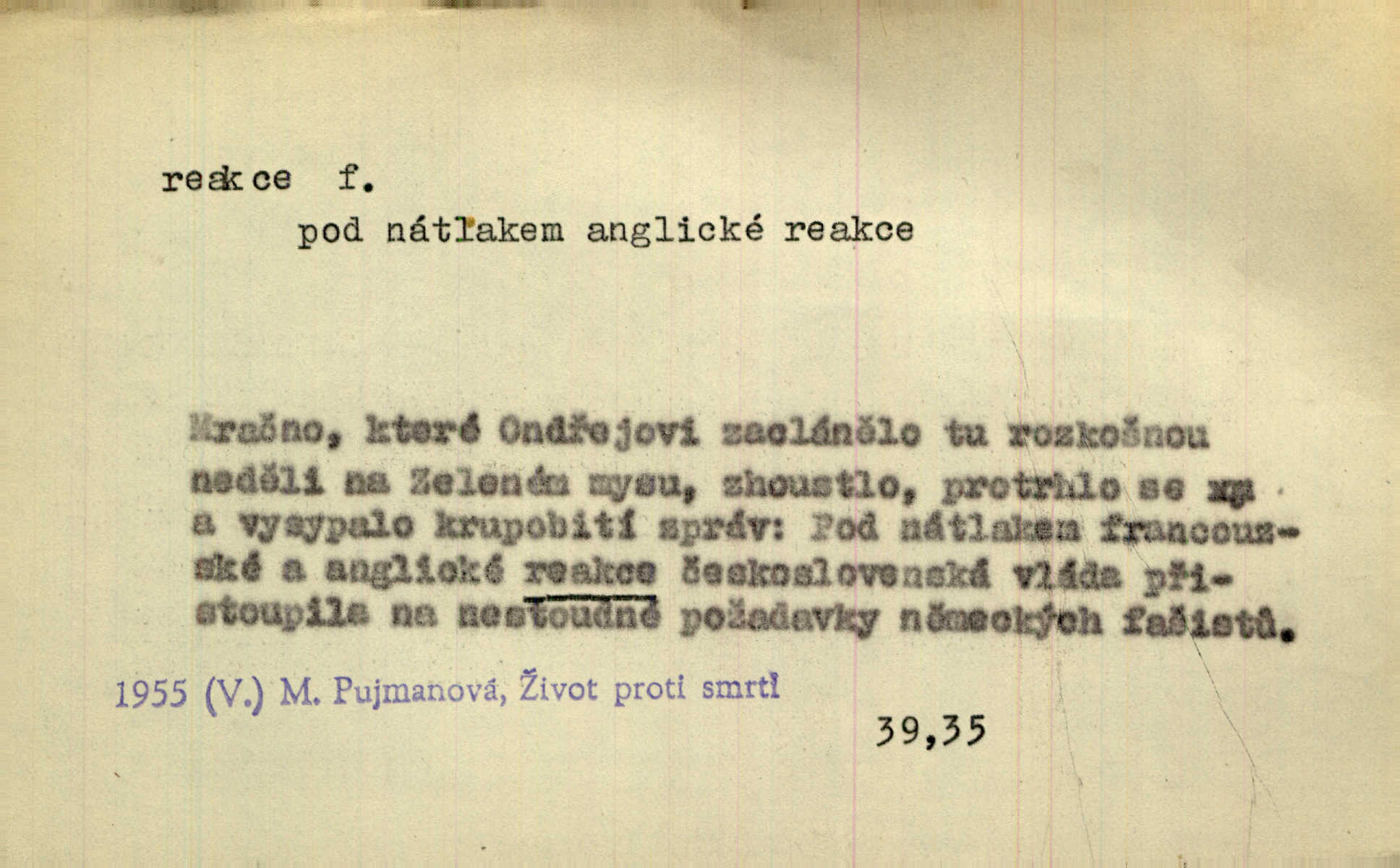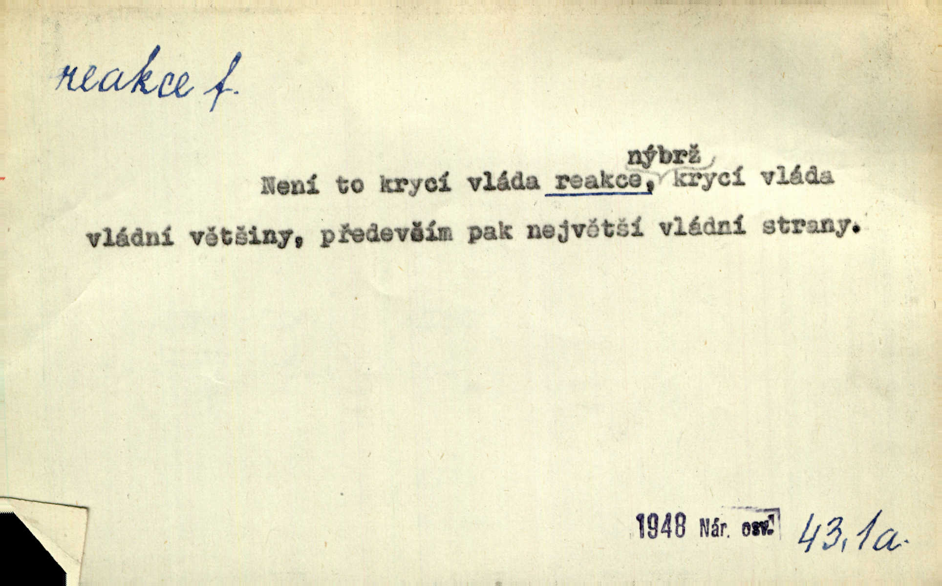 - reakce, -e f. (zast. reakcí, -í) f. činnost n. stav vzbuzený nějakým popudem, podnětem, ohlas, odezva. Pochybuje se o činu lidském, který by byl něco kladného a svéprávného, t. j. něco jiného než pouhá reakce na něco vnějškového. Šal. Zakňučení strachy bylo jedinou reakcí [hraběte] na pohrůžku. Čap. Ch. Pravidlem jsou u něho [Svobody] tlumené akce a reakce průměrného sentimentu. Sez. List otcův způsobil ve mně hlubokou reakci. Kun. Chci se zmínit o několika dopisech, jež mi byly doručeny jako reakce či odezva na mé články. Nor. Chem. chemický pochod, při němž nastávají změny látkové; reakce skladné, rozkladné, barevné, isolované a j. Reakce prostředí kyselá, neutrální, alkalická. Fysiol., psych. změna v celém organismu n. jednotlivých ústrojích odpovídající na popud n. podráždění. Lék. reakce očkování a pod. Fys. silový děj způsobený jiným dějem, akcí; Newtonův princip akce a reakce. D stav, hnutí jsoucí v protikladu k stavu, hnutí předcházejícímu. Nezkalená veselost [pana domácího] trvala jen několik dní. Nastala reakce, jakási ochablost. Arb. Proud slzí se zarazil, nastala reakce, hněv zaujal místo bolu. Klost. Asketa probudil se opět v Xaveru a reakce jeho opojení byla trpká! Zey. Tenkráte [v době husitské] tmavé a šeré barvy [krojů] nabyly vrchu. Ale již koncem 15. stol. nastala v tom reakce. Nádhera krojů zavládla zase. Jir. D politické hnutí, jež po období převratů a politických n. j. společenských reforem usiluje obnoviti dřívější řád, zpátečnictví. Výstřednosti francouzské revoluce vyvolaly nutně všeobecnou reakci. Grégr. Smrt Ludvíka XIV. byla heslem k reakci. J. Malý. Kleomenes pokouší se o zavedení reakce v Athenách. Kvíč. Svoboda vychází z dětských střevíčků, reakcí ze starého haraburdí. Ner. Nastal v celé říši zpátečnický ruch, a reakce byla brzo v plném květu. I. Klicp. V době reakce bachovské osvědčilo se úplně, co [Náprstek] předvídal! Zey. D hnutí, směr potírající něco, stavějící se proti něčemu, odpor proti něčemu. Silná reakce proti utlačování předešlých roků trvá ještě. Zl. Praha. Bylať jednota Strakonická reakcí proti Poděbradským. Světozor. Jeť ve mně reakce proti materialismu. Podl. Nastala i reakce proti němu [Březinovi]. Dur. V malbě krajin impresionism jest poměrně mladý, jest reakcí proti formalismu. Lier.