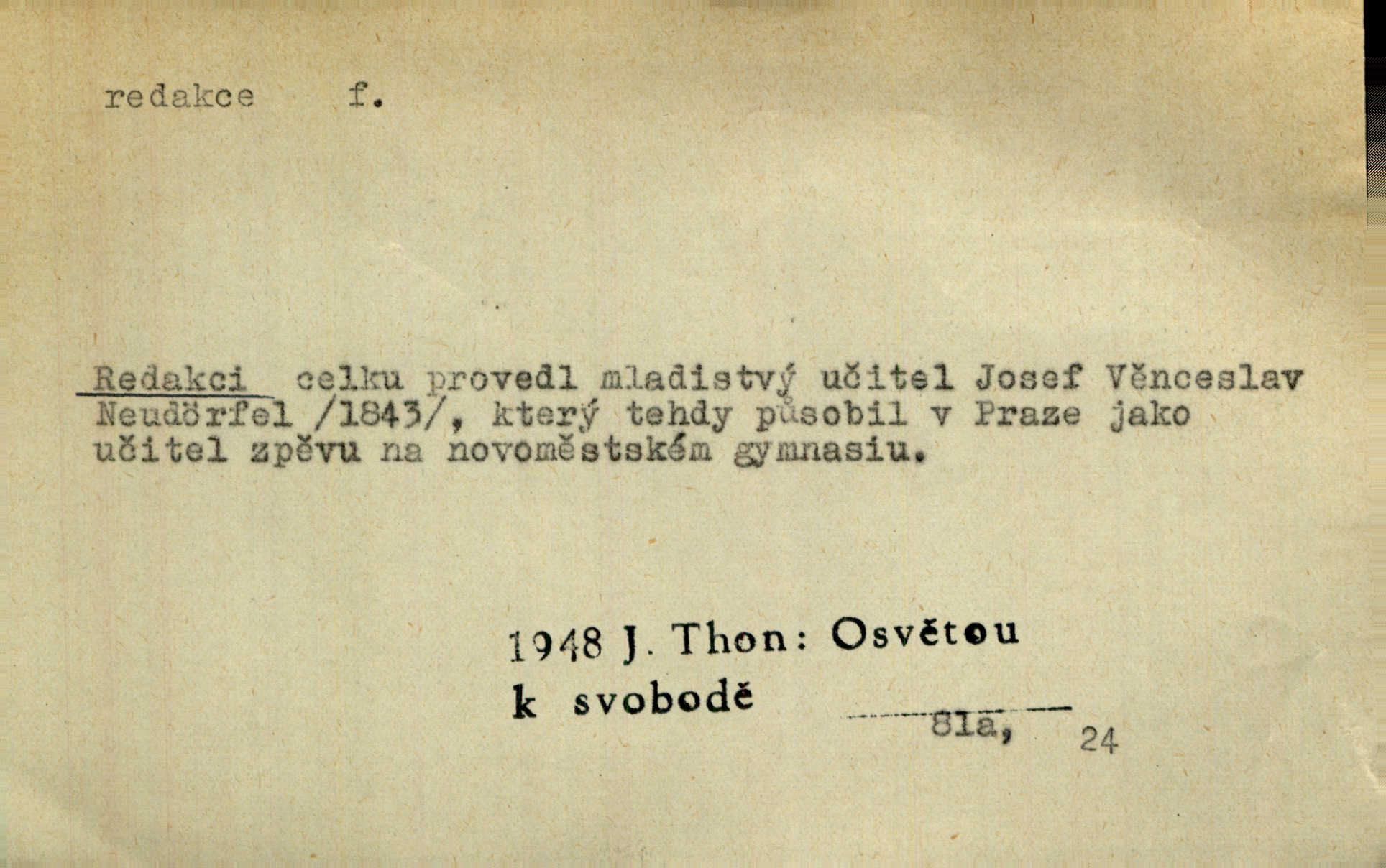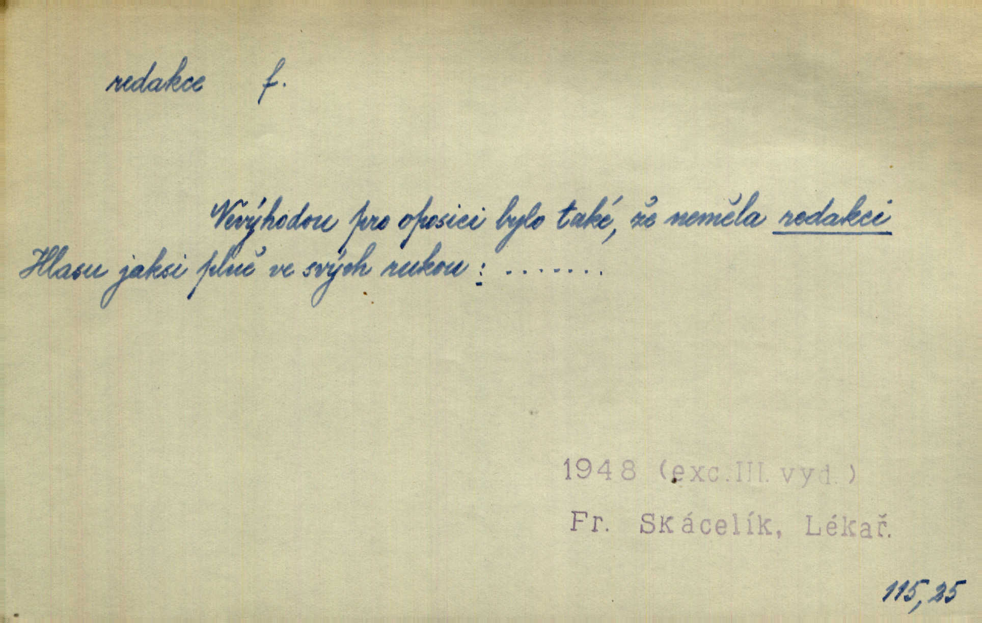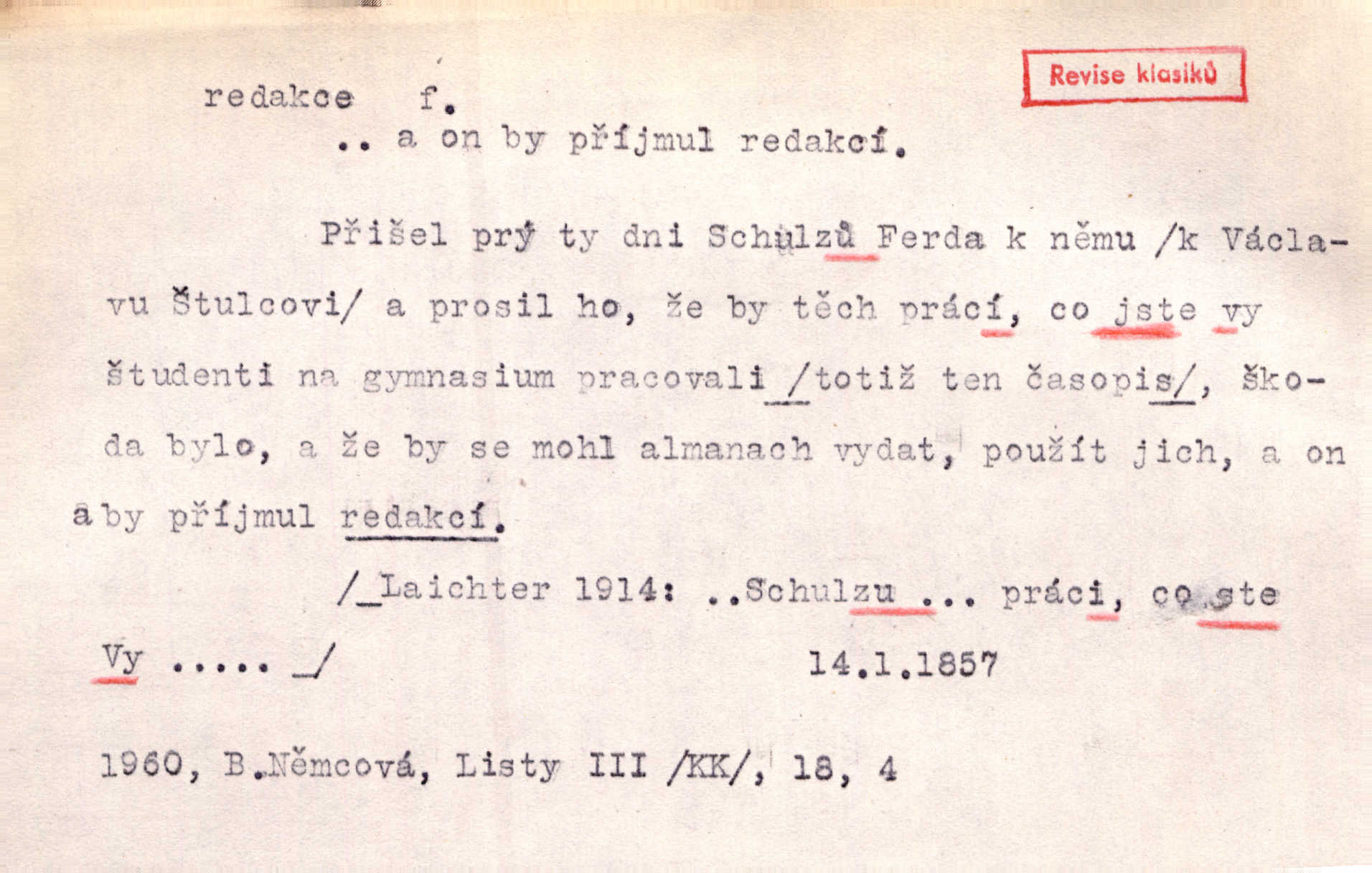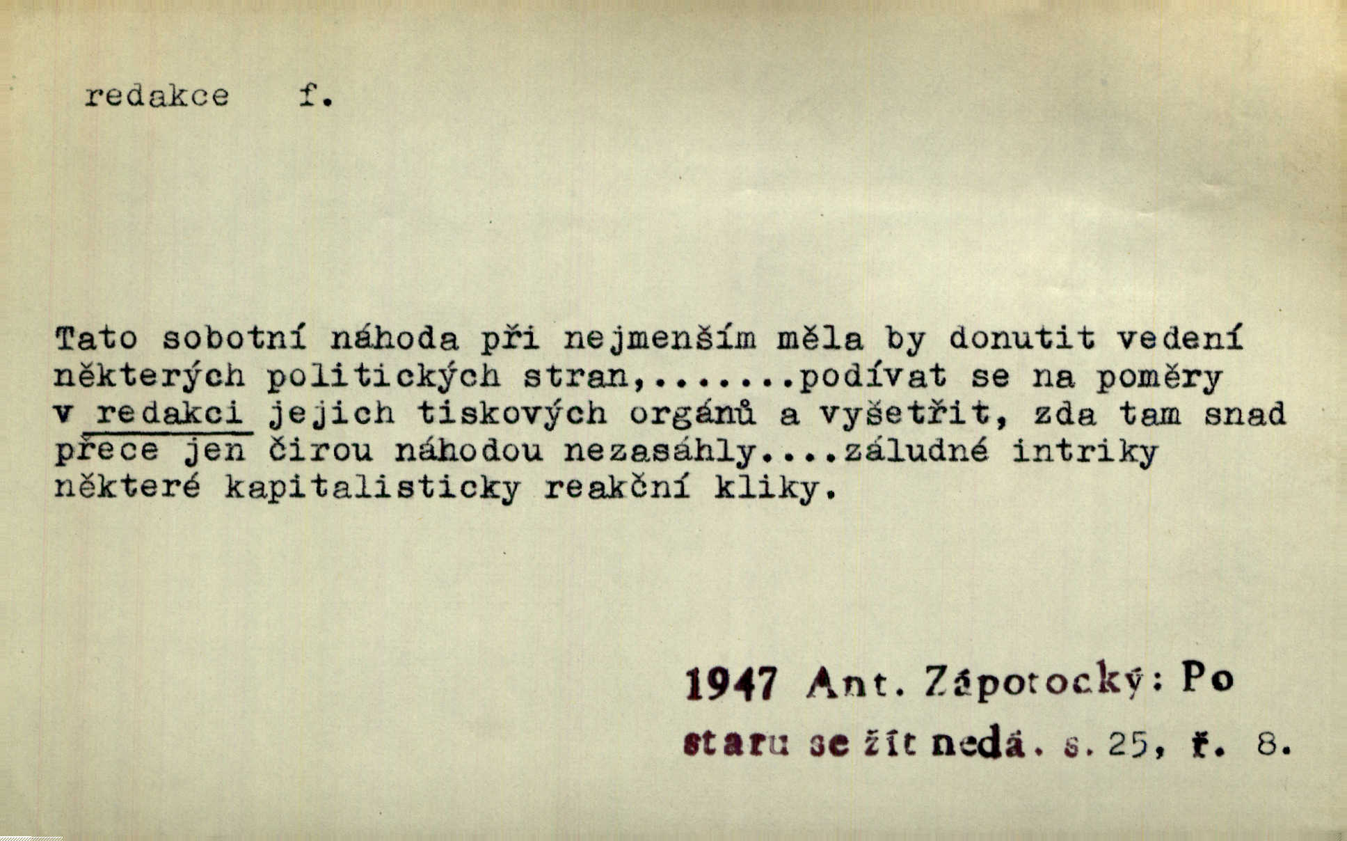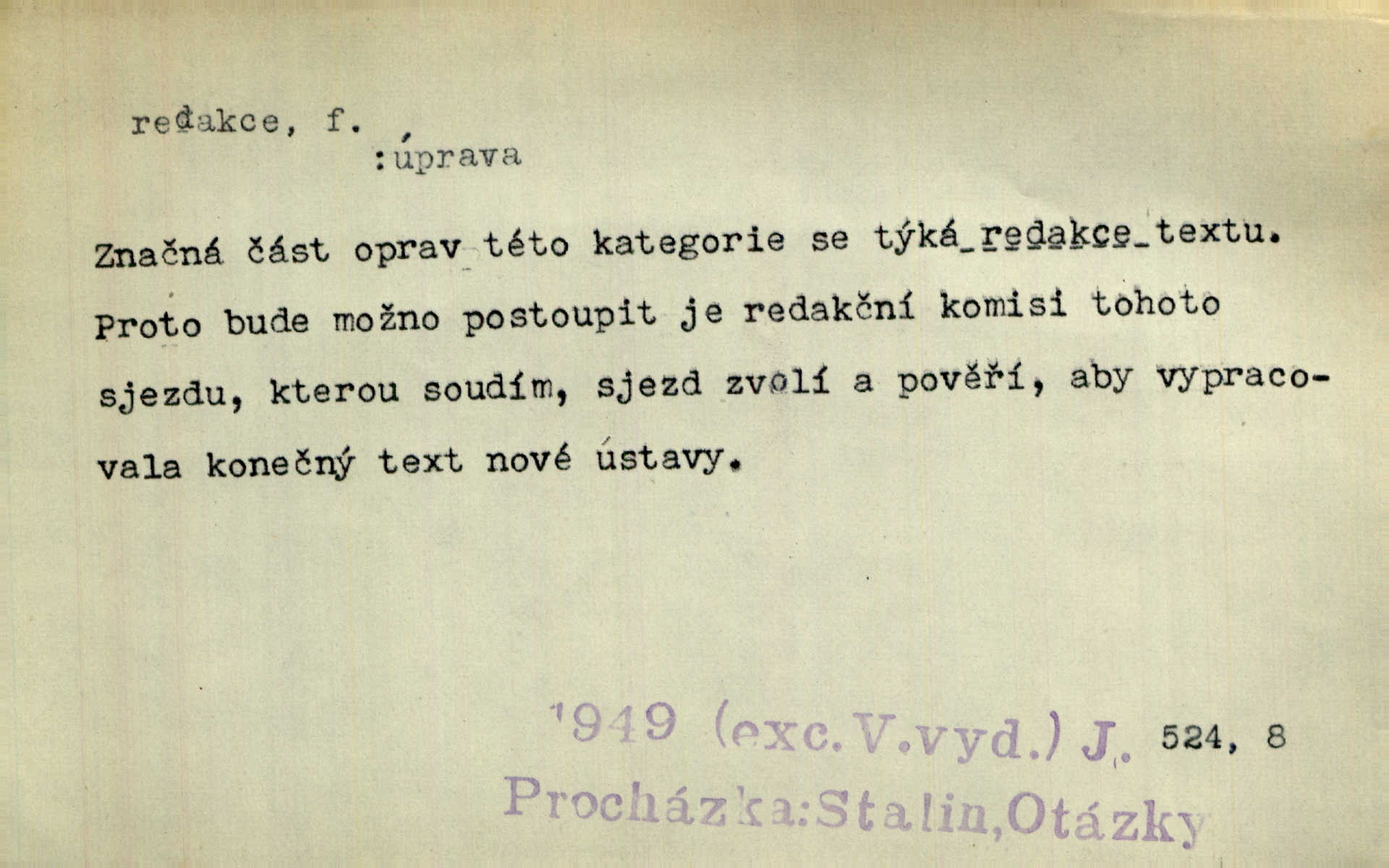 - redakce, -e (zast. redakcí, -í), f. činnost osob majících na starosti řízení, pořádání, redigování časopisu n. periodického n. souborného díla. „Průmyslník“ počne vycházeti tohoto měsíce redakcí Karla Procházky. Zl. Praha. Převzal [Palacký] redakcí časopisu musejního. Bran. Národní bibliothéce nedostávalo se přiměřeného řízení čili jednotné redakce. Osv. Poslední redakci [Slovníku] bude míti Palacký. Zel. D místnost, budova, v níž pracují tyto osoby. Tiskárna, redakce i expedice byly v jeho [Rosenmüllerově] domě. Jir. Vraceje se pozdě večer z redakce domů, zahnul jsem do ulice, v kteréž Eldora bydlila. Arb. D úprava textu, zpr. literárního, vydání v jisté úpravě. Nevím, je-li román kněze-buditele [„Drašar“], otištěný v „Květech“, již konečnou redakcí. Šal. Jest to spis bratrský, při jehož latinské redakci Bratří užili pomoci svých přátel. Goll. Církevně-slovanská slova dle redakce asi srbské pojata do stčes. vokabuláře. Ath. D soubor osob majících na starosti uspořádání obsahové části novin, časopisu n. jiného periodického n. souborného díla. Redakce různých listů vracely jí [Ackermannové] šmahem básně. Vrch. Přičinlivá redakcí čím dále tím více zdařilých plodů vlastencům podávala. Pal. Čekal na odpověď v listárně redakce jednoho listu. V. Mrš. [Rousseau] brojí proti Encyklopaedistům, s nimiž se zprvu zúčastnil v redakci velikého díla. Durd.