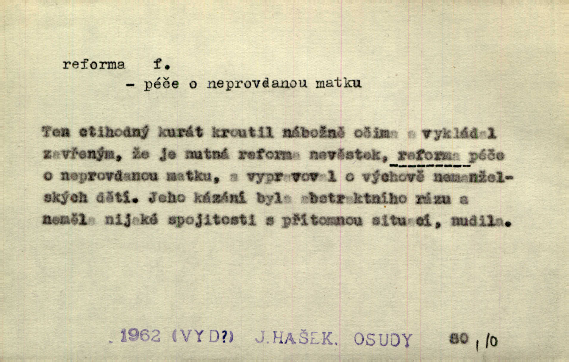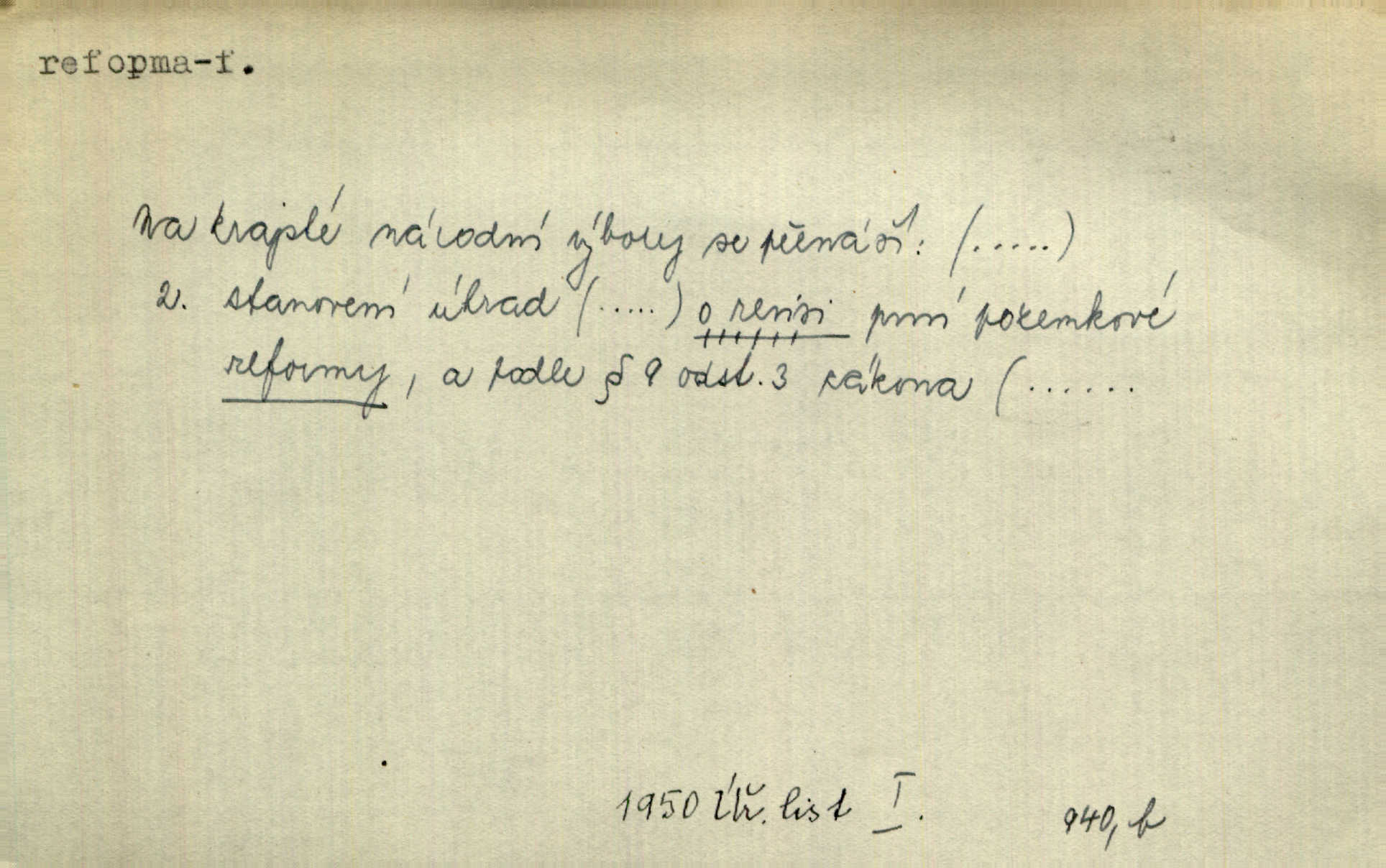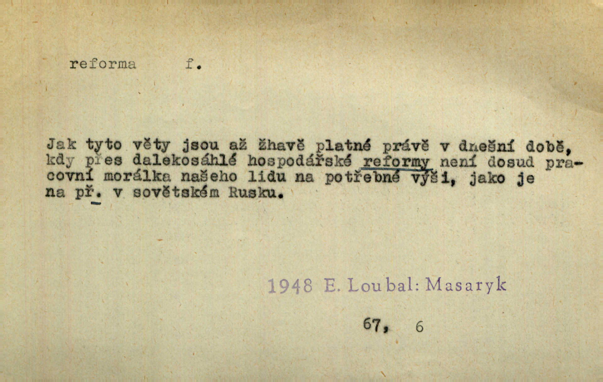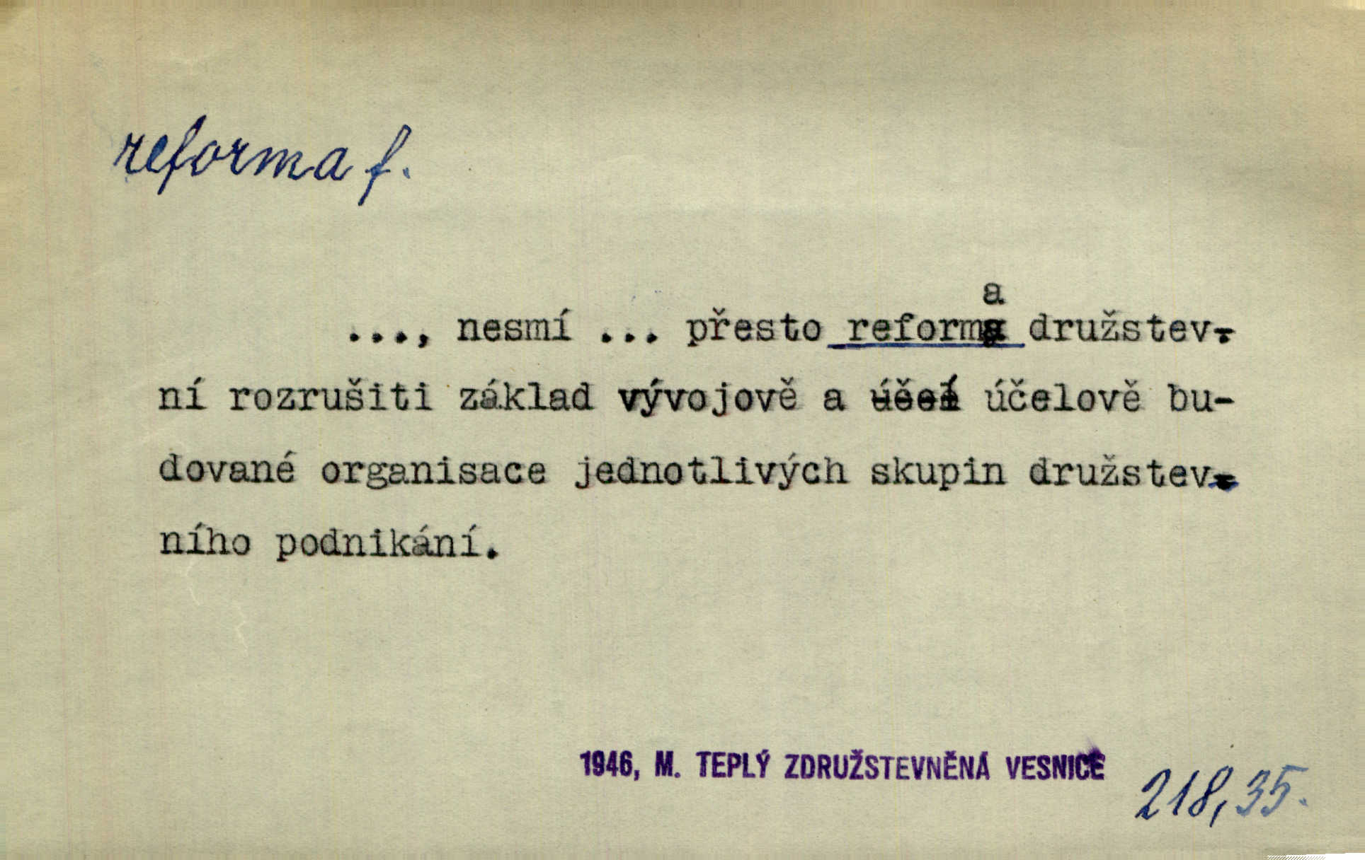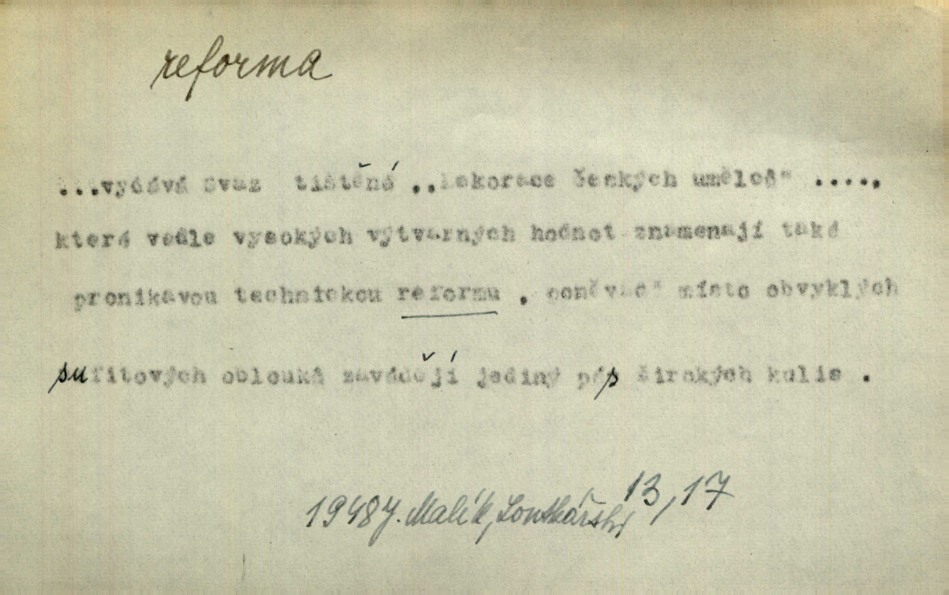 - reforma, -y f. úprava, změna, přeměna nějakého stavu n. řádu, zvl. též veřejného zařízení, směřující k jeho zlepšení. Reforma [kroje] dá se docílit jen vzděláváním [lidu]‚ zvlášť krasocitu. Něm. Umínil si Josef, uvésti jakousi užitečnou reformu dřívějšího systemu na statcích svých. Pfleg. Začali [farář s kaplanem] i o stavech, o císaři Josefovi, o jeho reformách. Třeb. Pracoval [Renan] o reformě vysokých škol. Vrch. Karel Havlíček vyznačil potřebu řádné reformy veškerého současného písemnictví. Osv. Jednalo se mu [Náprstkovi] o reformu společenskou. Zey. Jen tam ujme se hospodárská reforma, kde je lid umořen bídou. Hol. Hleděla [oposice] zmařiti vojenskou reformu. Čes. pol. Práv. pozemková reforma rozdělení velkého pozemkového majetku zákonitou cestou. D Mlyn. mlynářský stroj na čištění krupice a krupičky.