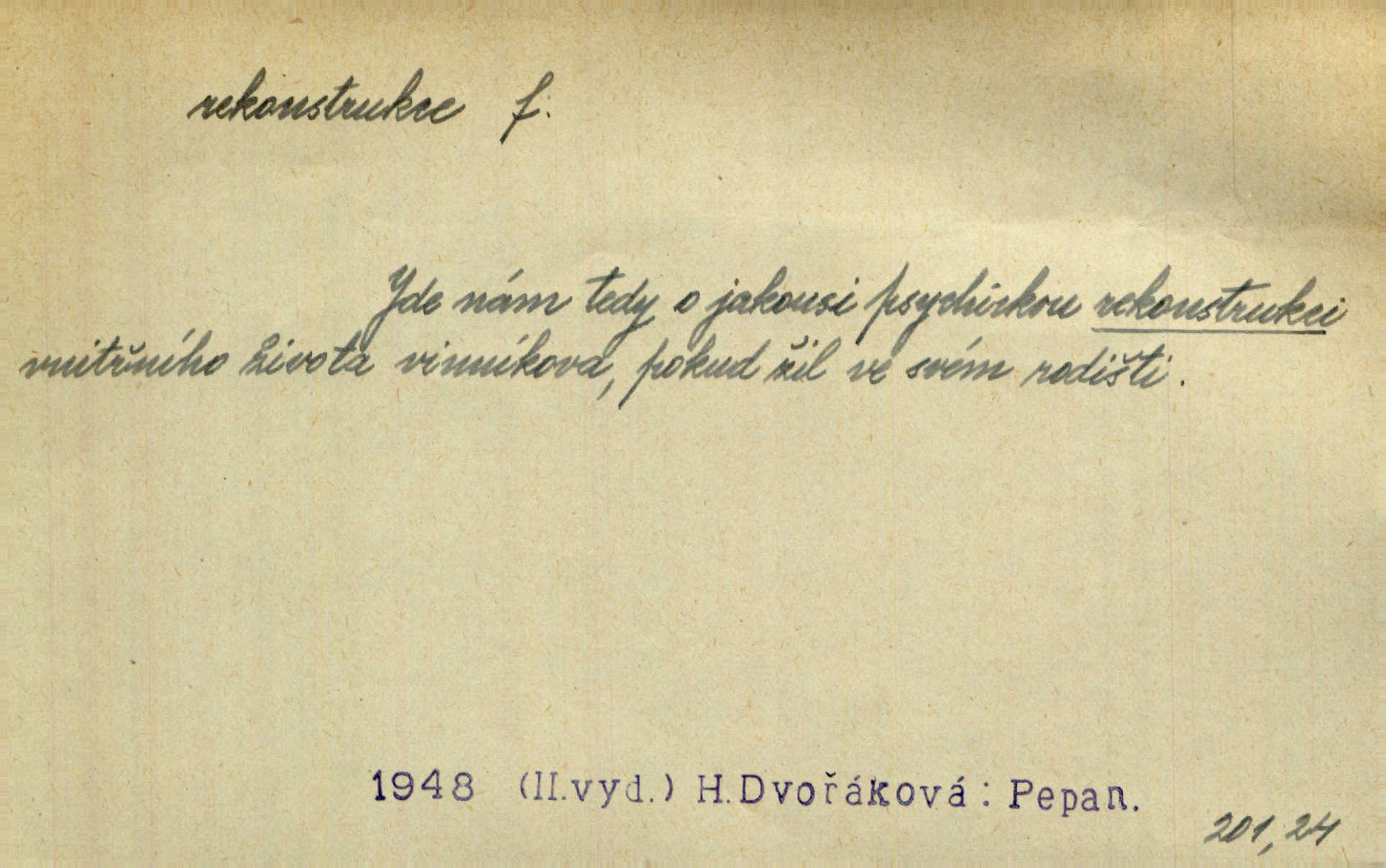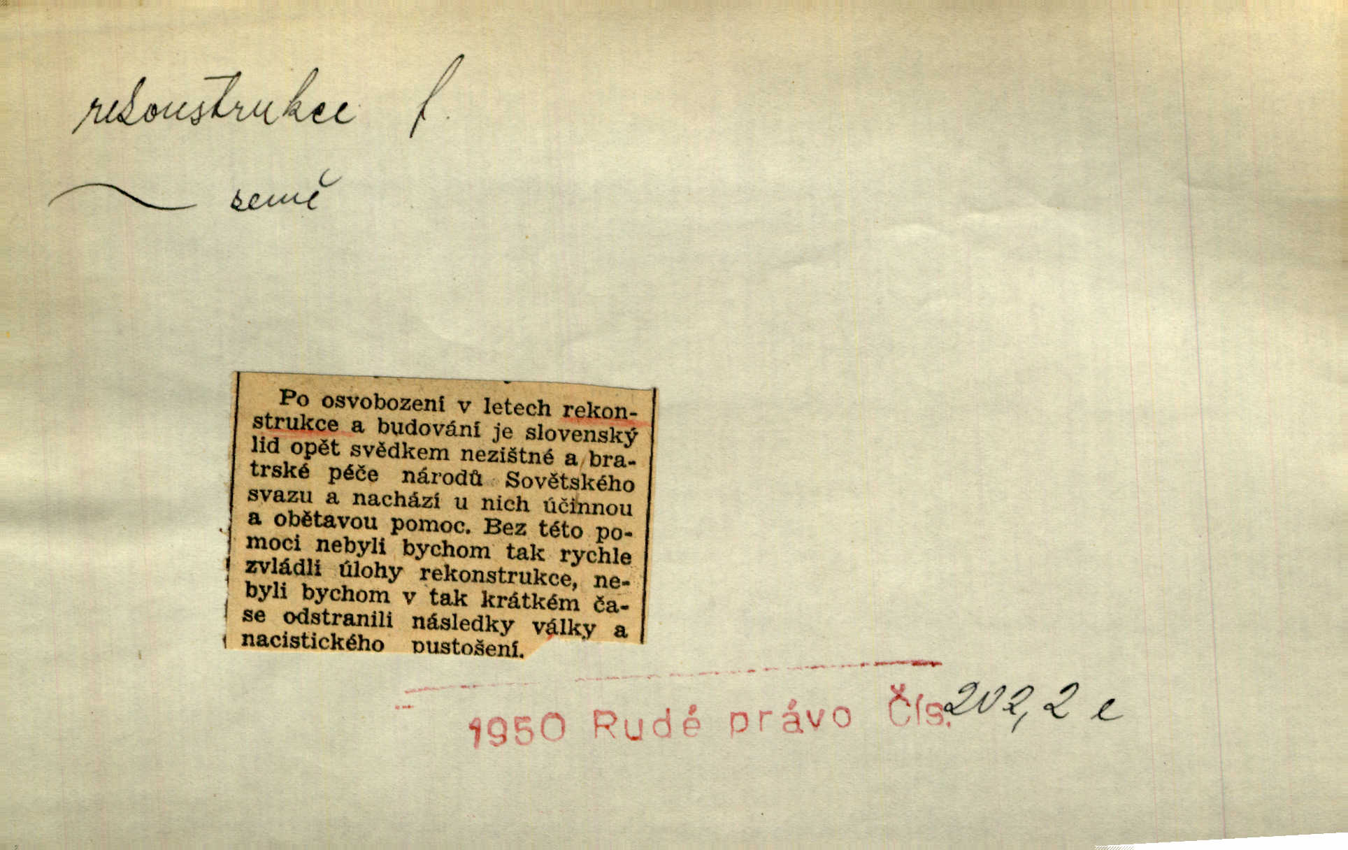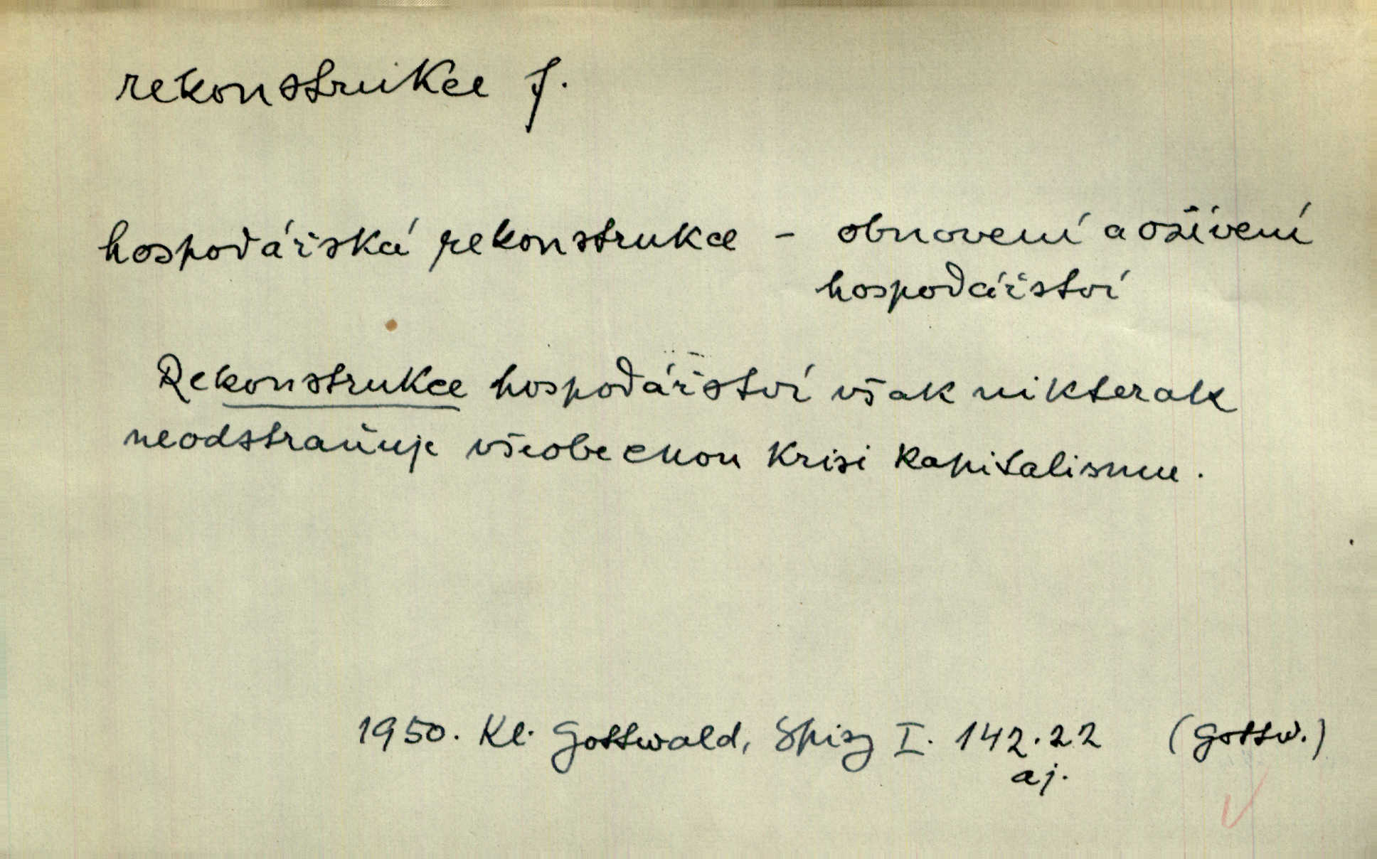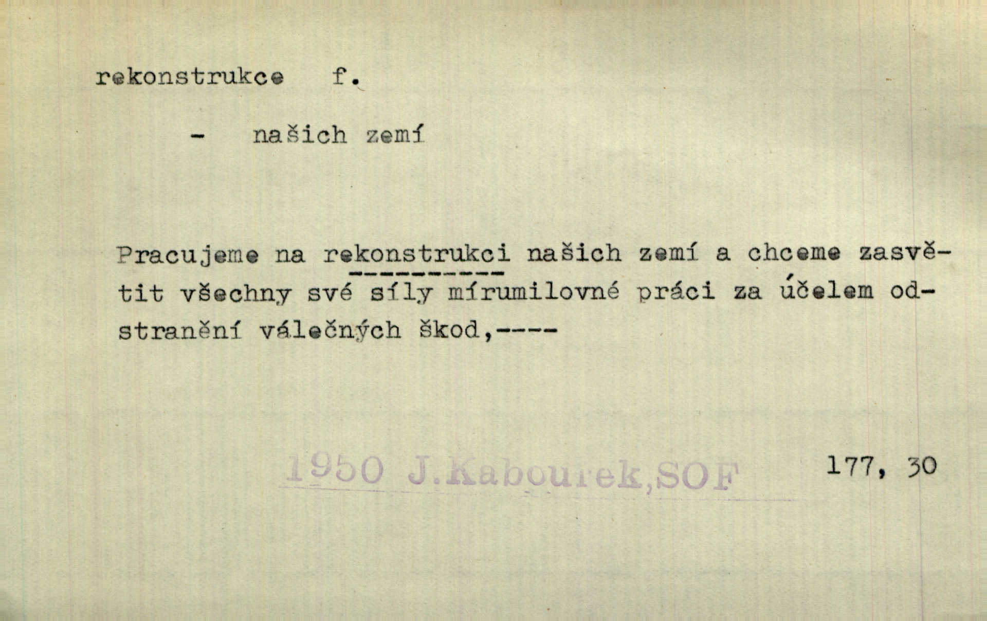 - rekonstrukce, -e f. opětné, nové sestrojení, sestavení, uvedení do původní podoby n. do původního průběhu. Nově provedená rekonstrukce [činu] znovu potvrdila, že šlo o sebevraždu. Nár. p. Státní zástupce navrhoval rekonstrukci na místě samotném. Lid. nov. Jsou to [kritisované hry] výseče z bohatého vesnického života koncipované jako rozhlasová pásma, výjevy a dějové rekonstrukce skutečnosti. Týd. rozhl. Napřed ne malou, ale rychlou rekonstrukci Václavského náměstí do let 1786—1790. Jir. Je to [kritisovaná kniha] víc než trpné vyvolávání minulých vznětů a zas to je méně nežli poetická rekonstrukce dětství. Sez. Srovnání všech recensí [„Vévody Arnošta“] a rekonstrukci nejst. textu provedl Bartsch. Tille. Geod. (ve fotogrammetrii) provedení základního úkolu, t. j. sestrojení pravoúhlých průmětů z daných perspektiv jakožto obráceného úkolu perspektivy. V mikroskopické technice hotovení prostorových modelů na základě řezových preparátů. D přestavba budovy n. pod. díla. [Stavitel] provedl rekonstrukci částí obou zámků, vystavěných Jindřichem IV. a Kateřinou de Medicis. Klost. Jak neměla mne [stavitele] vábiti rekonstrukce chrámu, v němž před tím sotva dovolil jsem si dýchati? Hilb. Bezmála tisíc dělníků zaměstnává nyní obec na svých podnicích, na rekonstrukci vodovodů a souvislé s tím úpravě rybníků i jiných vodních poměrů. Lier. D vůbec upravení něčeho jinak, předělání, přepracování. Jde o rekonstrukci celého stylu veřejného našeho života. V. Mrš. Rekonstrukce filmového podnikání však pokračovala dál. Smrž. Došlo k rekonstrukci vlády. Přít. Poválečná rekonstrukce.
