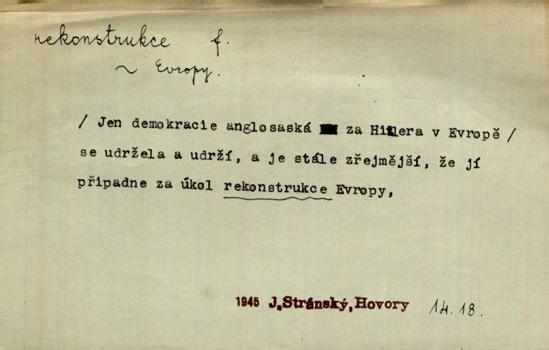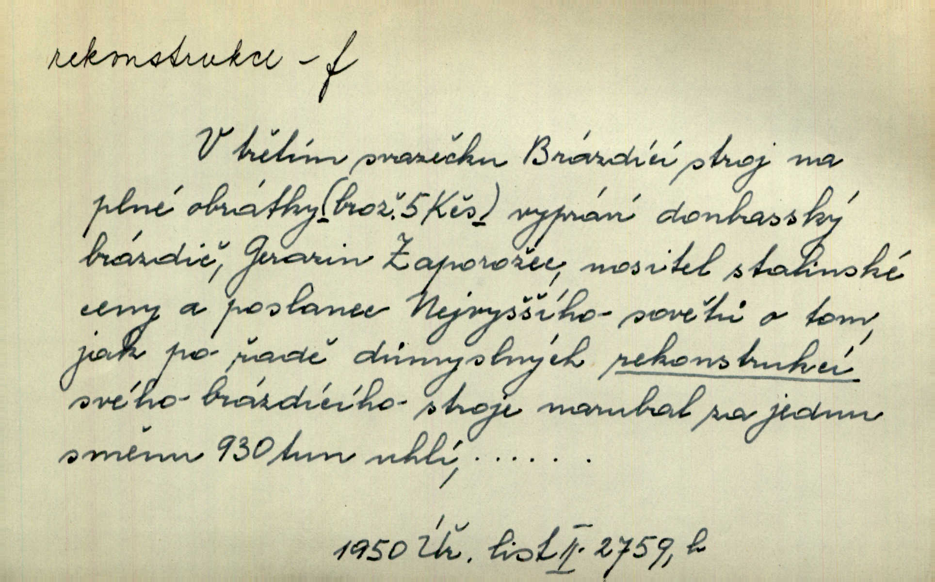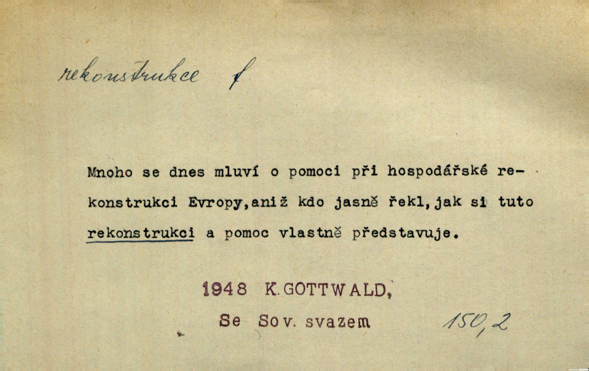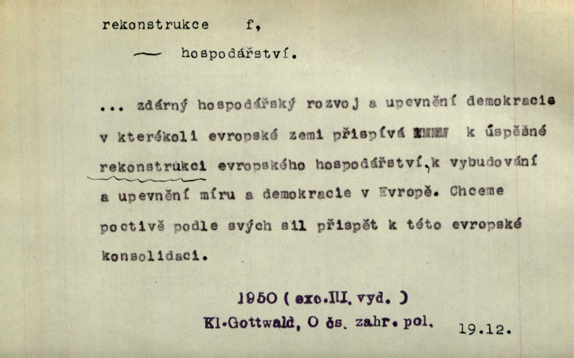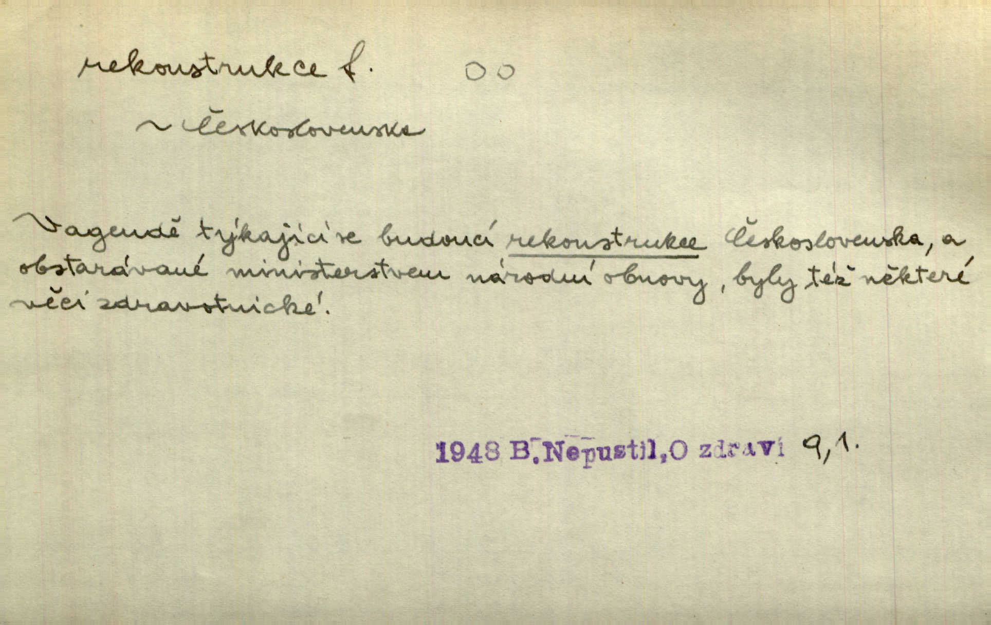 - rekonstrukce, -e f. opětné, nové sestrojení, sestavení, uvedení do původní podoby n. do původního průběhu. Nově provedená rekonstrukce [činu] znovu potvrdila, že šlo o sebevraždu. Nár. p. Státní zástupce navrhoval rekonstrukci na místě samotném. Lid. nov. Jsou to [kritisované hry] výseče z bohatého vesnického života koncipované jako rozhlasová pásma, výjevy a dějové rekonstrukce skutečnosti. Týd. rozhl. Napřed ne malou, ale rychlou rekonstrukci Václavského náměstí do let 1786—1790. Jir. Je to [kritisovaná kniha] víc než trpné vyvolávání minulých vznětů a zas to je méně nežli poetická rekonstrukce dětství. Sez. Srovnání všech recensí [„Vévody Arnošta“] a rekonstrukci nejst. textu provedl Bartsch. Tille. Geod. (ve fotogrammetrii) provedení základního úkolu, t. j. sestrojení pravoúhlých průmětů z daných perspektiv jakožto obráceného úkolu perspektivy. V mikroskopické technice hotovení prostorových modelů na základě řezových preparátů. D přestavba budovy n. pod. díla. [Stavitel] provedl rekonstrukci částí obou zámků, vystavěných Jindřichem IV. a Kateřinou de Medicis. Klost. Jak neměla mne [stavitele] vábiti rekonstrukce chrámu, v němž před tím sotva dovolil jsem si dýchati? Hilb. Bezmála tisíc dělníků zaměstnává nyní obec na svých podnicích, na rekonstrukci vodovodů a souvislé s tím úpravě rybníků i jiných vodních poměrů. Lier. D vůbec upravení něčeho jinak, předělání, přepracování. Jde o rekonstrukci celého stylu veřejného našeho života. V. Mrš. Rekonstrukce filmového podnikání však pokračovala dál. Smrž. Došlo k rekonstrukci vlády. Přít. Poválečná rekonstrukce.
