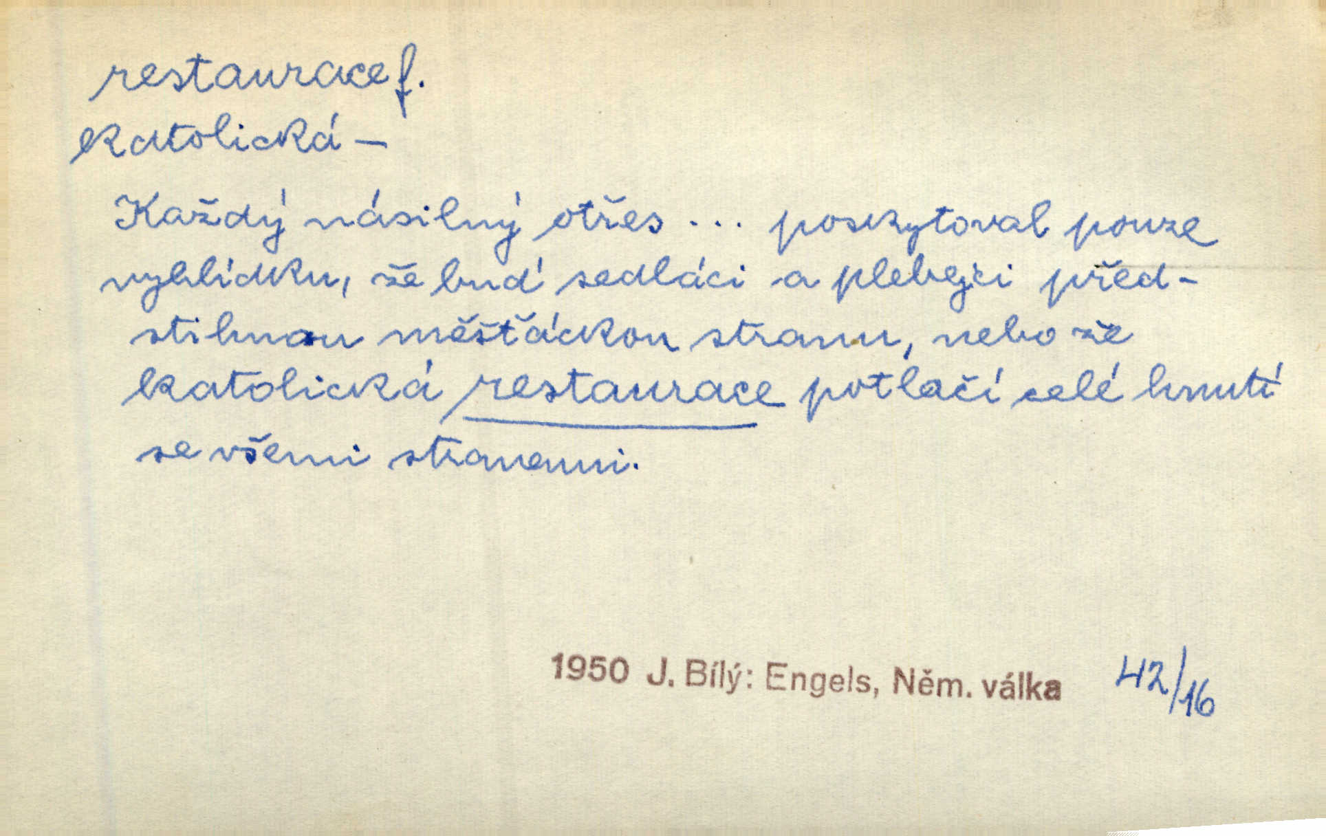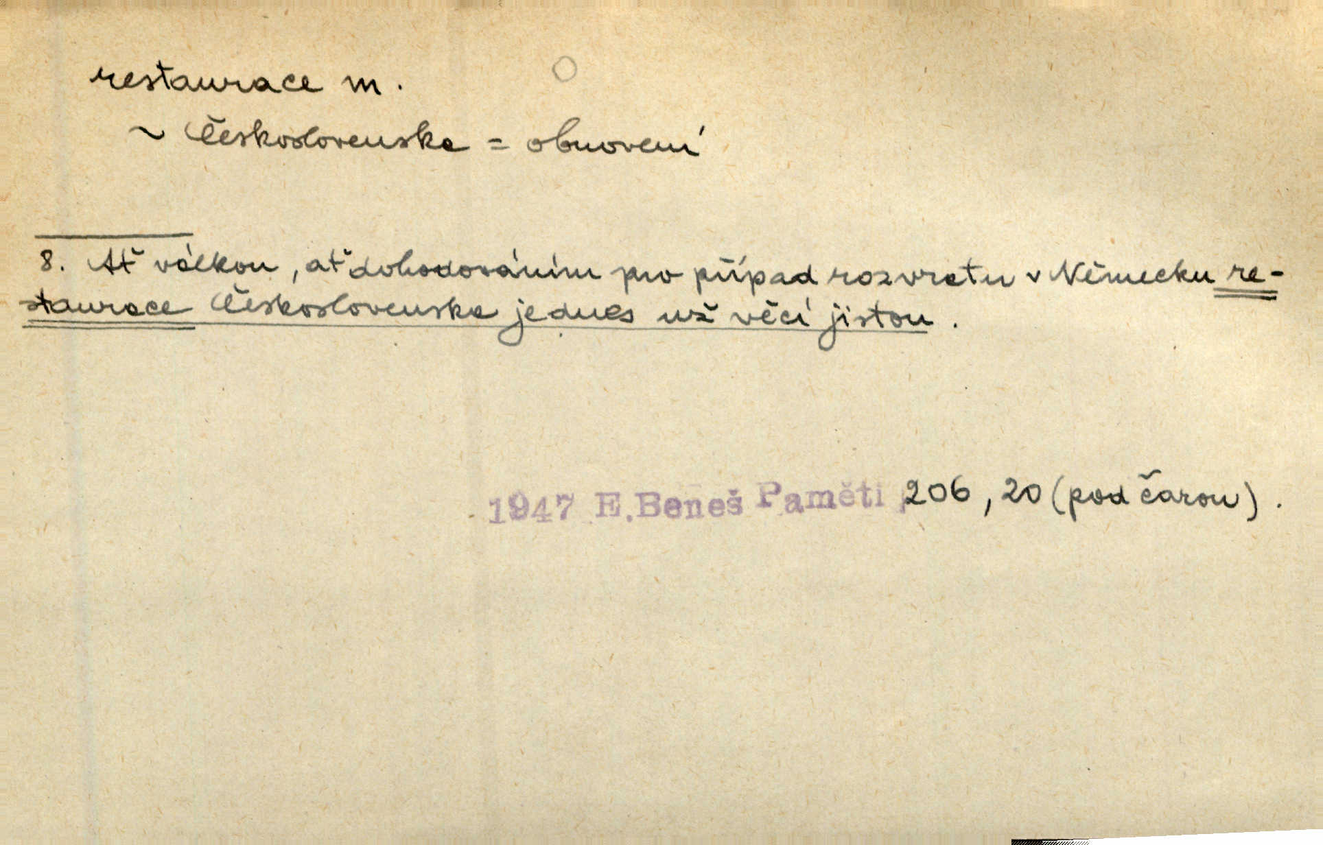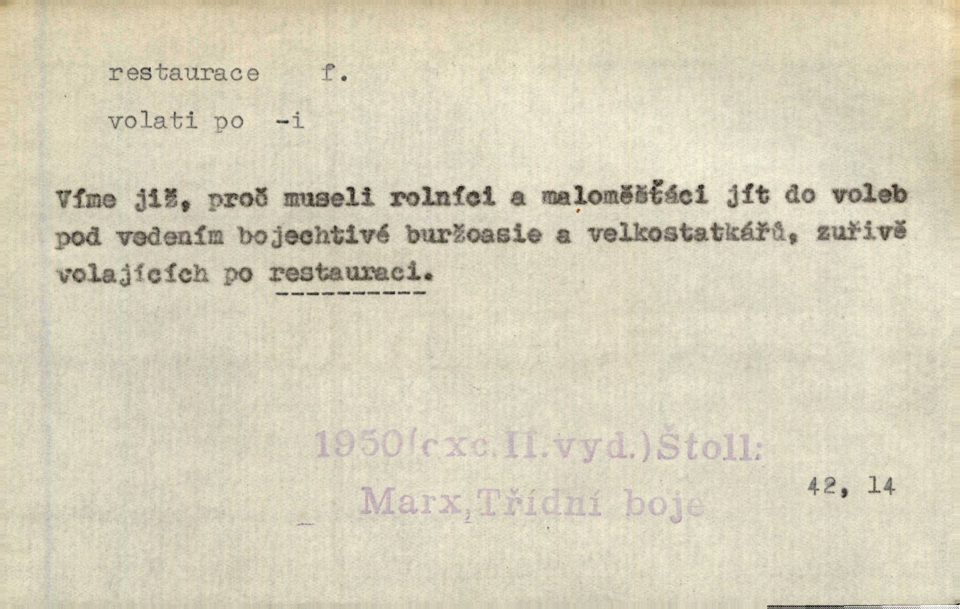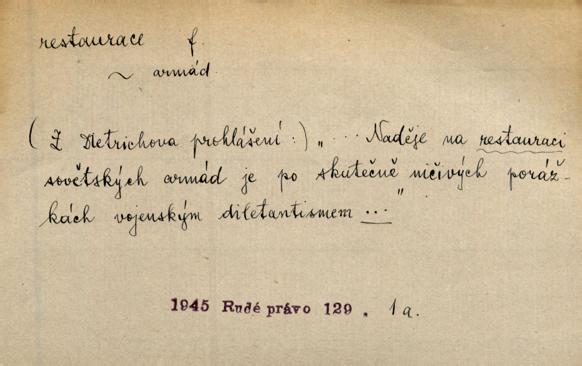 - restaurace (zast. restaurací, -í) f. 2. důkladná oprava, přestavba, úprava, zvl. uměleckého díla. Co se dá zachovat z minulosti [staré Prahy] bez ujmy požadavků živých — dobrá, zachovejme. Ale i při takových restauracích pozor! Mach. Tehdy byla Riedlovi zadána restaurace obrazů jistého starobylého zámku blízko Prahy. Matějček. Restaurace nového kostela po požáru trvala pět let. Pek. Restaurace zpustošených krajů a nedostatek pracovních sil zaviněný depopulací učinily po několik let z Francie mocné středisko immigrační. Boh. Obch. znovuzřízení, obnovení podniku jako celku n. jeho částí n. zařízení. D opětné přivedení k platnosti, moci, zvl. obnovení státního útvaru předtím násilím odstraněného. Mezi nimi [poslanci] známý podporovatel revisionismu a restaurace Habsburků. Přít. Chtěli proti vůli svých přátel stavovských provésti restaurací moci královské a tím povznésti zemi z úpadku. Rez. Po pádu Napoleona zavedena jest přičiněním mocnářů restaurace, to jest obnovení staré vlády. Havl. Pod hesly restaurace, po případě i reakce vraceli se [po francouzské revoluci] ke starším principiím. Mas. Lék je jen v restauraci intelektualismu. Šal.