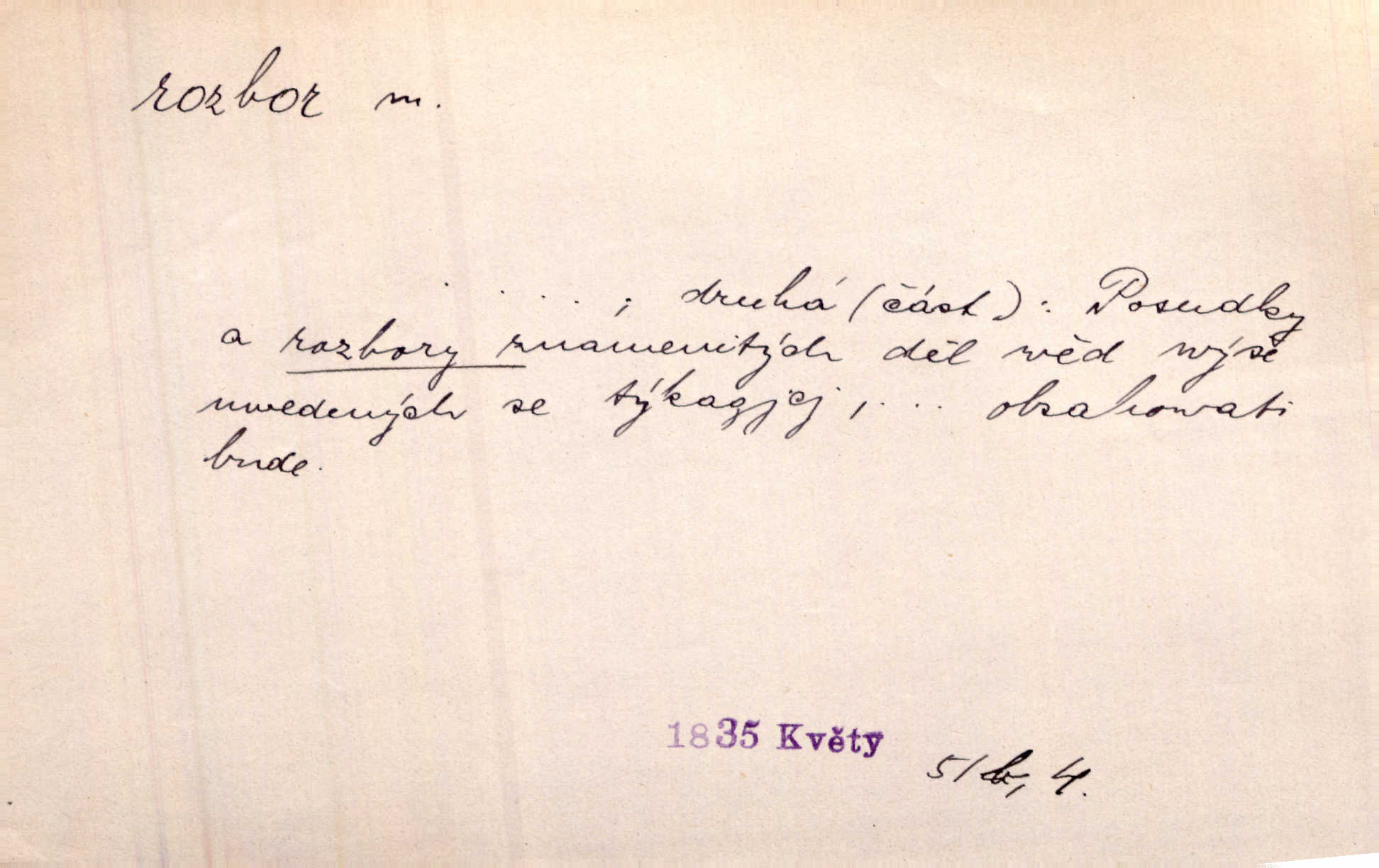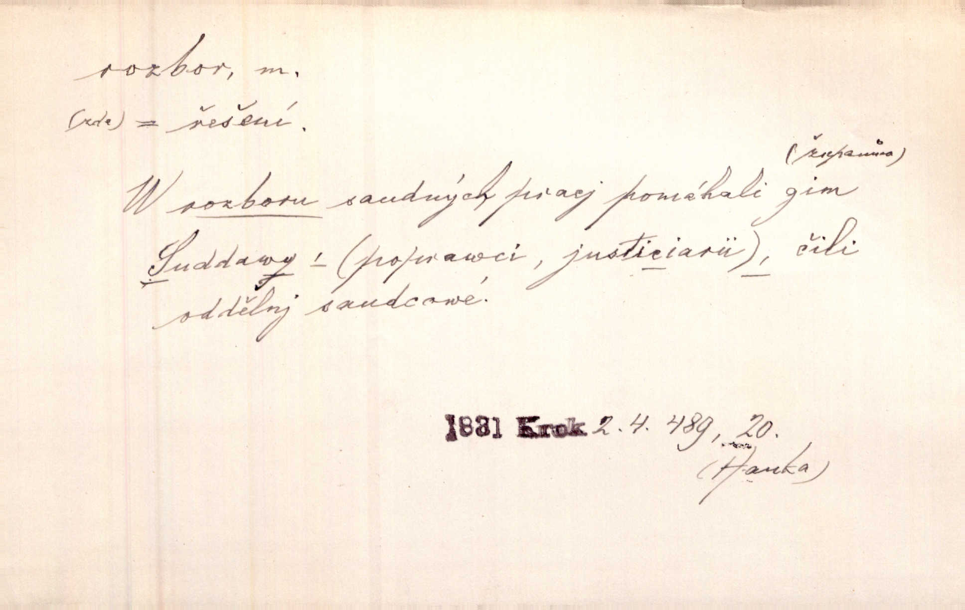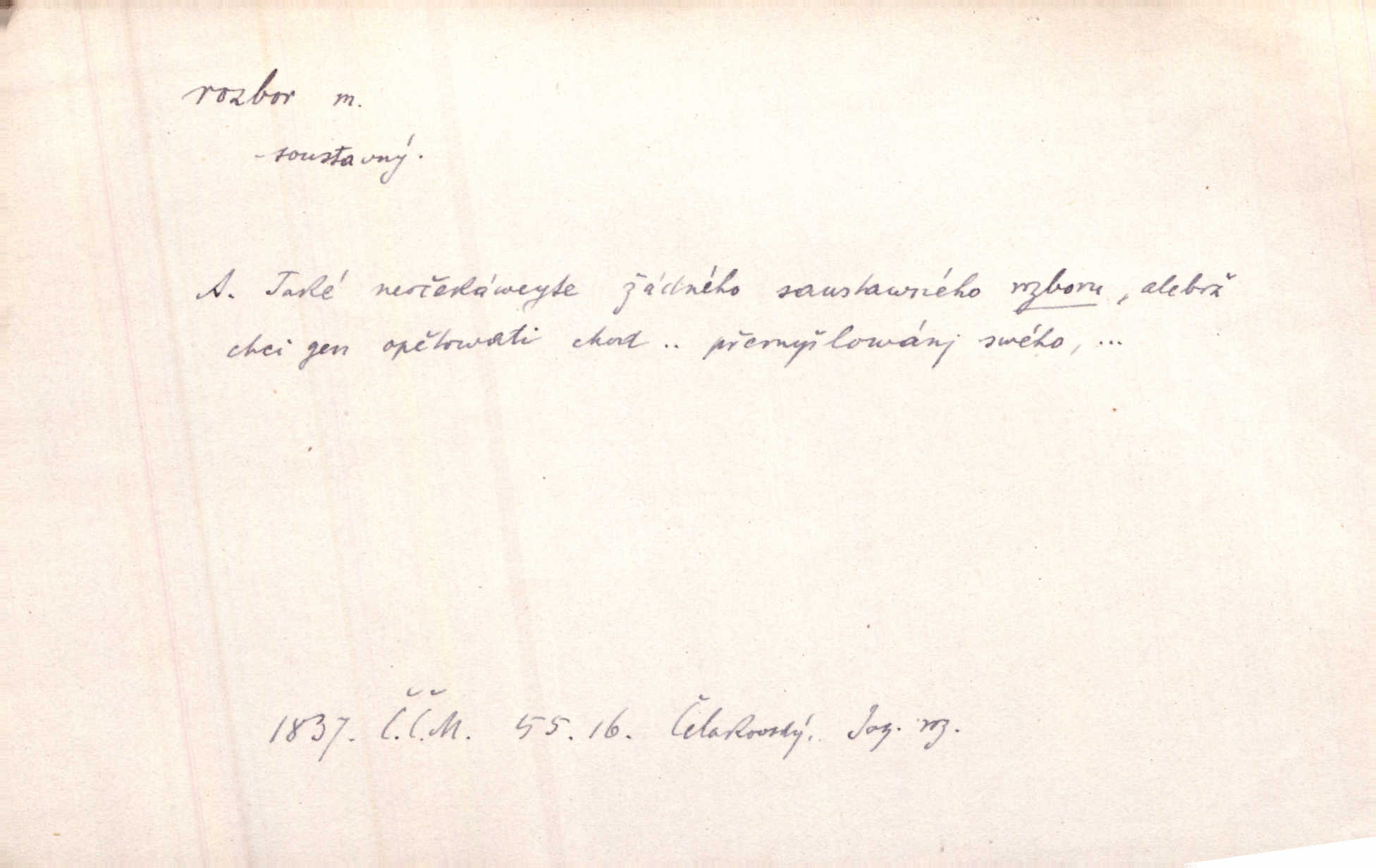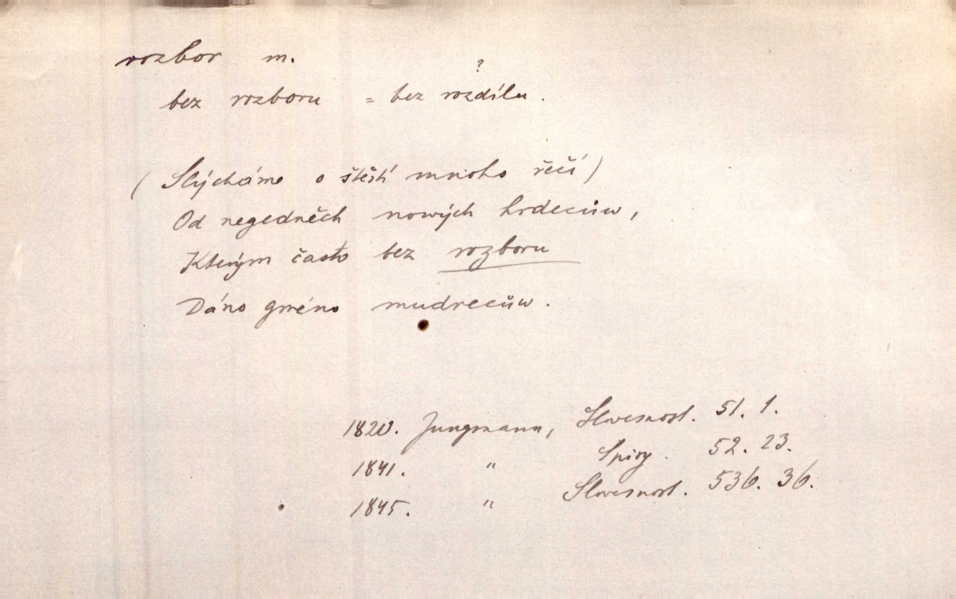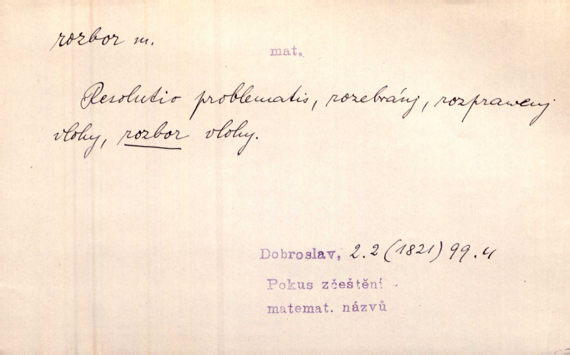 - rozbor, -u m. rozložení něčeho v jednodušší složky a vytčení podstatných znaků, analysa. Ačkoli mistr Kondelík jakživ se nezabýval rozborem duševních stavů kohokoli, cítil přece, že chování milé choti nemá příčiny ani v hněvu ani ve vzdoru. Herrm. Parnassie tak se zahloubala do rozboru svého postavení, že nemohla více usnouti. Šmil. Nechceme psáti rozbor jeho [Pravdova] díla. Jir. Nepustím se v nijaký literárně kritický rozbor. Čech. Obch. rozbor trhu soustavné zkoumání odbytových poměrů na trhu zboží. Hud. výklad hudebního díla, zejména po stránce motivické a formální. V hudbě programní též vysvětlení obsahu. Mat. úvaha o možnosti řešení, diskuse. Chem. analysa chemická. Rozbor kvalitativní, kvantitativní, vážkový, odměrný a j. Gram. rozbor slovní, větný a p. Tech. přehledné sepsání součástí a údajů výrobku znázorněného v dílenském výkresu.