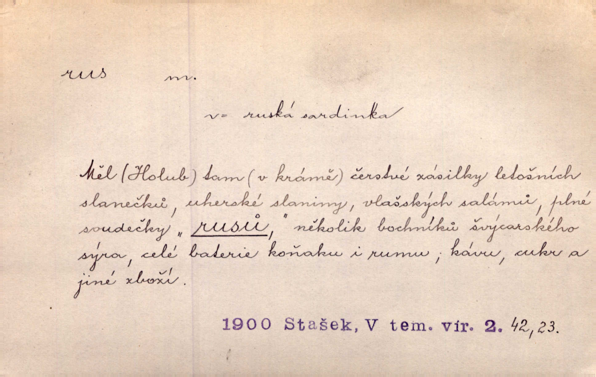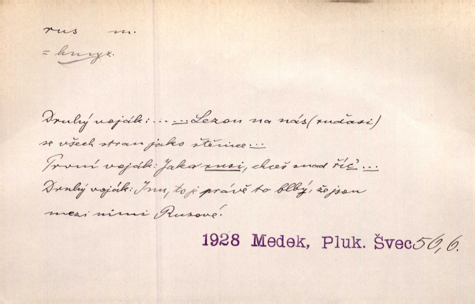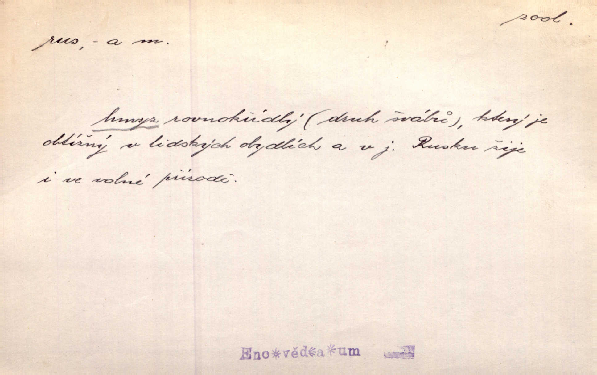 - rus, -a m. hmyz žijící obyč. v lidských příbytcích, v dílnách a p. Švábi a rusi vítají návštěvníka [noclehárny] hned v průjezdě. Přít. [V inserátě] se nabízel ether na vyhubení švábů, rusů a štěnic. Vach. Zool. druh hmyzu z čeledi Phyllodromiidae, Phyllodromia germanica. D Ob. drobnější marinovaný sleď, ruská sardinka. Načal se soudek rusů. Šlej. Měl [Holub] čerstvé zásilky slanečků, plné soudečky „rusů“. Staš. Pojídali [výboři] každý „rusa“. A. Mrš.
