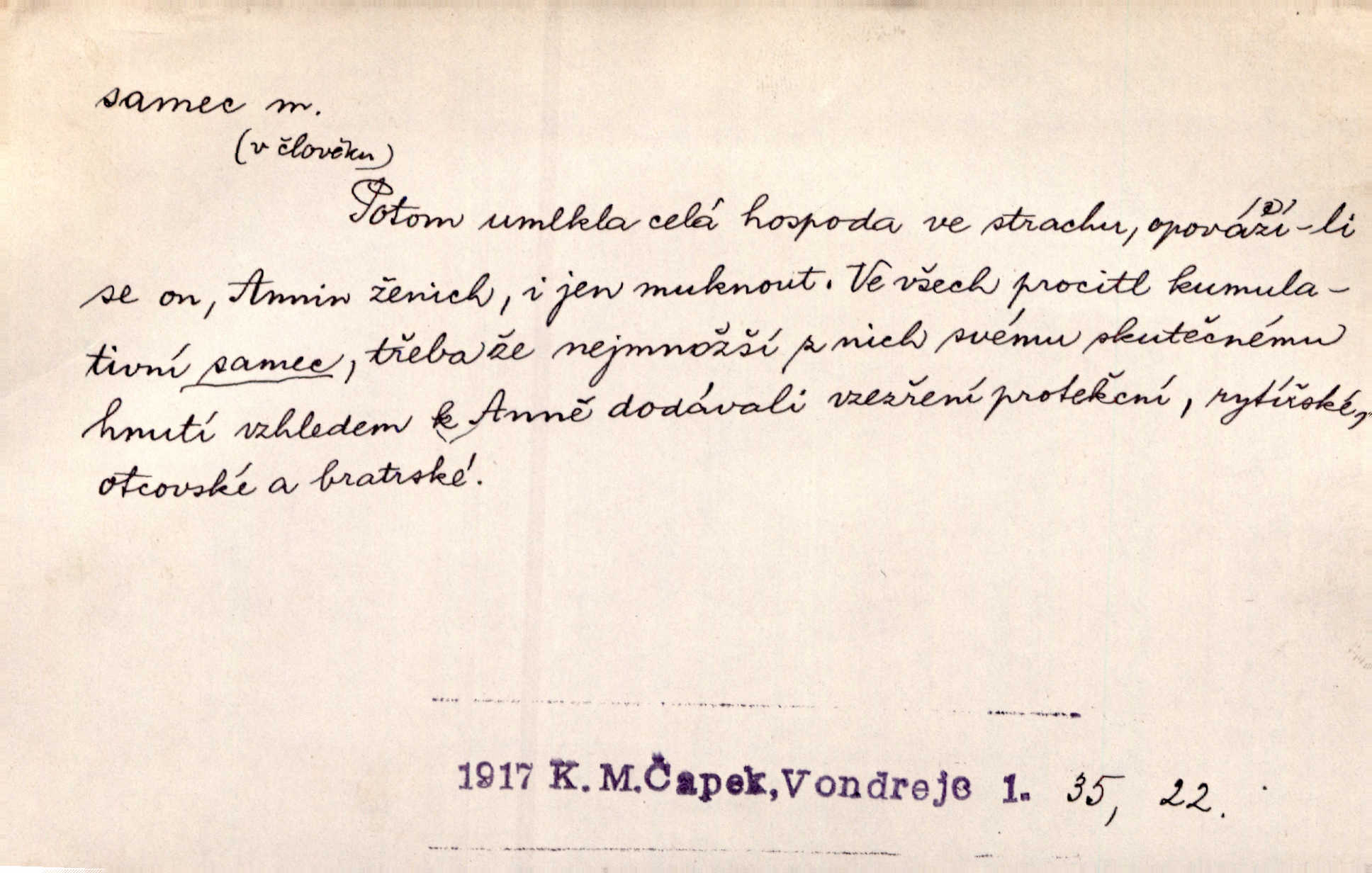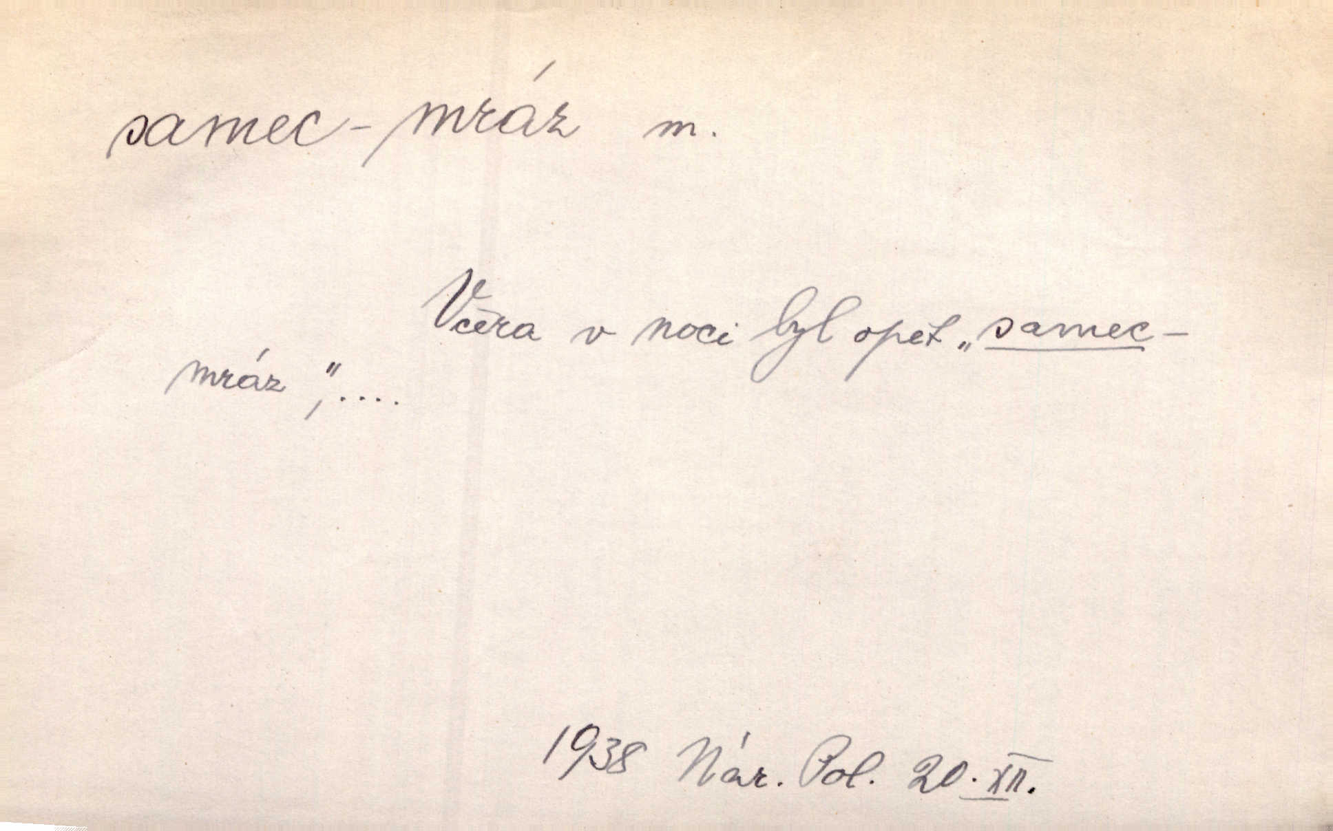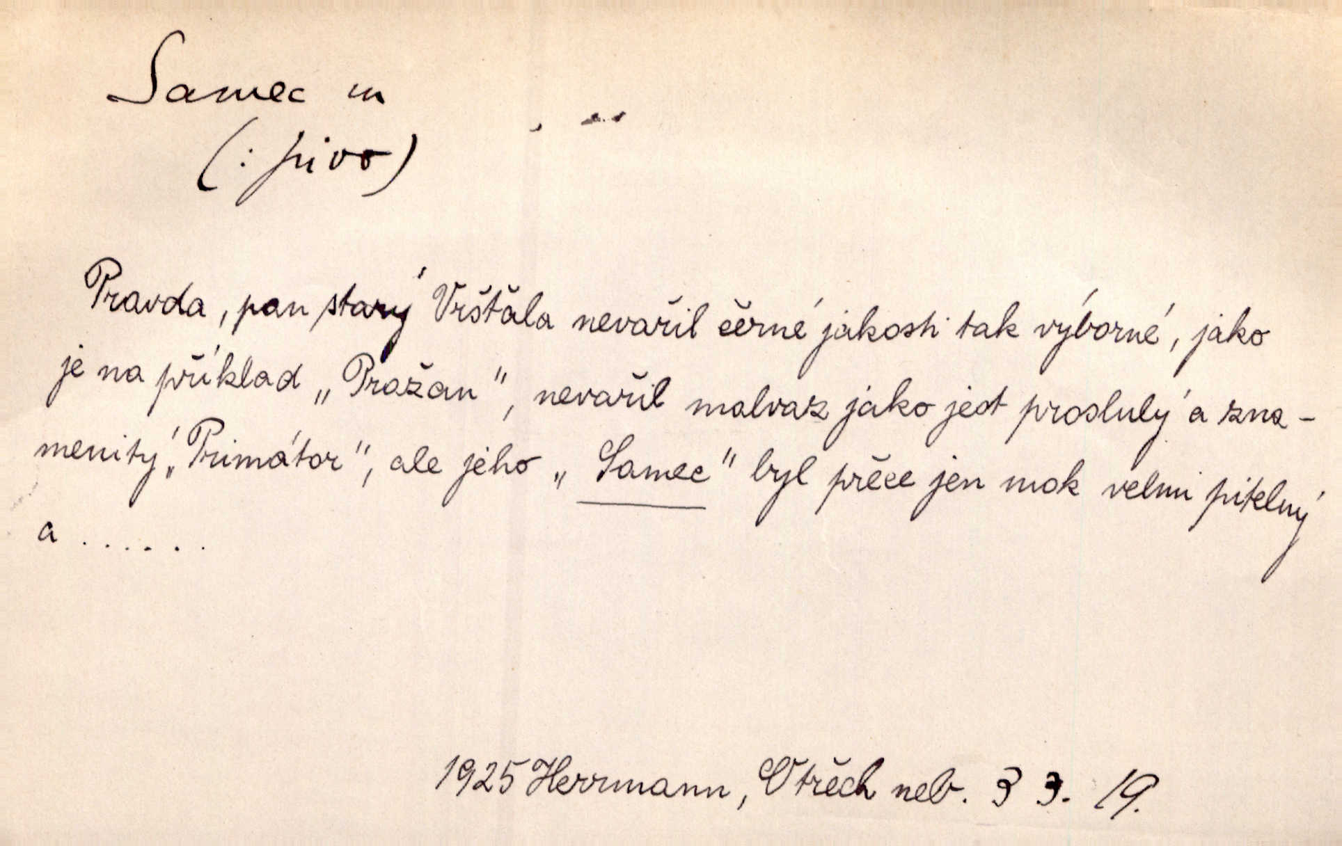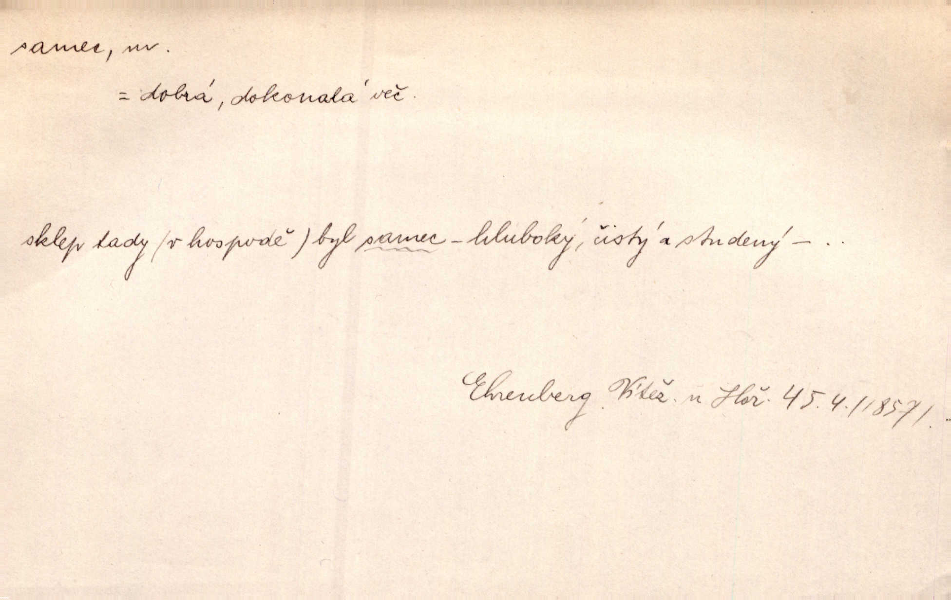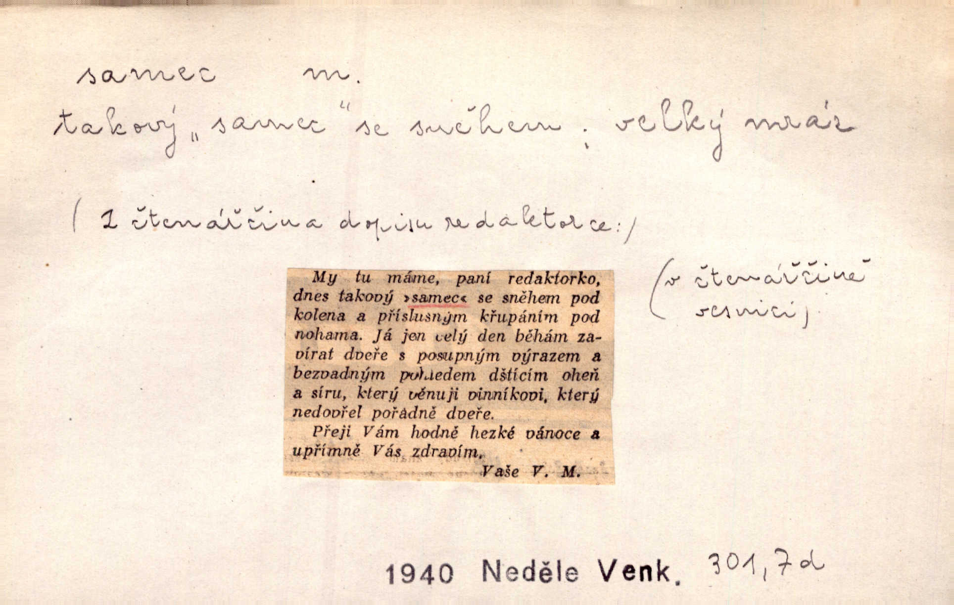 - samec, -mce m. živočich mužského rodu. Kdesi v dálce zažalovala naříkáním soví samice, a samec jí odpověděl houkáním. Vrba. Jen jeden samec a jedna stará samice vždy [v králíkárně] zbyla. A. Mrš. Jsi hezká jako tygřice, když se tulí k samci. Staš. Expr. Zírala na ně [oba nápadníky] s dychtivou, cynickou zvědavostí holky, pro niž se pustili dva samci do křížku. Hlad. Bot. kapraď samec kapradina z čeledi osladičovitých, Dryopteris filix. D Ob. něco velkého, důkladného, silného. Zapálil si viržinko — samce jako uhel černého. Vrba. Vojenský soud, to je samec! soudí, jen se práší. Havl. Přijel [generál] na autu, samci pořádným. John. Krindofindo, to byla zábava samec! Bass. Včera v noci byl opět „samec — mráz“. Nár. p. My tu máme dnes takový „samec“ se sněhem po kolena silný mráz. Venk. D Ob. dobré pivo, ležák. Jak živ takového v Praze nepil [student]‚ ani když „u modré lišky“ nalévali i to nejlepší staré pivo, pravého samce. Jir. „Děkuji a přijdu hned — já jen skočím pro džbánek samce!“ O. Han. D V mírném zaklení. Dědoušek tak se rozjařil, že udeřil na stůl a zvolal: „Samec! To je historie!“ Hol. „Ale vy jste si uměl vybrat posluhu, Alois, aby vám to šťastně dopadlo, pardie samec!“ Herrm. Na severní točně prý panuje noc půl leta dlouhá. Mordie samec! tam bych nechtěl být ponocným. Paleč.